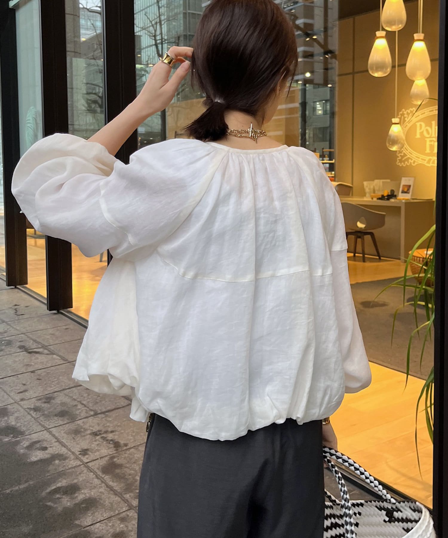 春夏らしい涼し気な素材感と、どの角度から見てもかわいいシルエットでスタイリングのポイントとなってくれます。