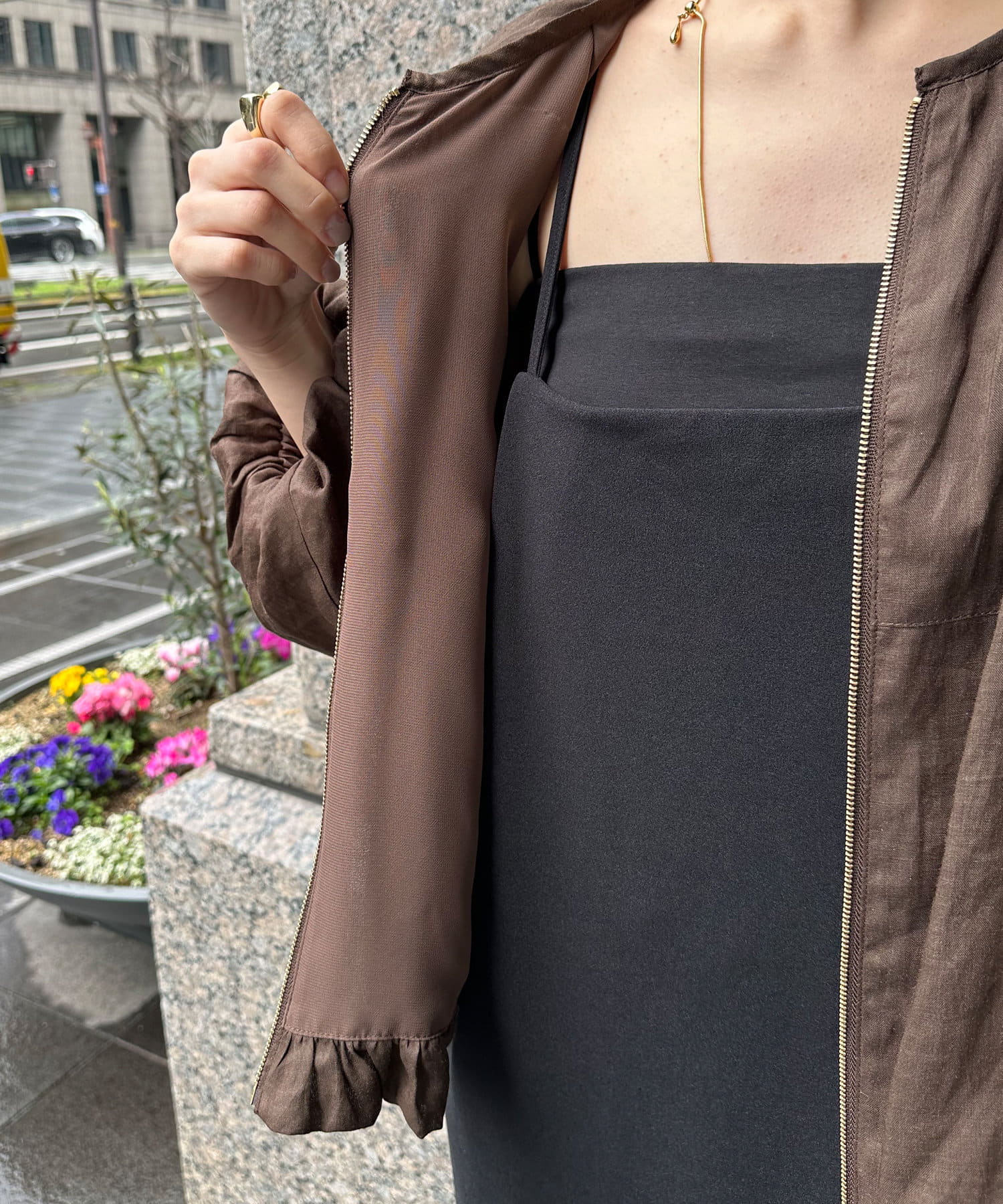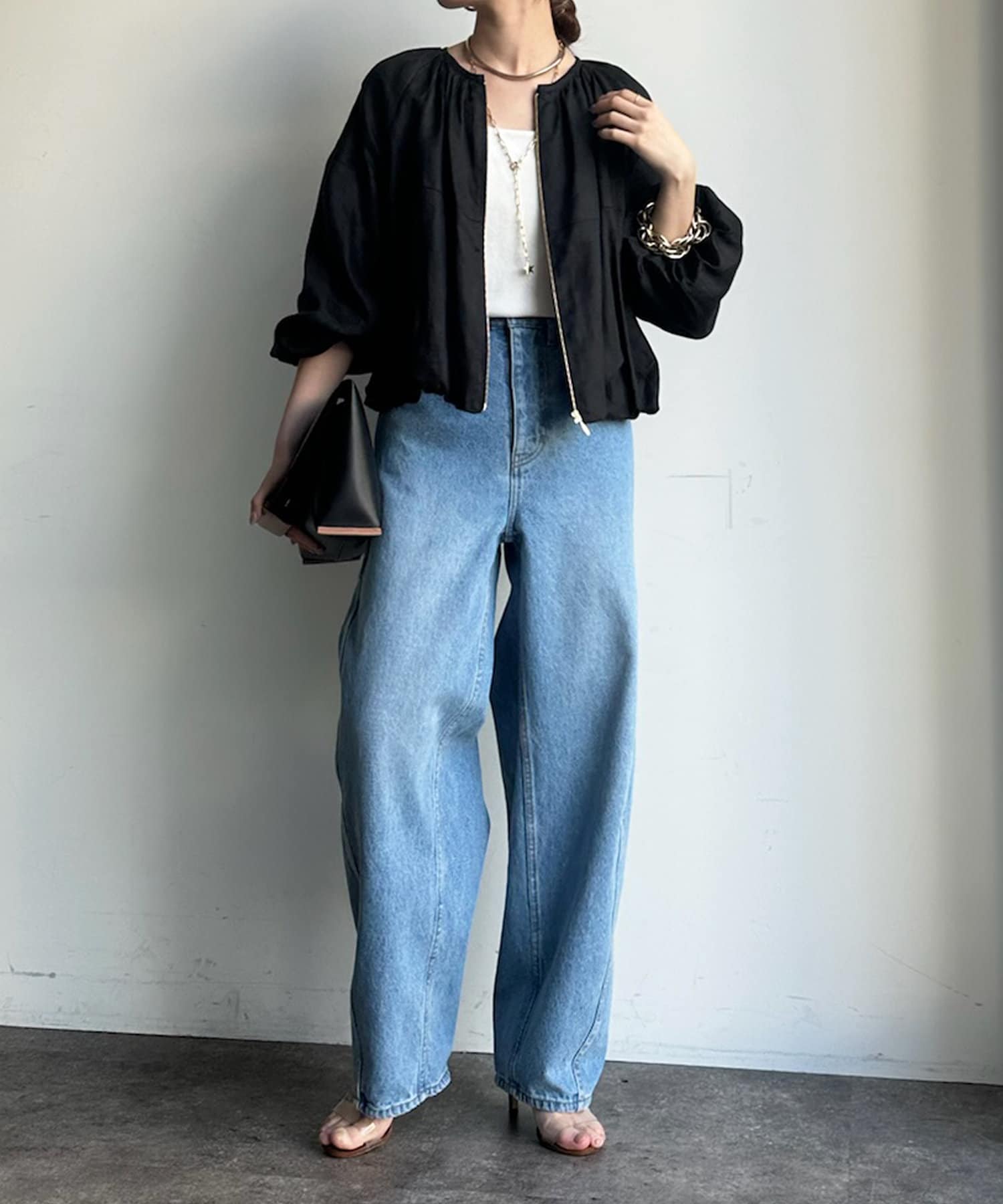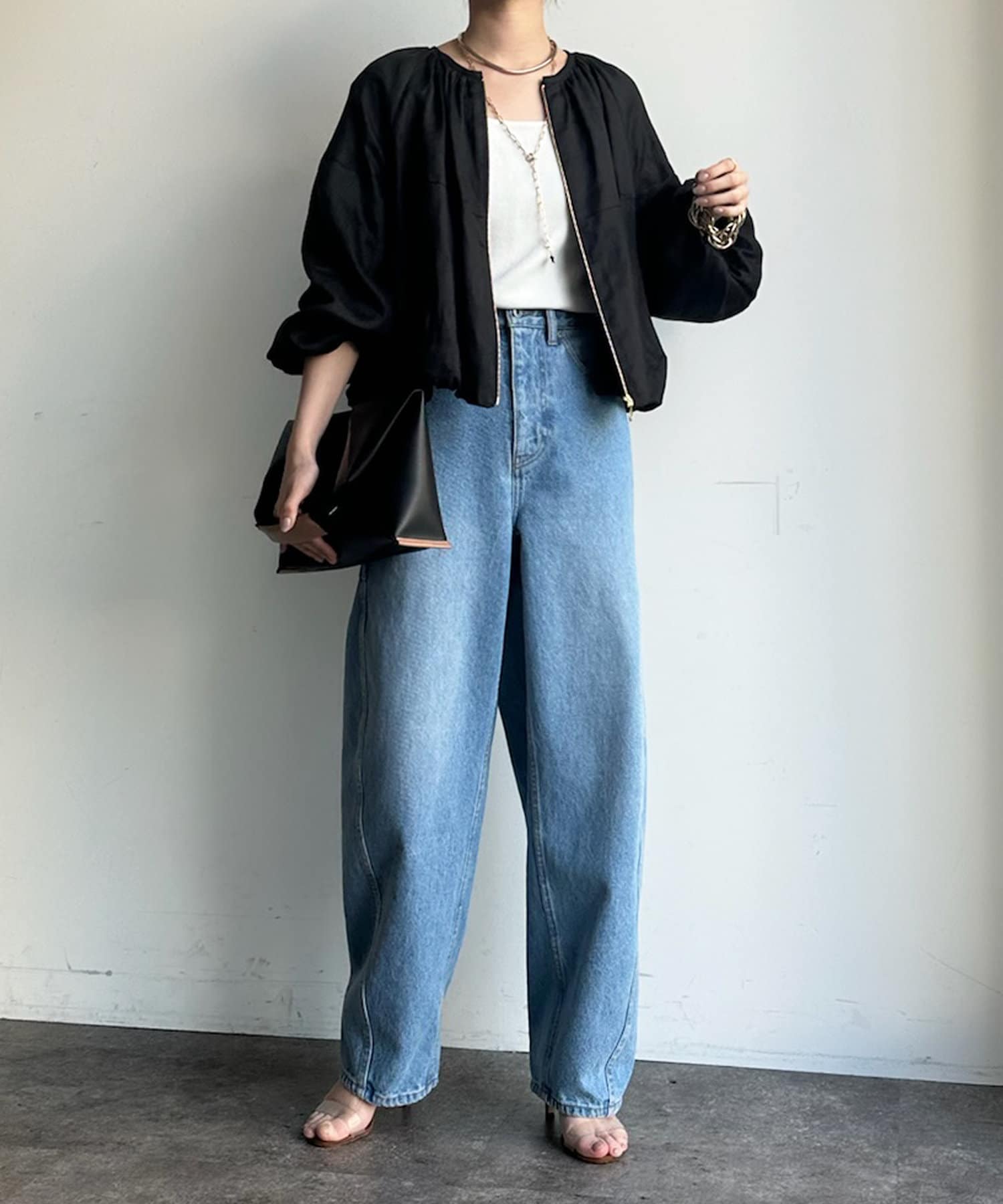 ゴールドのジップもどこかレディライクに仕上がるポイントですよ。