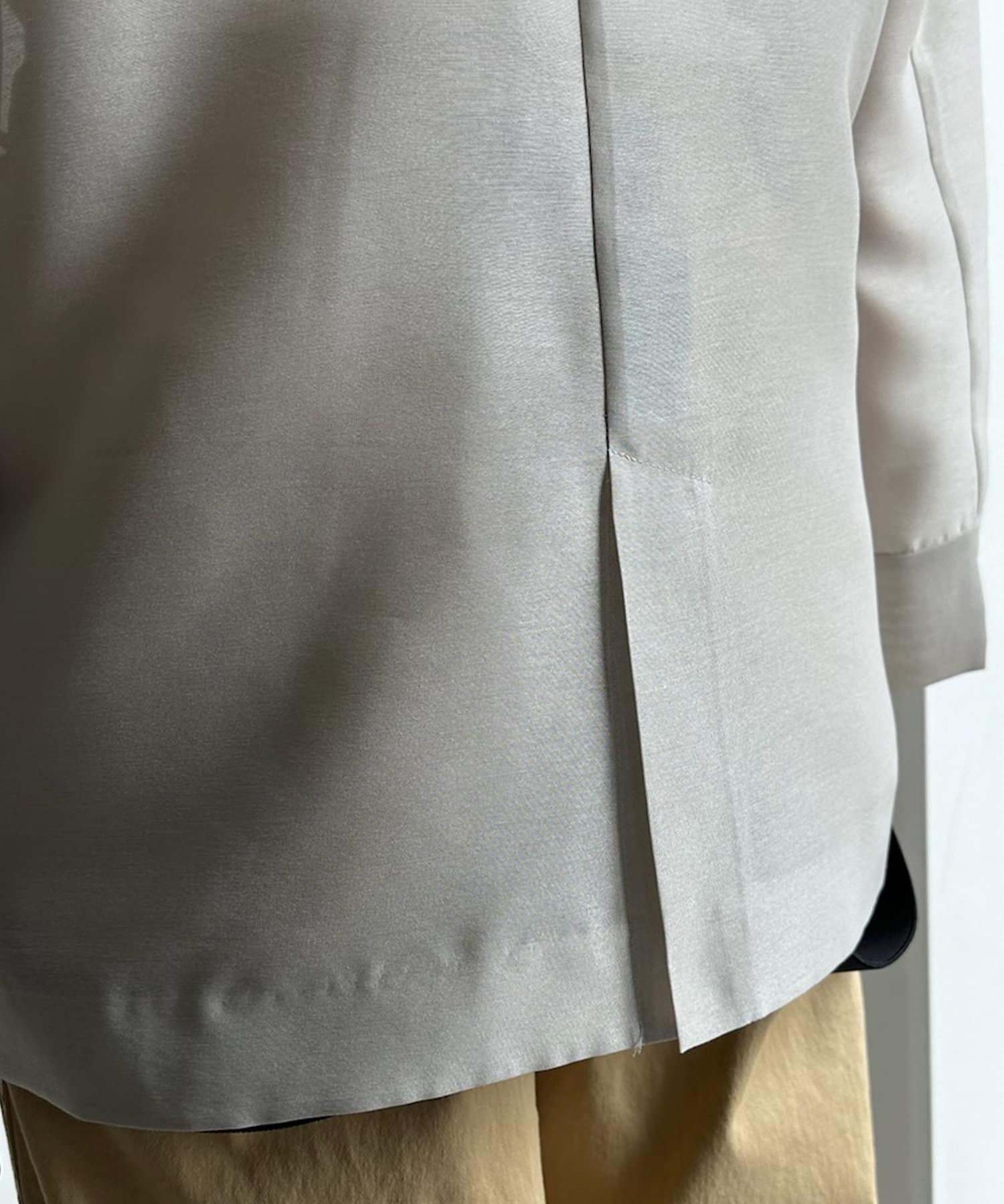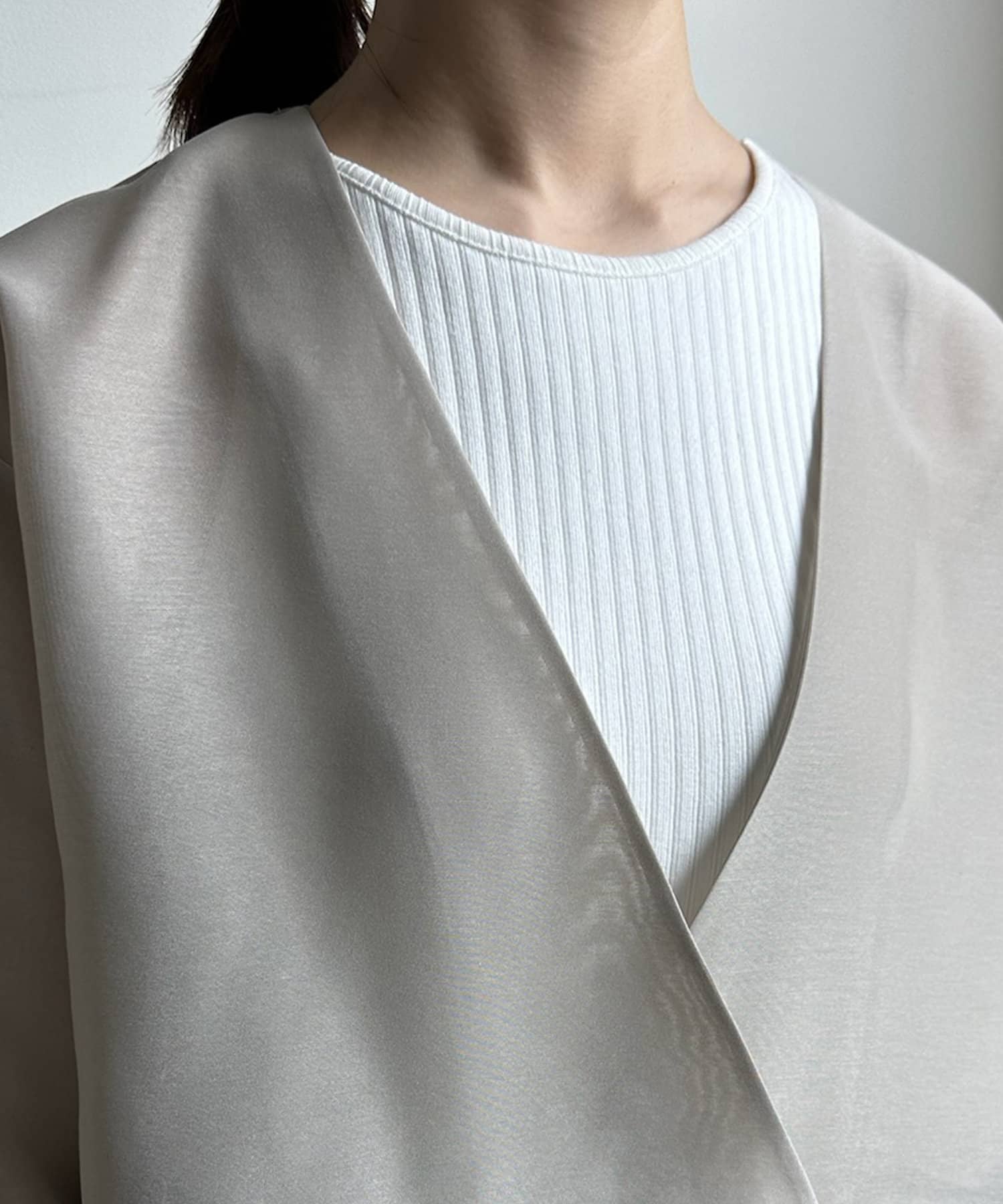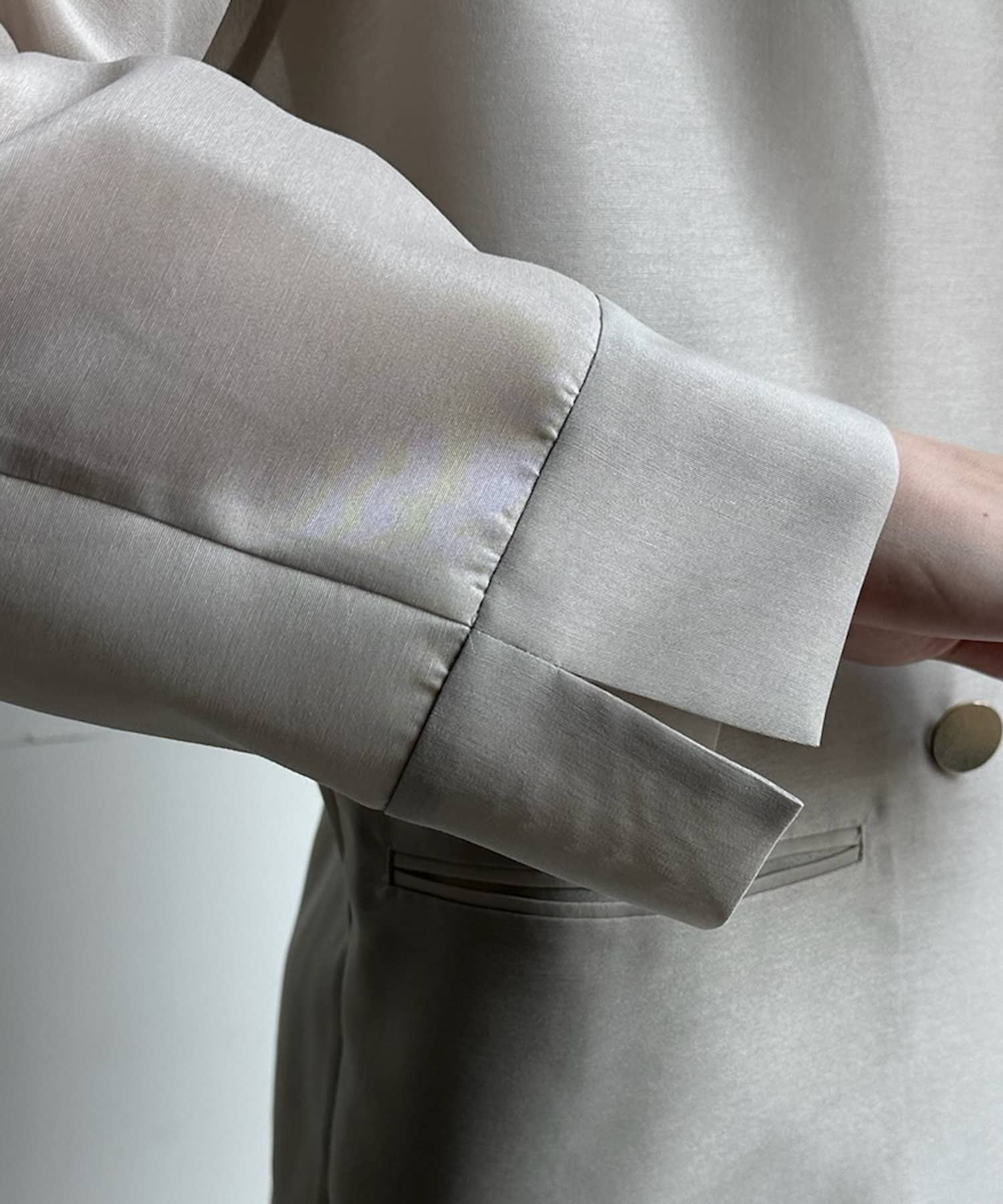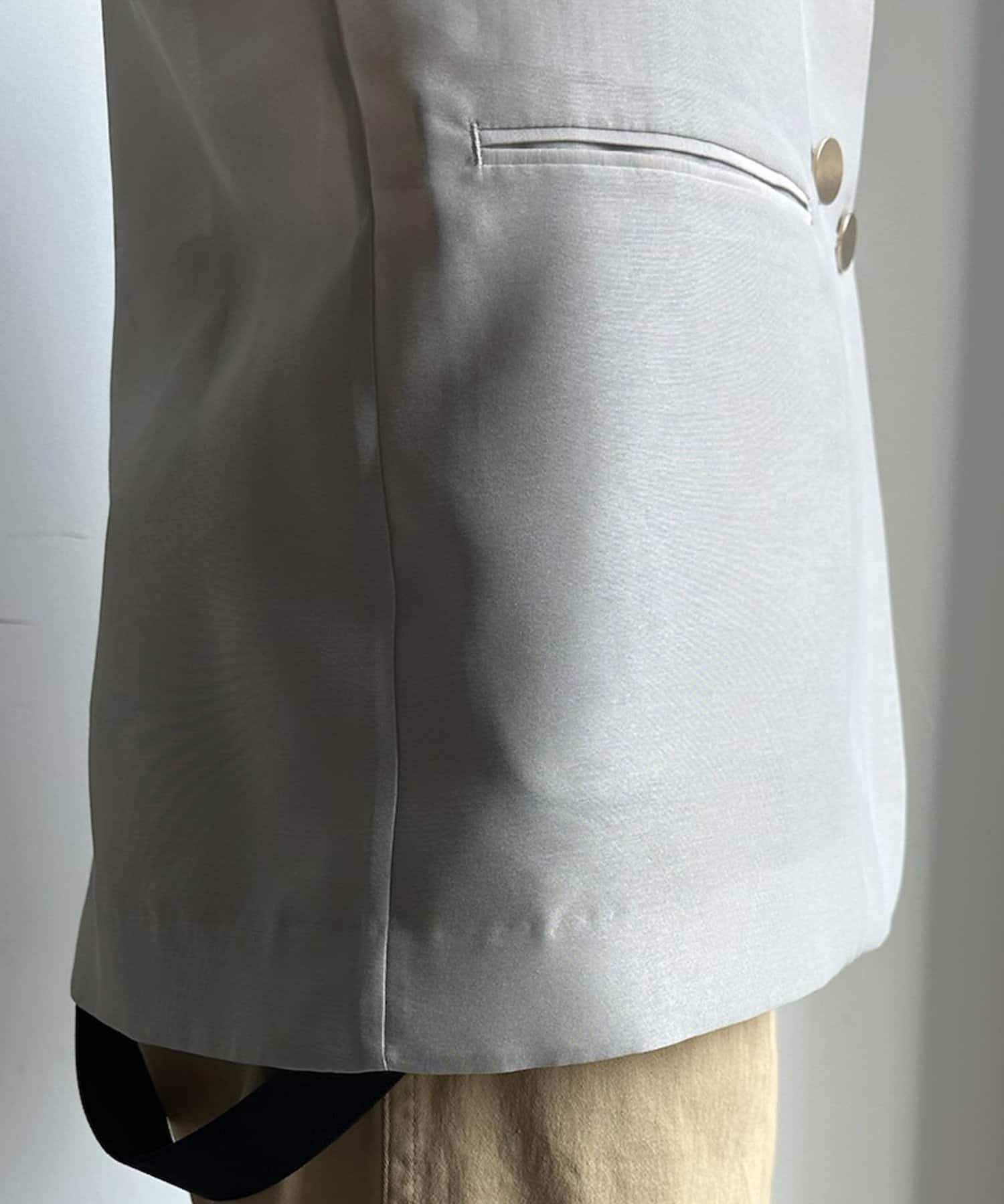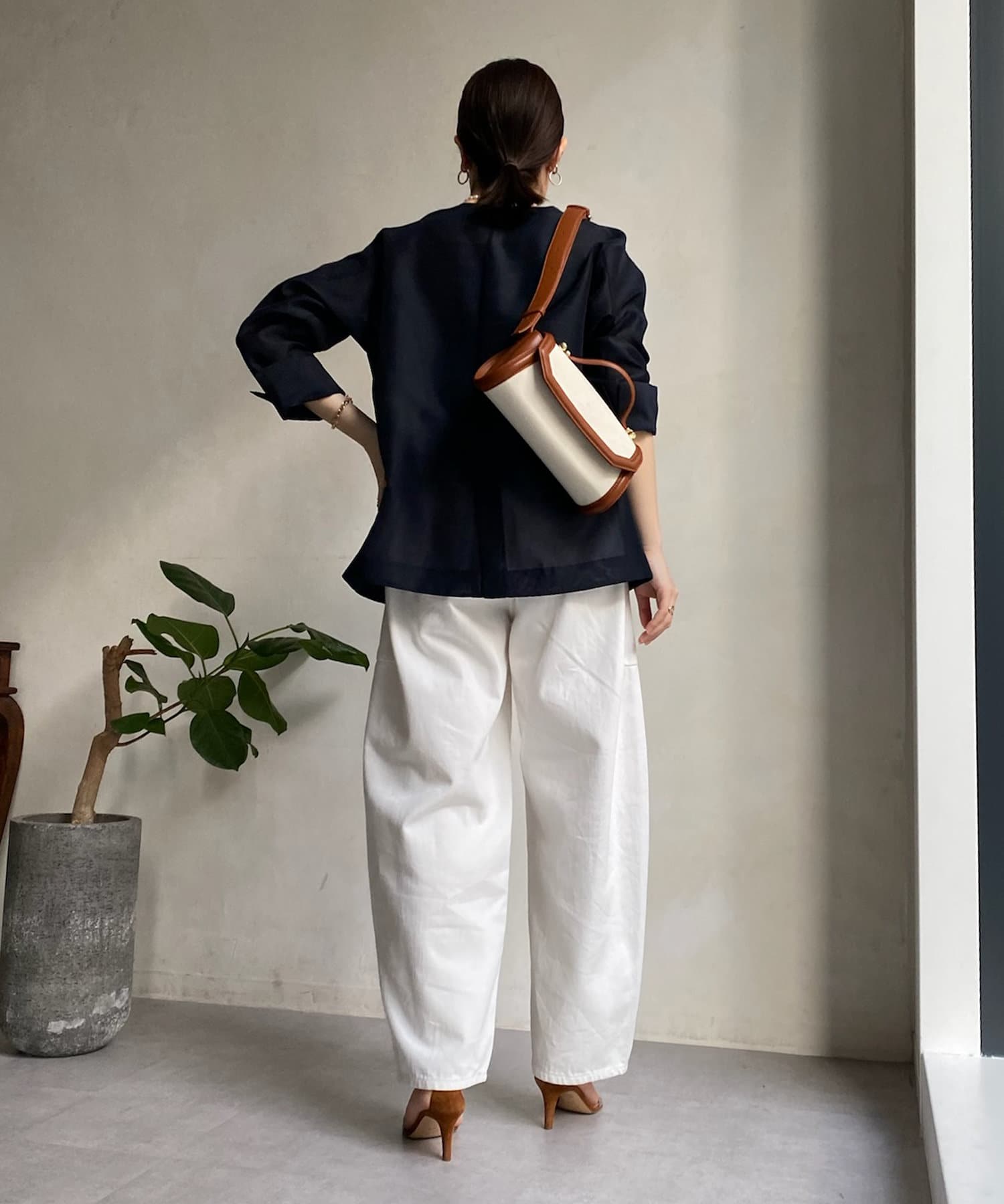 顔周りをすっきりと、季節感をぐっと上げてくれるノーカラージャケット。