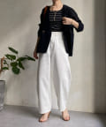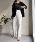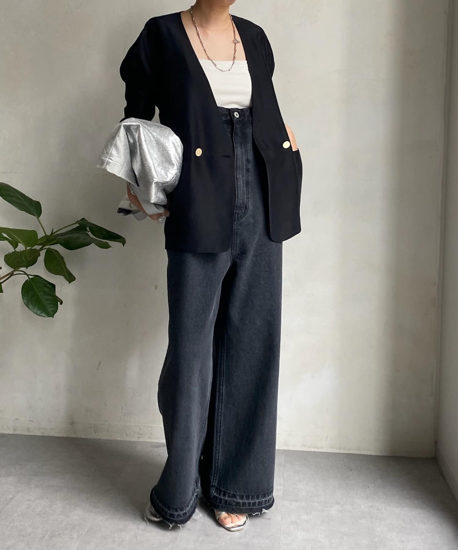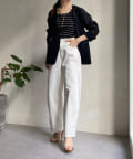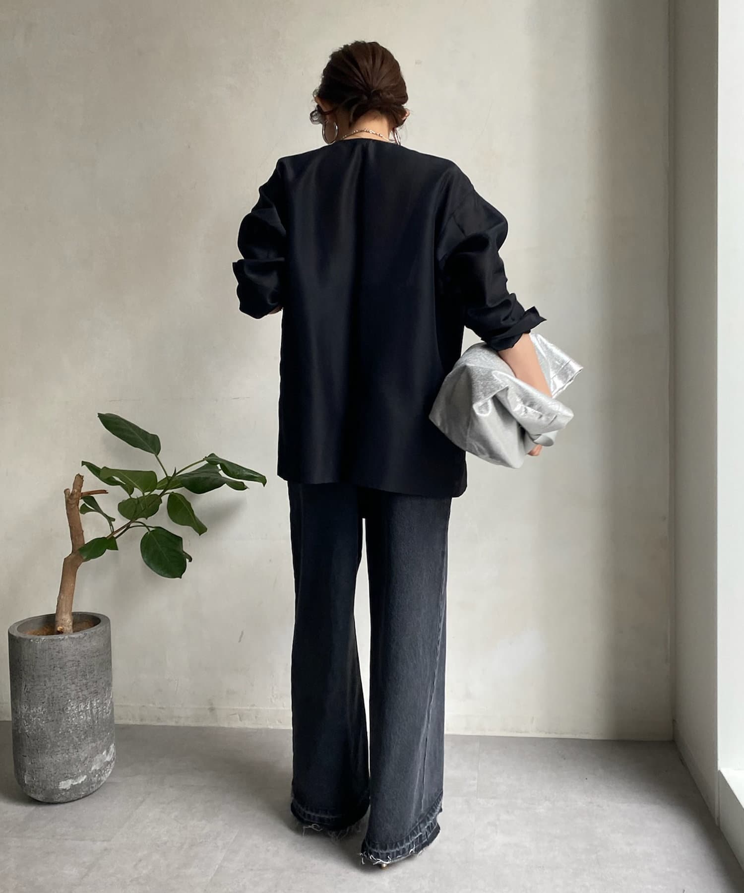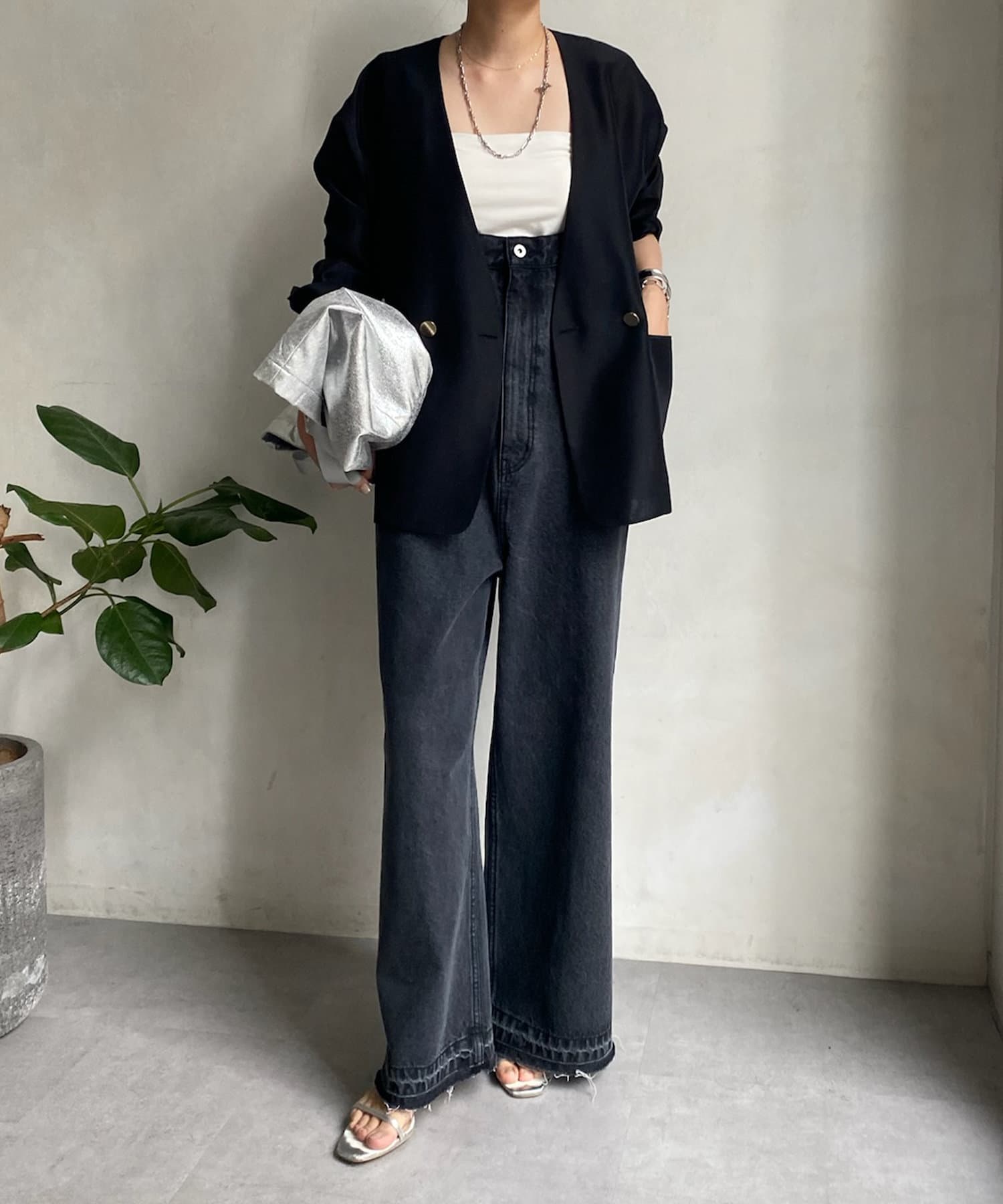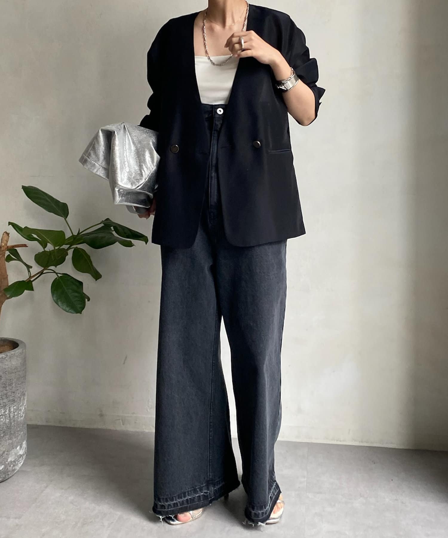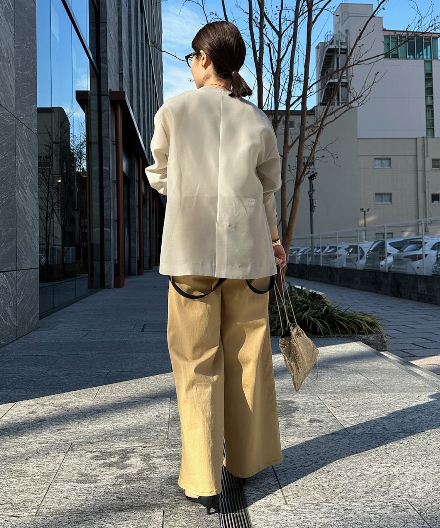キャミワンピなど女性らしいアイテムとのスタイリングや、ロゴTを覗かせてカジュアルに...などきちんと感のあるディティールだからこそ幅広いスタイリングにマッチしてくれます。