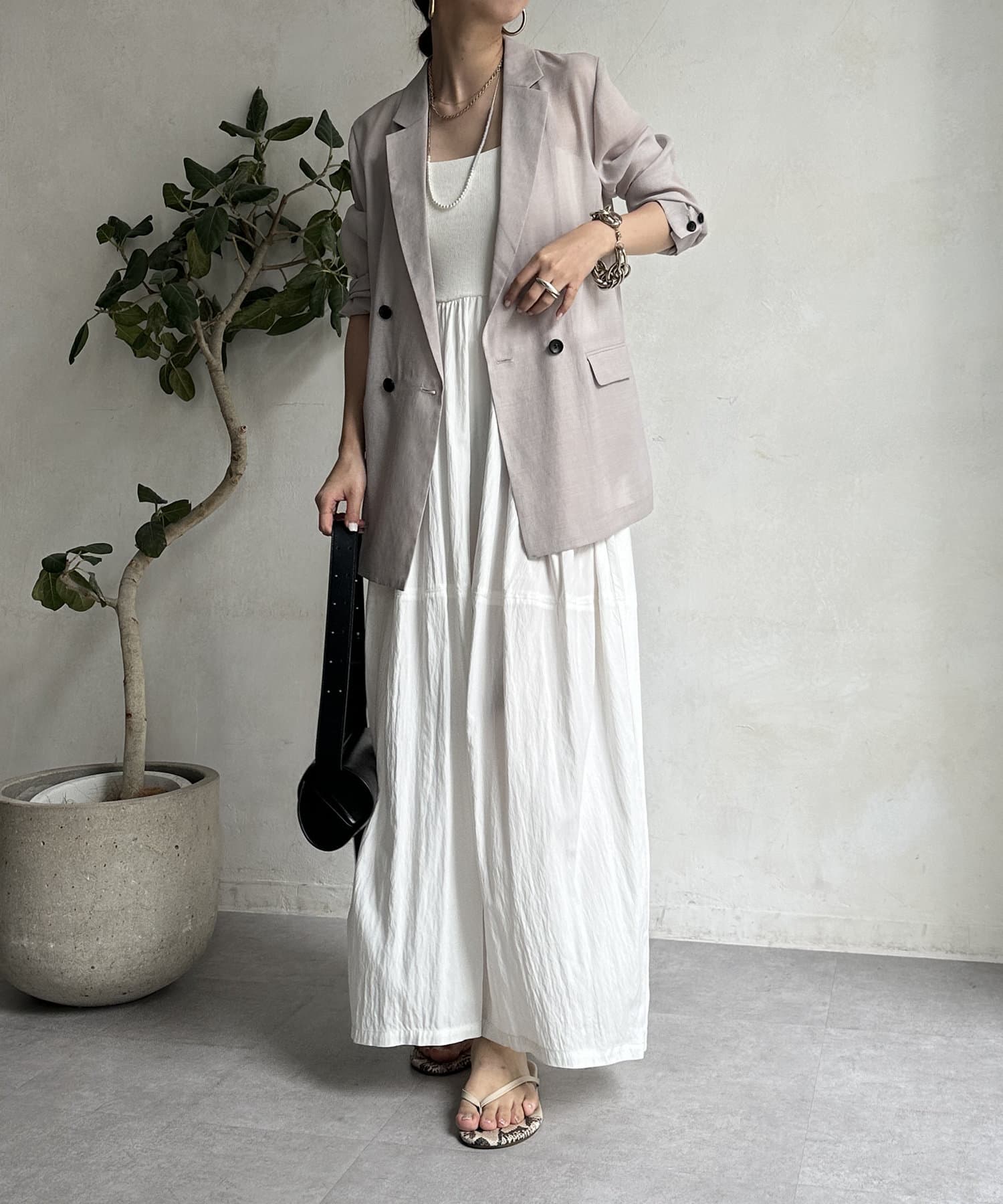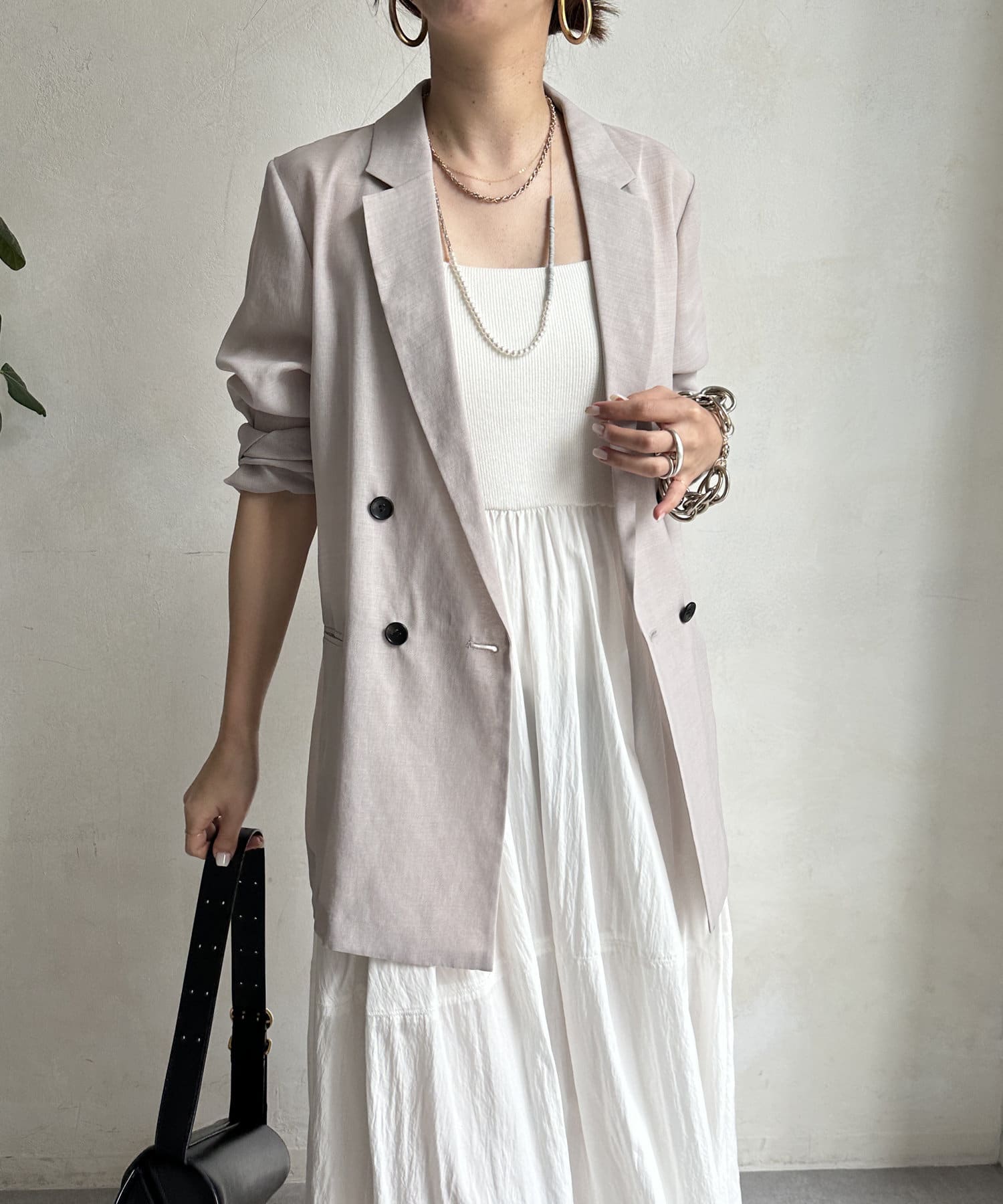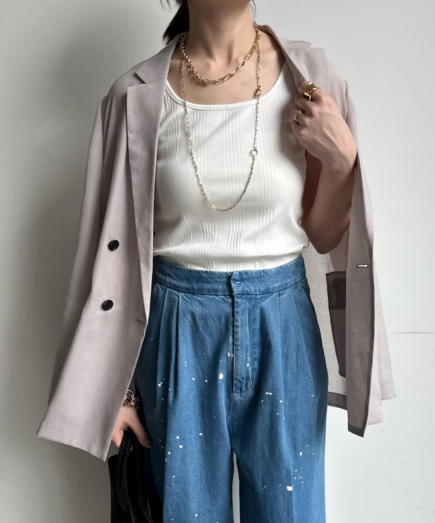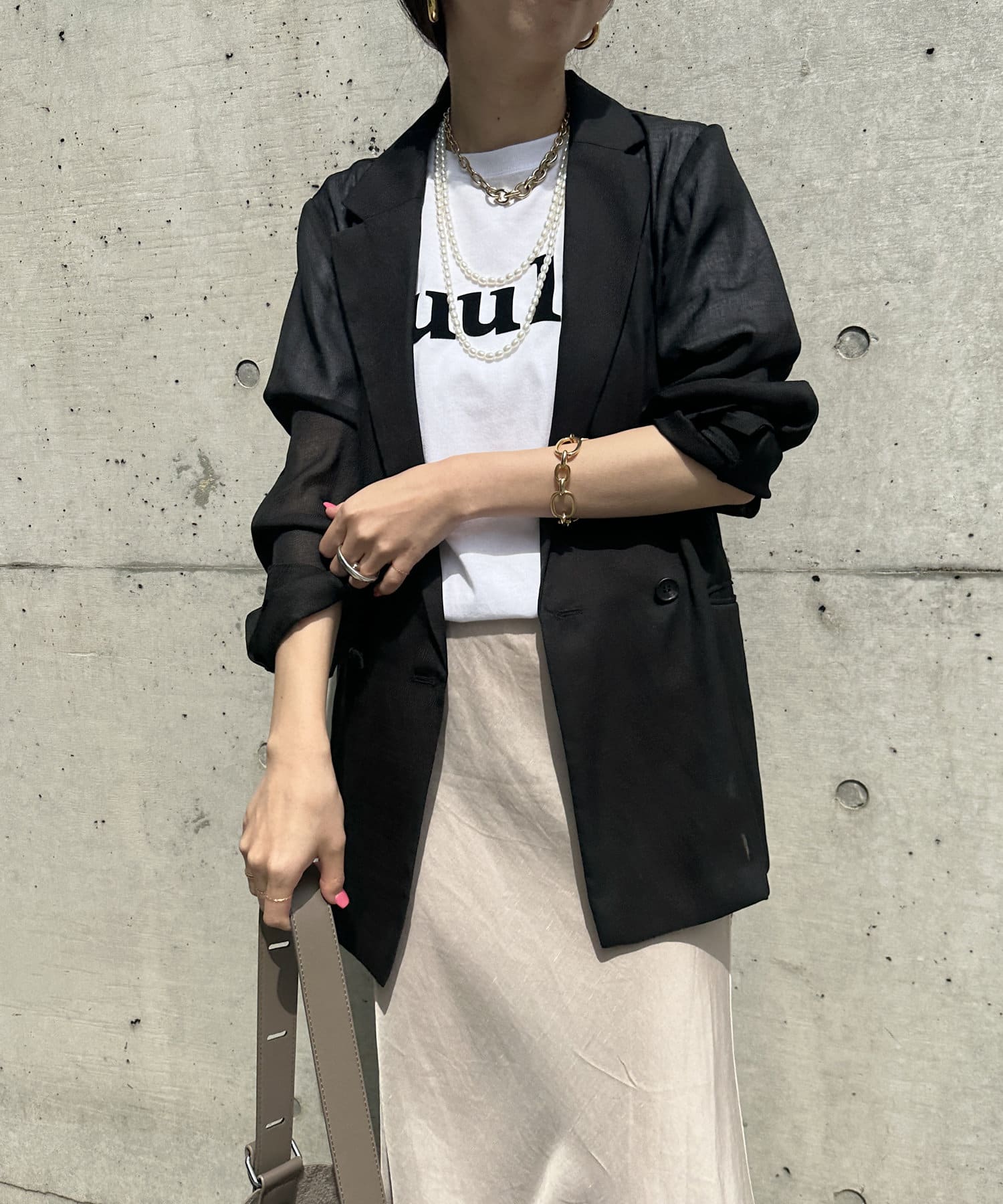 カジュアルなスタイルに程よくオトナな要素を入れたいときにぴったりな1着ですよ。