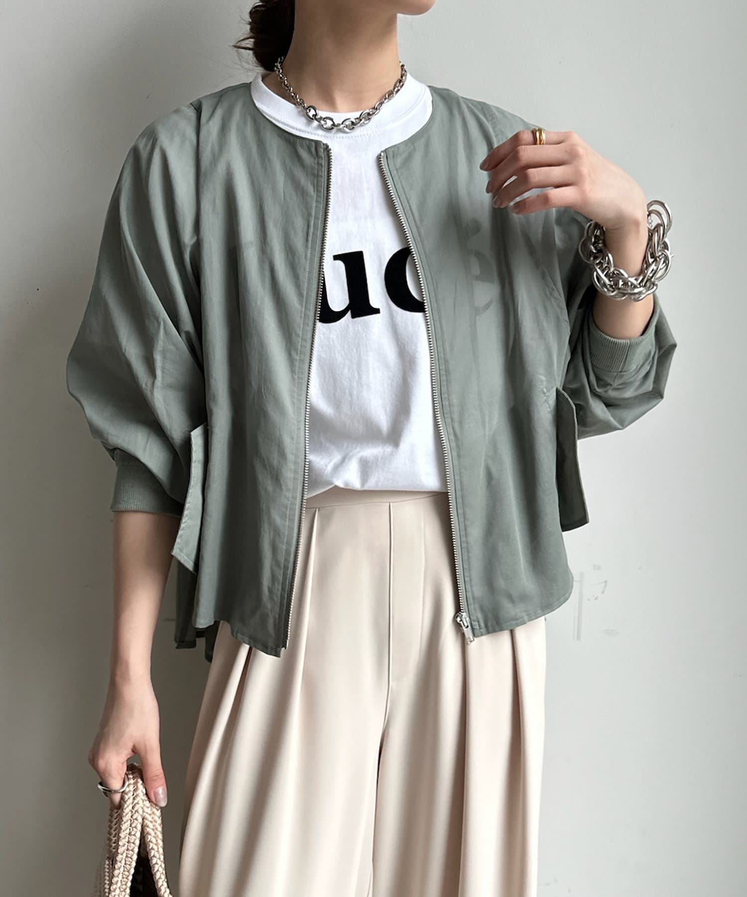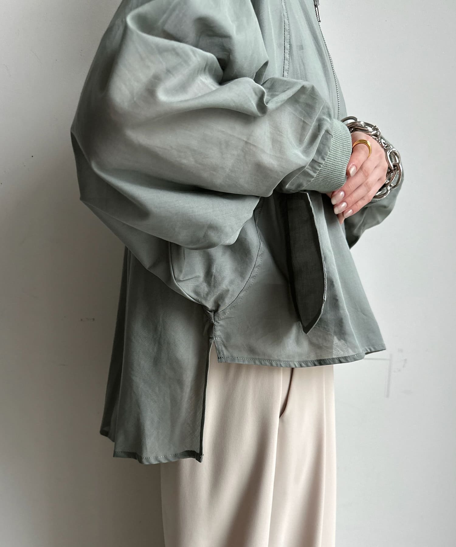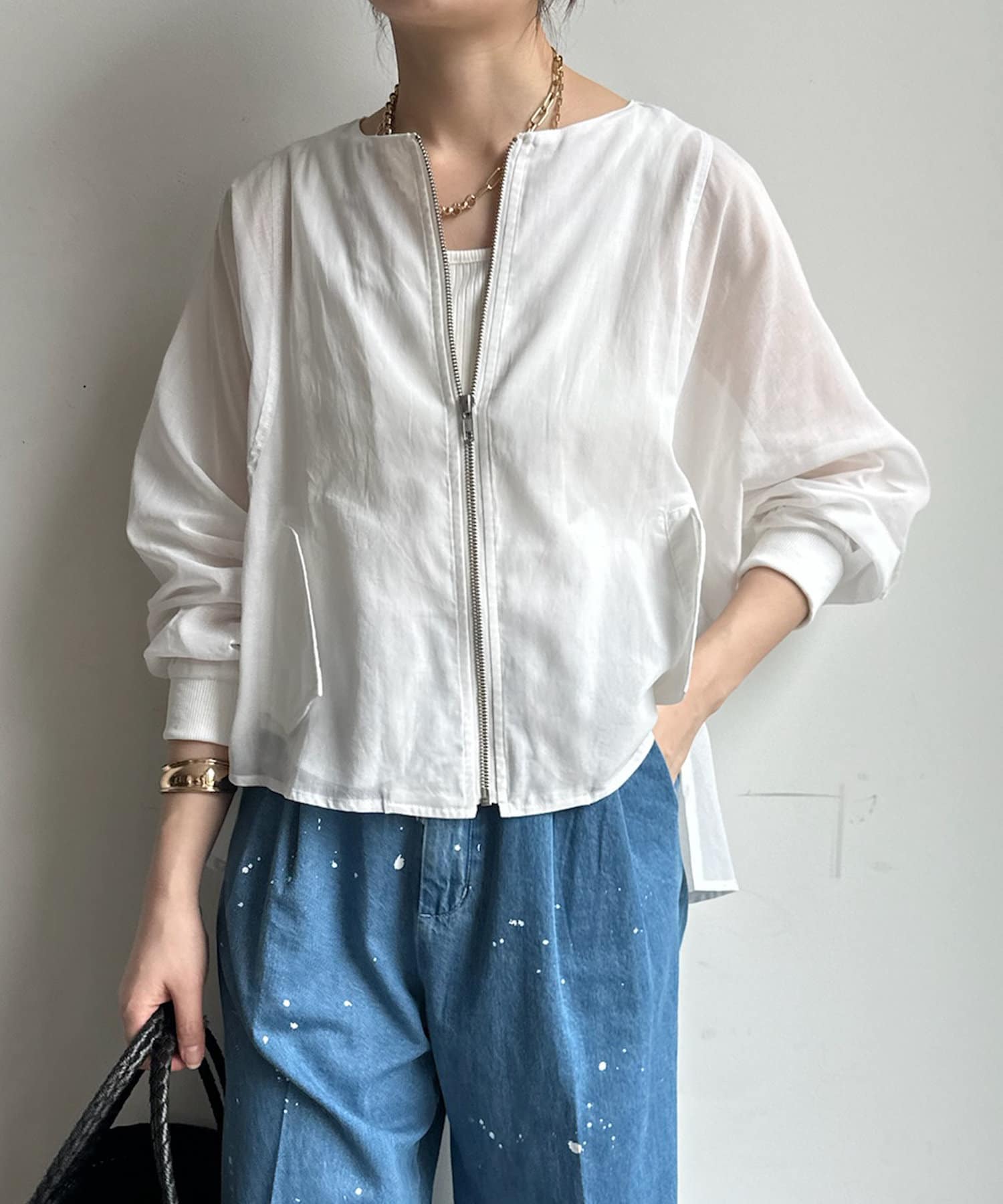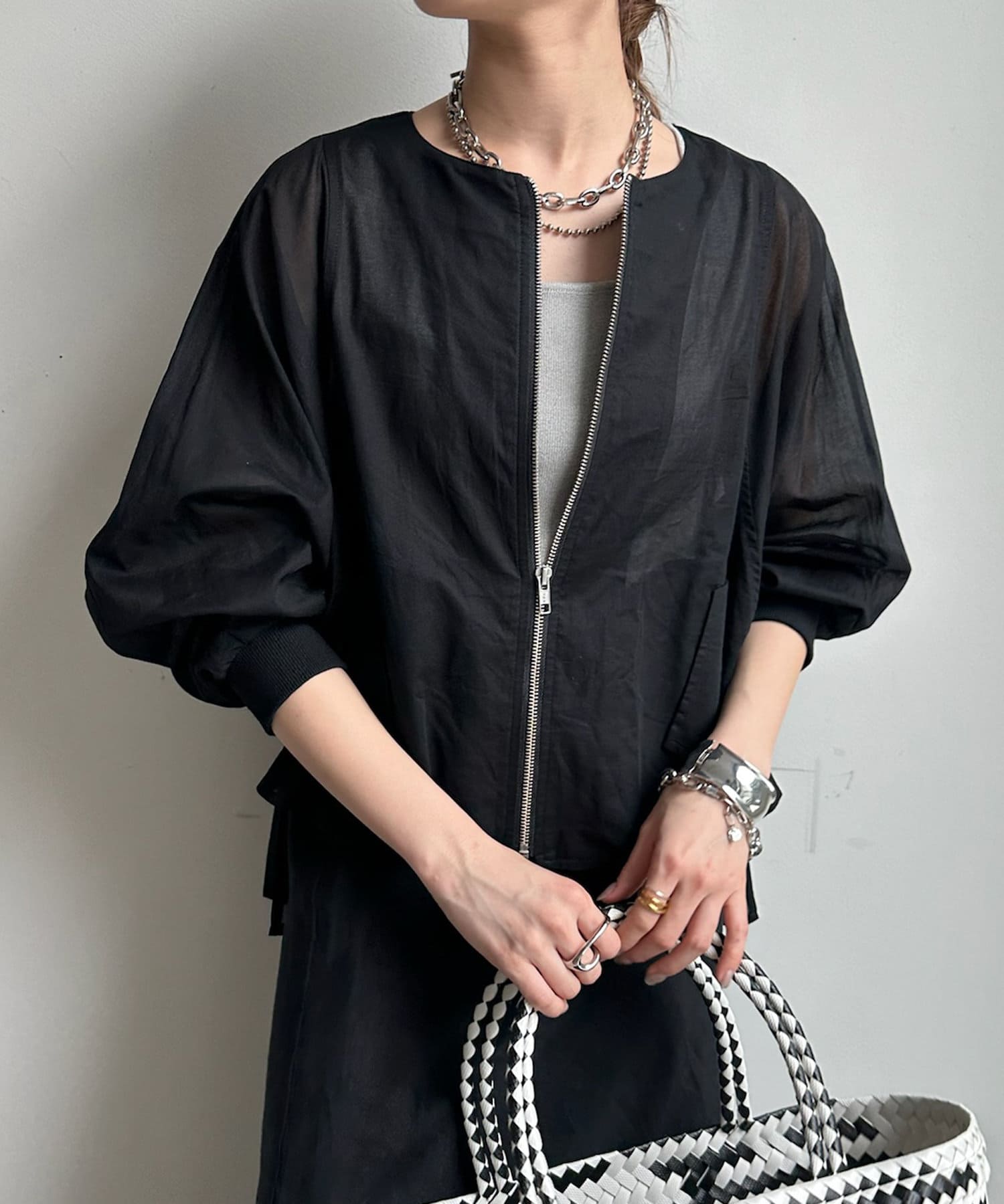 ブラウスライクなデザインに仕上げたオーガンジーブルゾン!