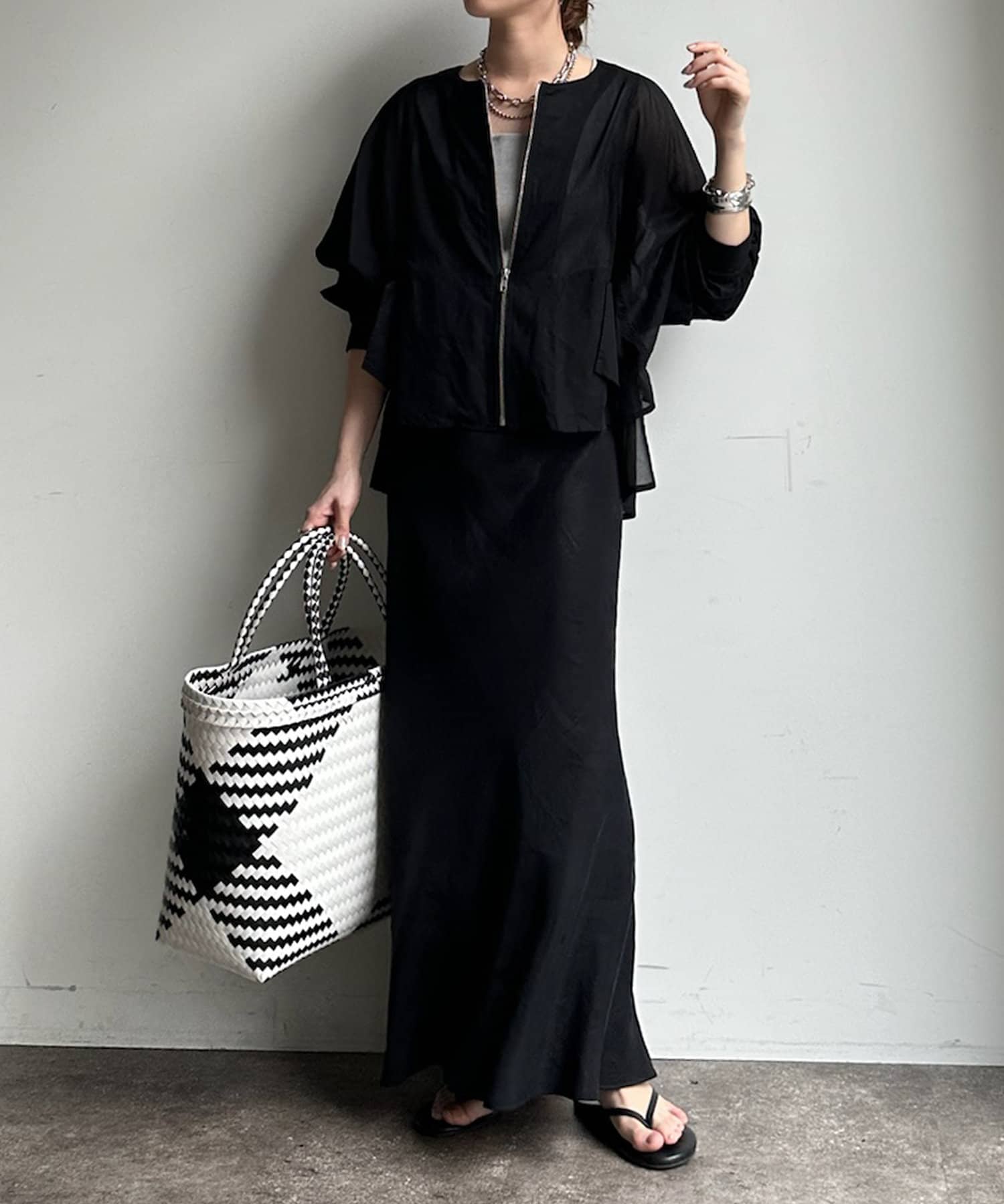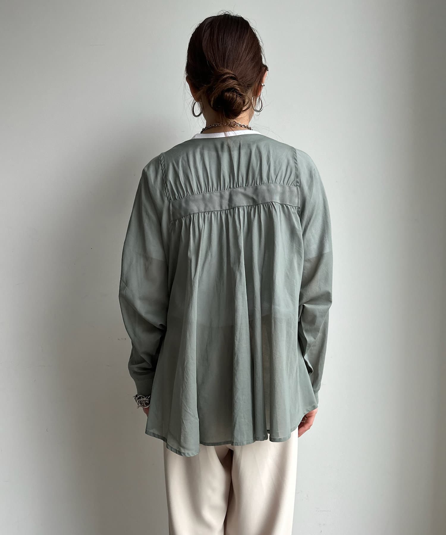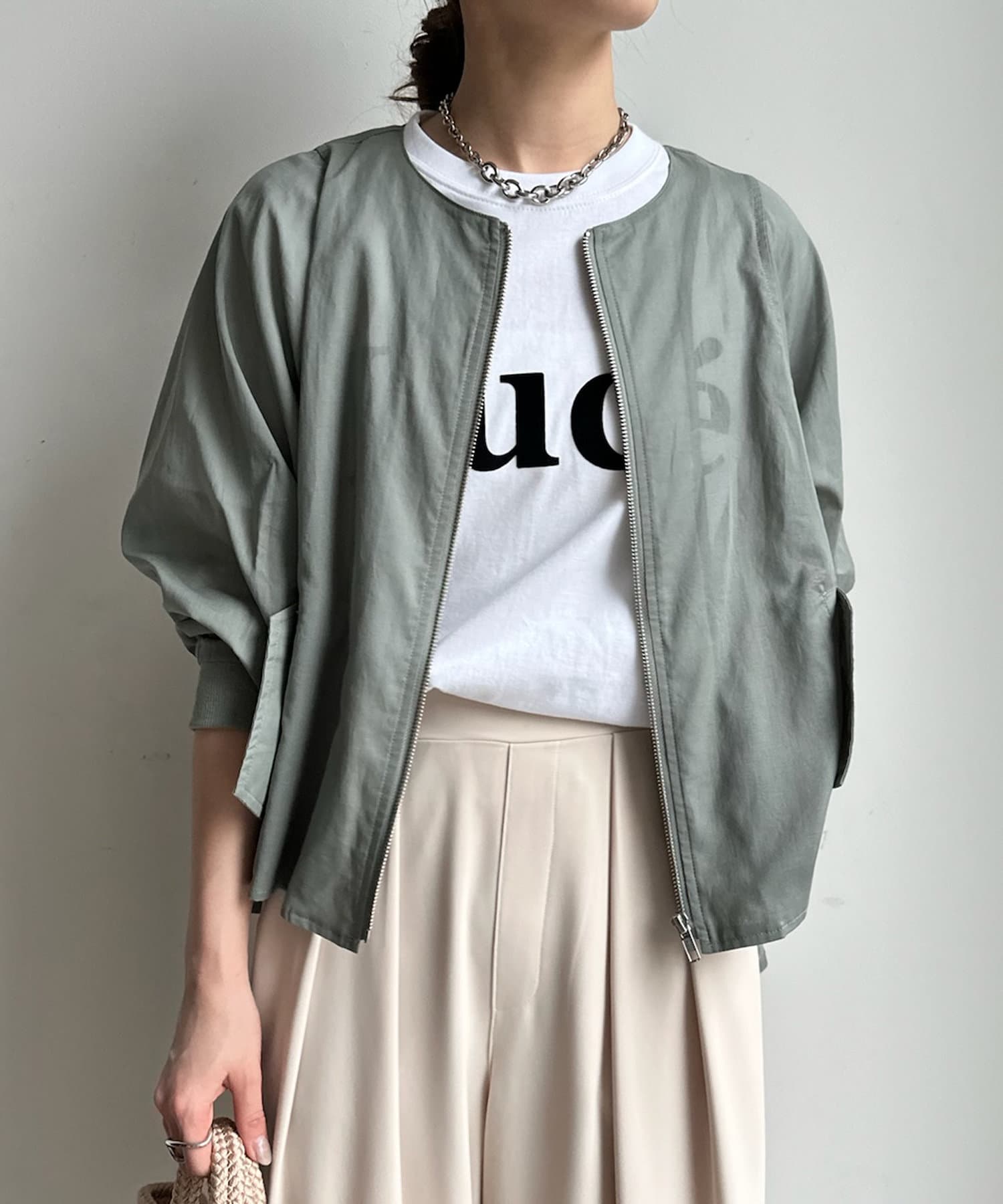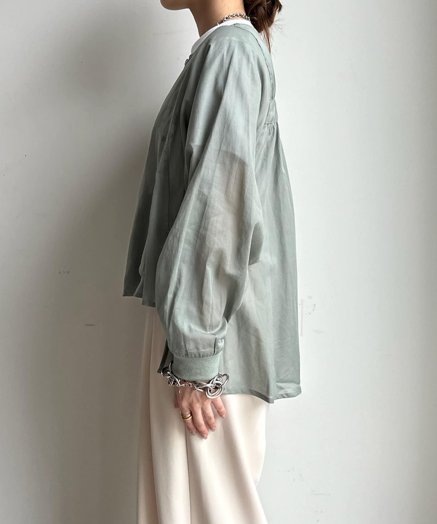 ブラウスライクなデザインに仕上げたオーガンジーブルゾン!