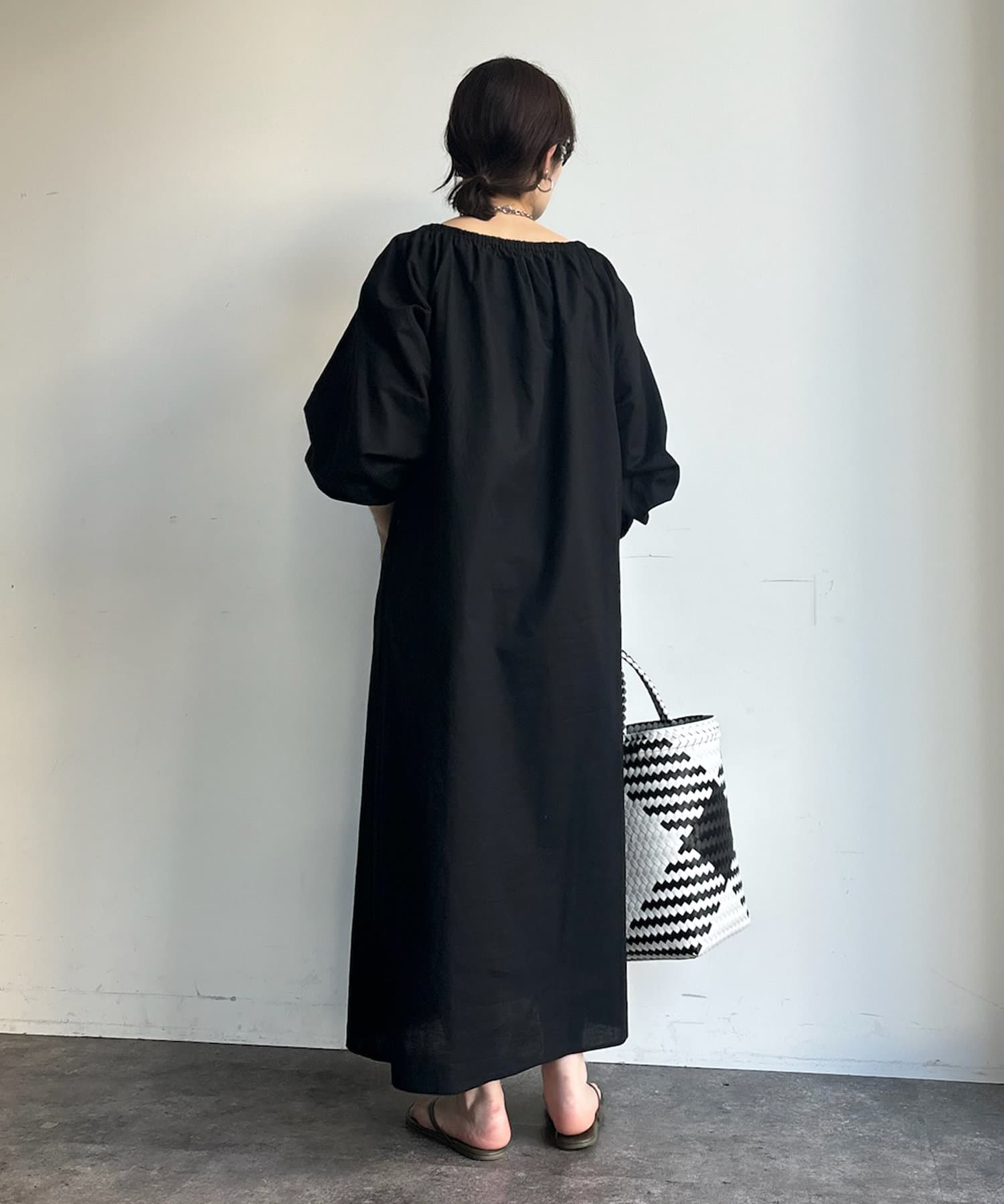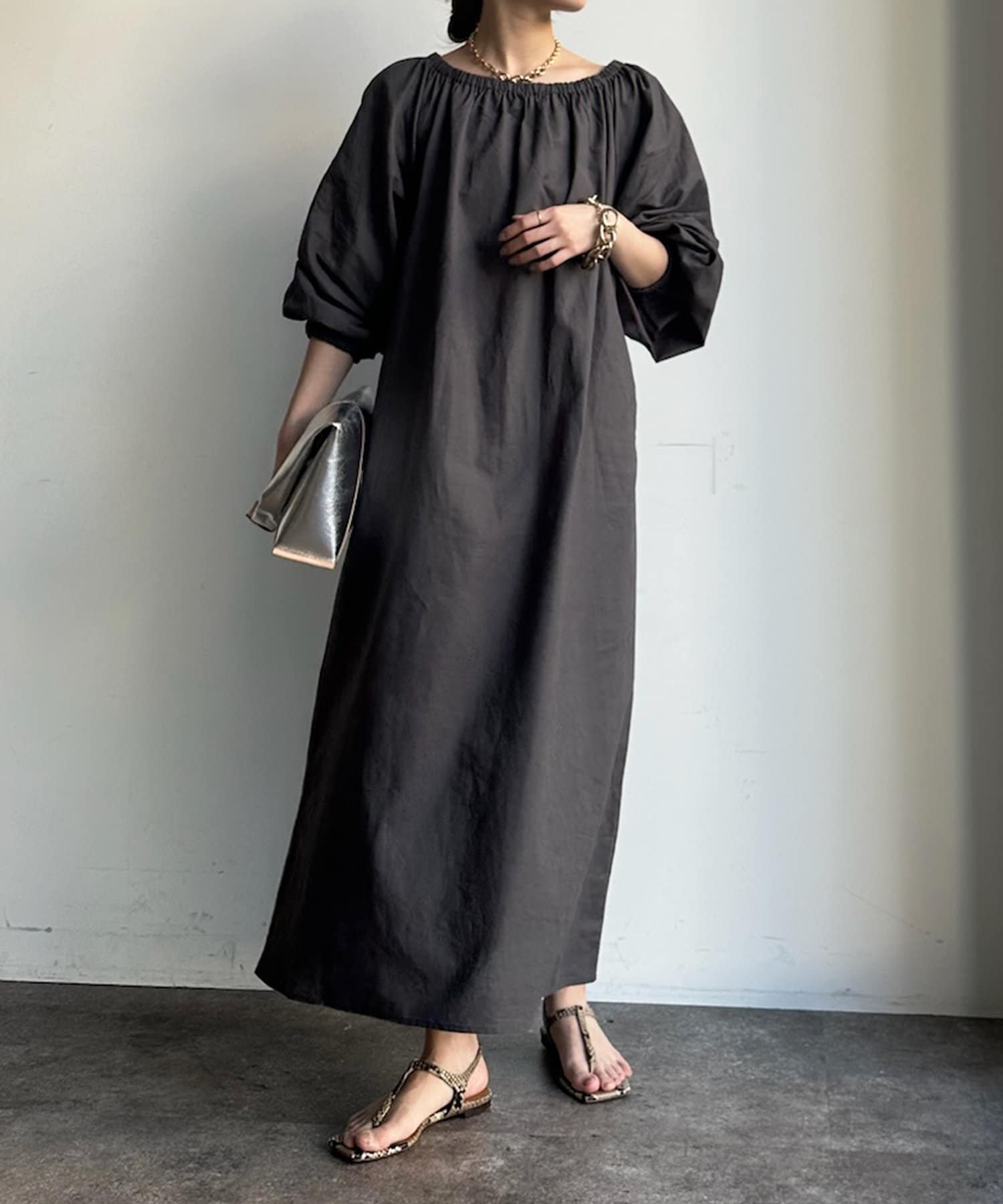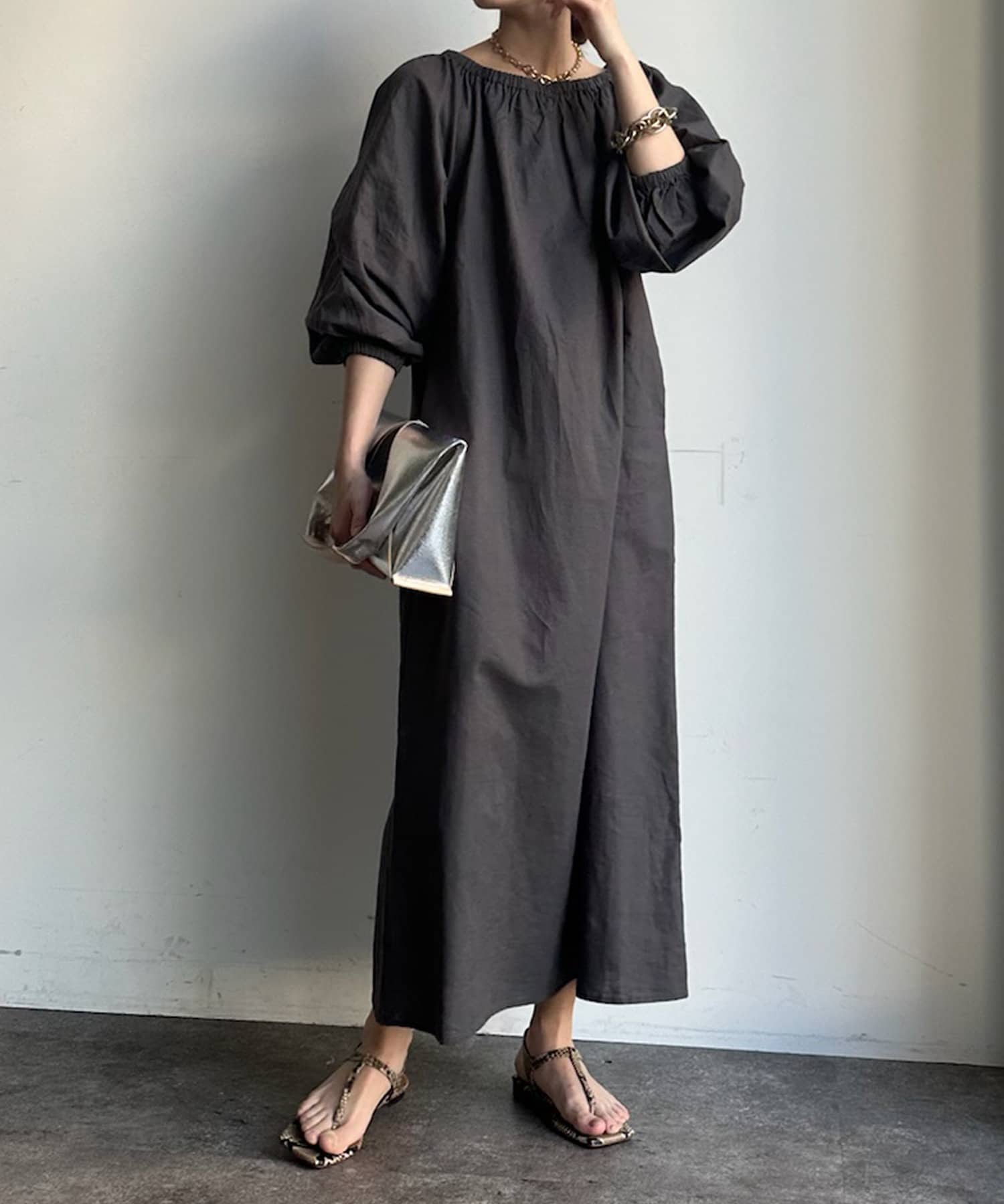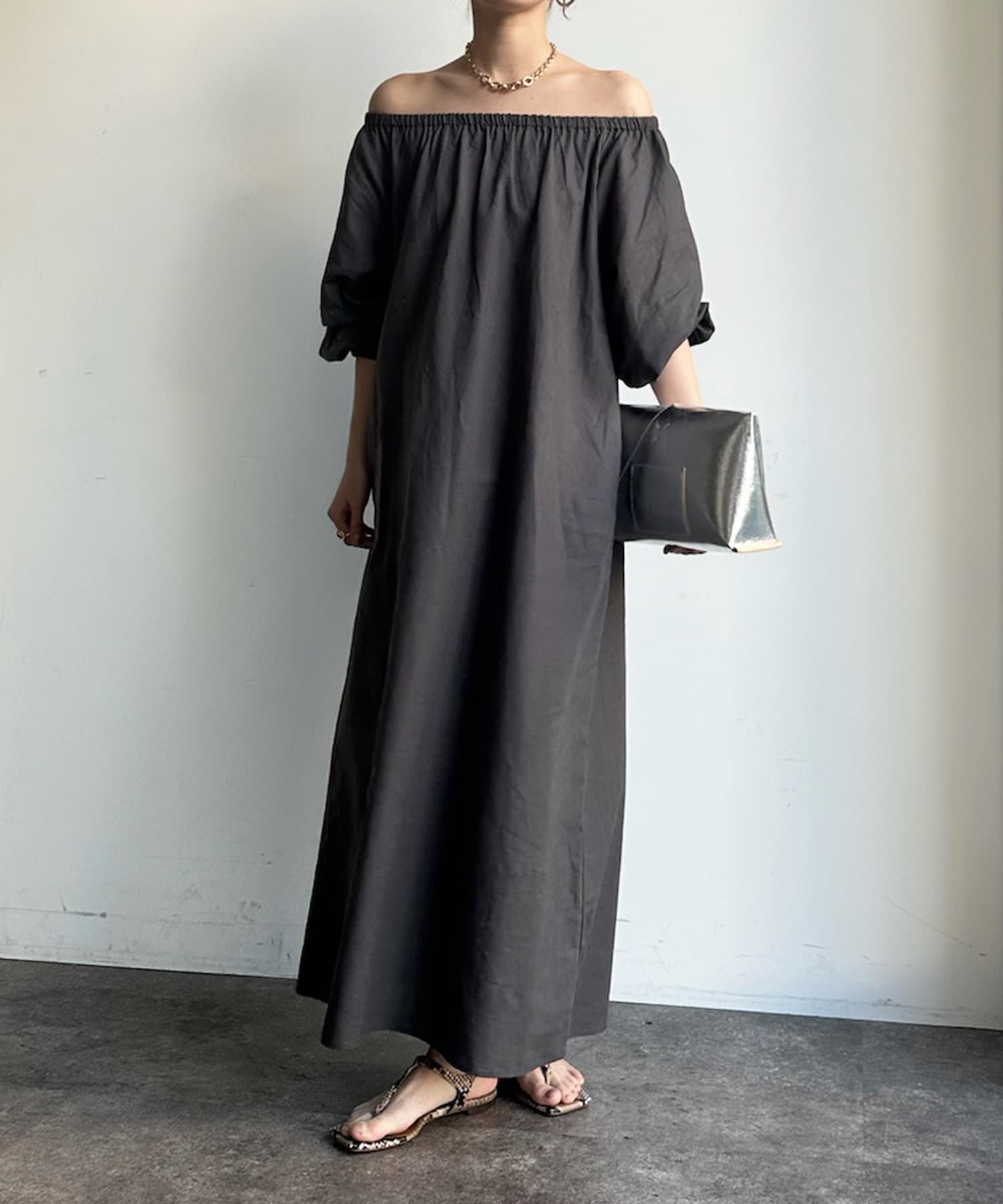涼し気な麻混素材で、さくっと着るだけで春夏らしい印象を与えてくれるワンピース。
