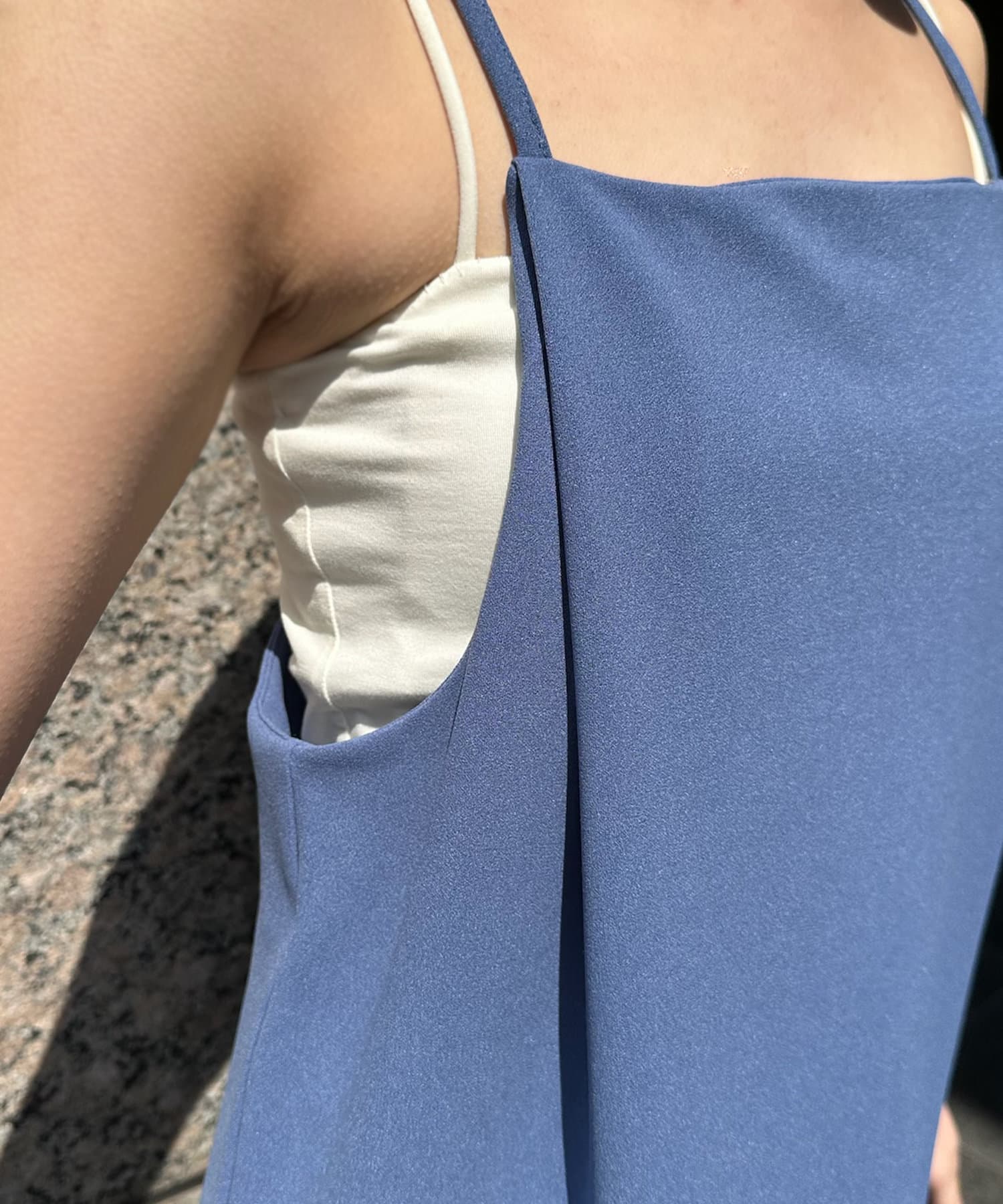 フロントサイド部分にタックを寄せ、すとんと綺麗に落ちるシルエットに。