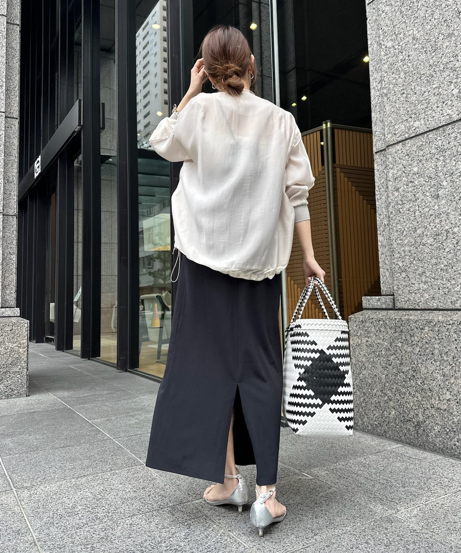 Iラインですっきりとした見た目ながらも、身体のラインを拾わずに着られるのがうれしいポイントです。