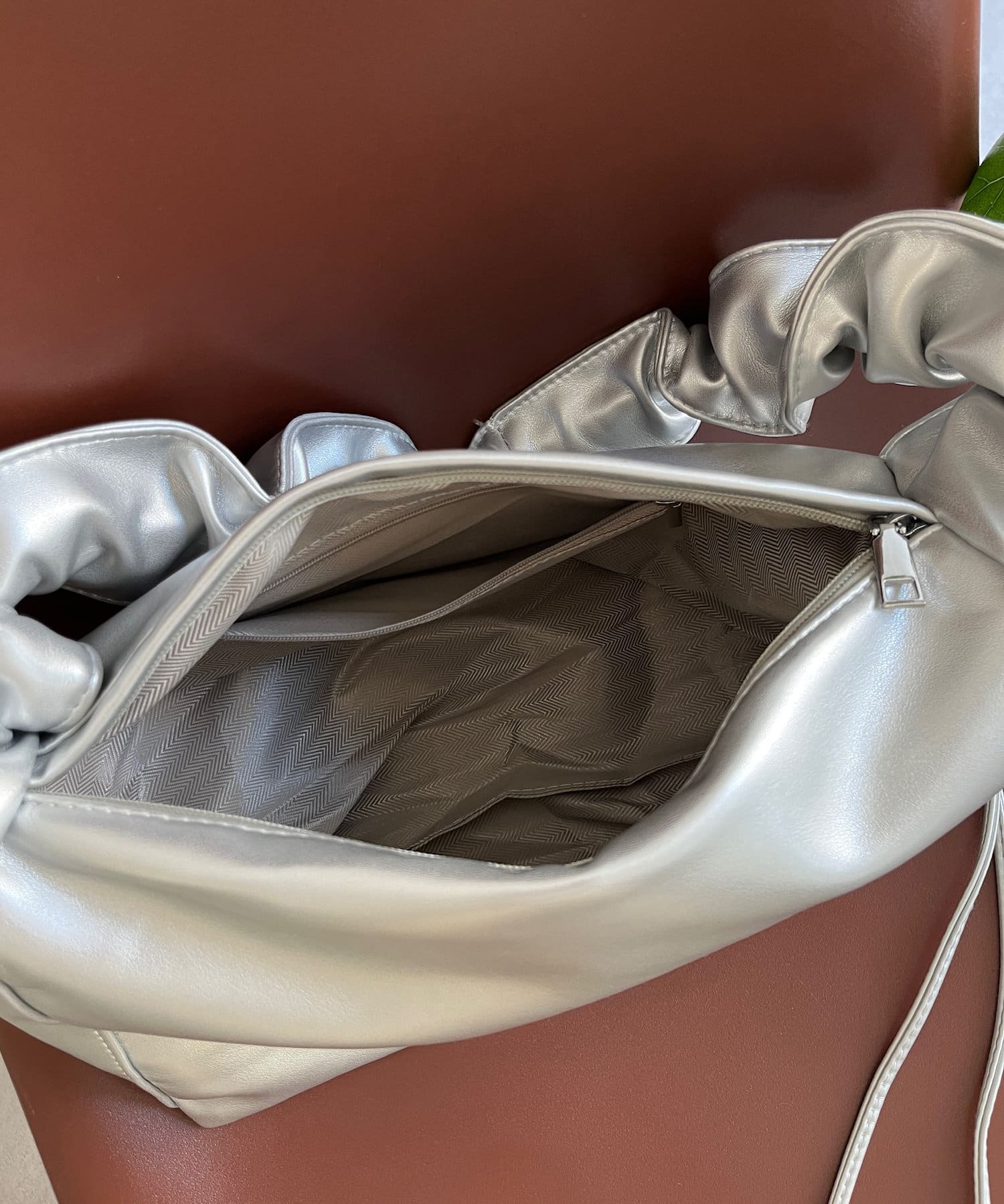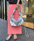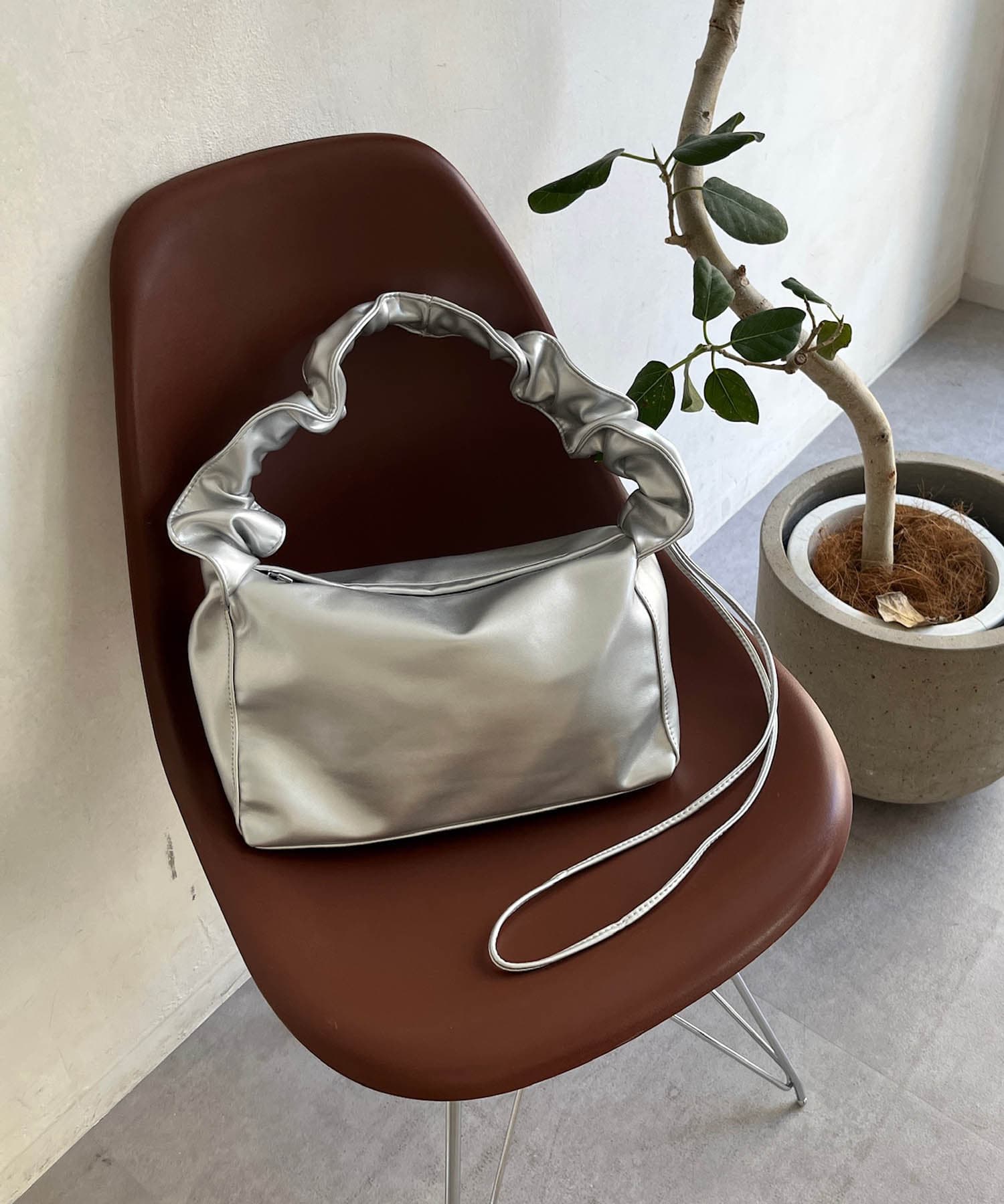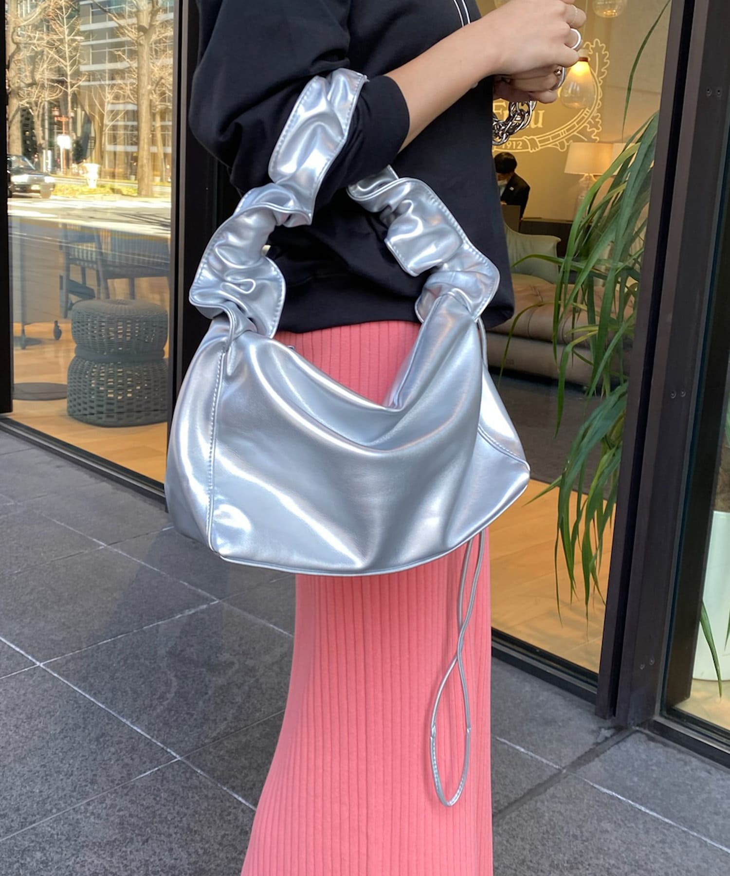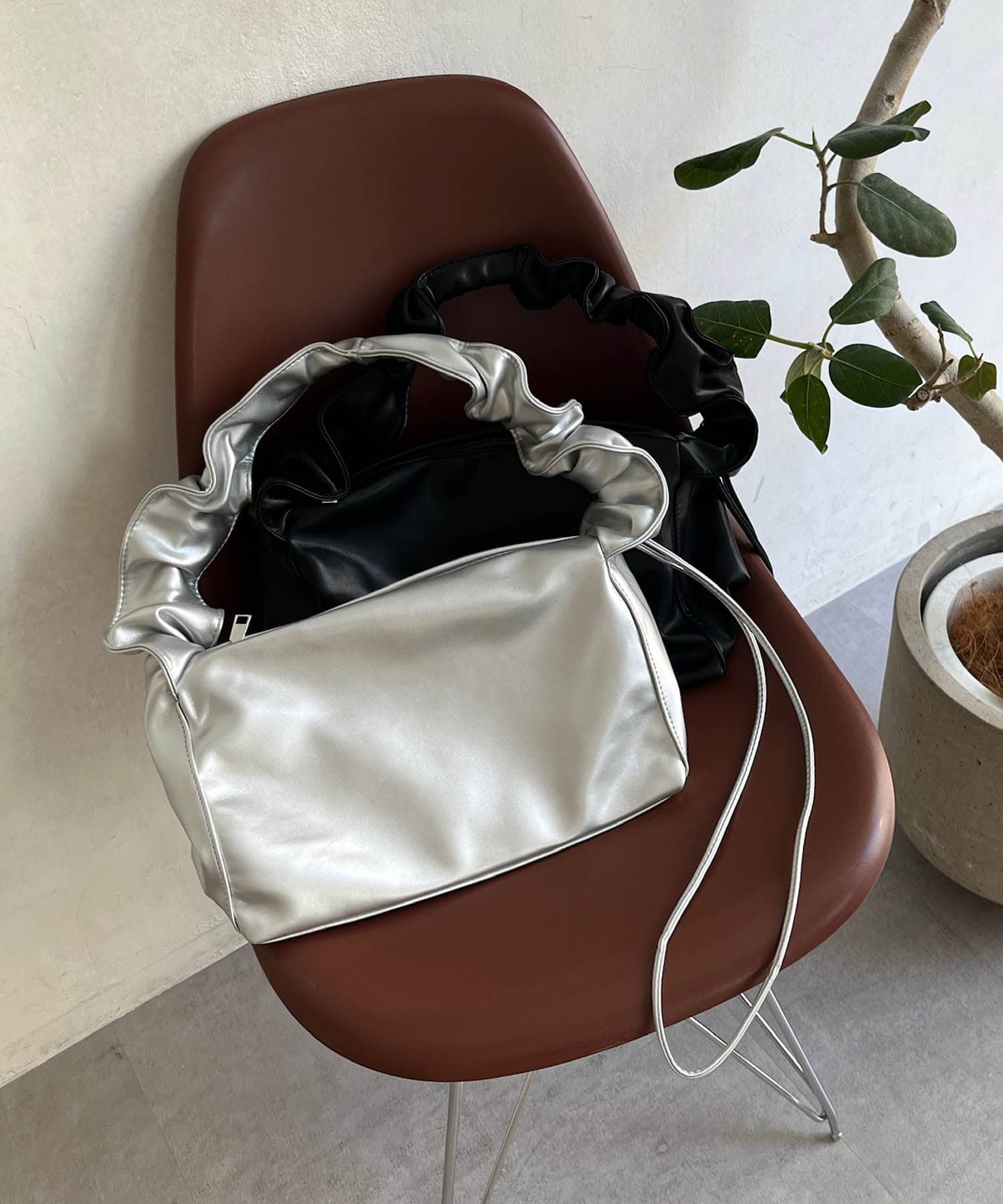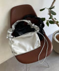 サイドにあしらったドロストを調整することで、持ち手にくしゅっとフリルのようなギャザーを寄せられます。