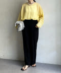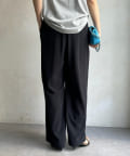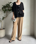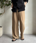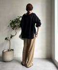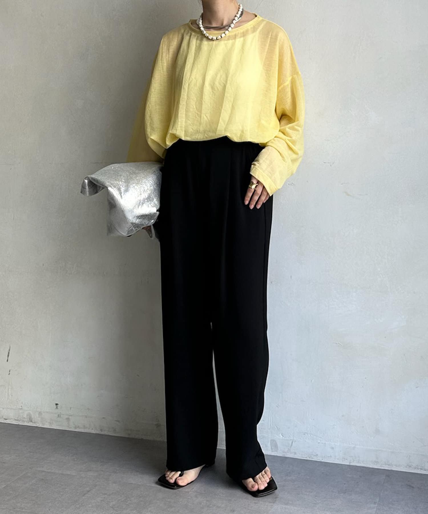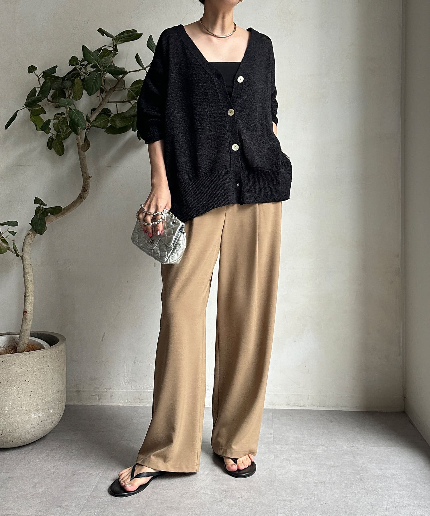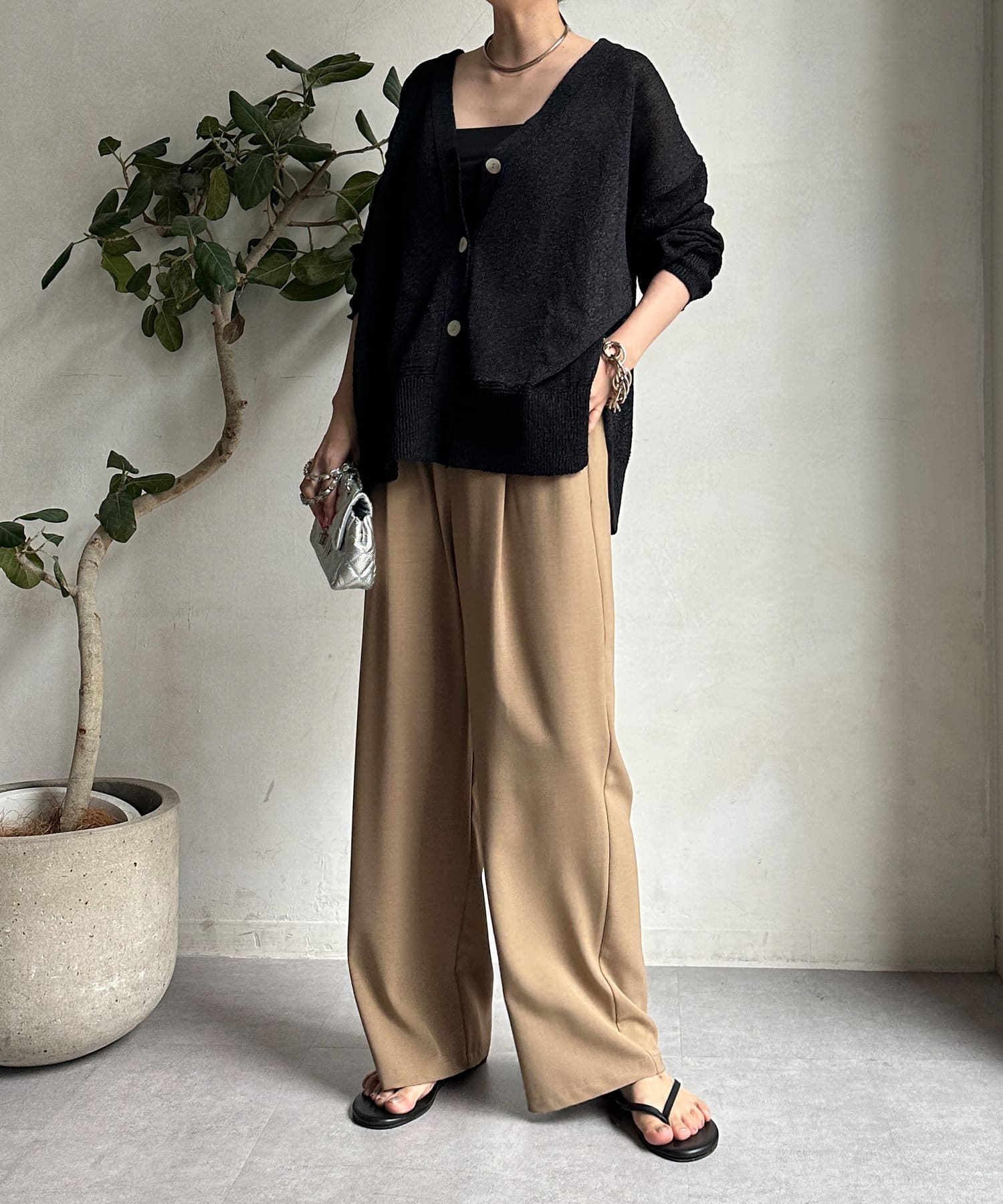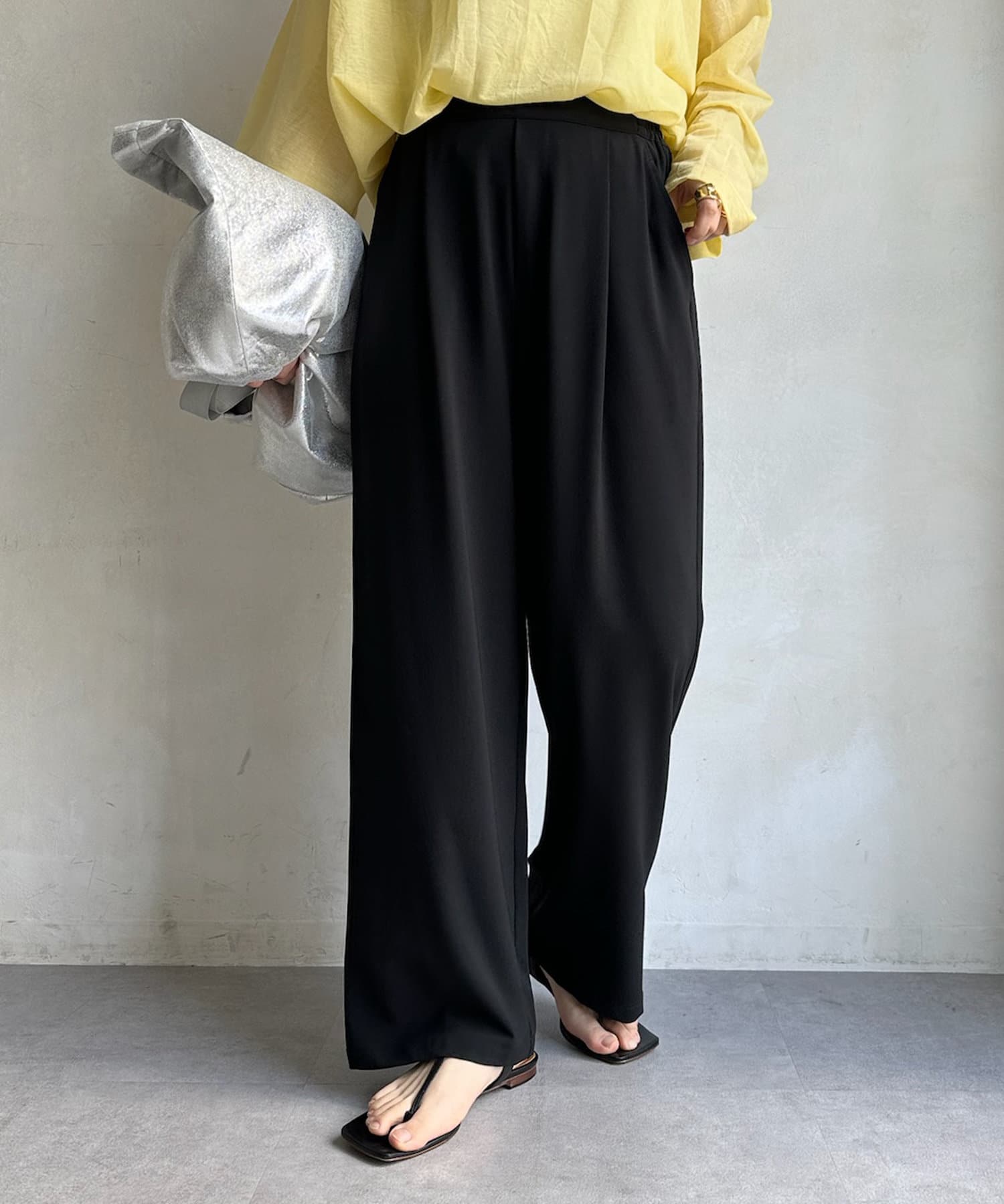 ワイドなシルエットは、脚のラインを拾わずイージー。