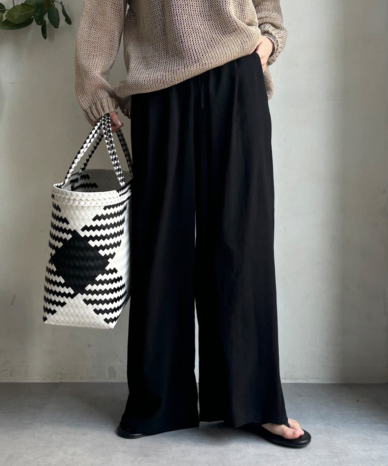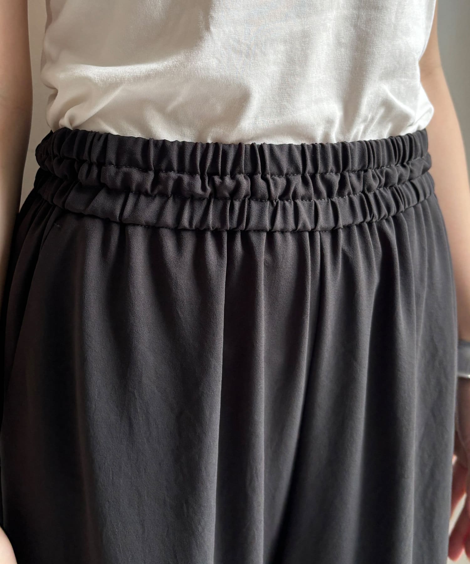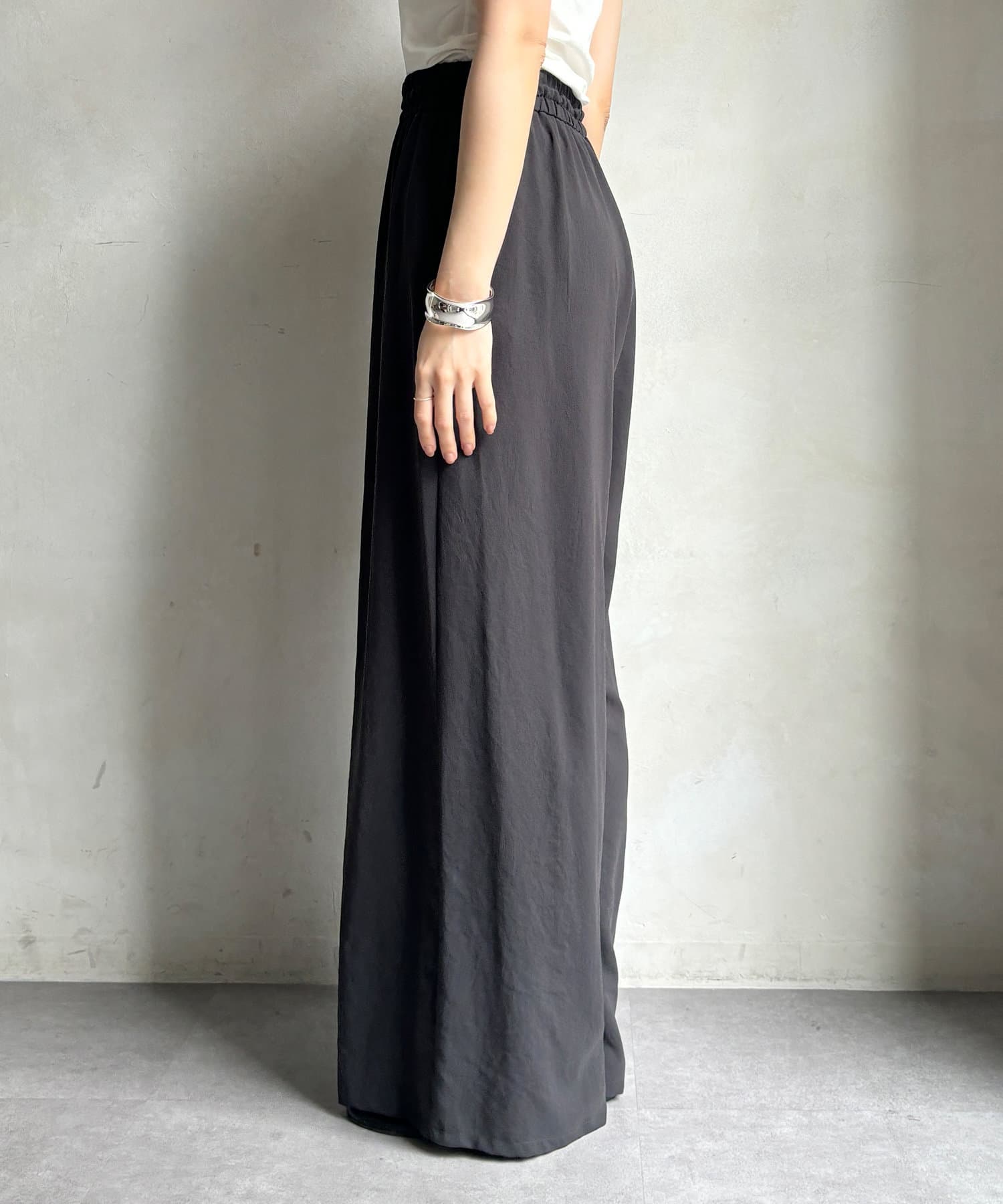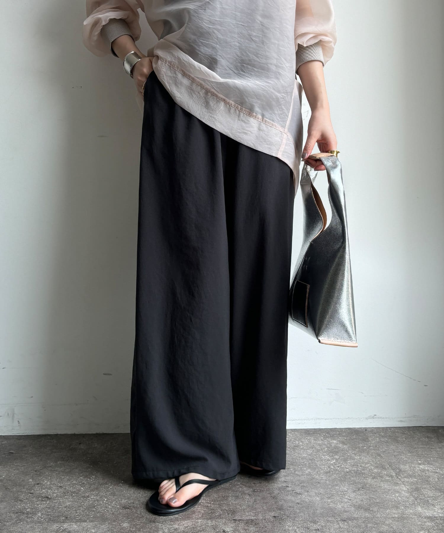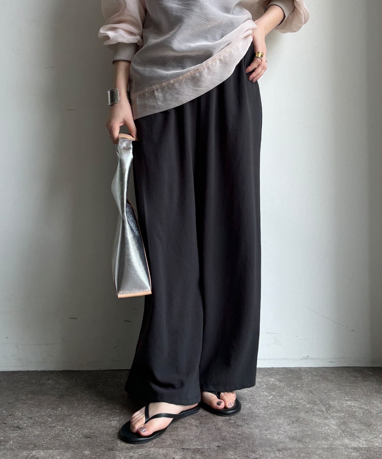 縦にも横にも伸びのいい、2wayジョーゼットの素材を使用したイージーパンツ。