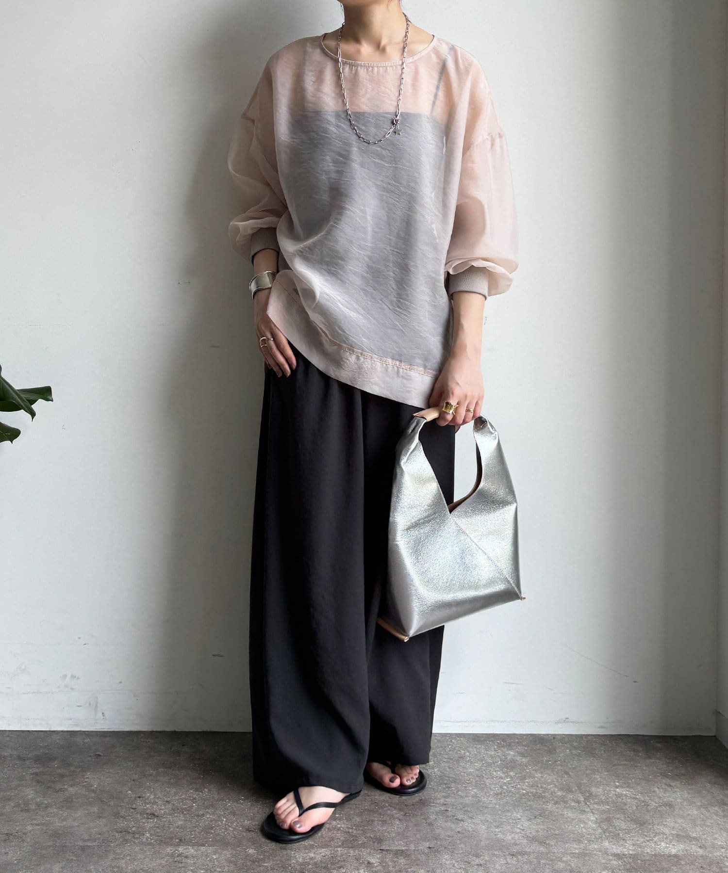ワイドシルエットでありながらもすとんと落ちるきれいなシルエットが魅力的です。