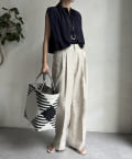 ベーシックカラーのオフホワイトとネイビー、ベージュはさりげない色のストライプデザインに