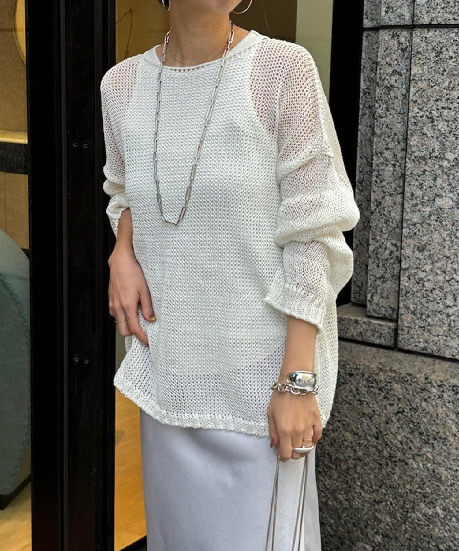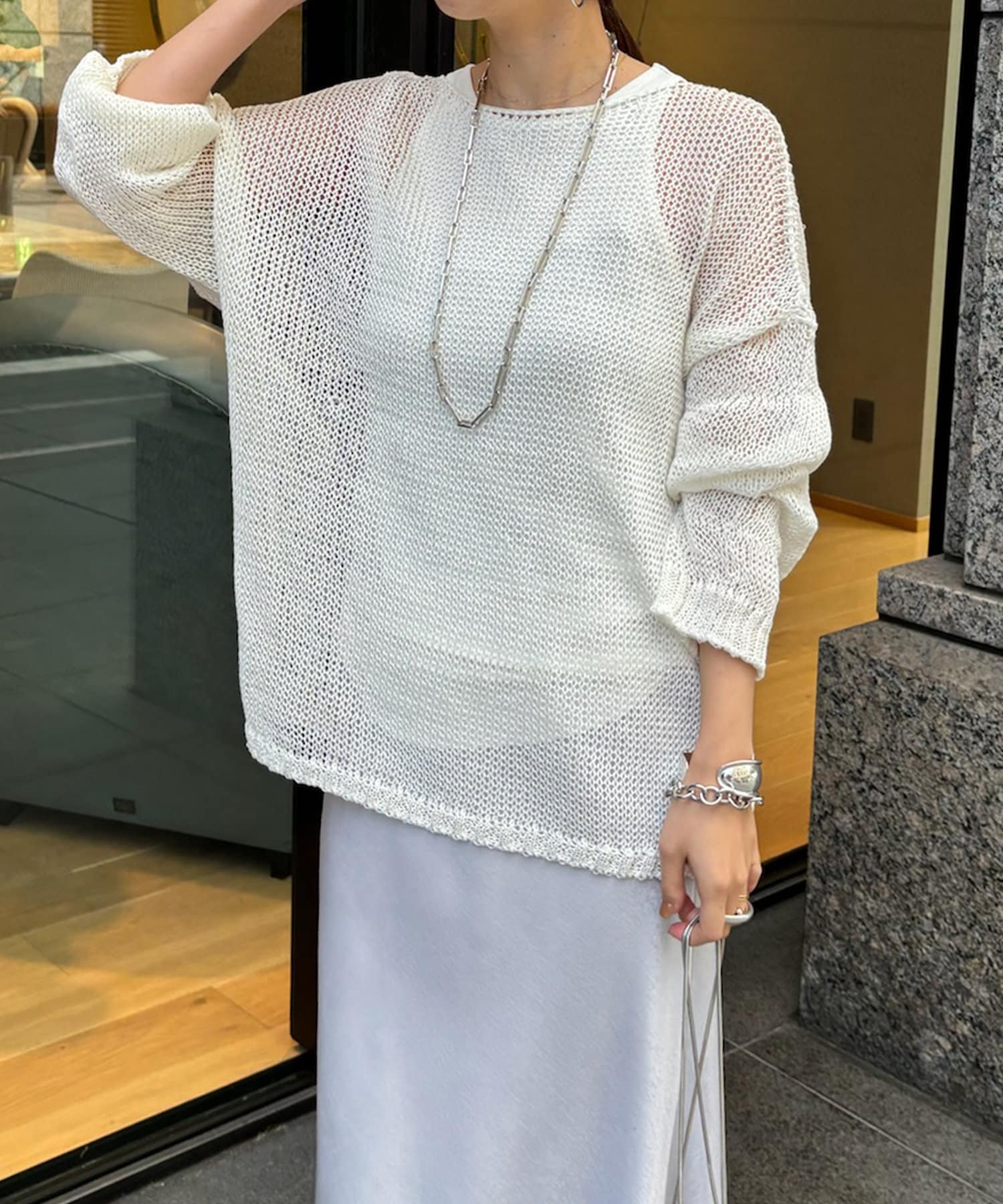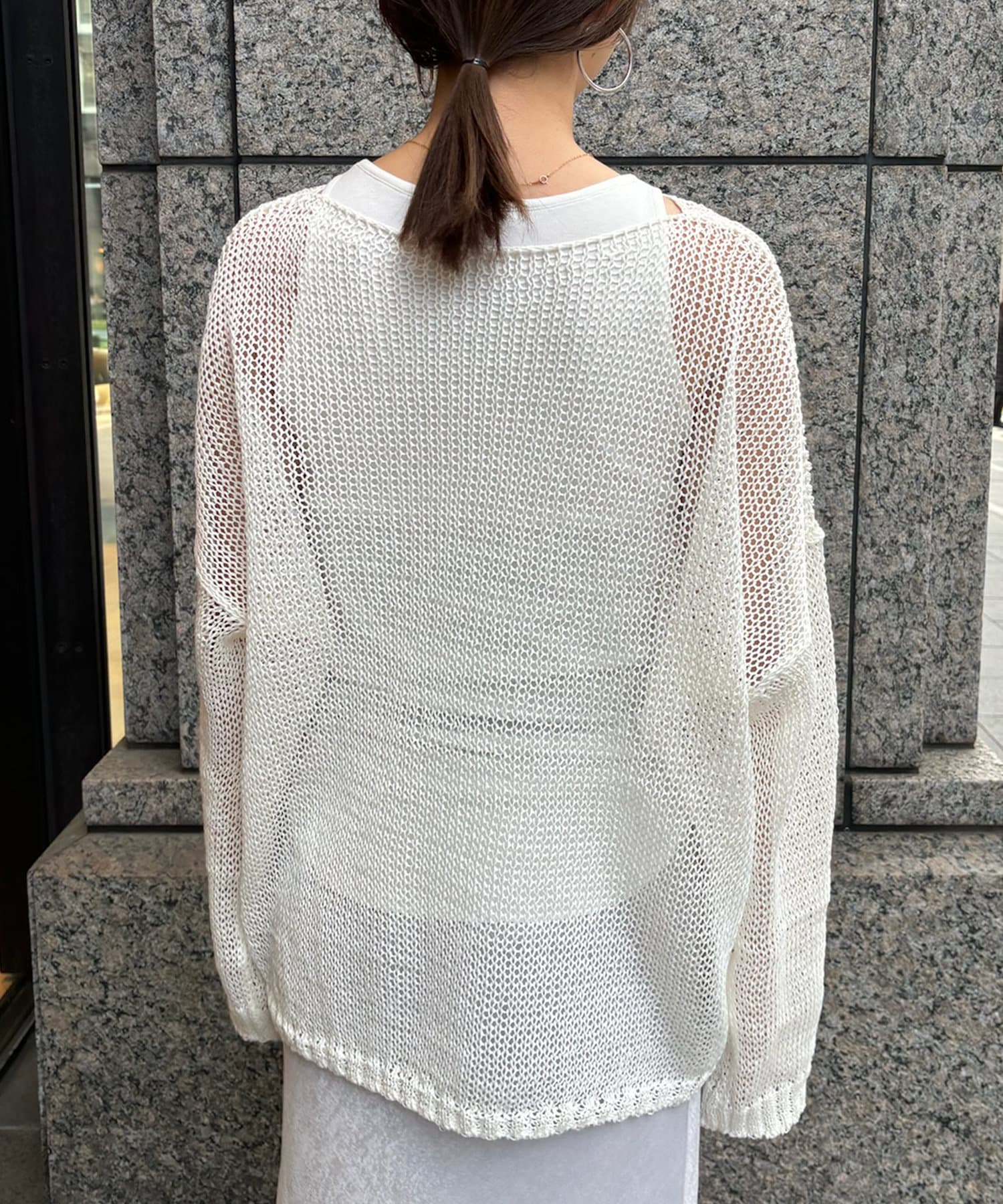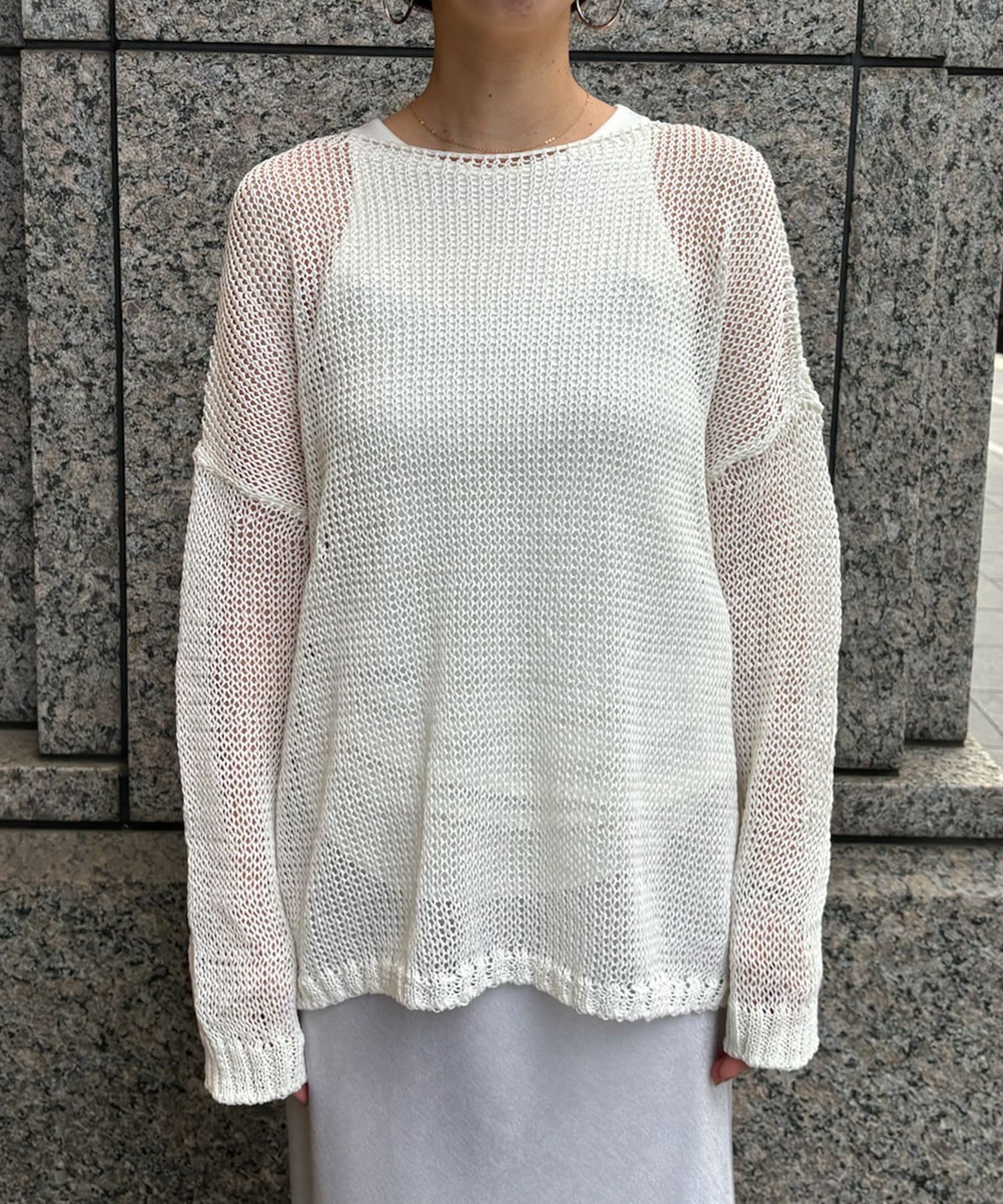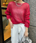 【真夏にも着られる!】メッシュルーズニット