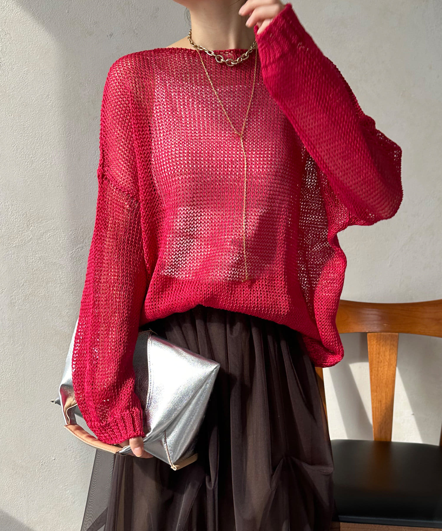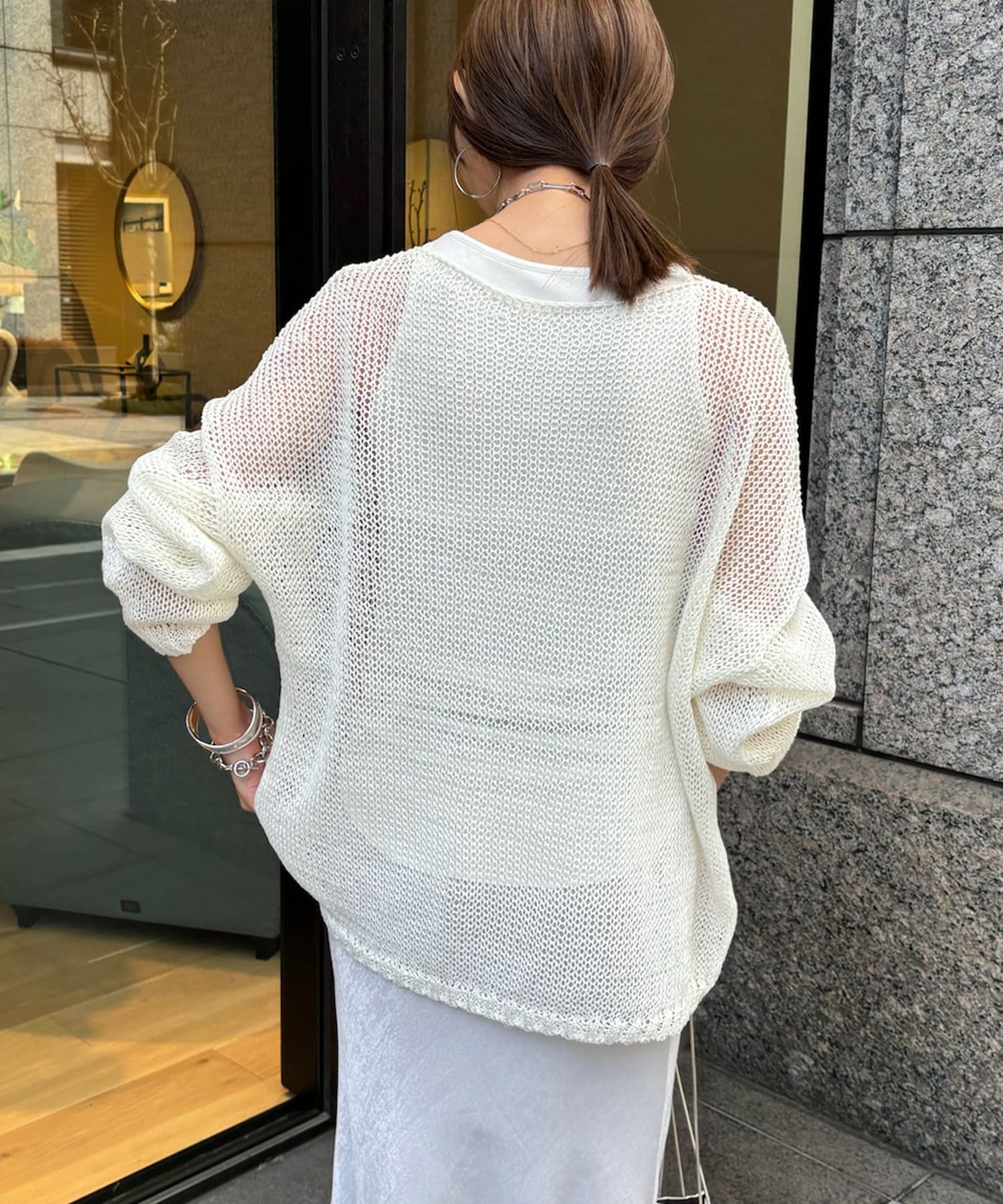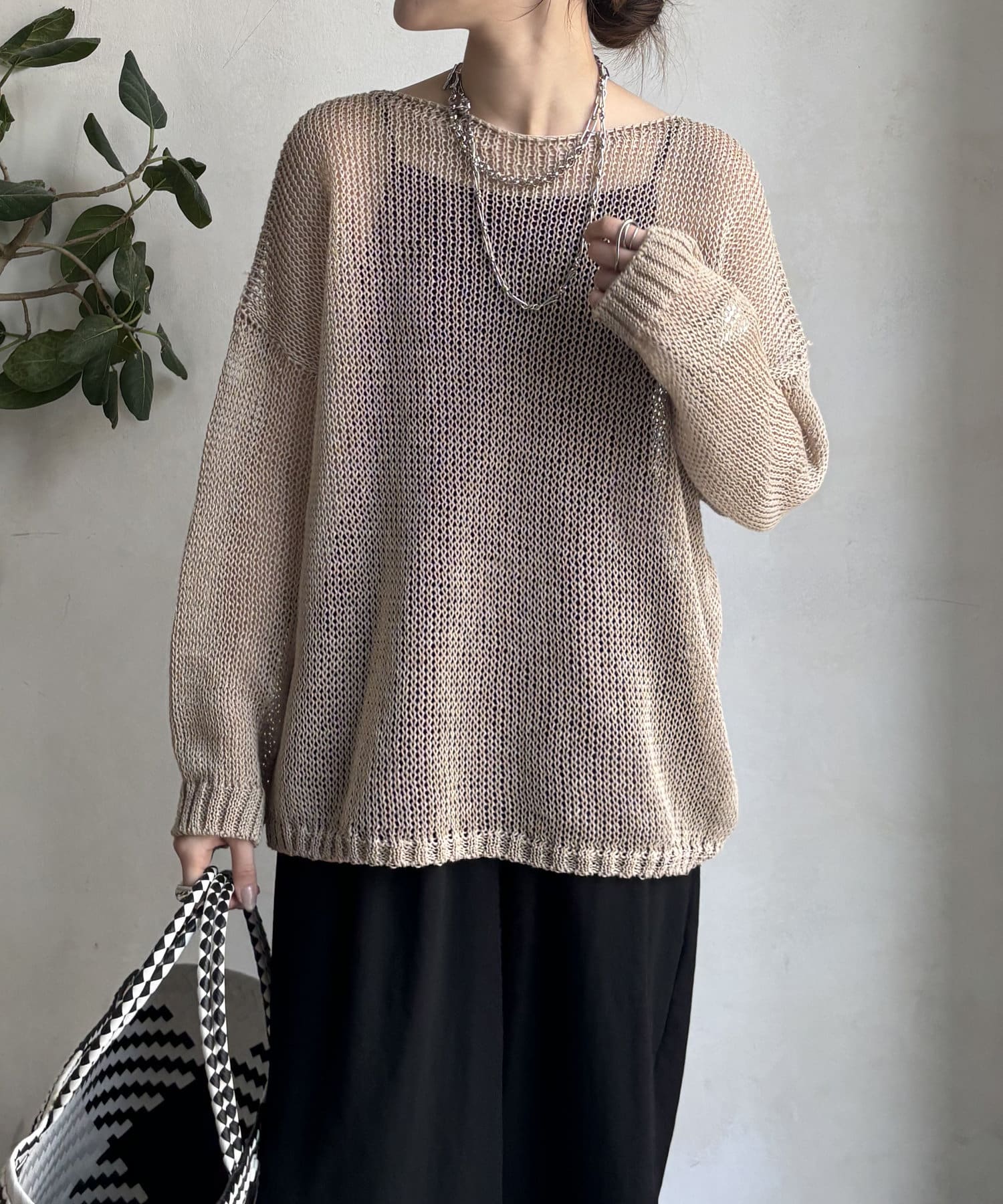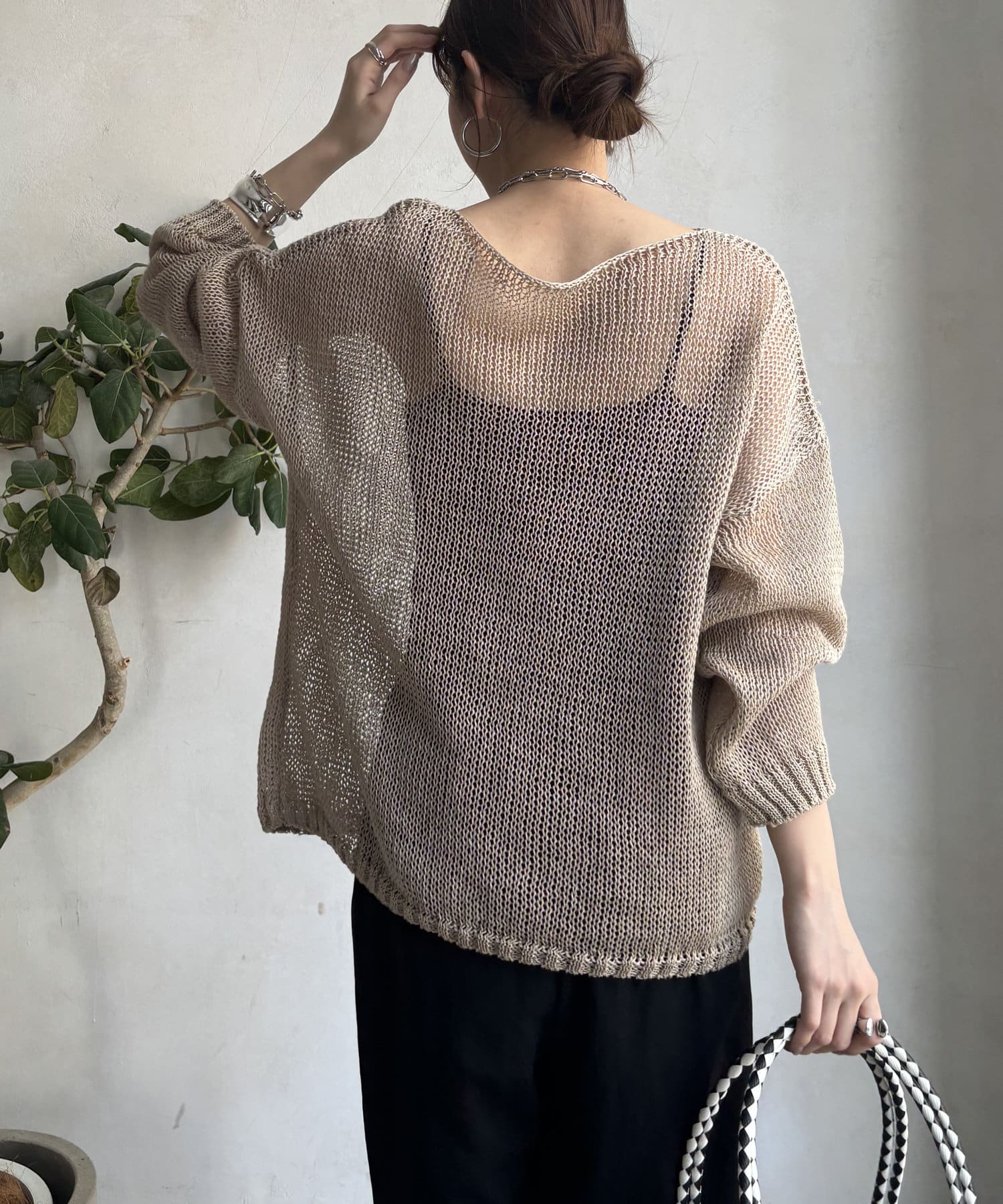【真夏にも着られる!】メッシュルーズニット