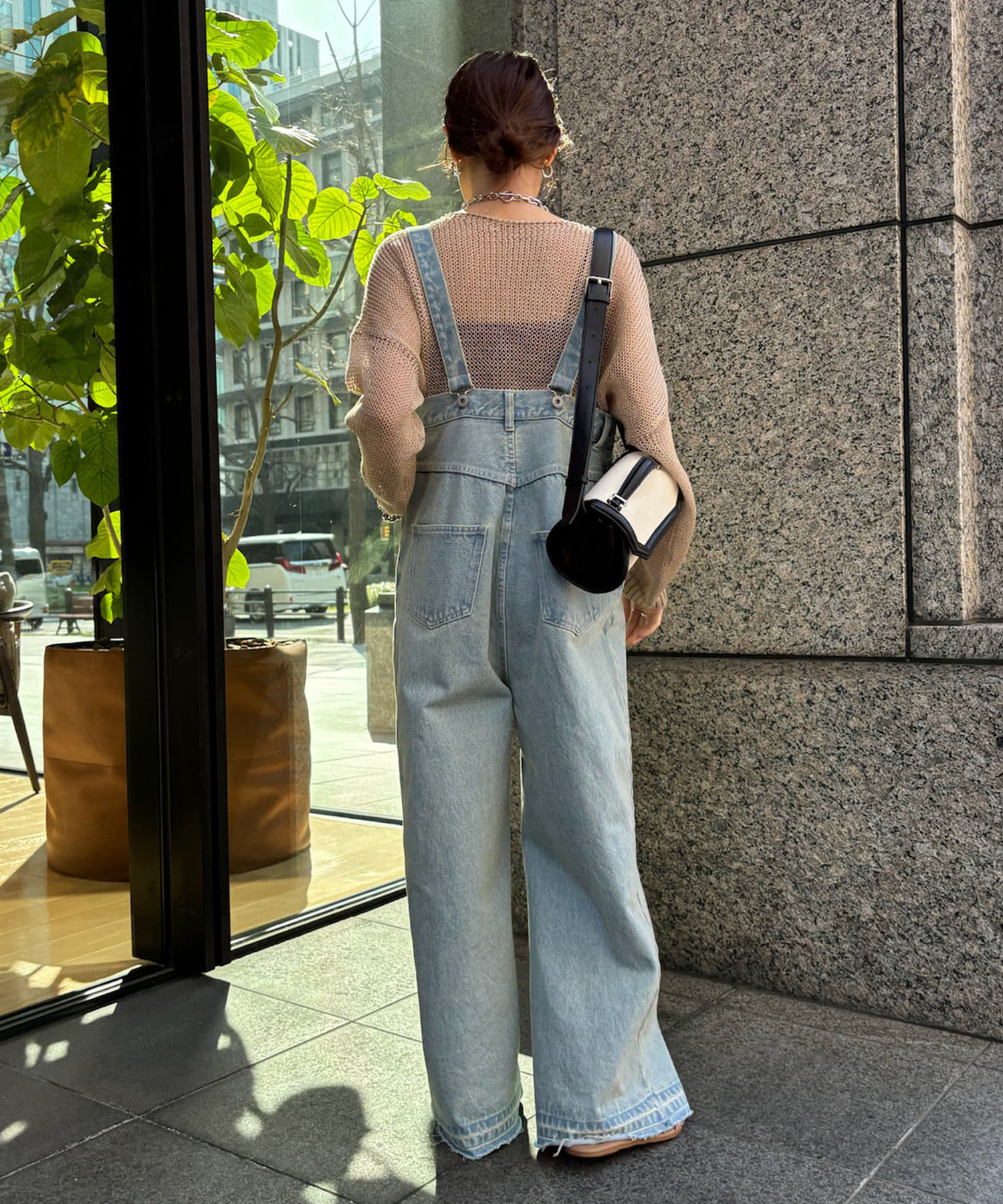 シルエットは程よくルーズなサイズ感で、腰回りを自然にカバー。