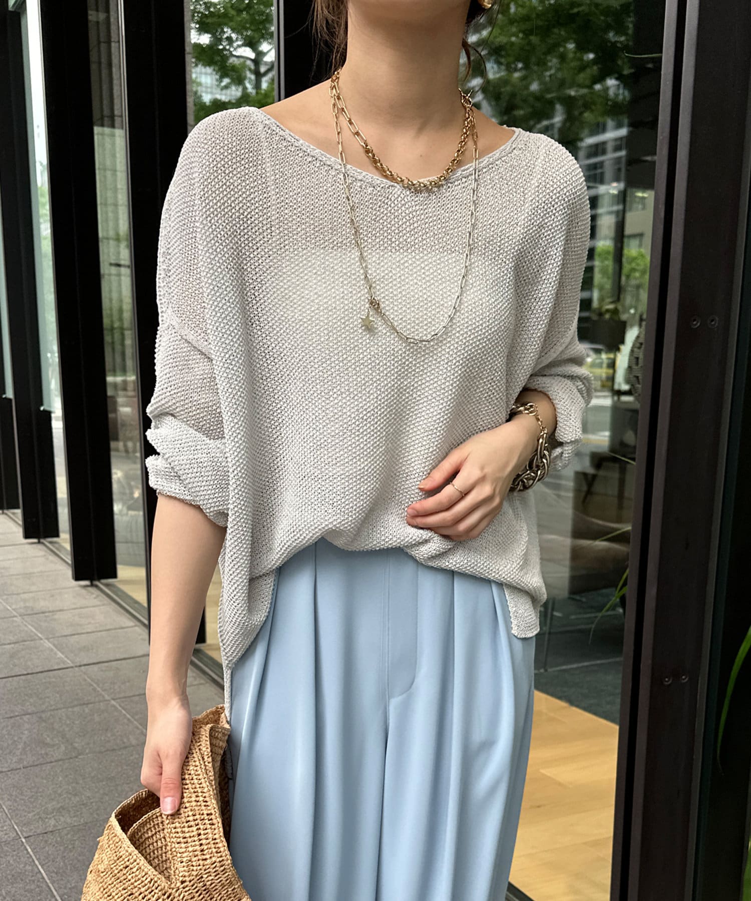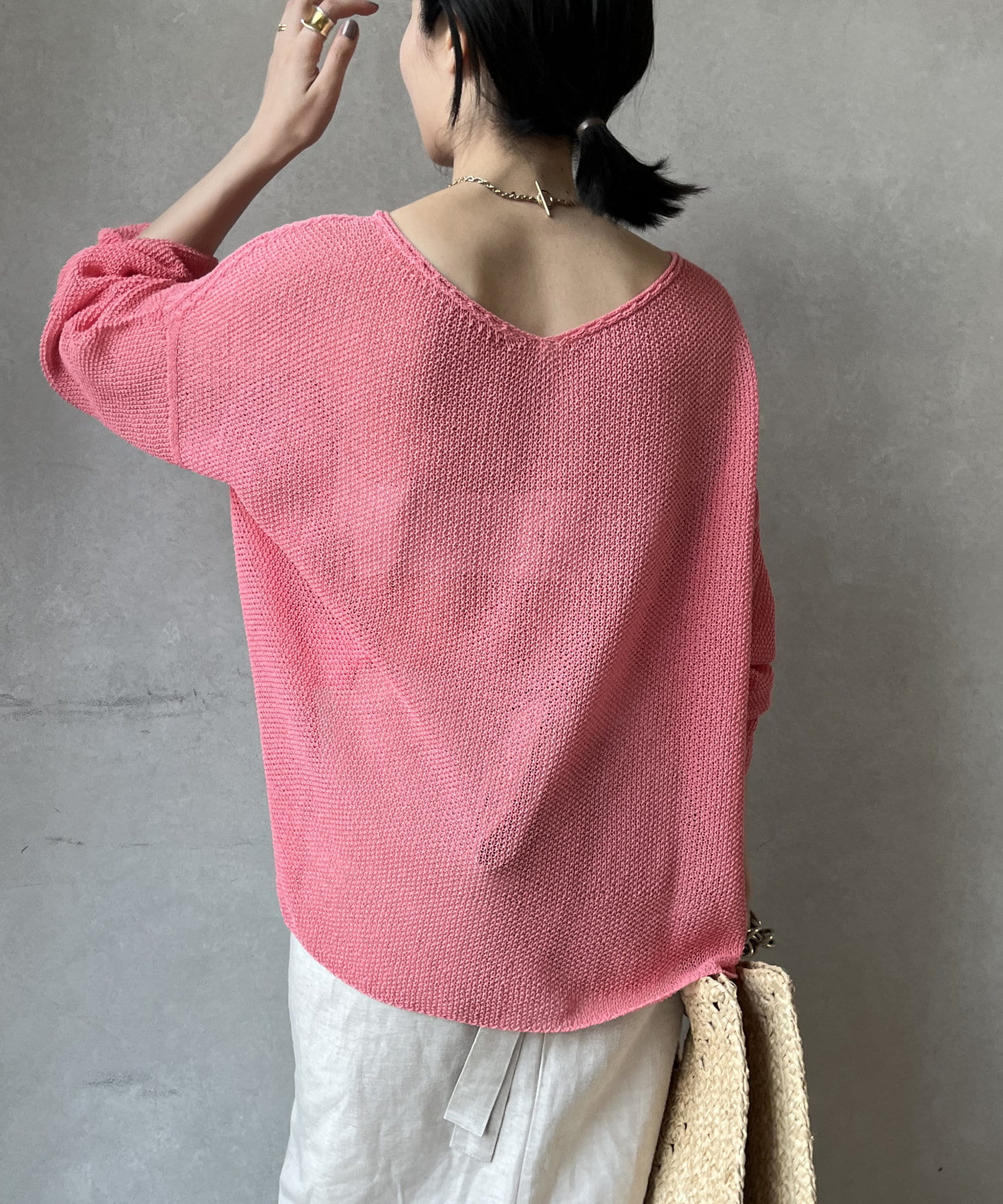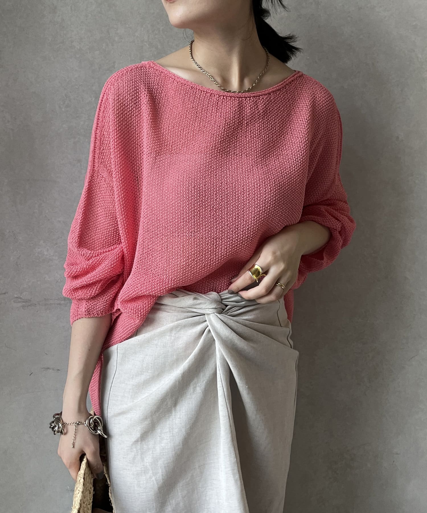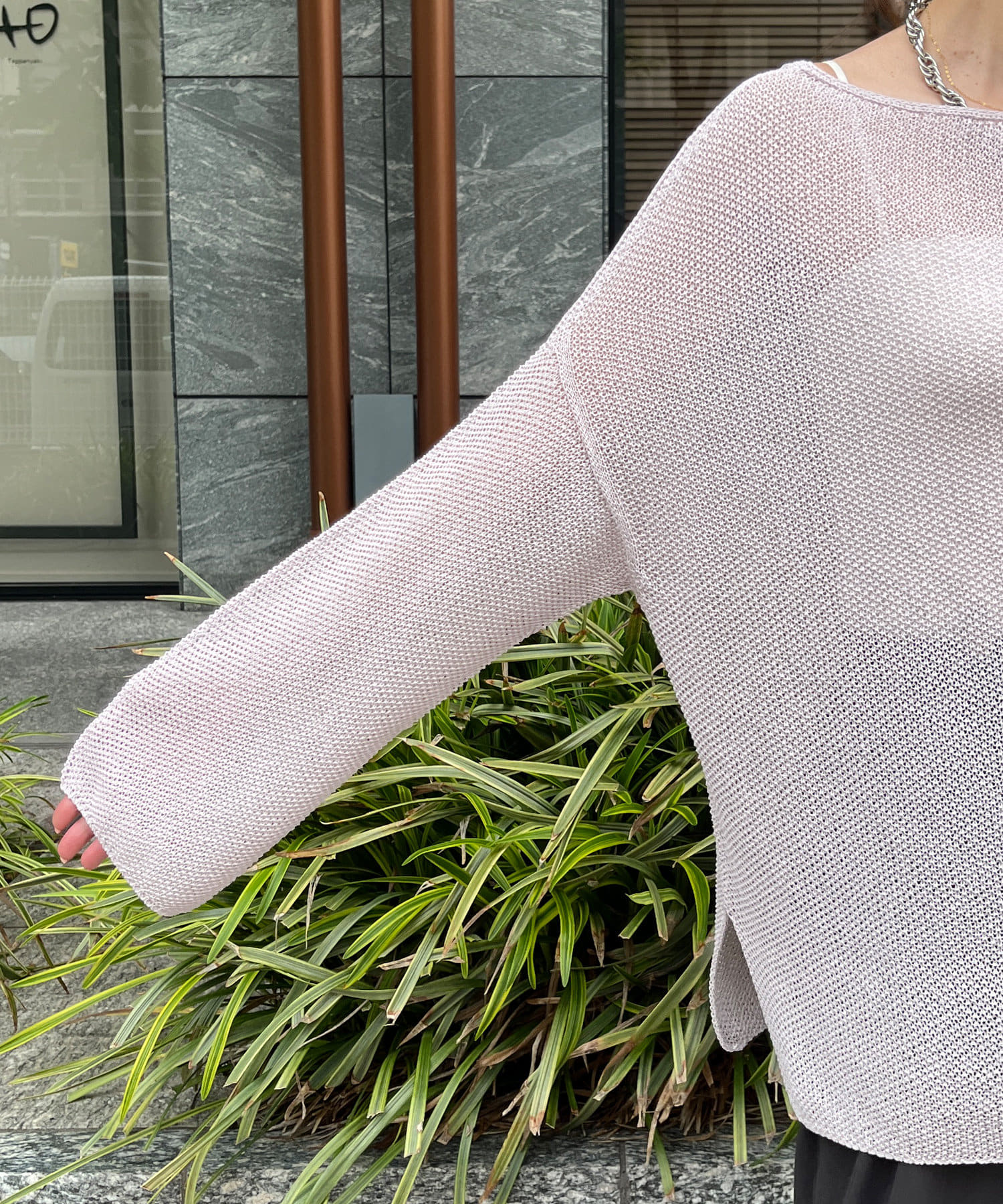 ゴワつかず、シャリ感のある和紙素材で軽い着心地のサマーニット。