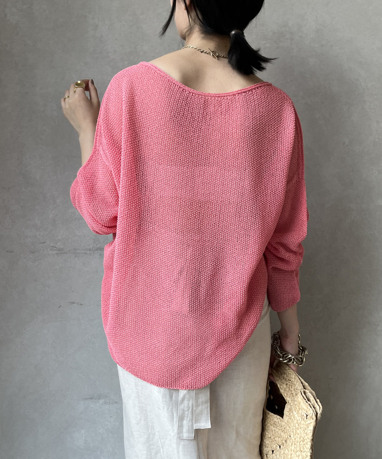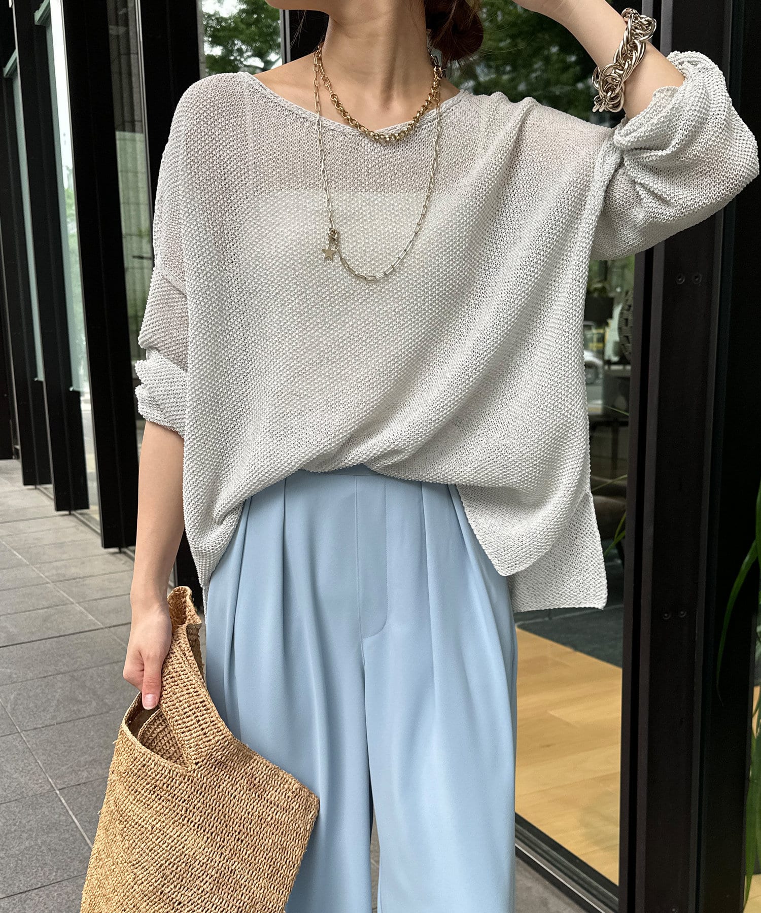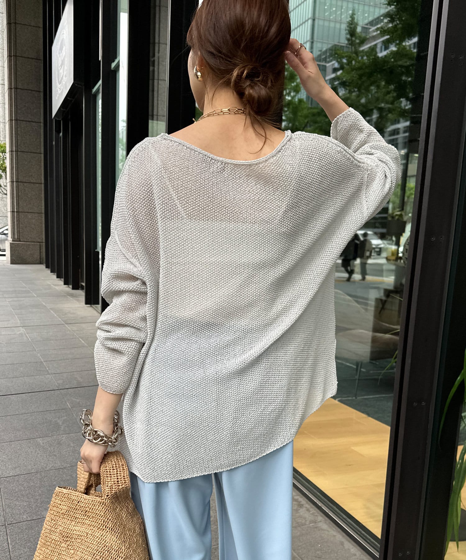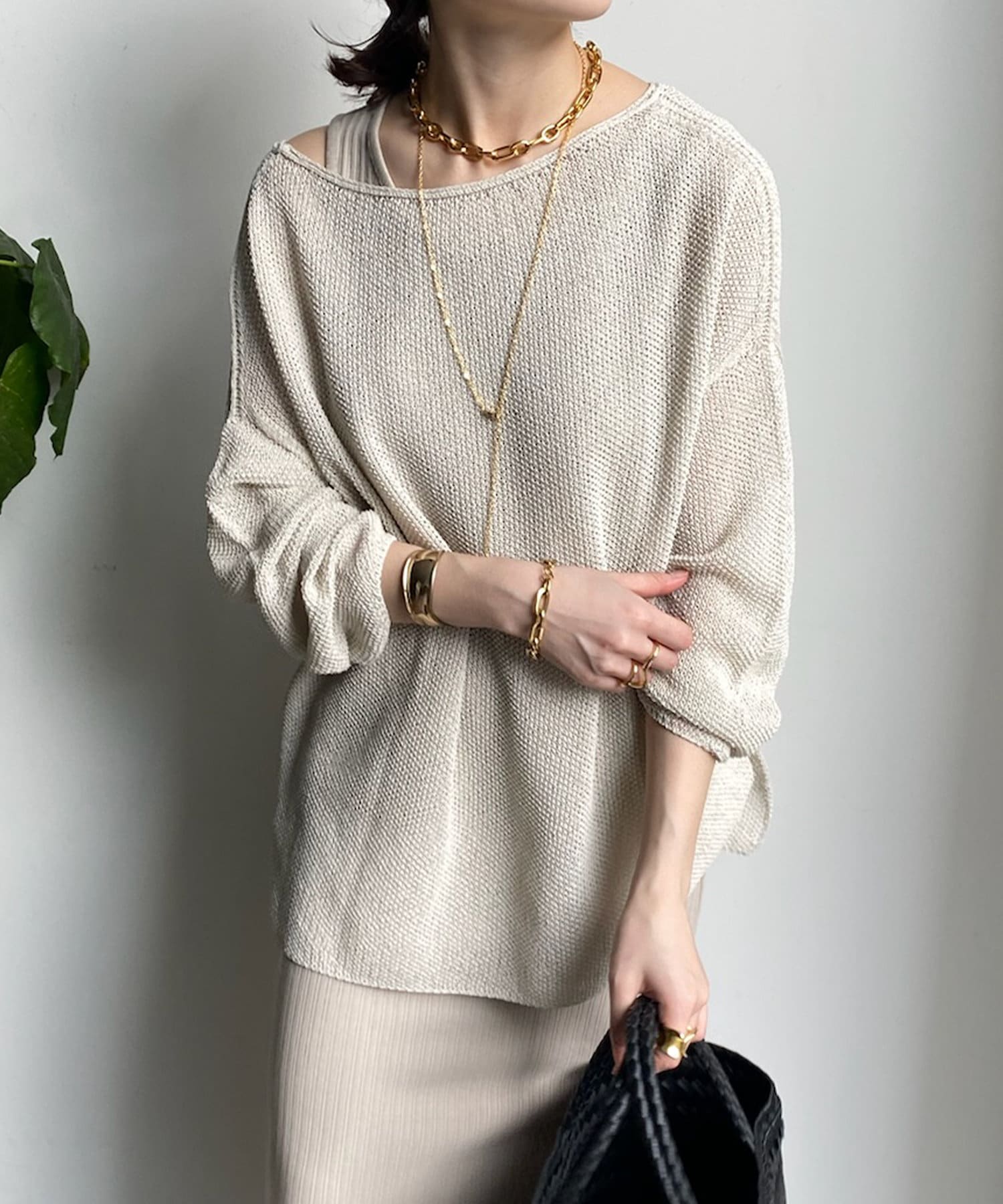 ゴワつかず、シャリ感のある和紙素材で軽い着心地のサマーニット。