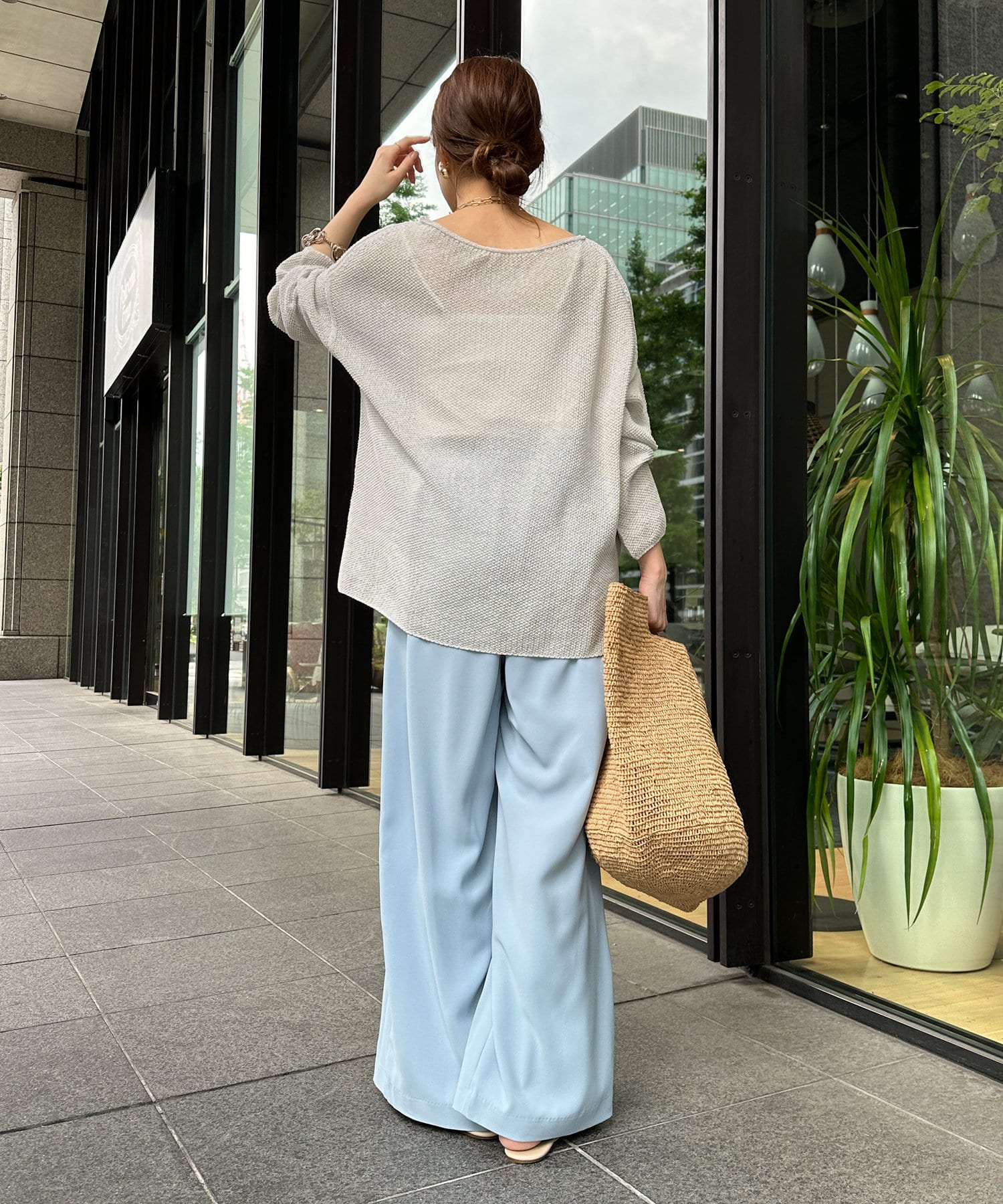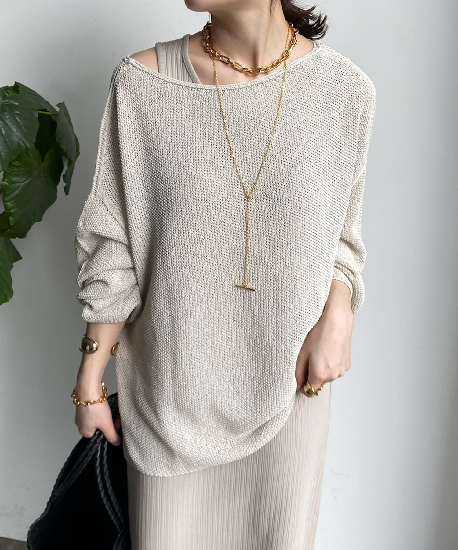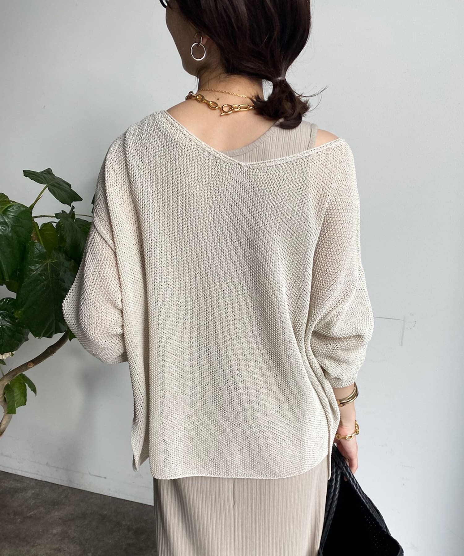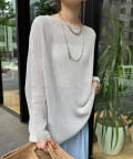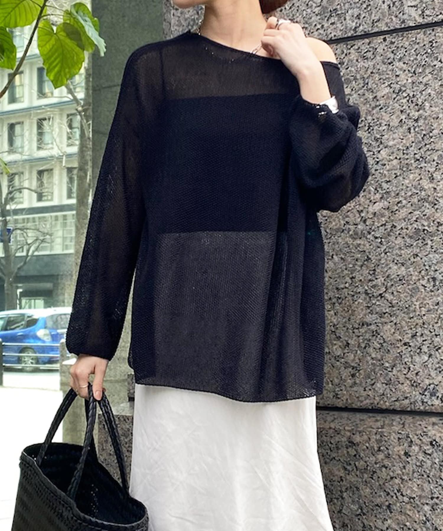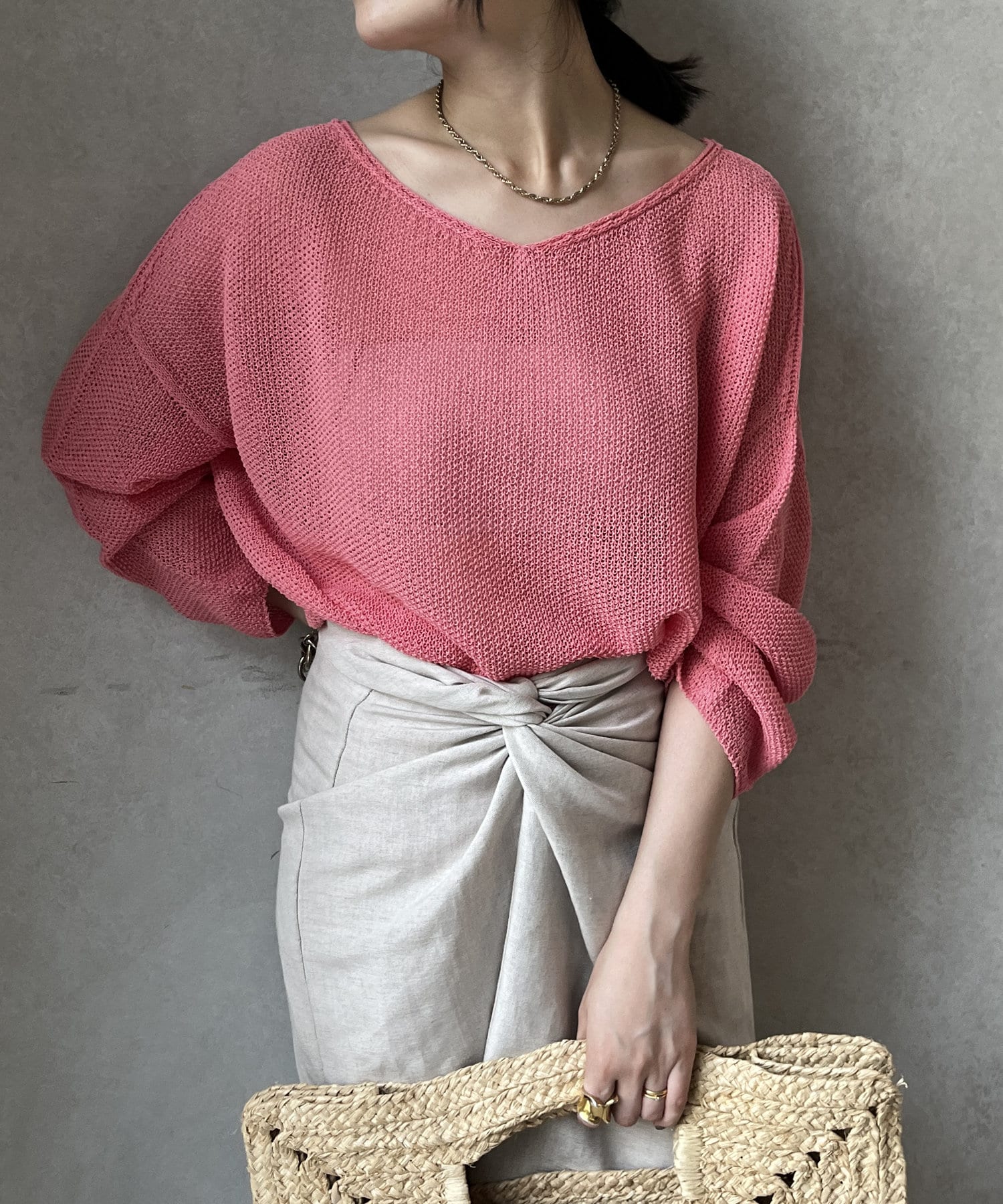 ゴワつかず、シャリ感のある和紙素材で軽い着心地のサマーニット。