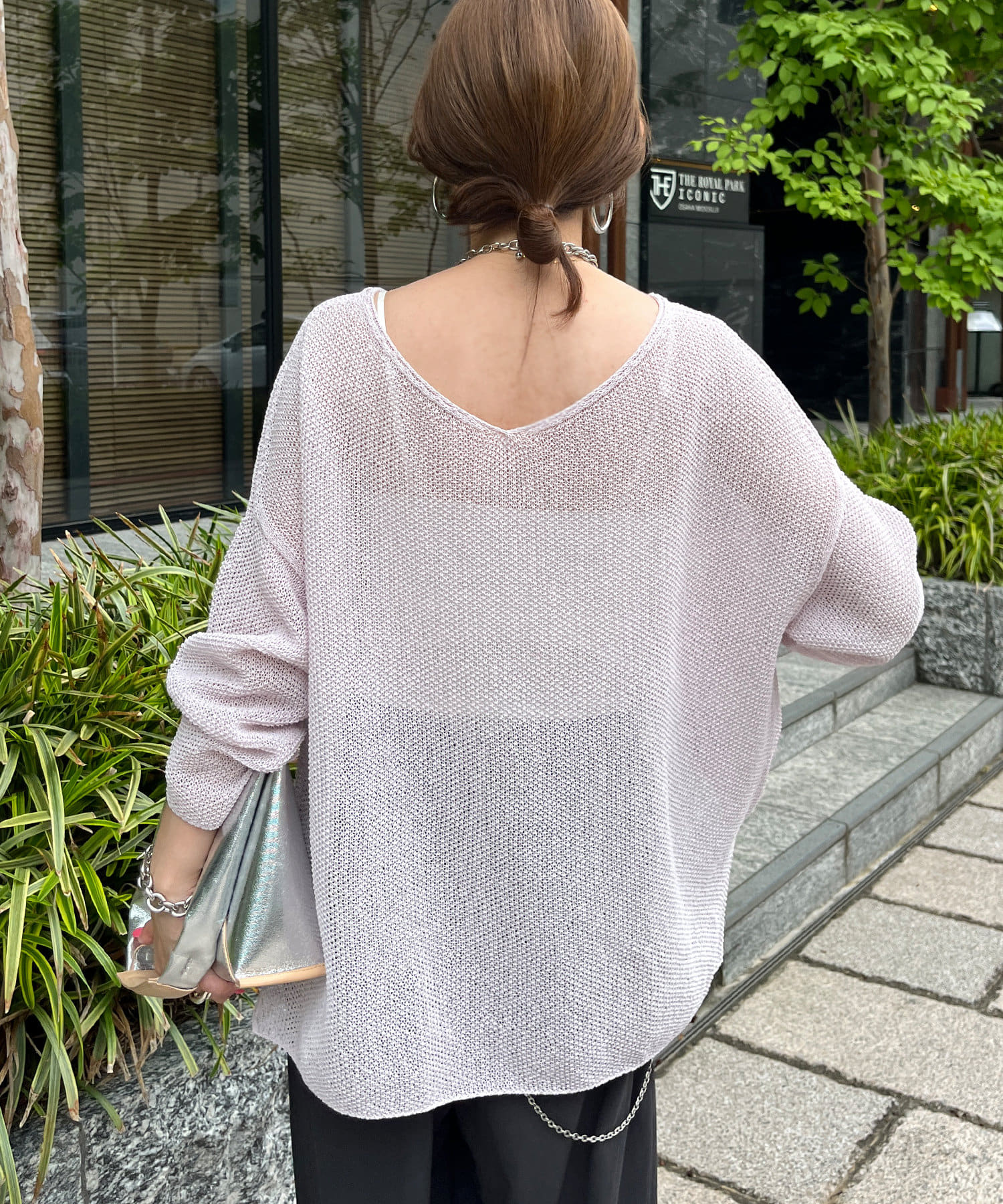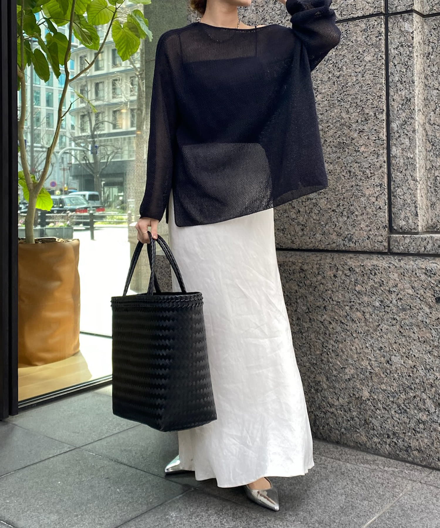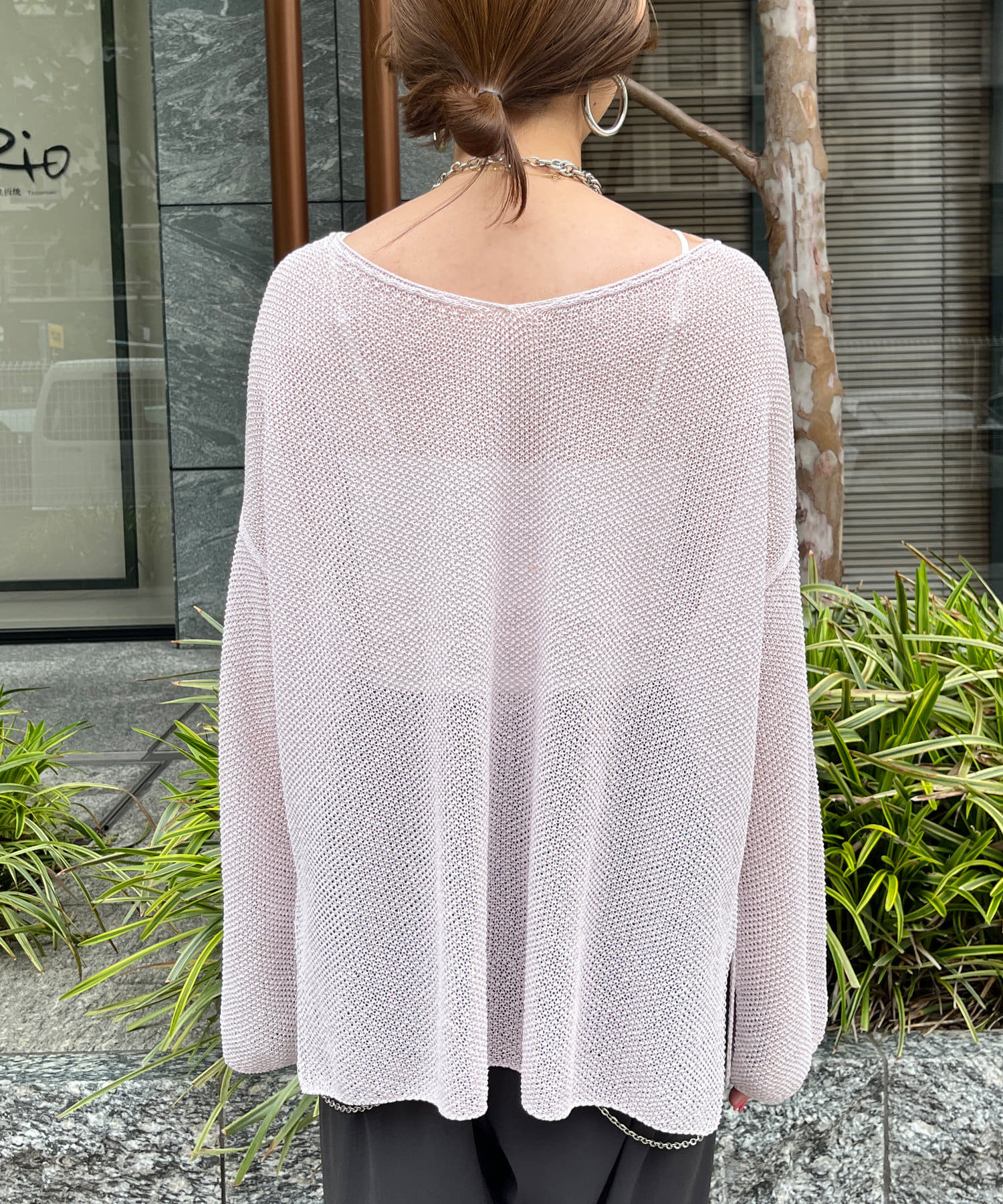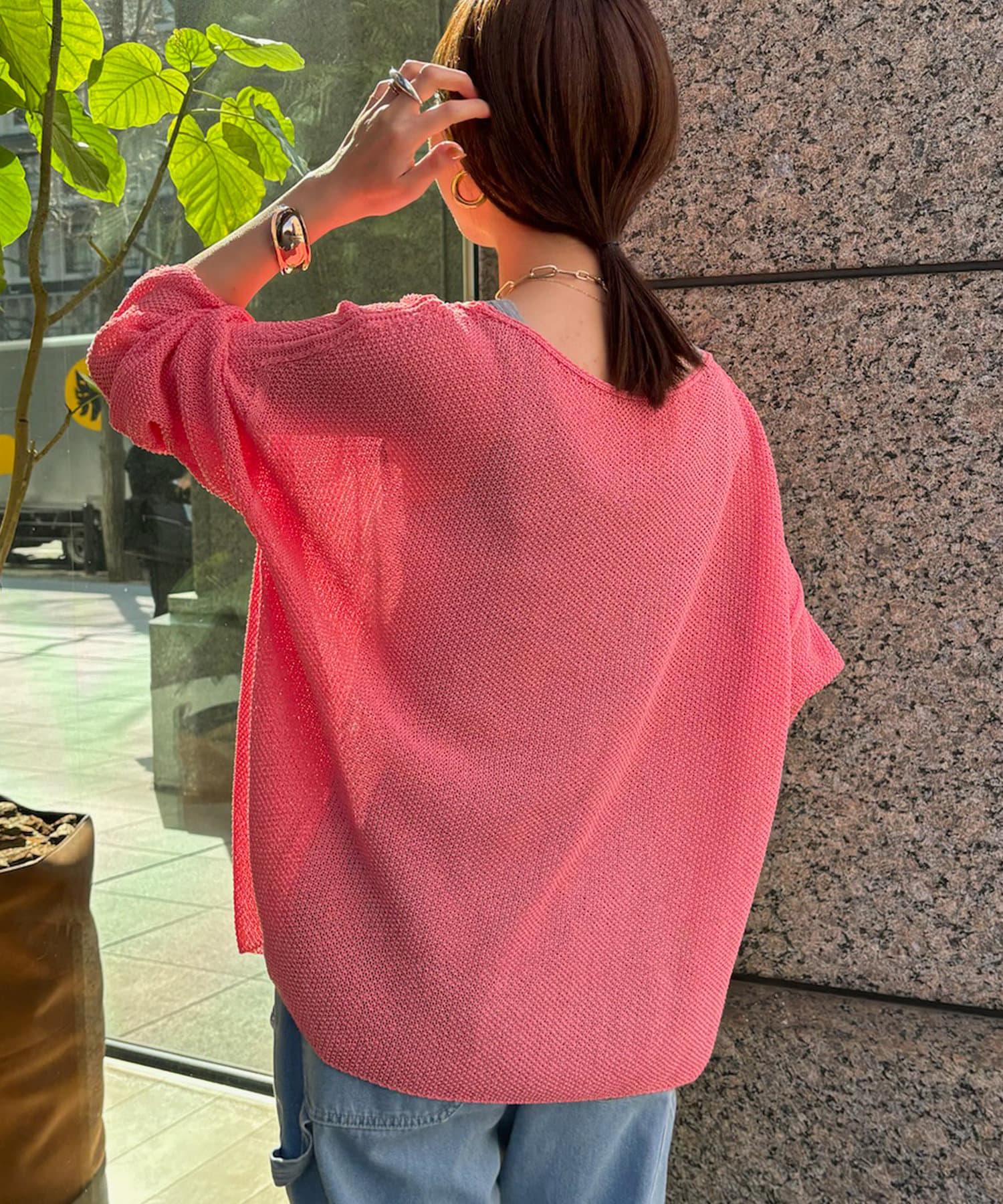 ゴワつかず、シャリ感のある和紙素材で軽い着心地のサマーニット。