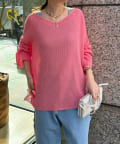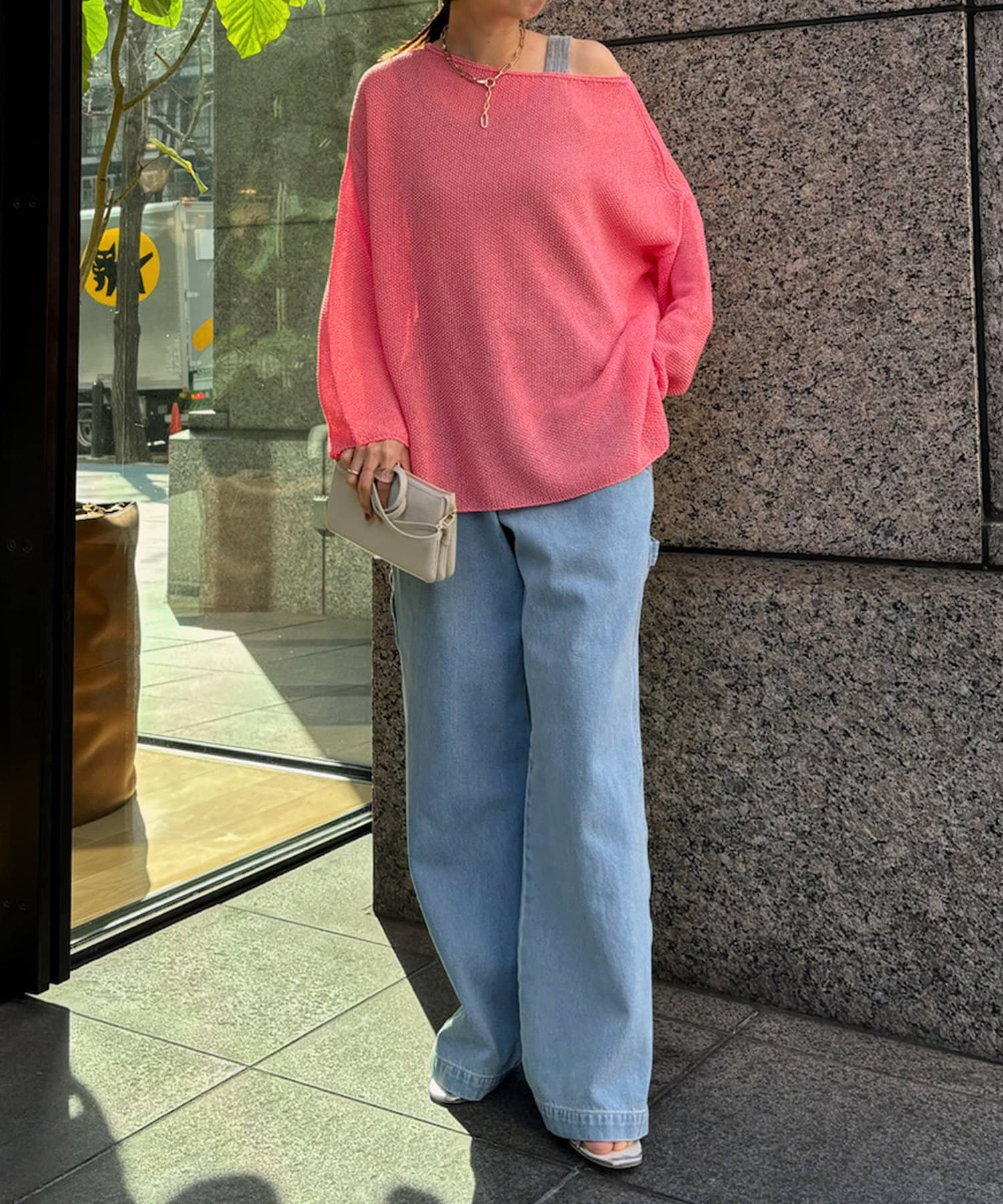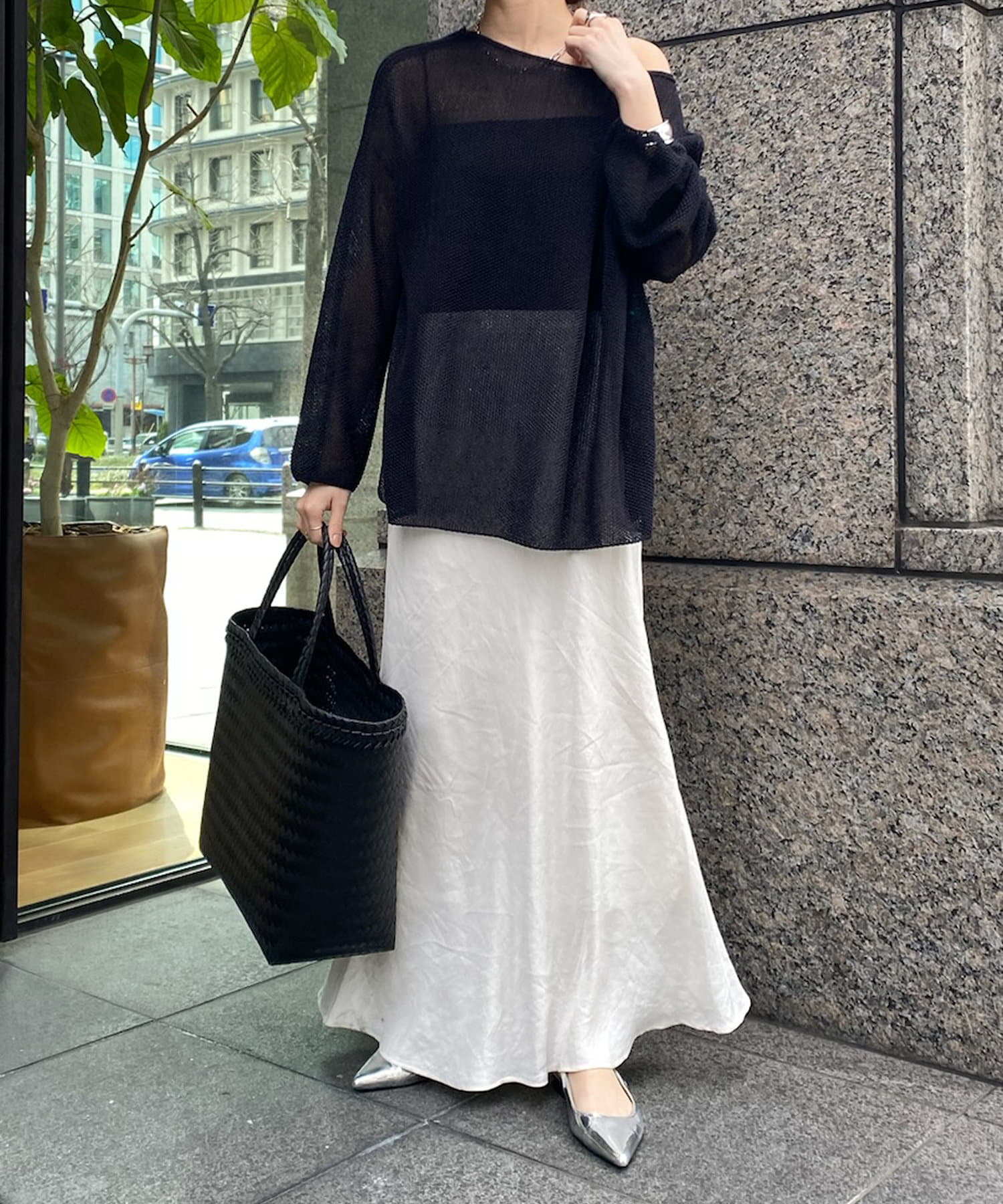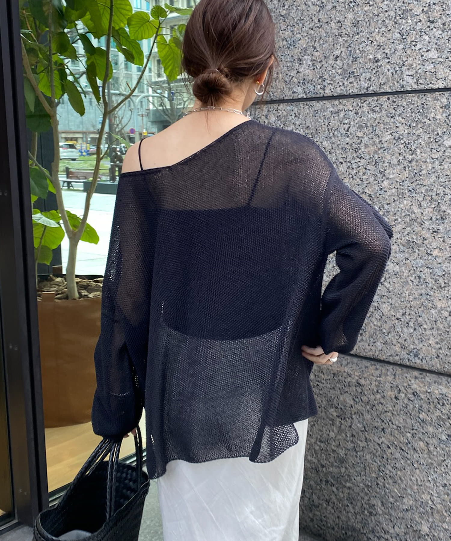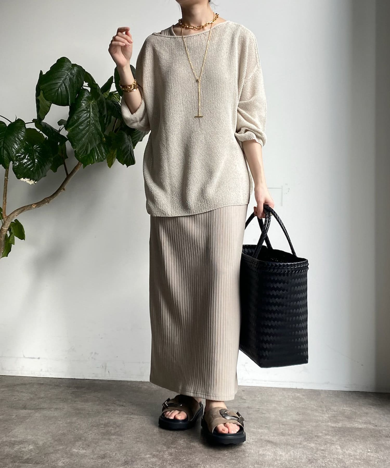 ゴワつかず、シャリ感のある和紙素材で軽い着心地のサマーニット。