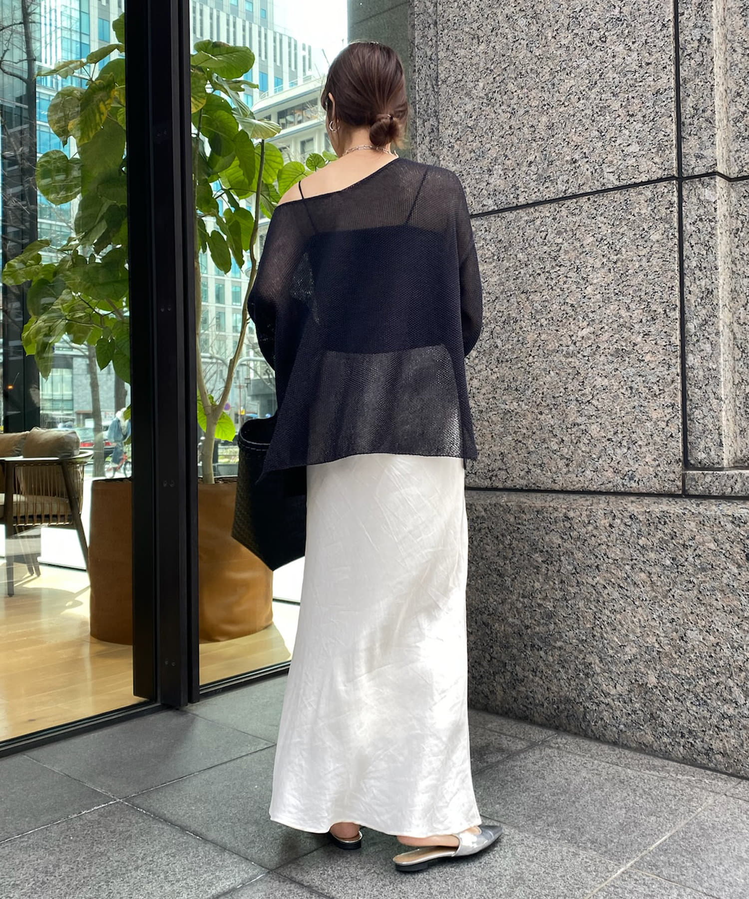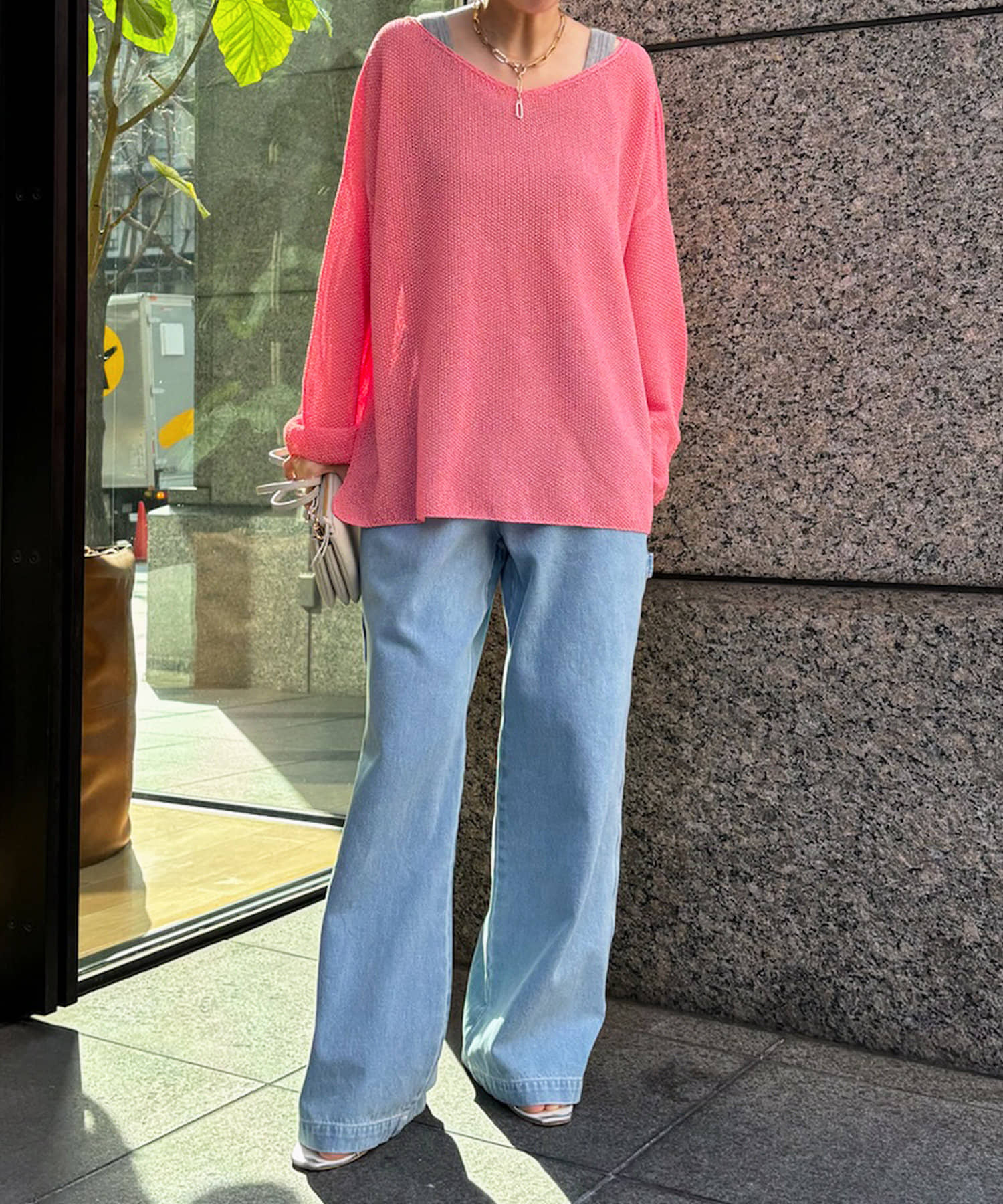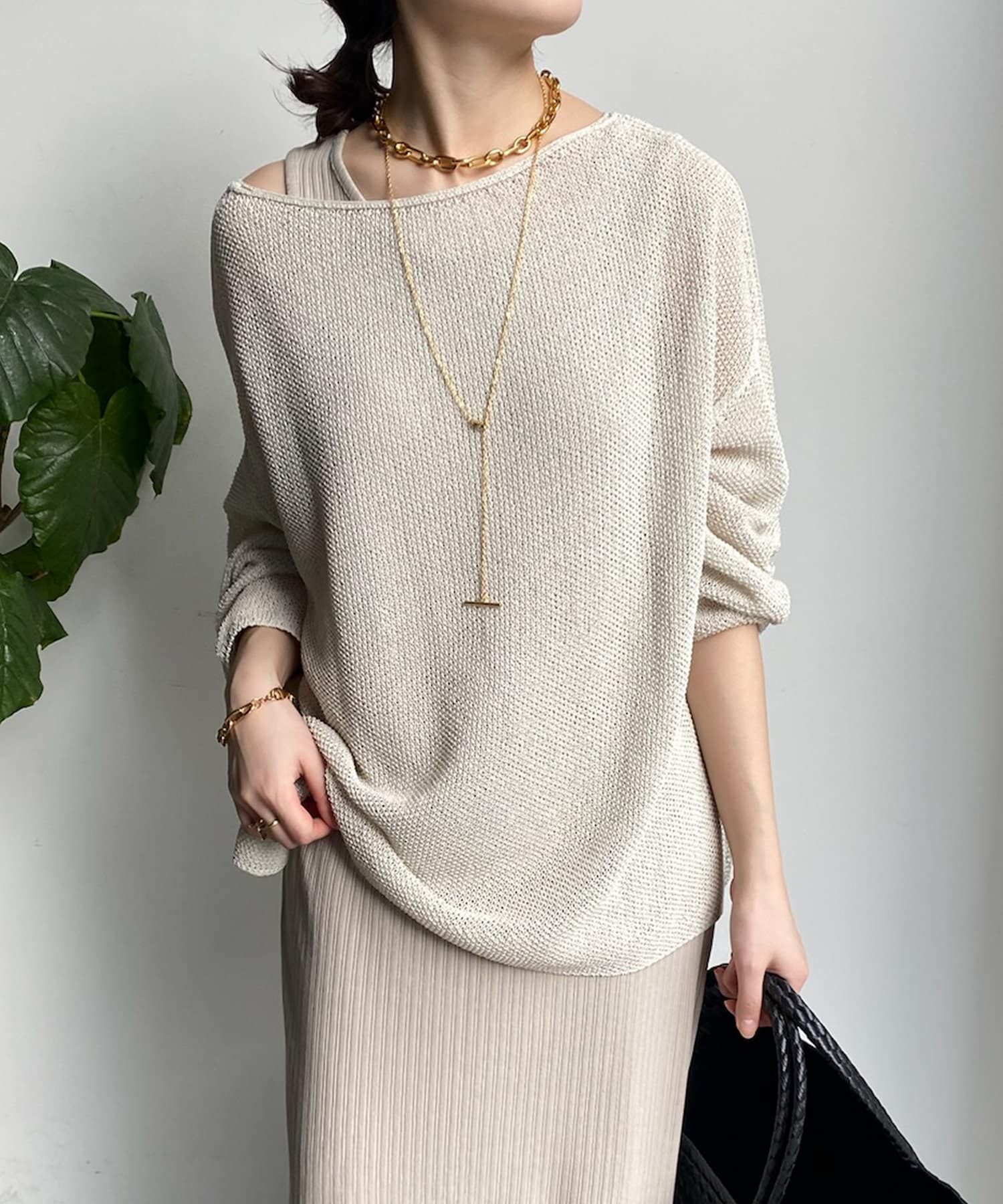 程よく開いたネックラインは、カットラインの違う前後2wayに仕上げることで着こなしに変化をつけていただけます。
