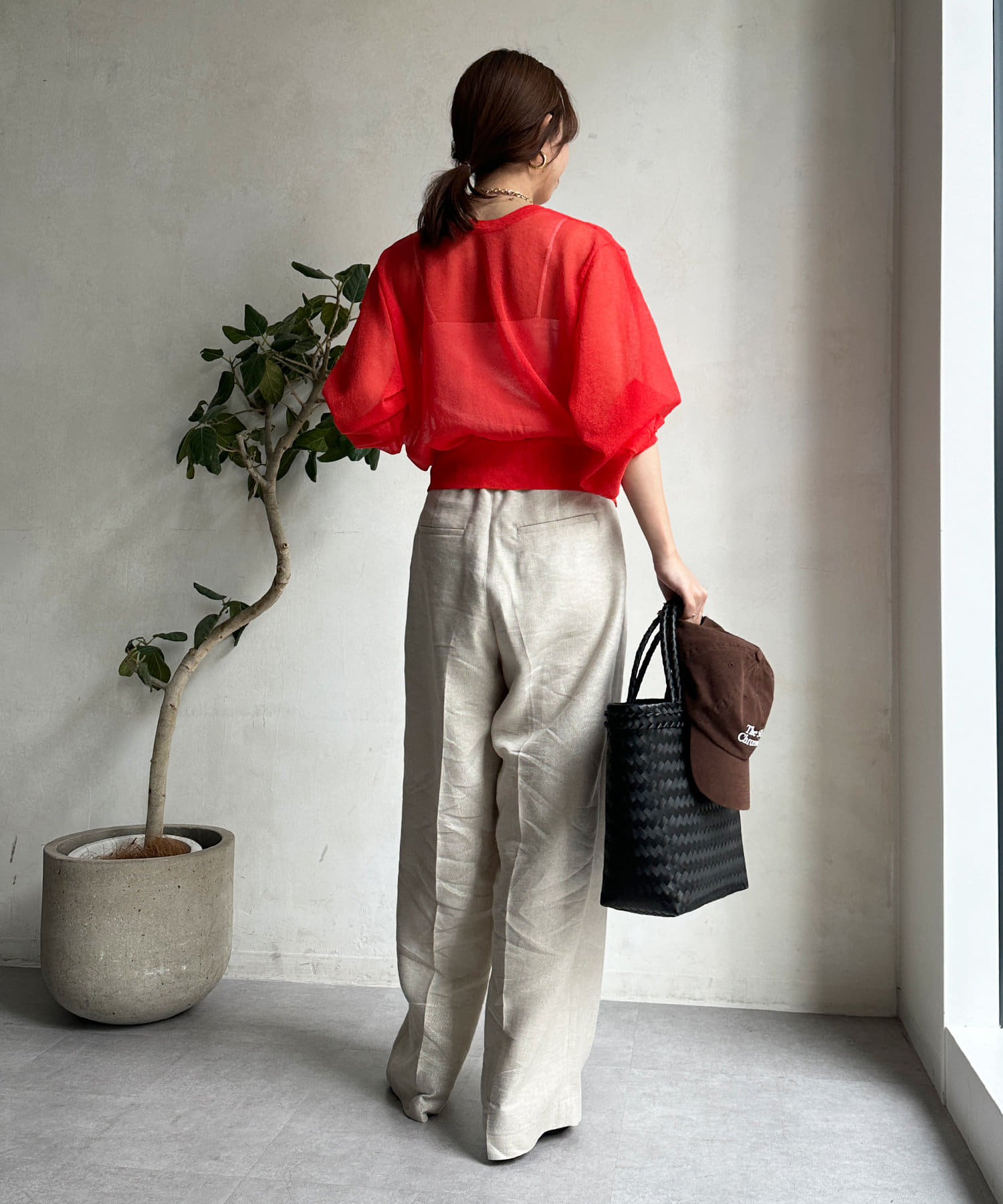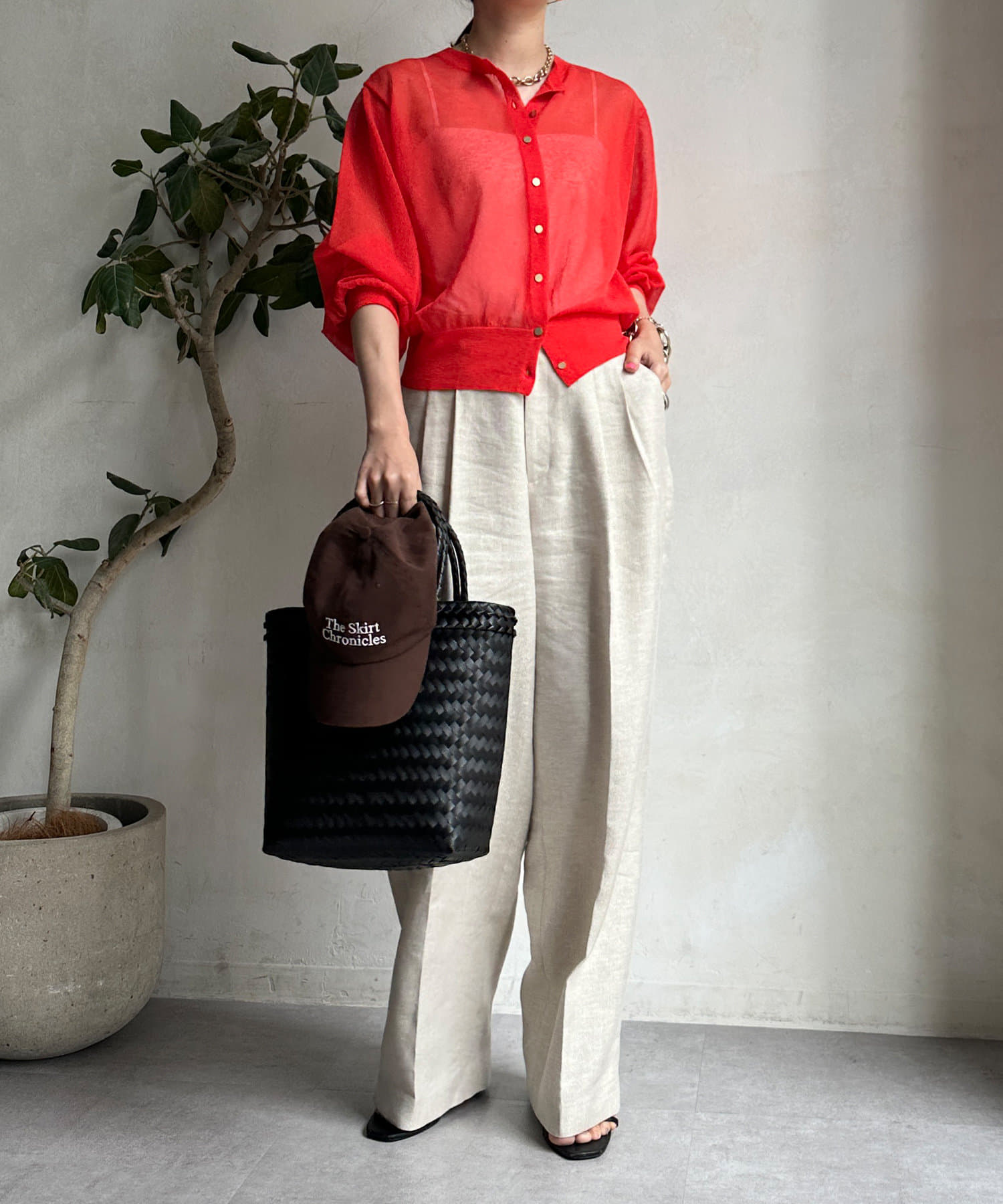 スカートスタイルにもパンツスタイルにもマッチするシルエットで、ひとつ持っておくと重宝してくれます。