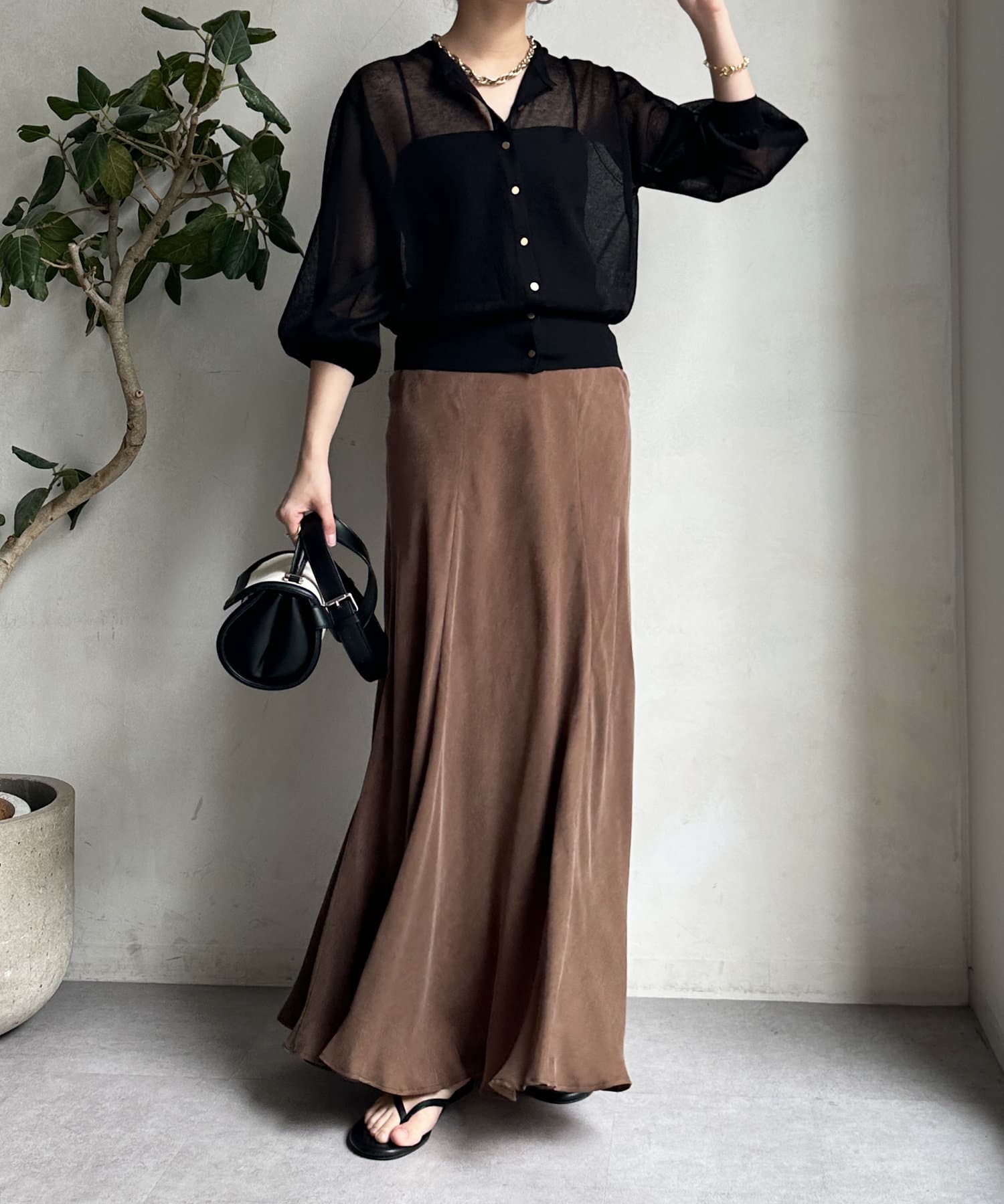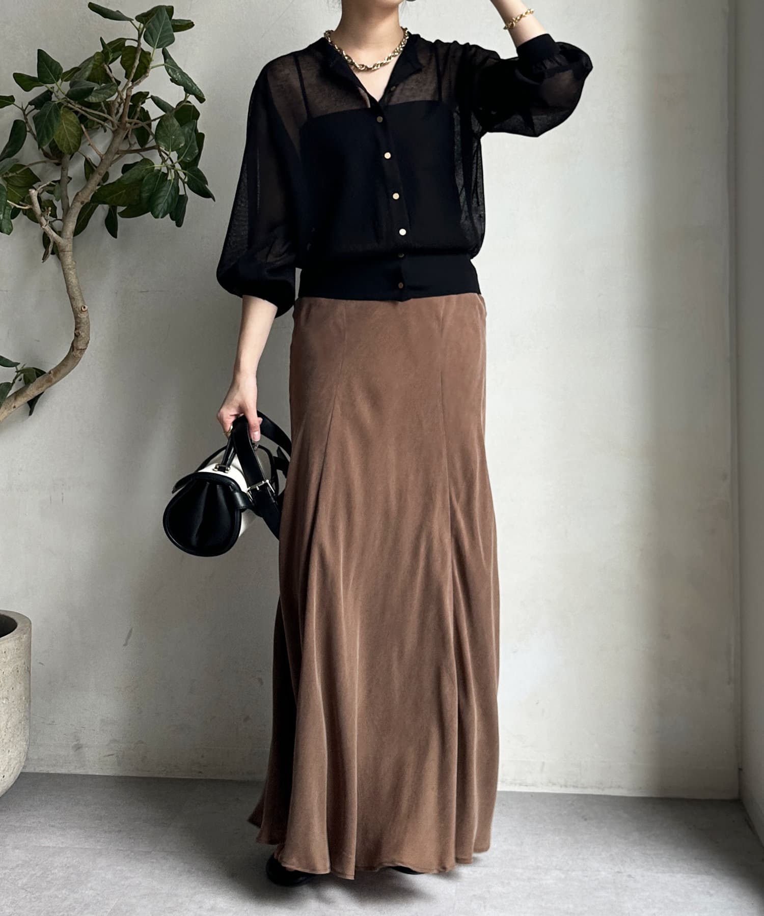 柔らかなシアー素材を使用し、おしゃれ感漂う1着に。