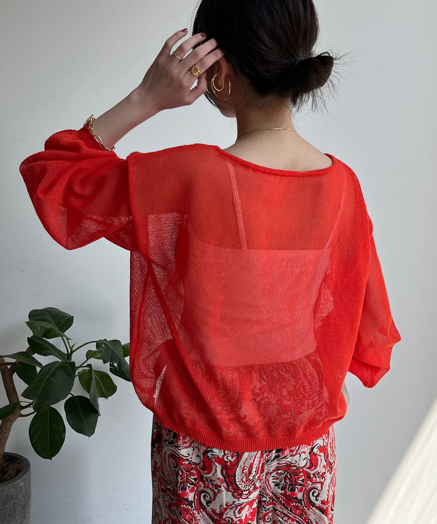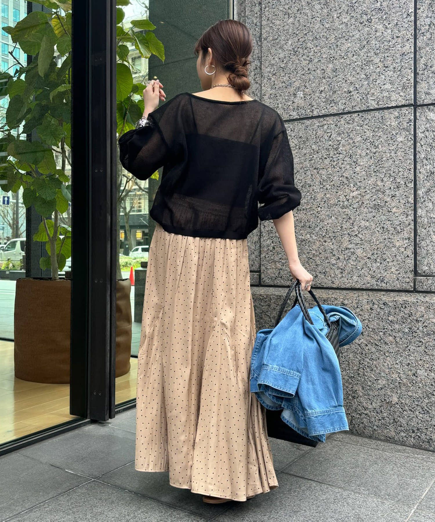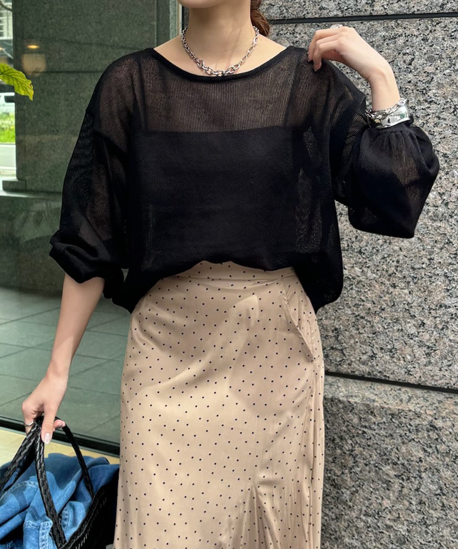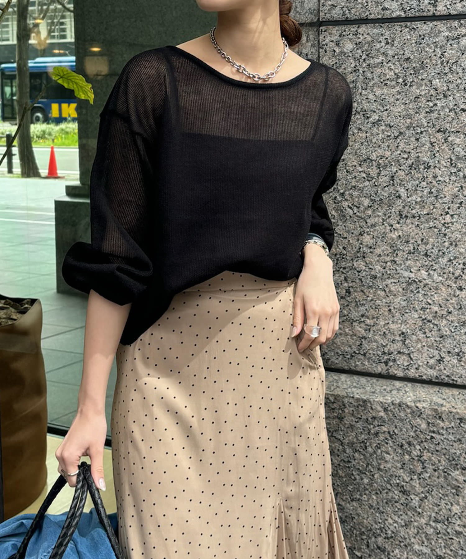インナーにお手持ちのキャミソールなどを合わせて、透け感のあるスタイリングを楽しんでいただけますよ!