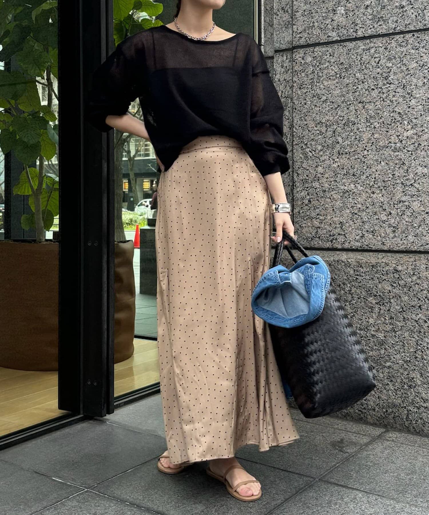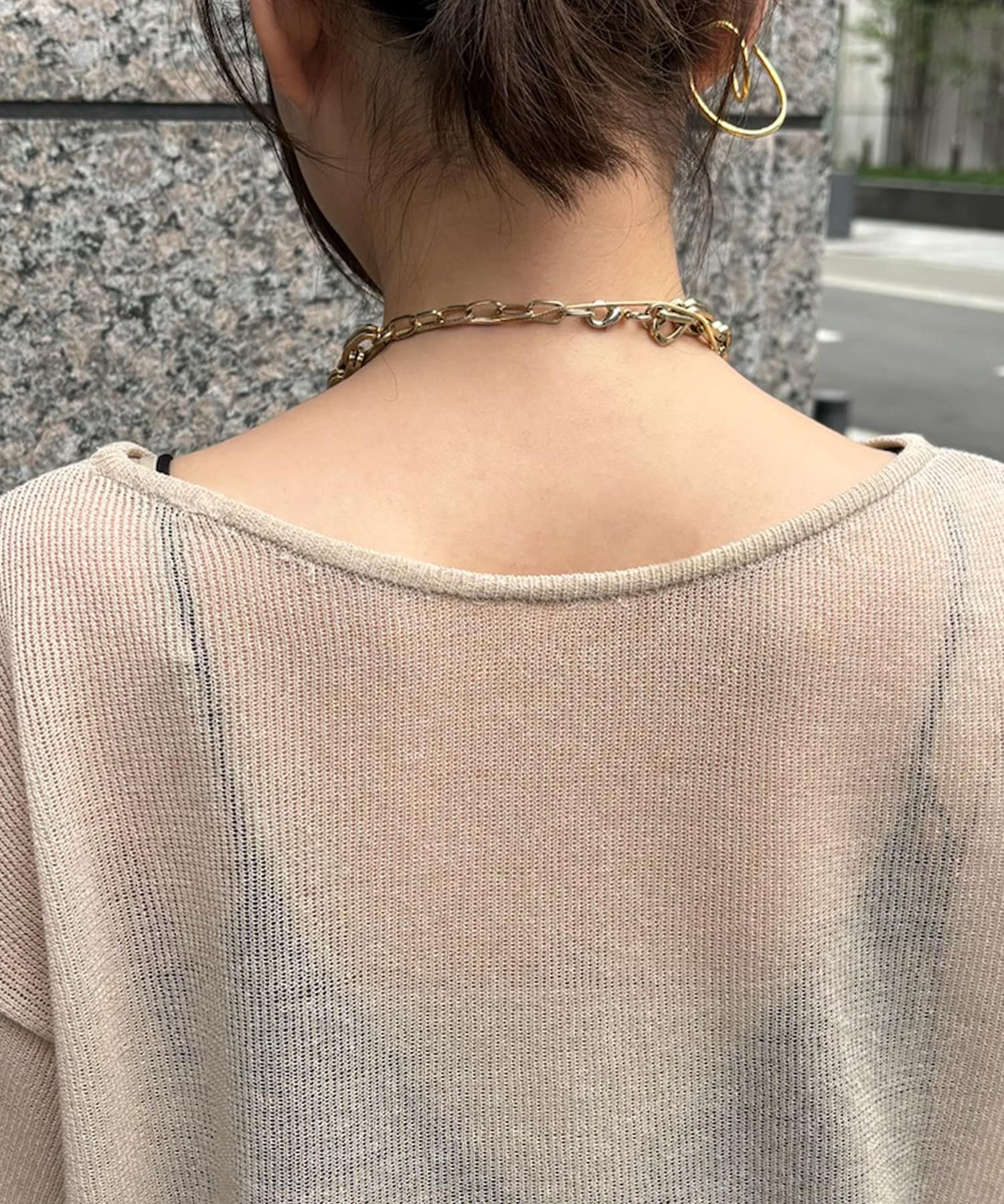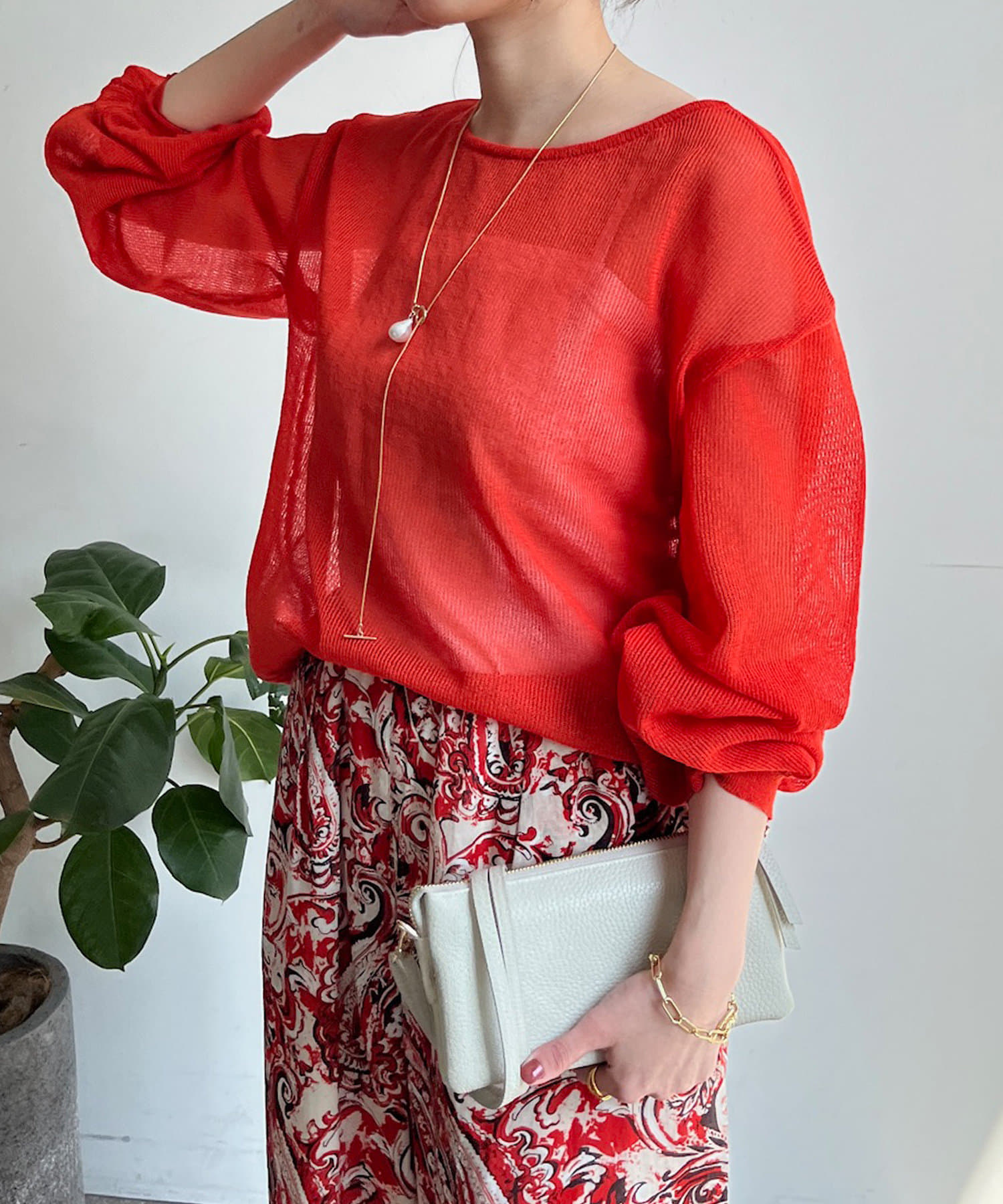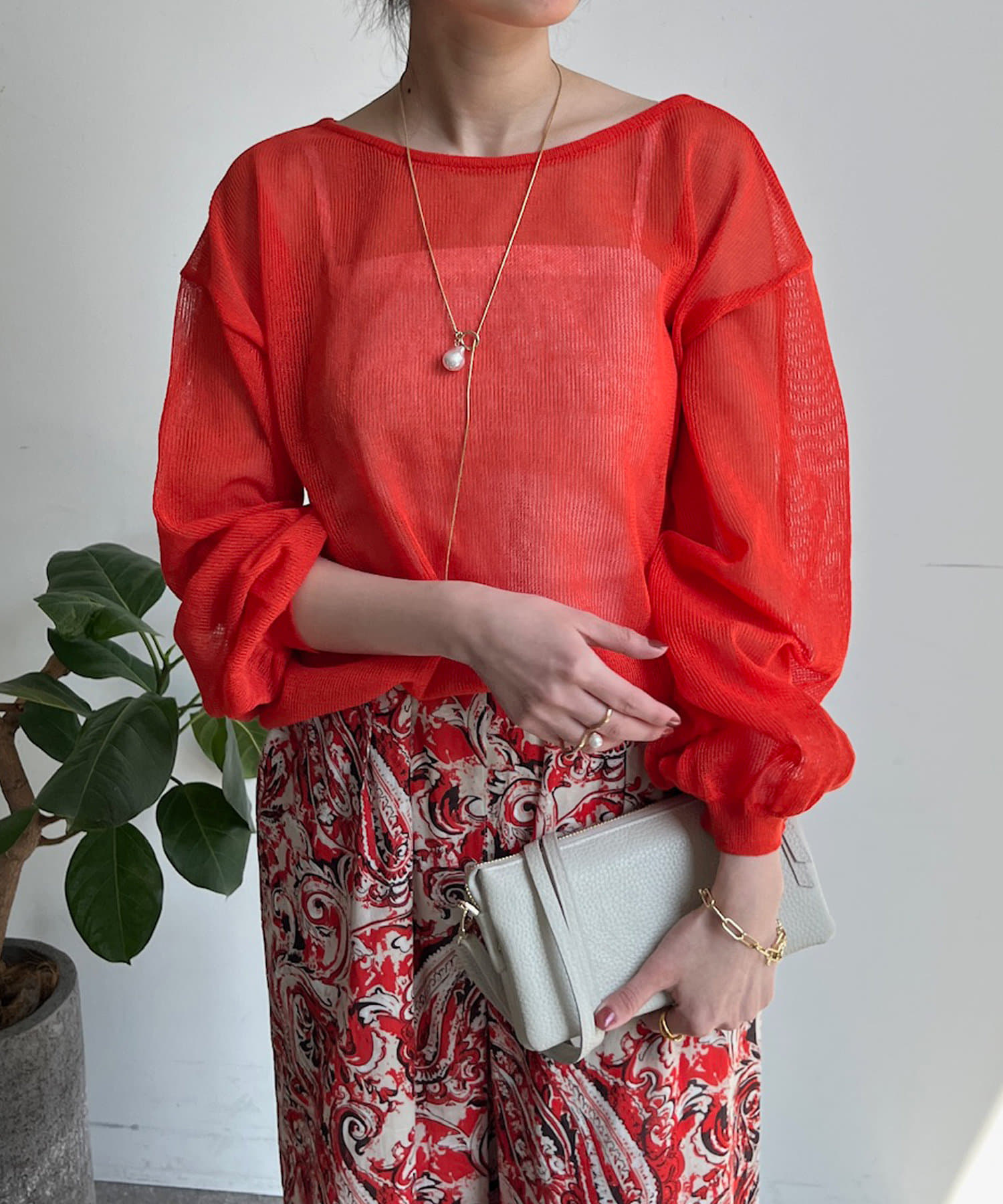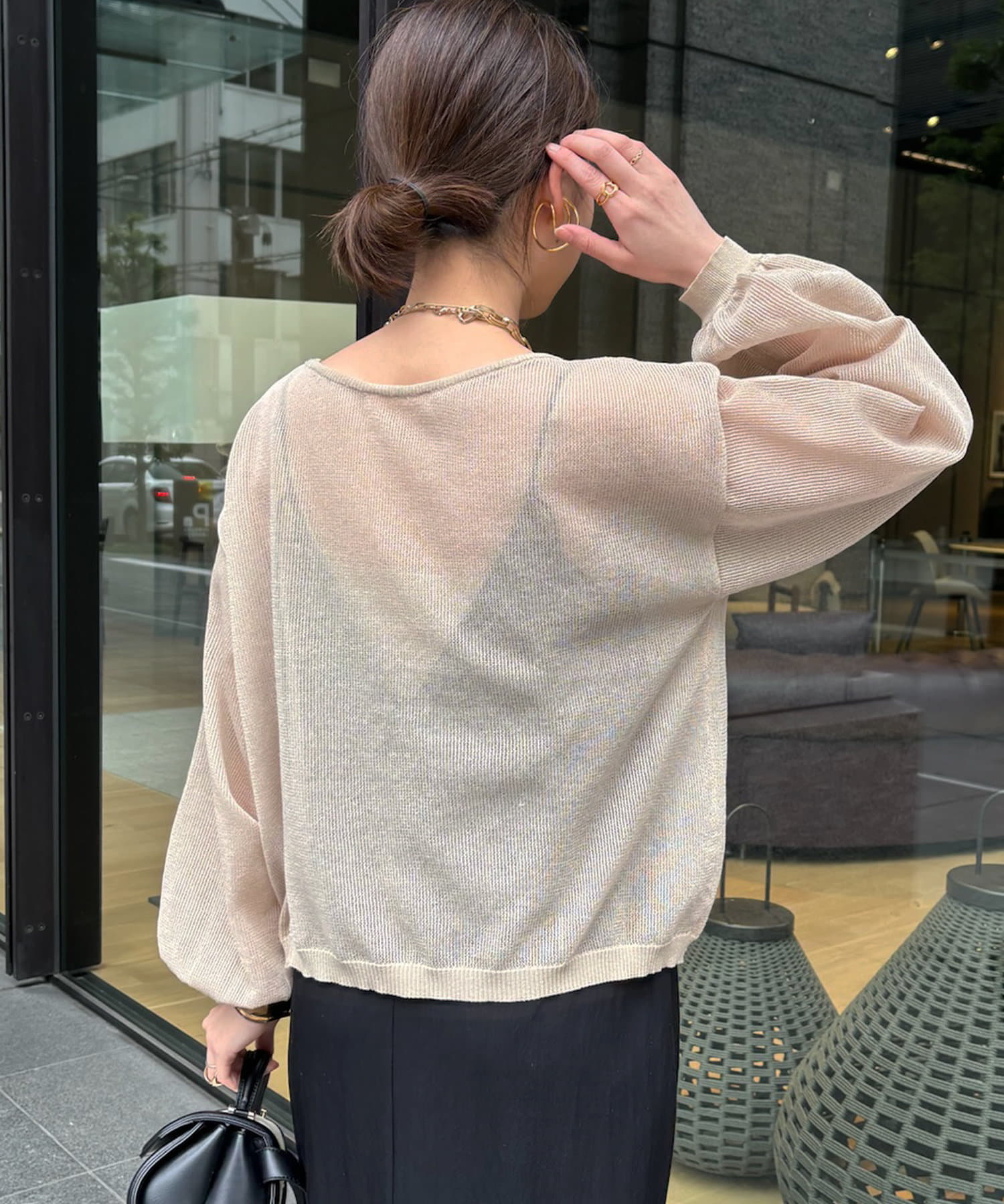 インナーにお手持ちのキャミソールなどを合わせて、透け感のあるスタイリングを楽しんでいただけますよ!