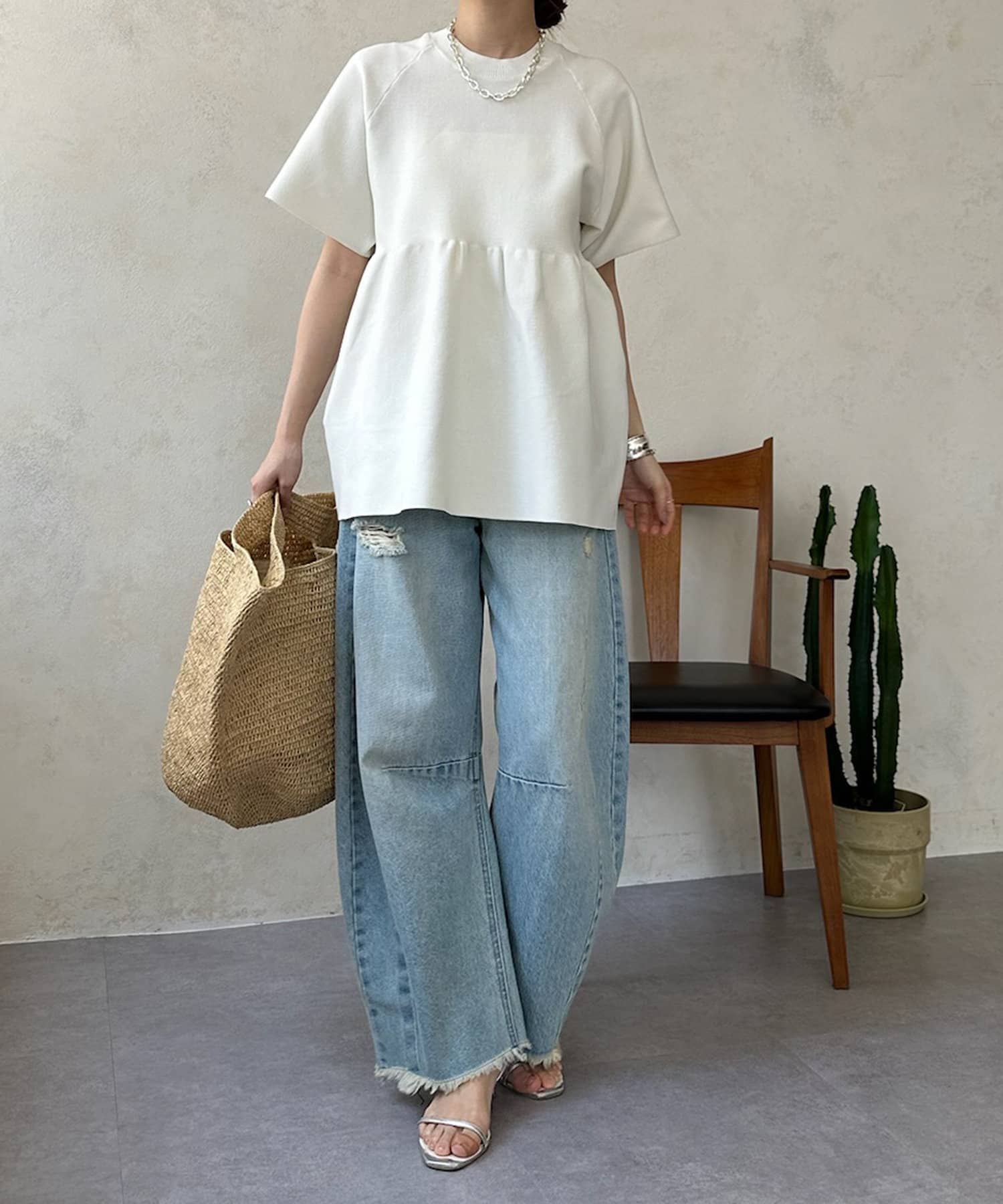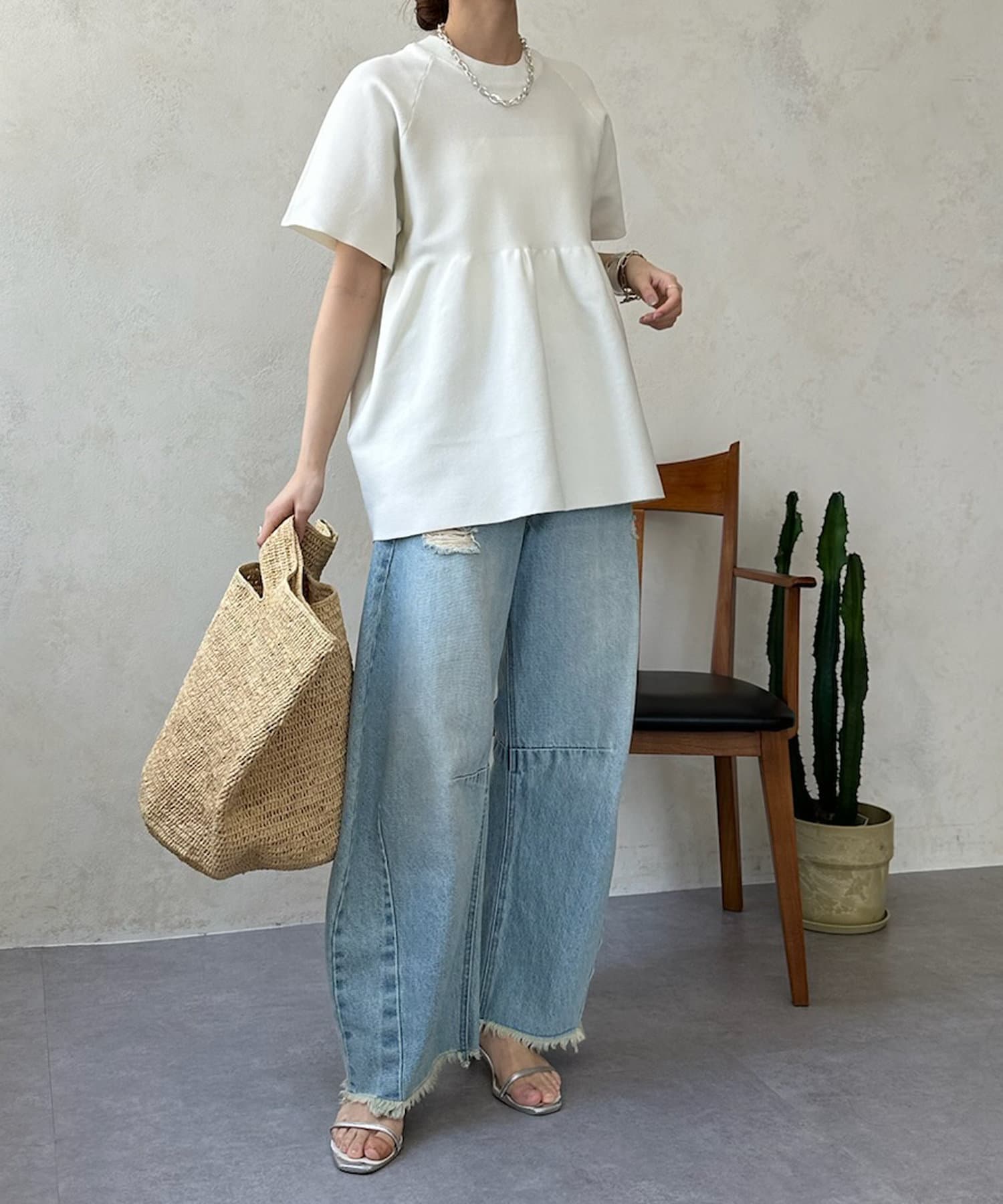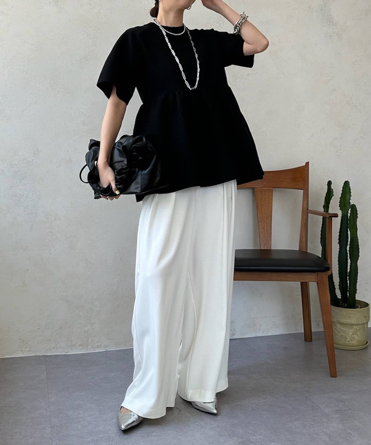 ペプラムがとっても素敵で、ワイドパンツだけでなくスキニージーンズとも相性抜群です。