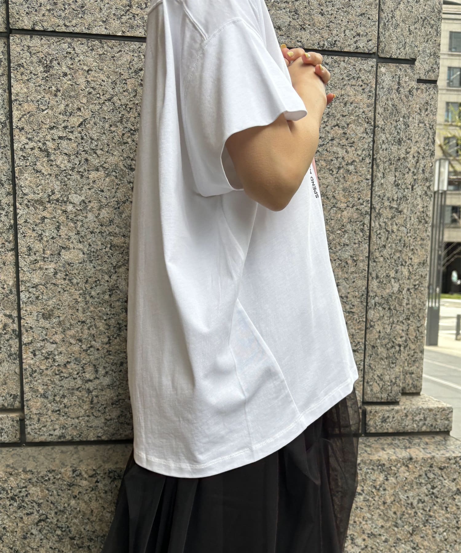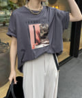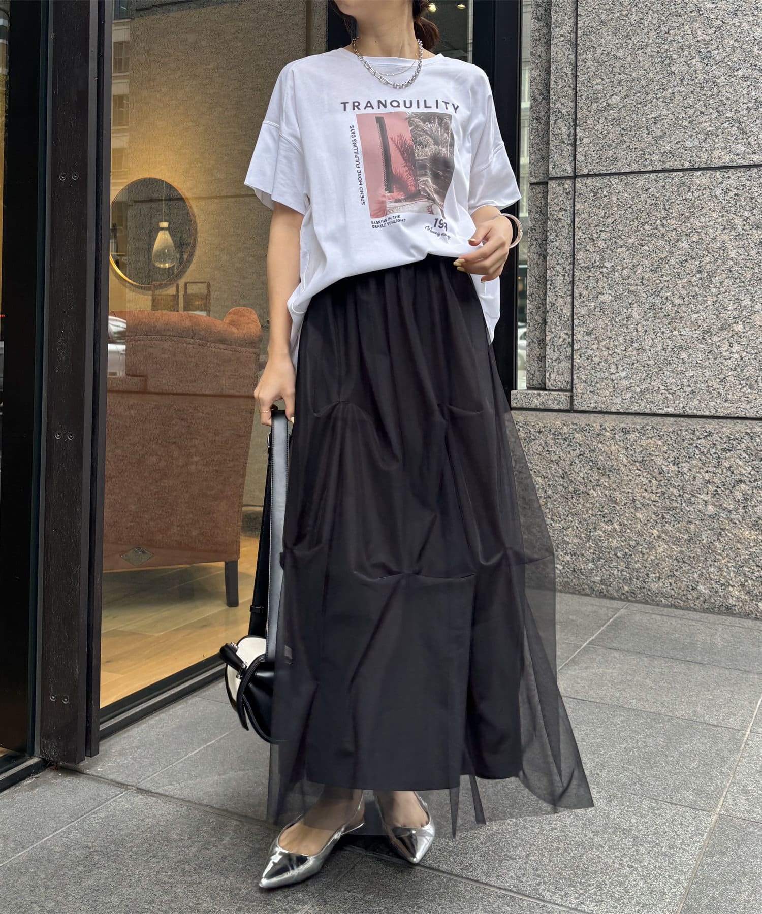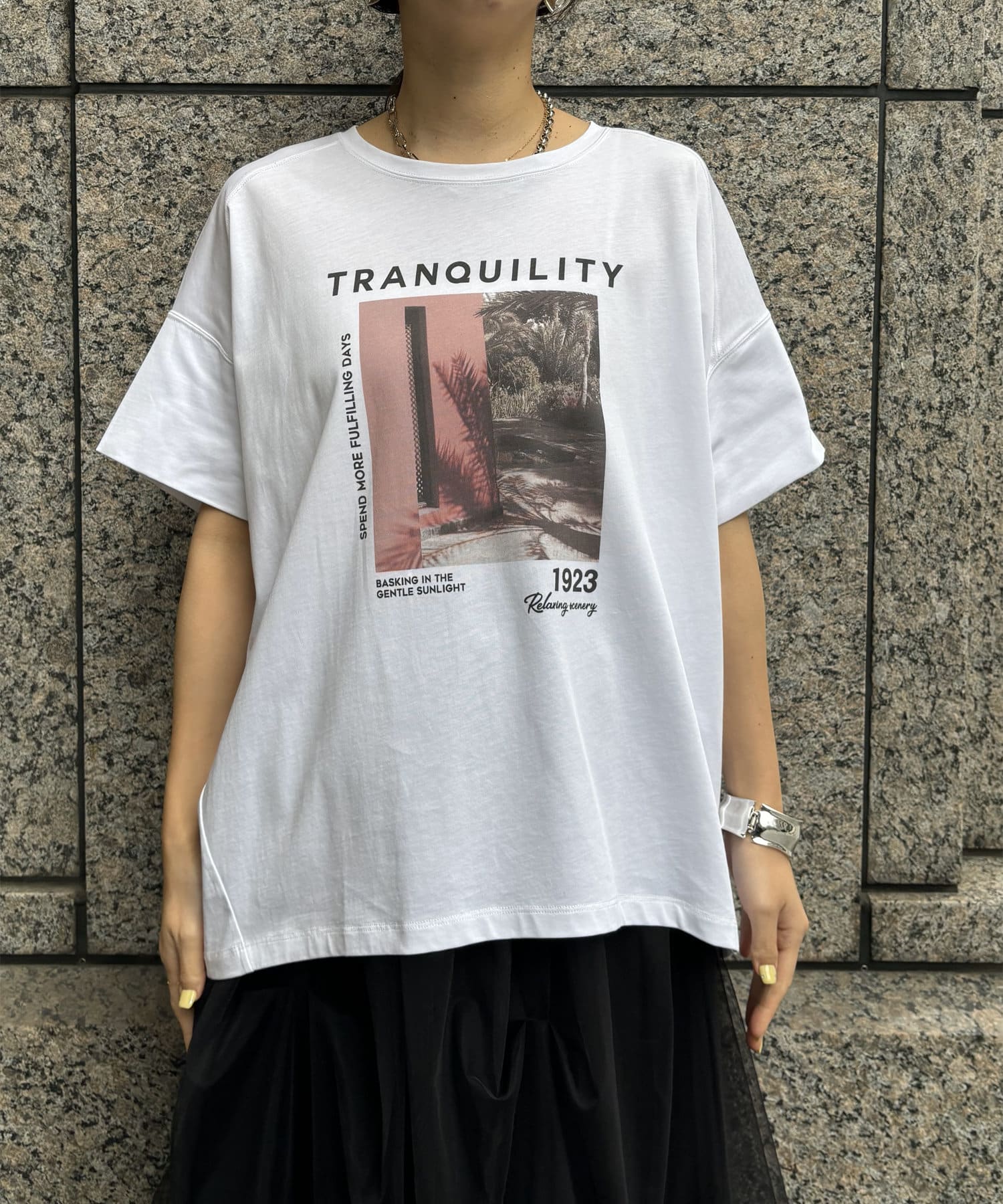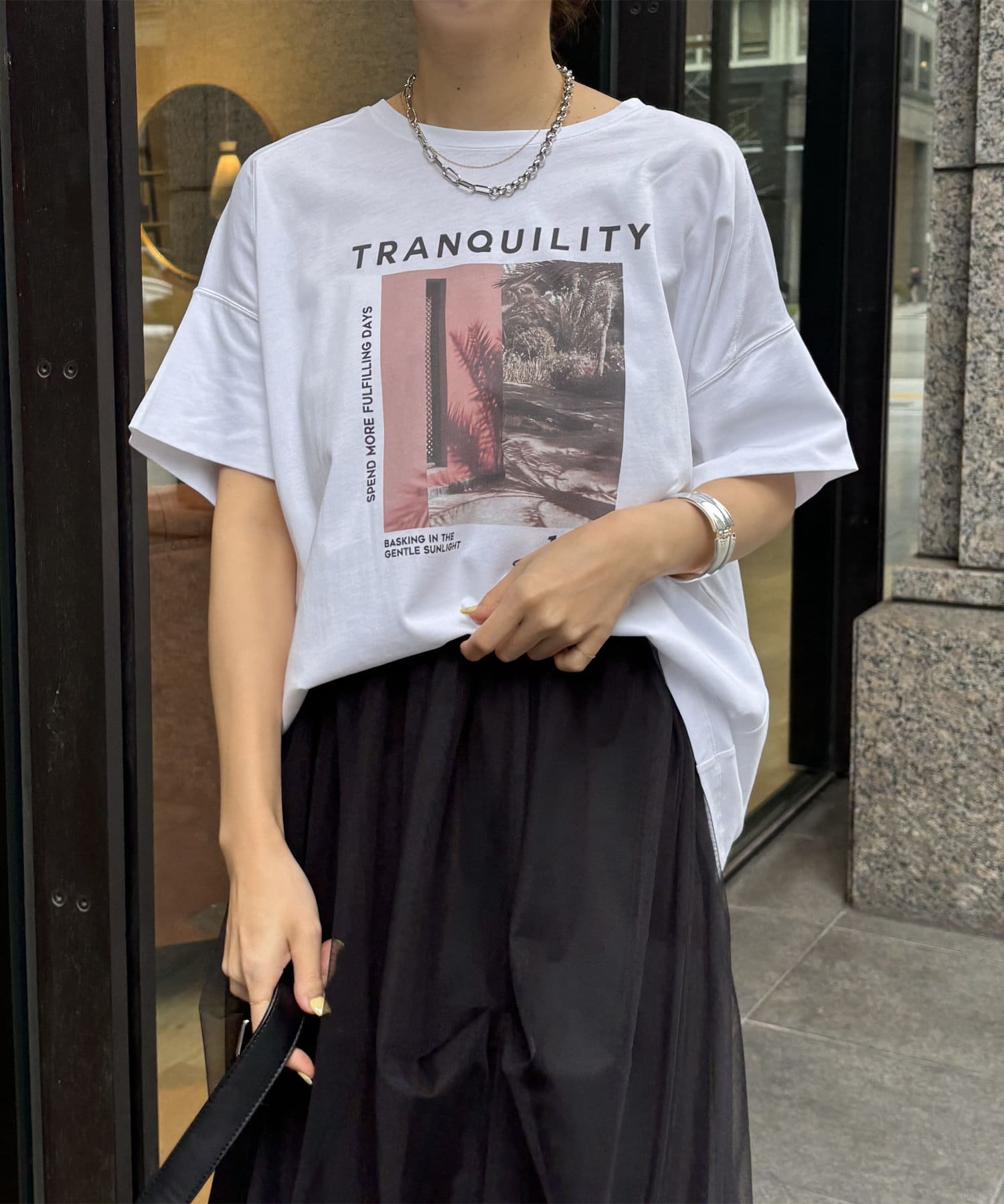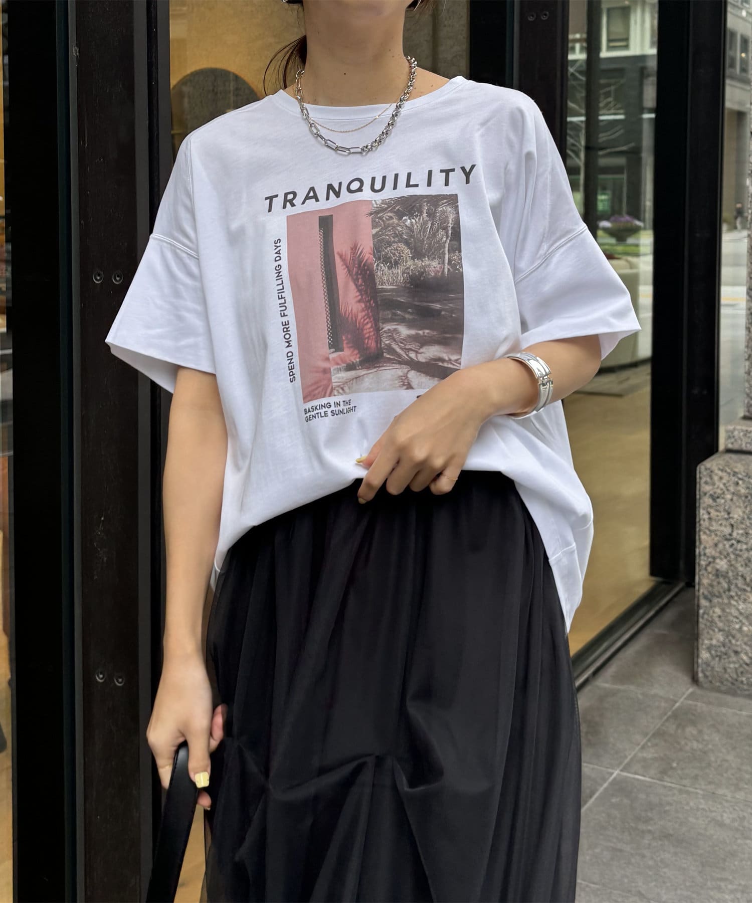 文字はシンプルですが、色味のあるフォトプリントが大人なフェミニンをプラスしてくれます!