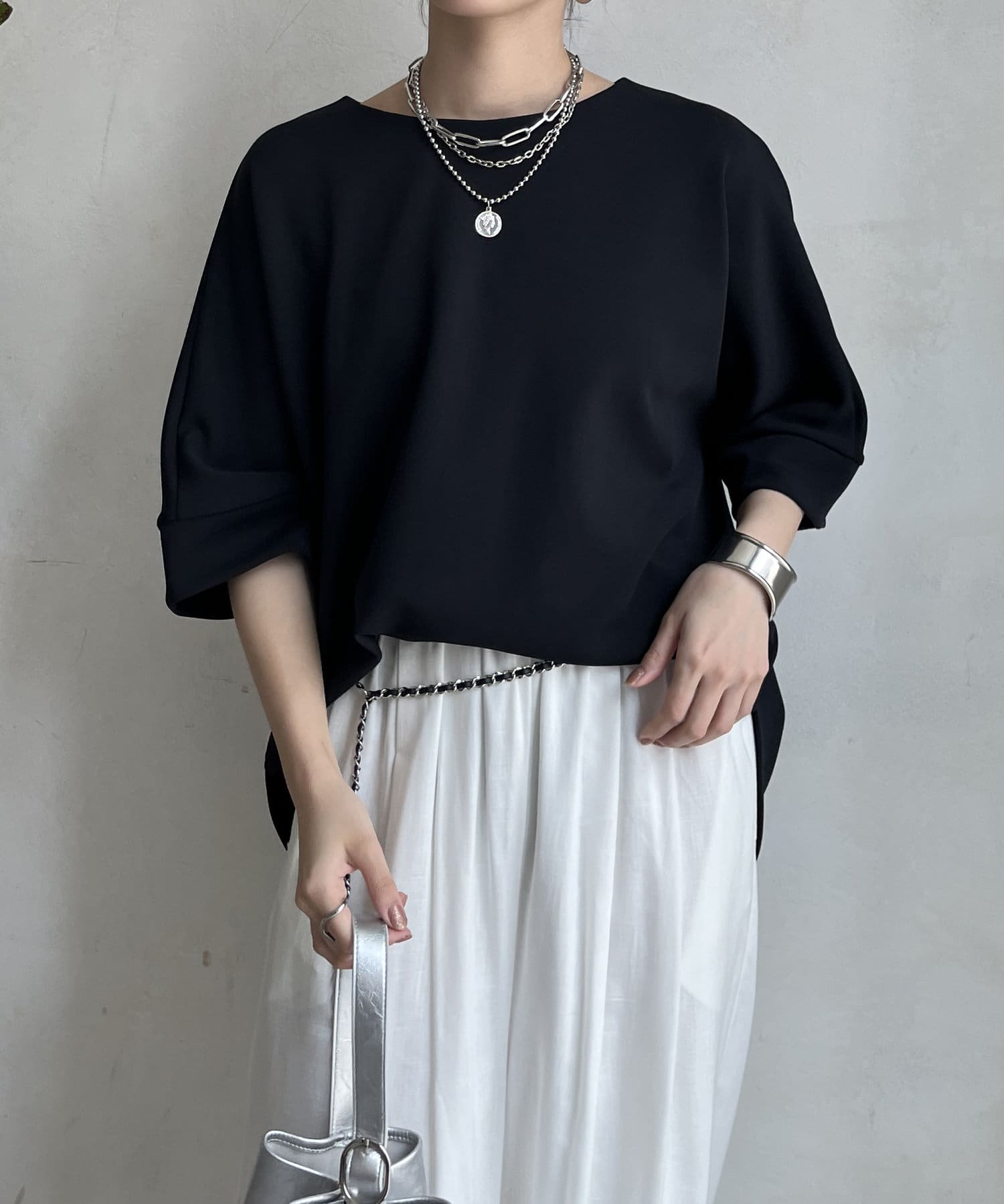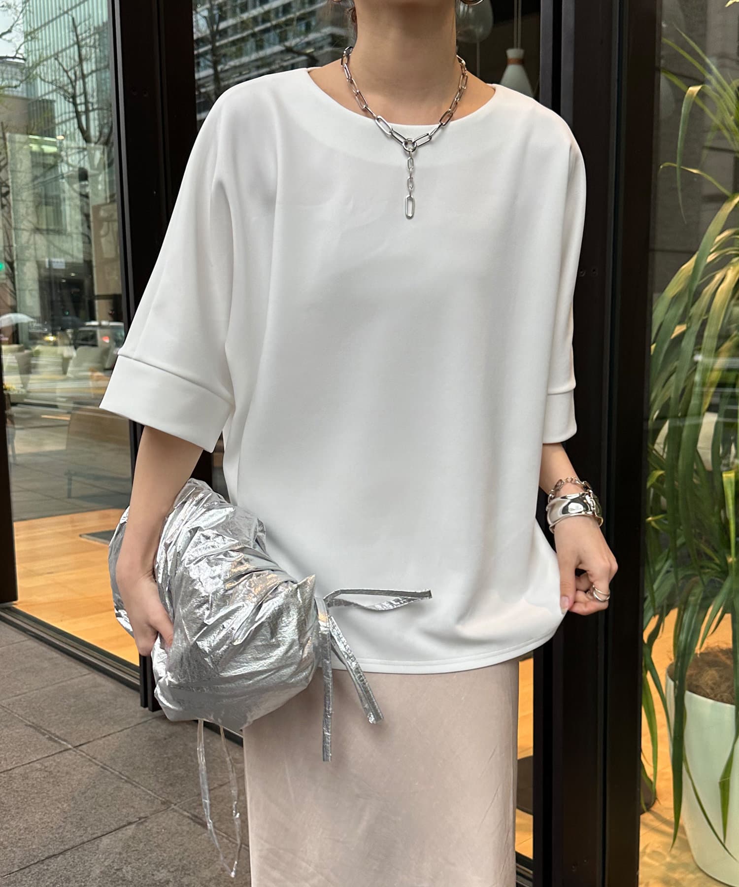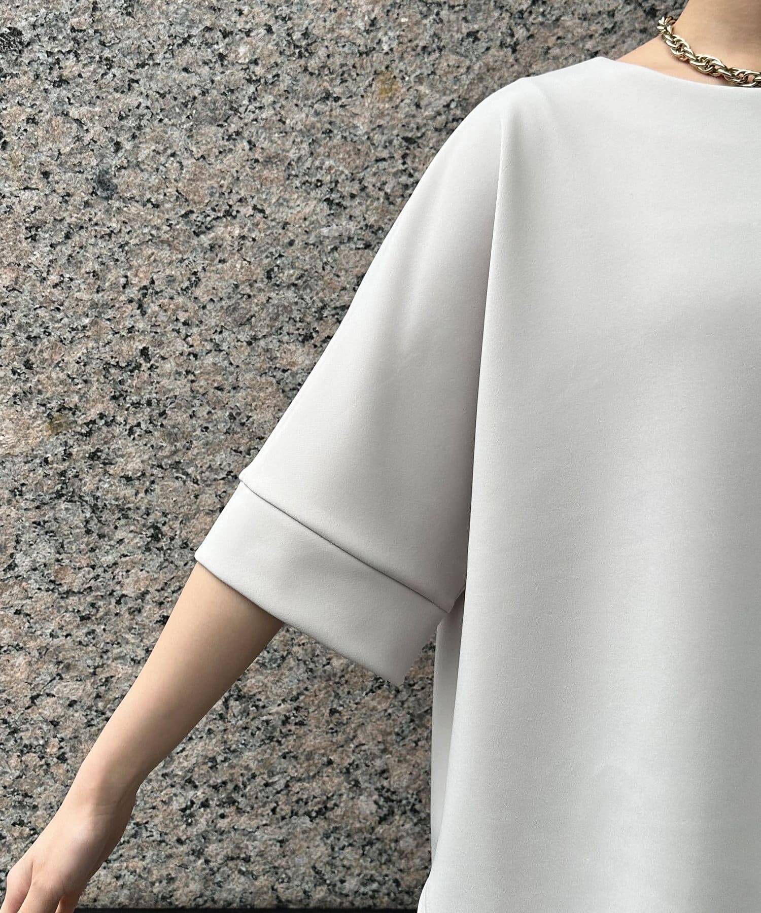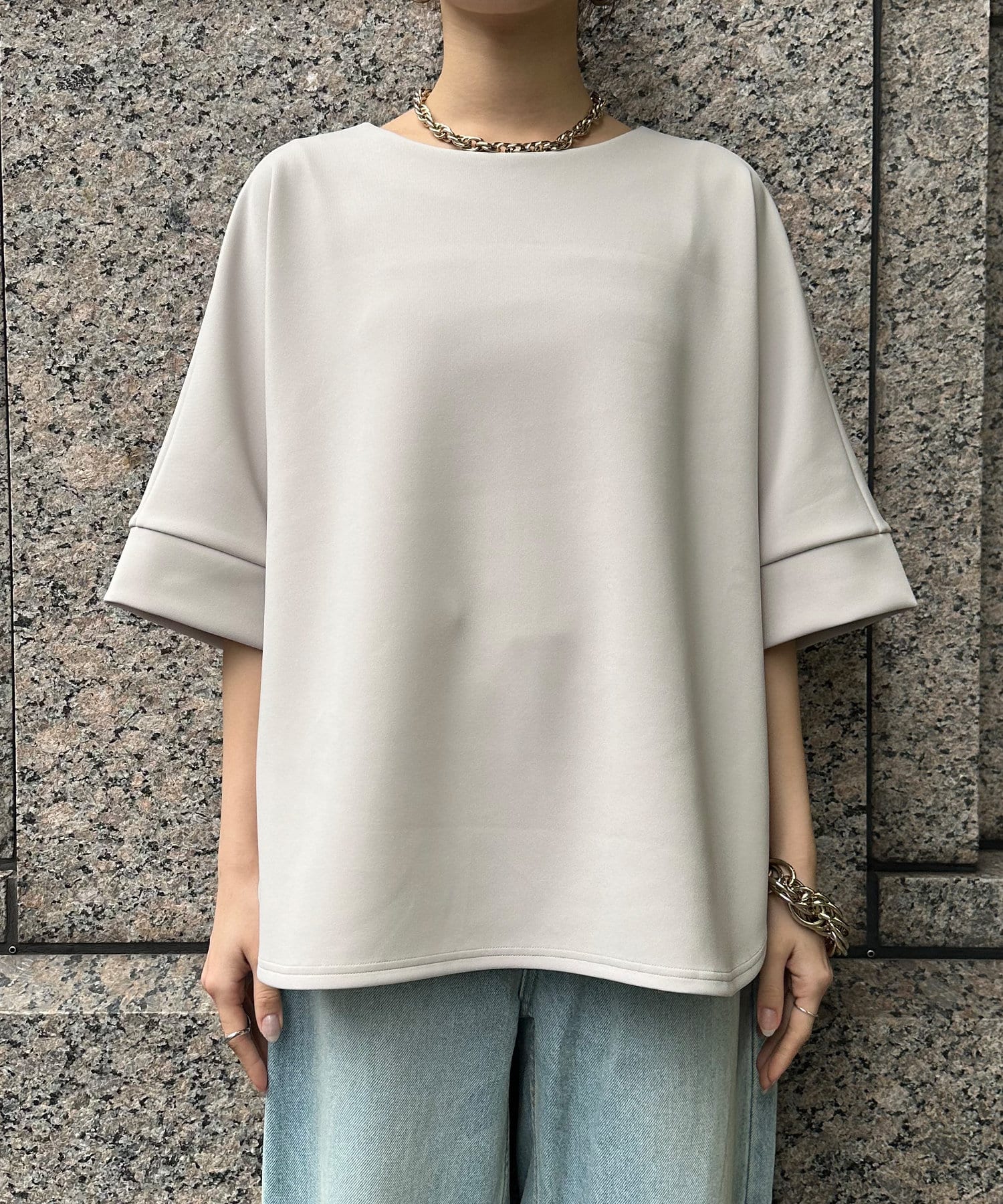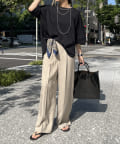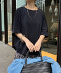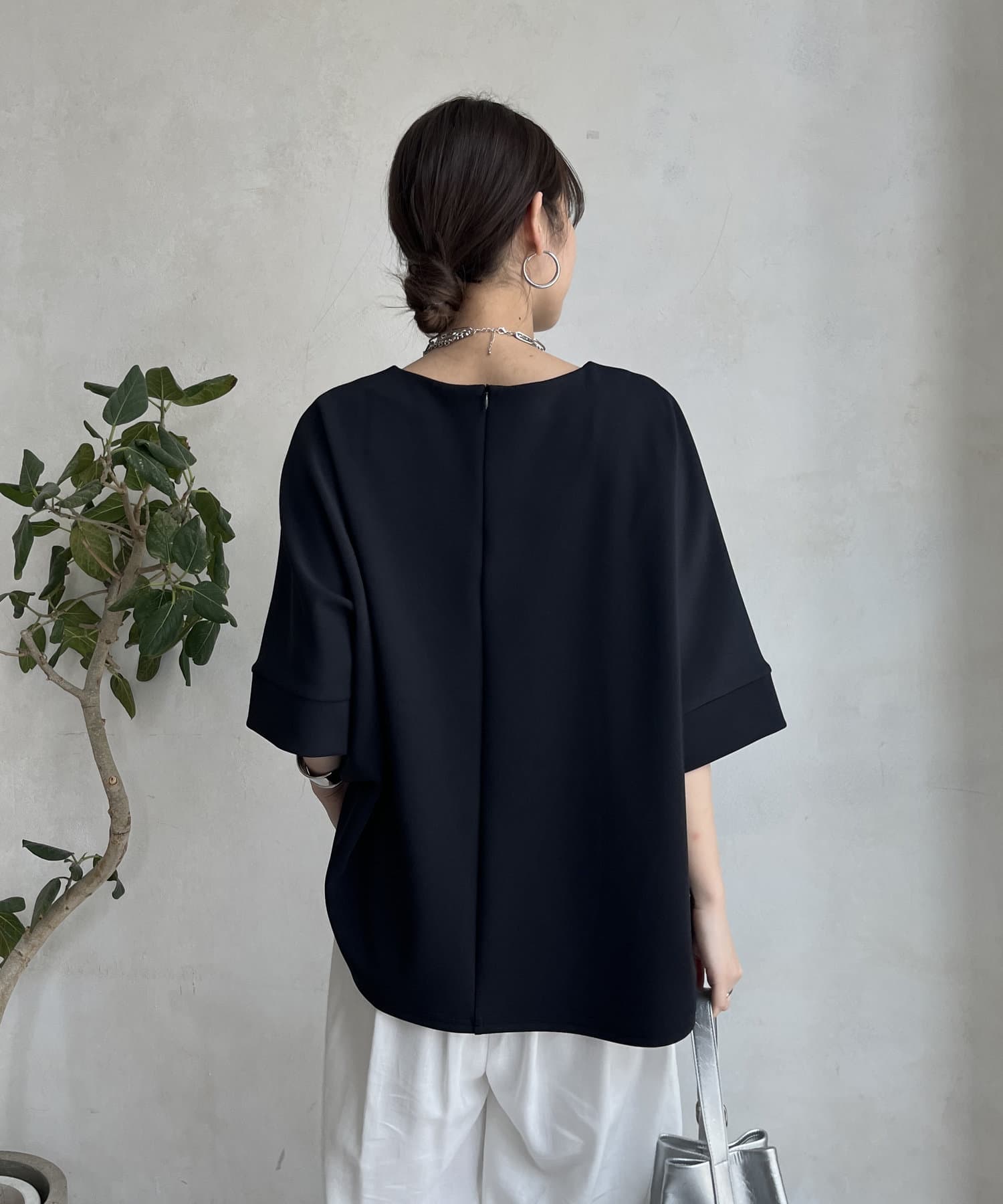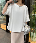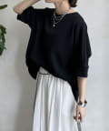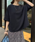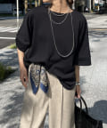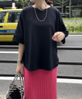 フラットな表面感で、通常のカットソーよりもきれいめな印象に決まるのがポイントです。