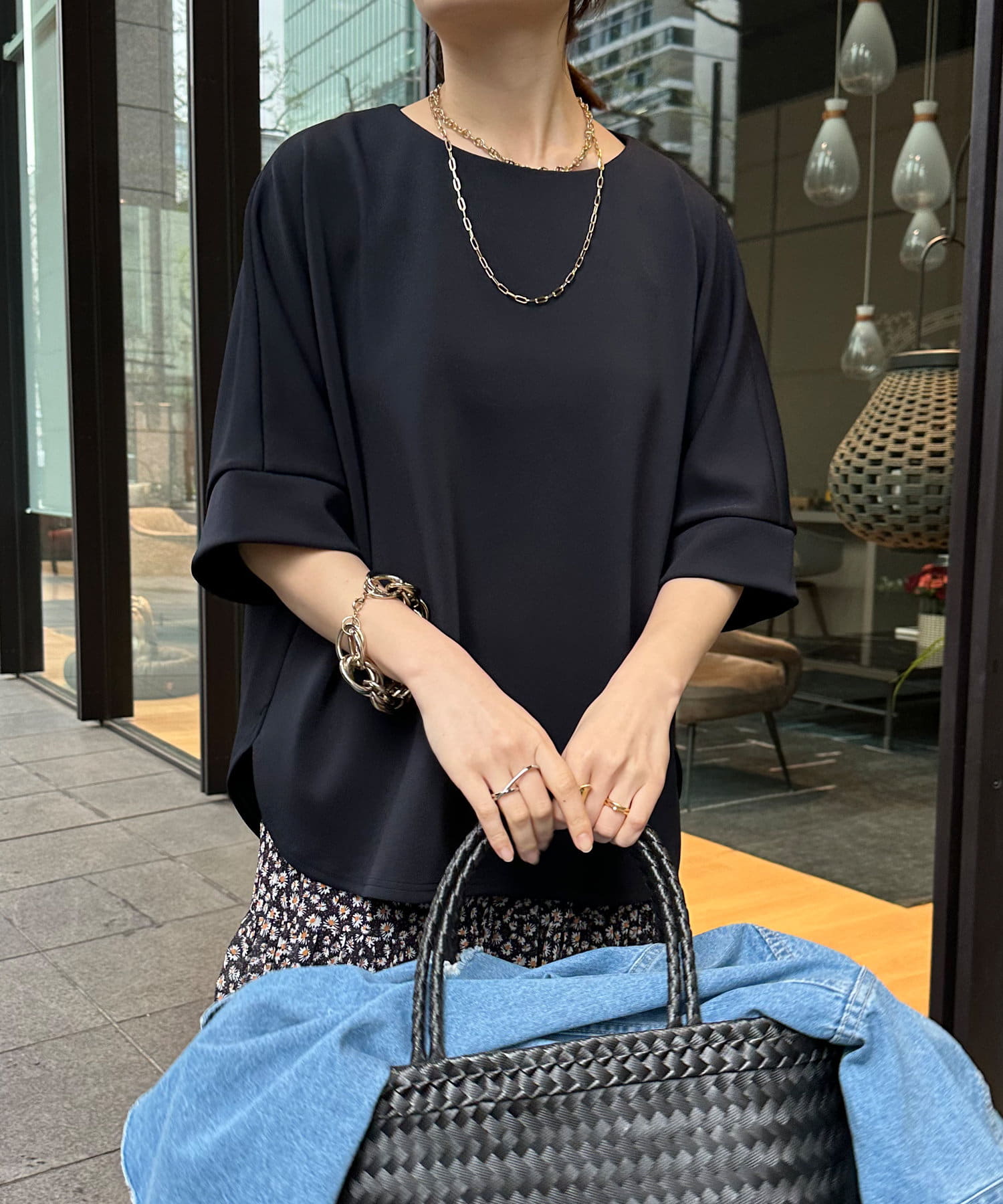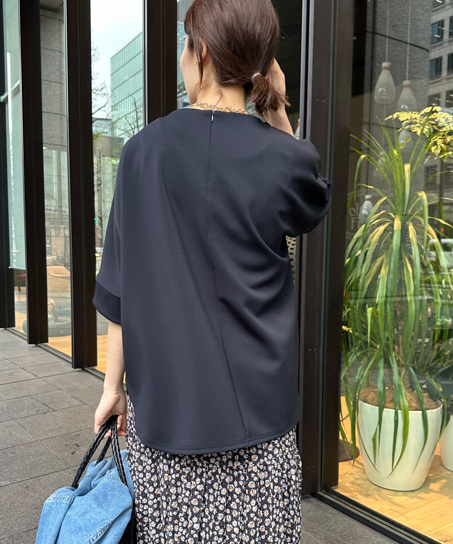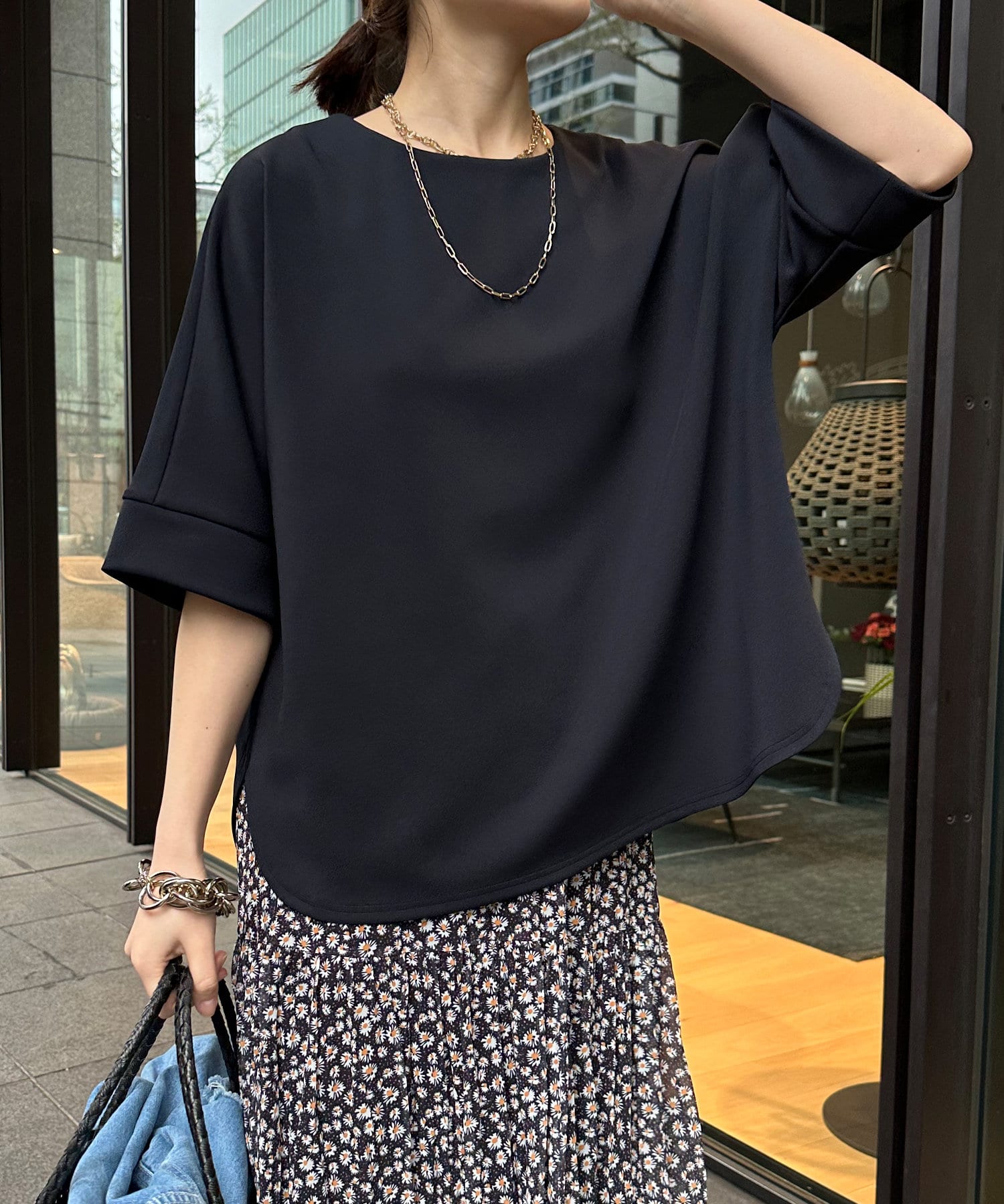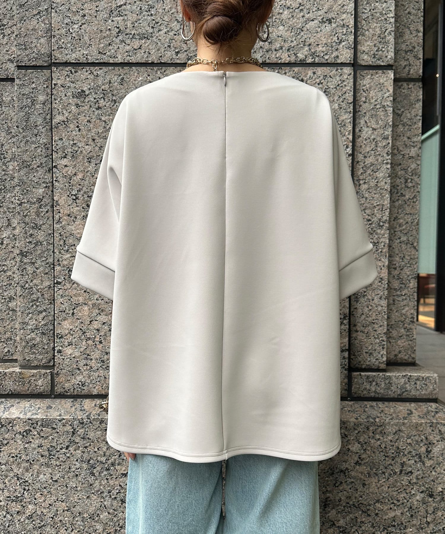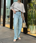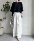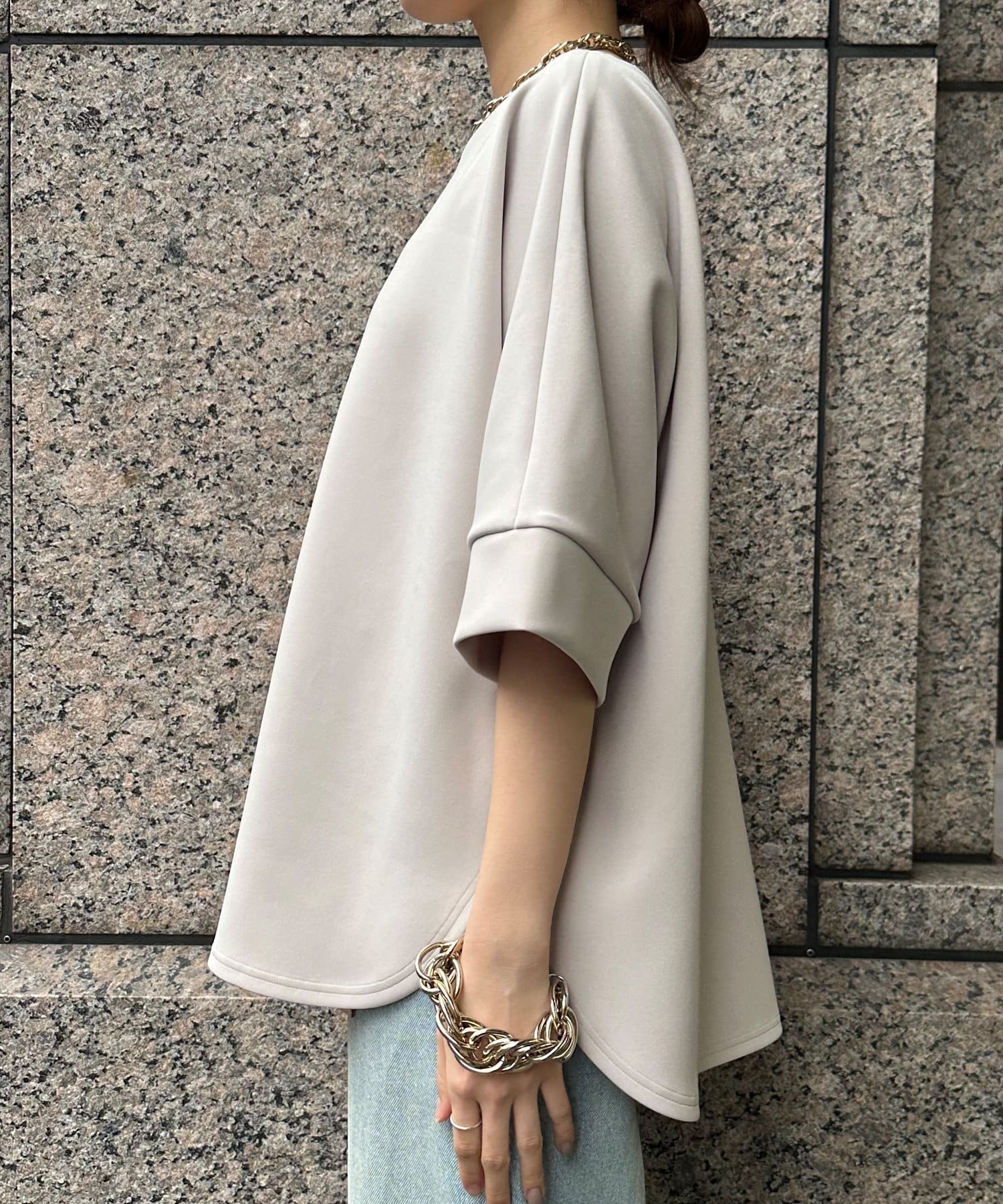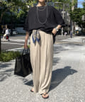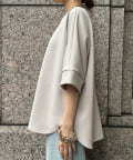 身幅はゆったりと余裕感のあるサイジングに、少し長めの丈感でヒップや腰回りをカバー。前後差のある丈感のため、おしゃれさもプラスしてくれます。