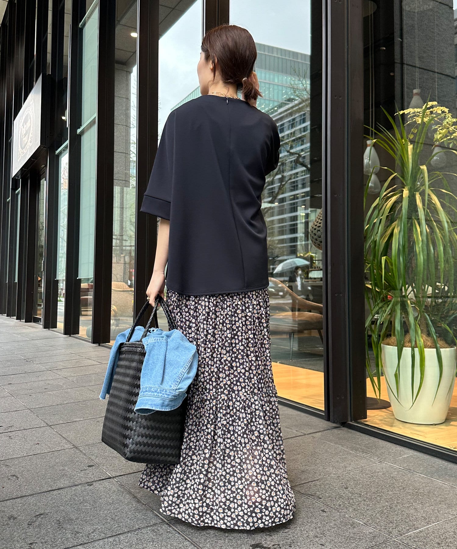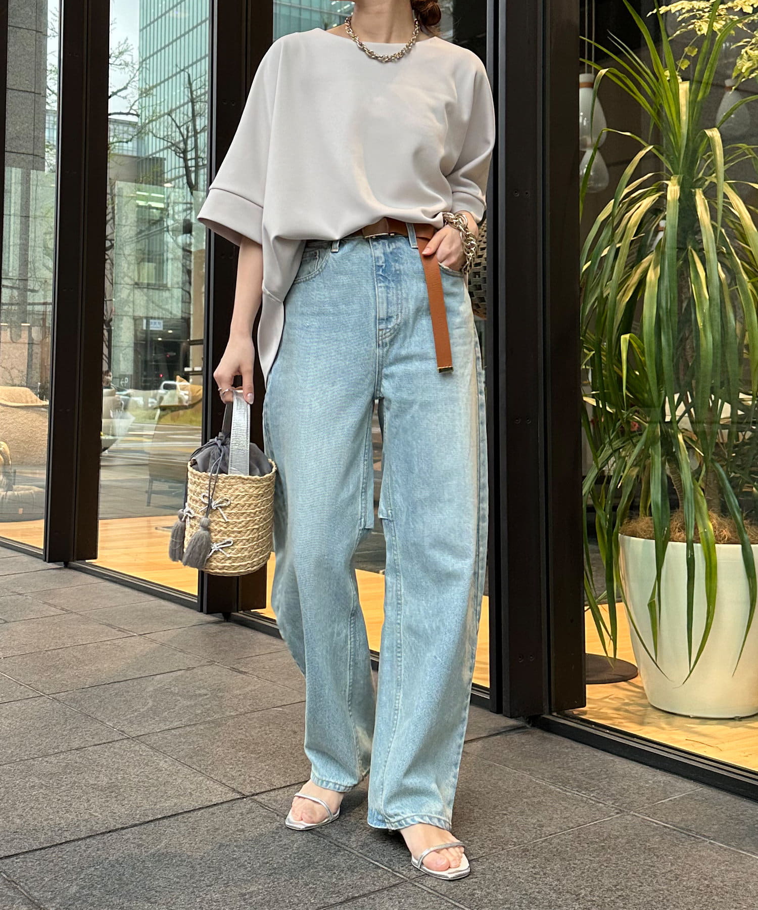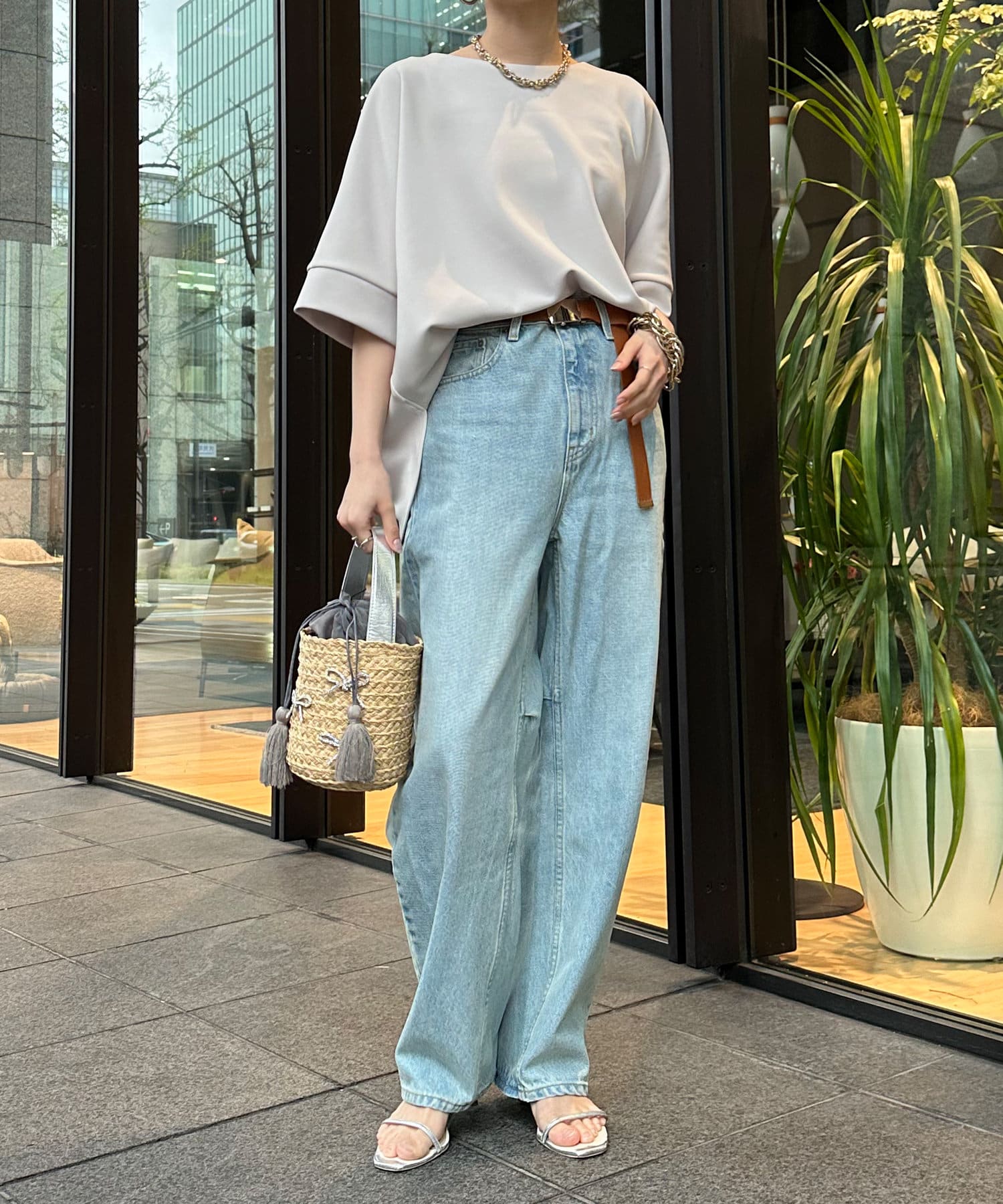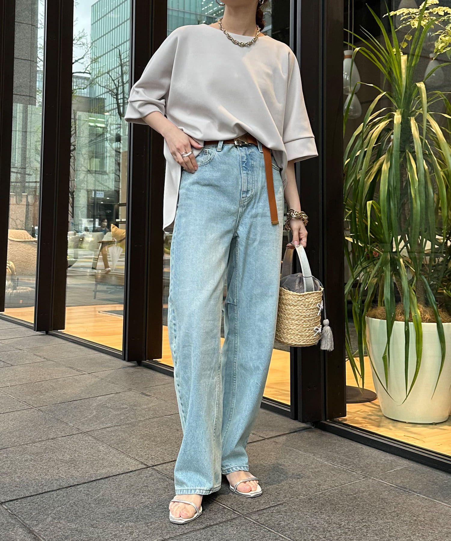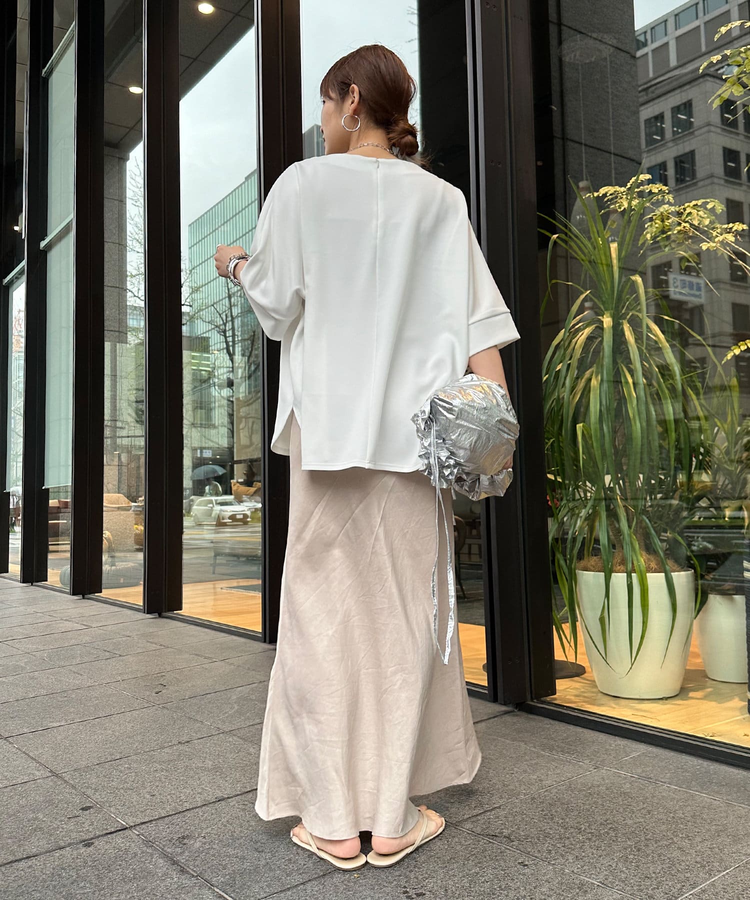 身幅はゆったりと余裕感のあるサイジングに、少し長めの丈感でヒップや腰回りをカバー。前後差のある丈感のため、おしゃれさもプラスしてくれます。