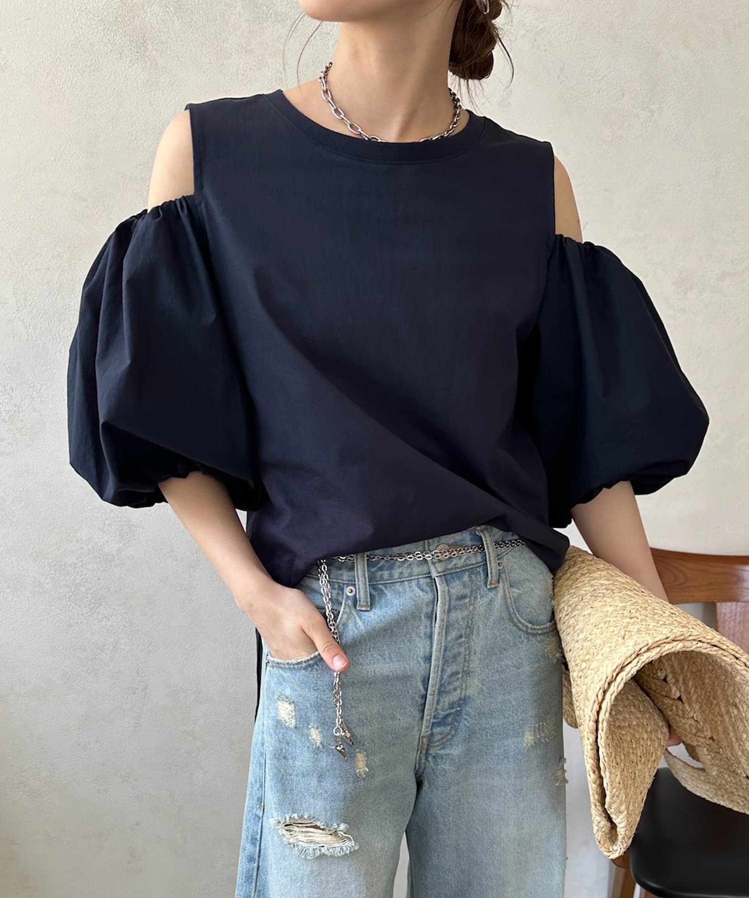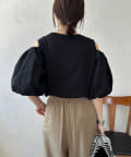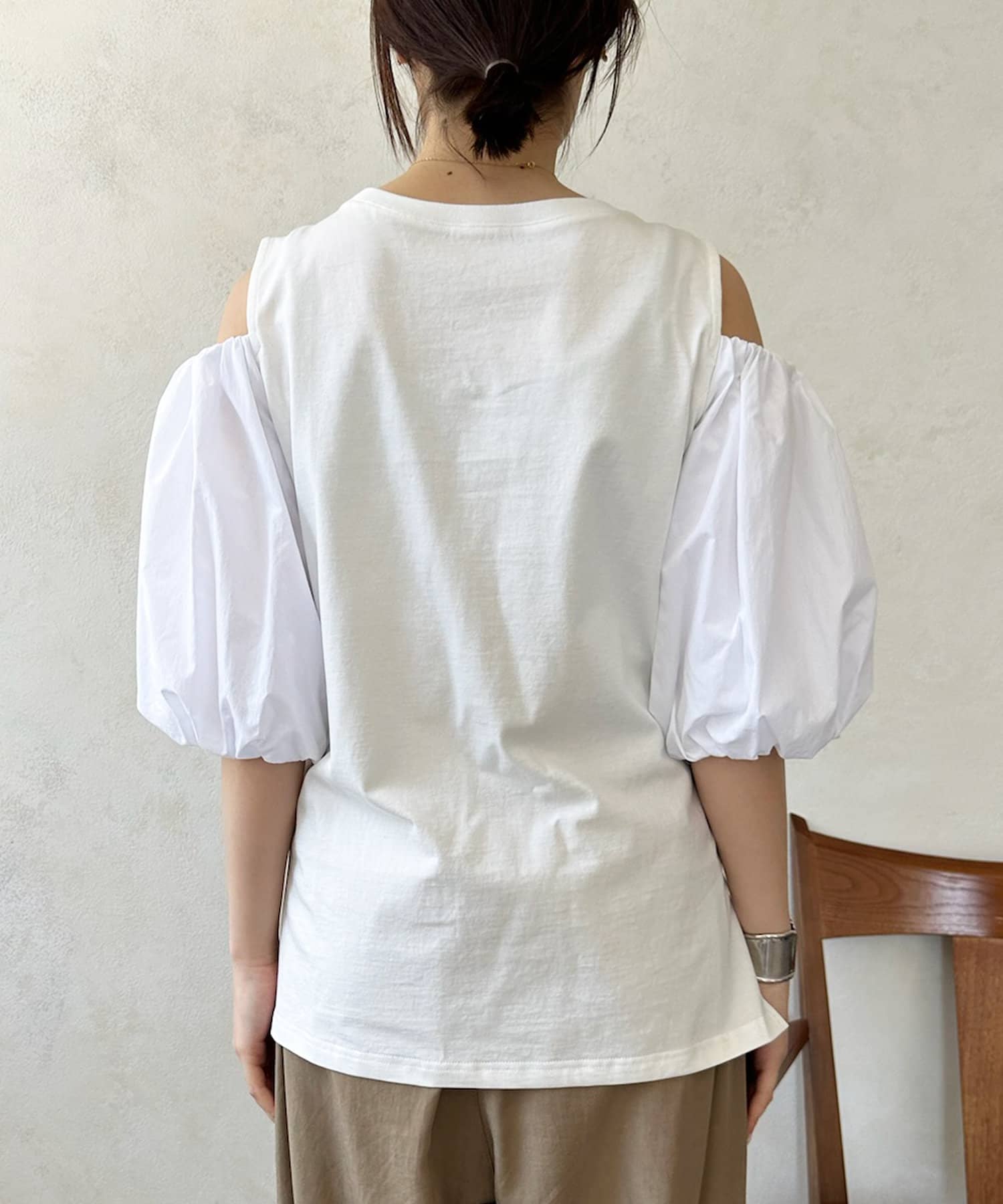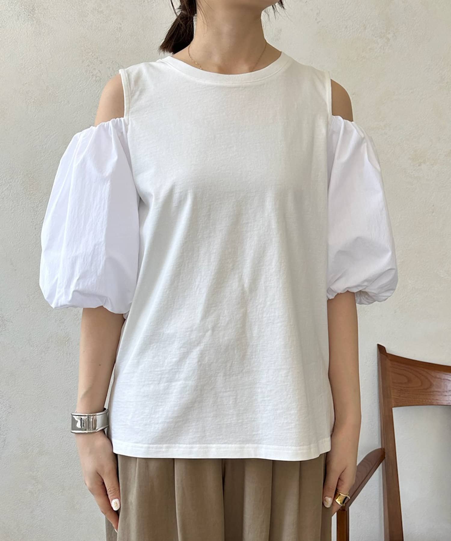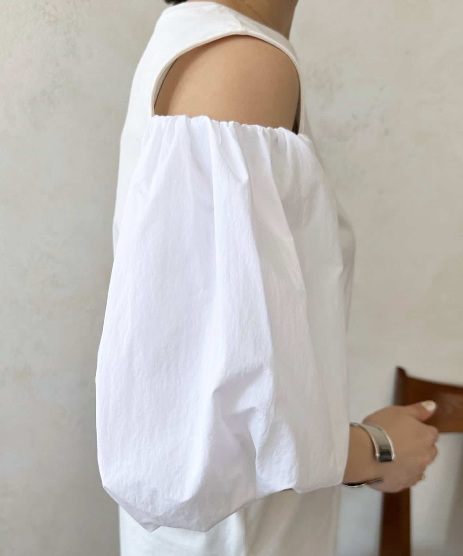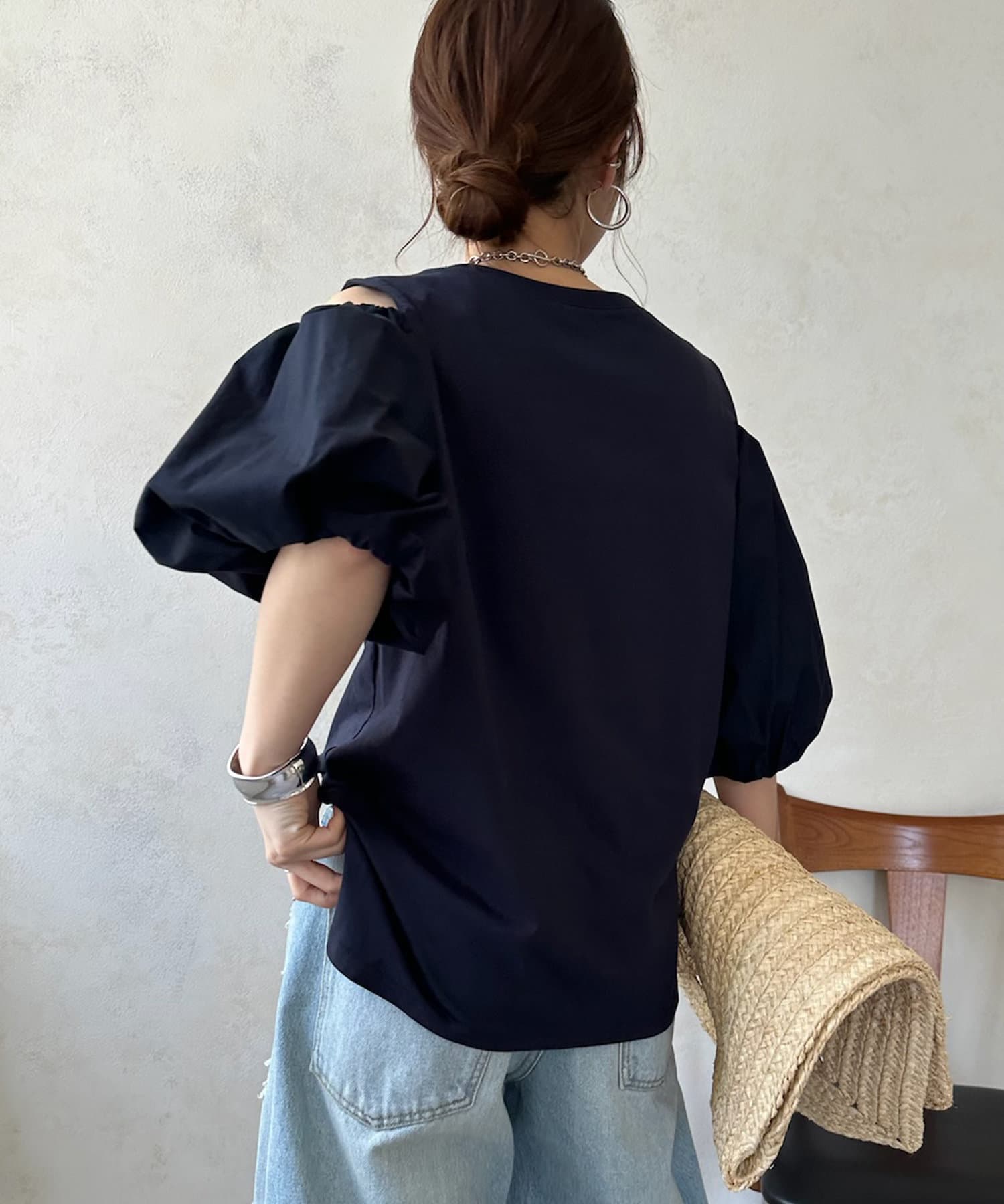 ショルダー部分にスリットを施し、お袖は異素材に。ふんわりと膨らむシルエットが魅力的です。