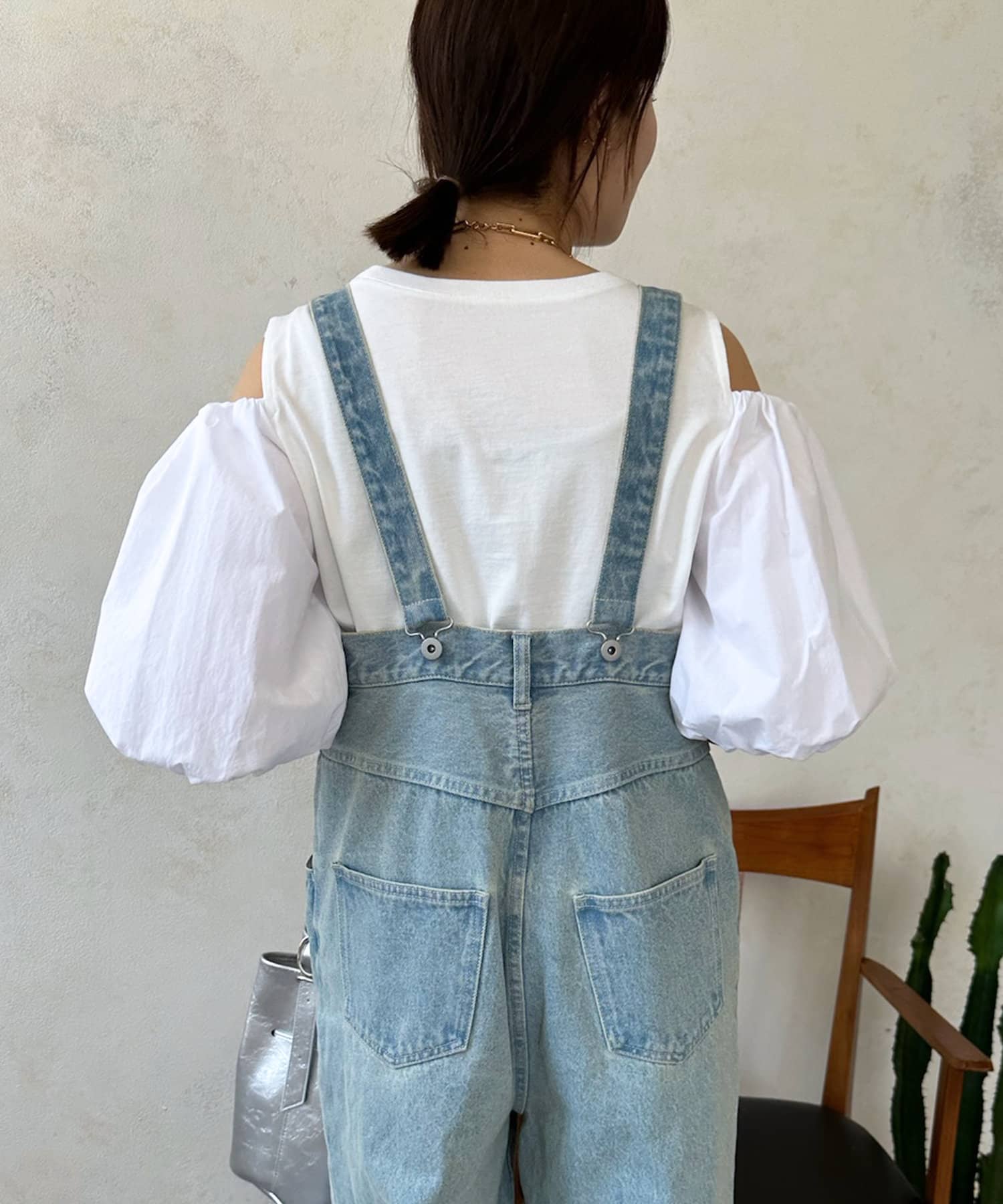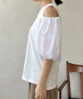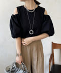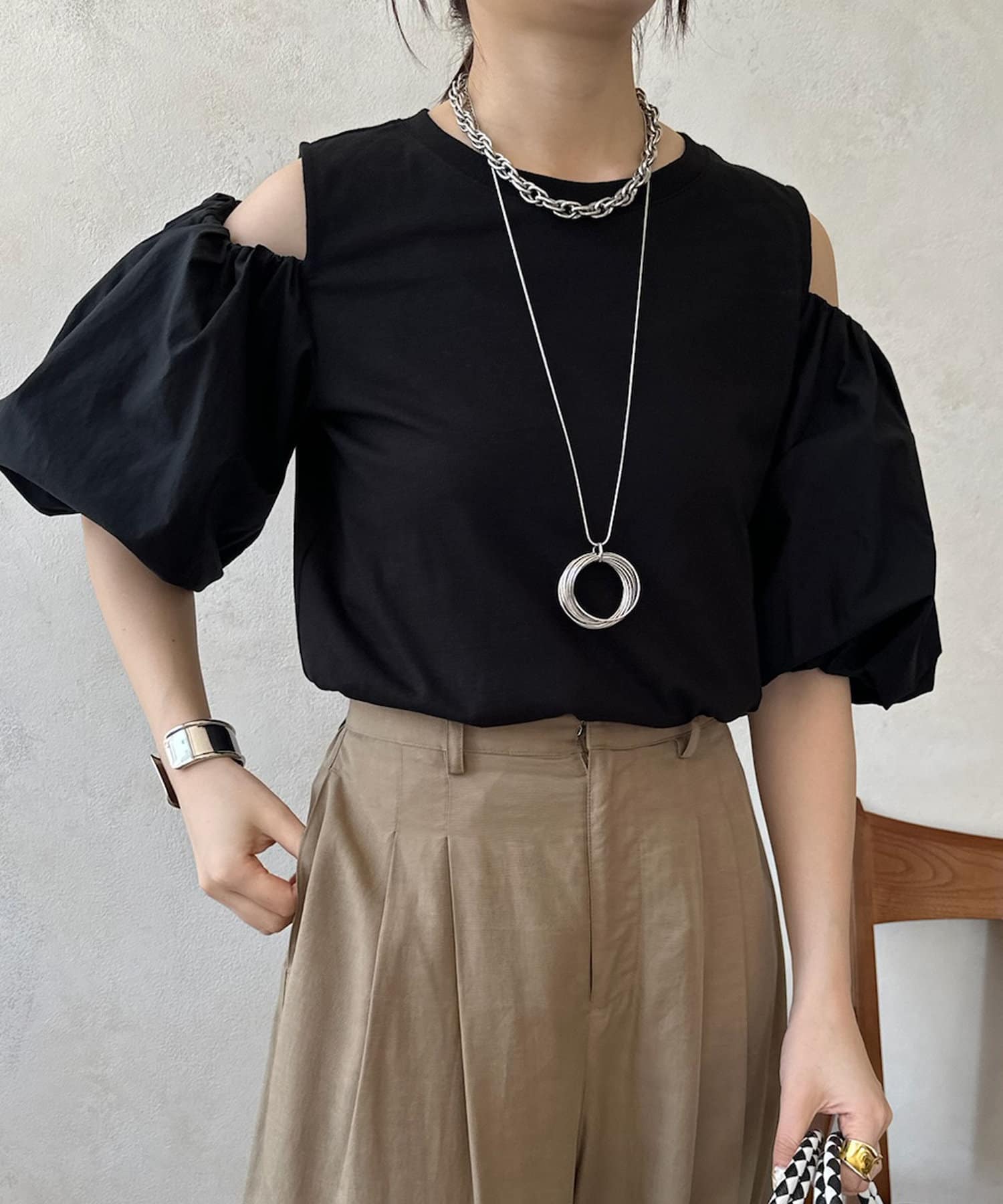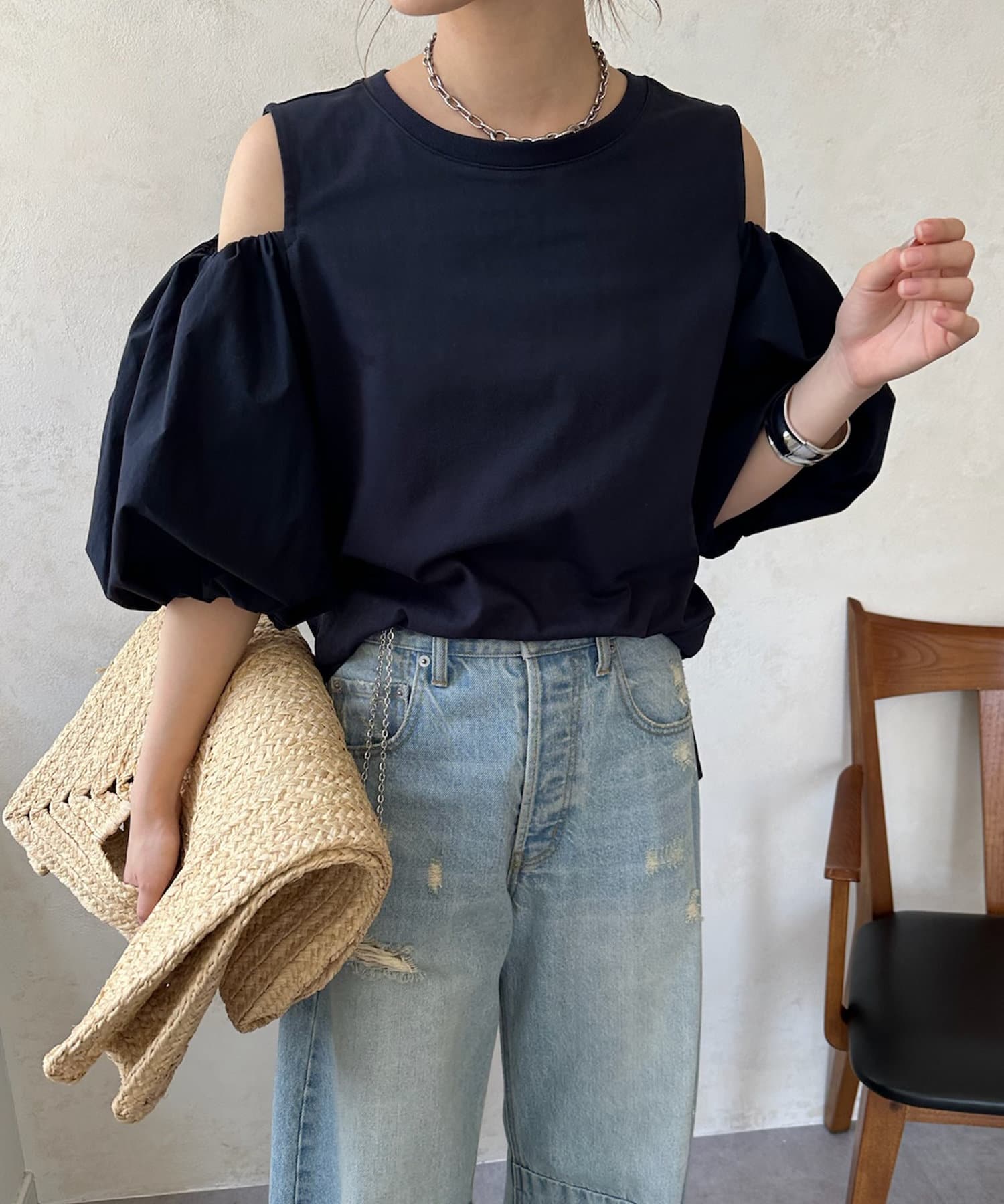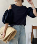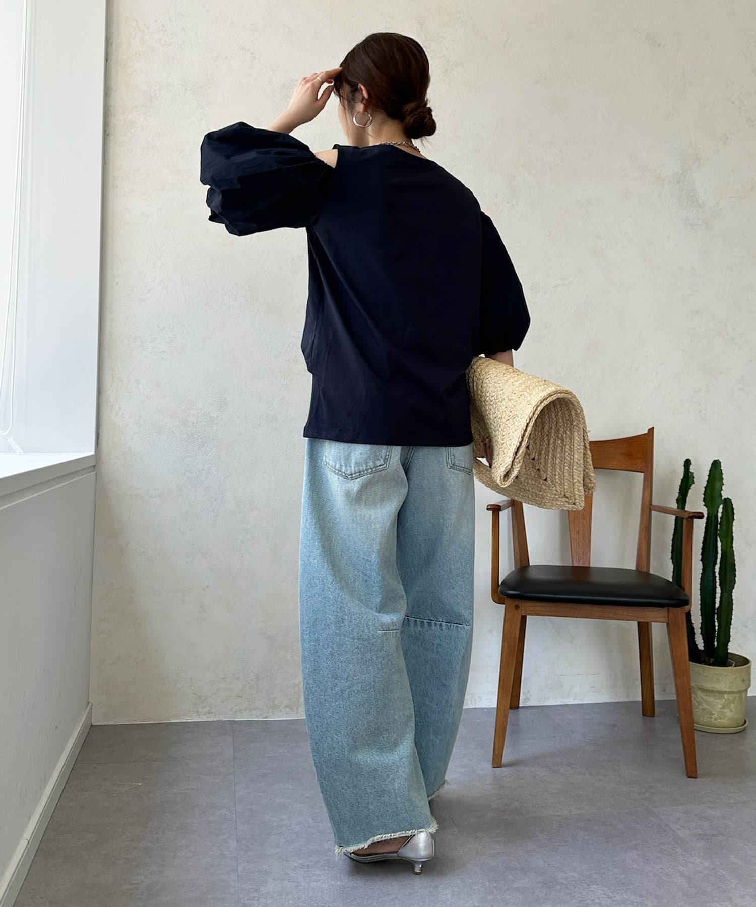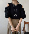 ショルダー部分にスリットを施し、お袖は異素材に。ふんわりと膨らむシルエットが魅力的です。