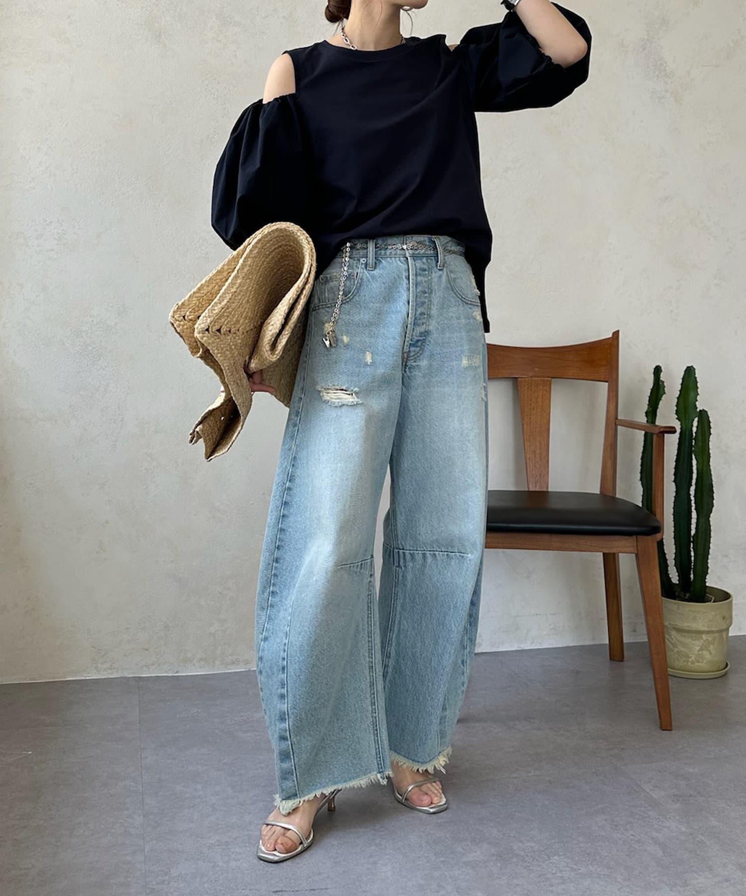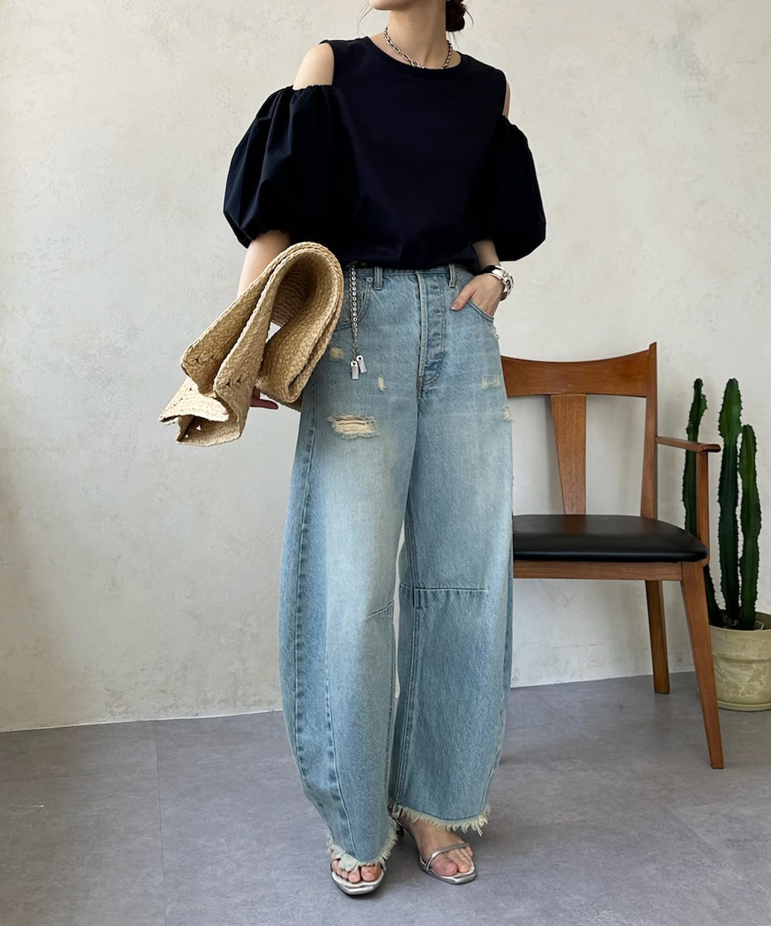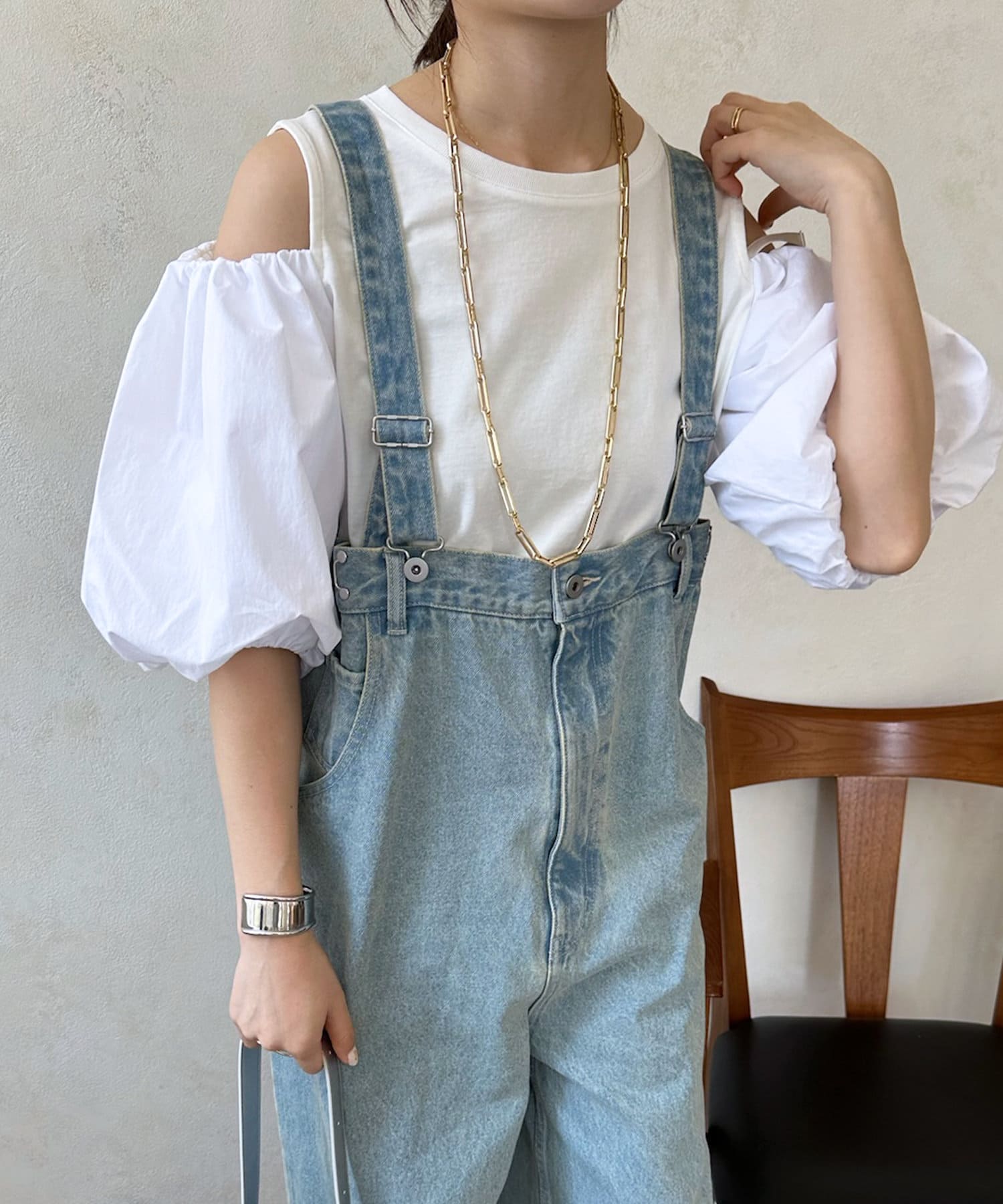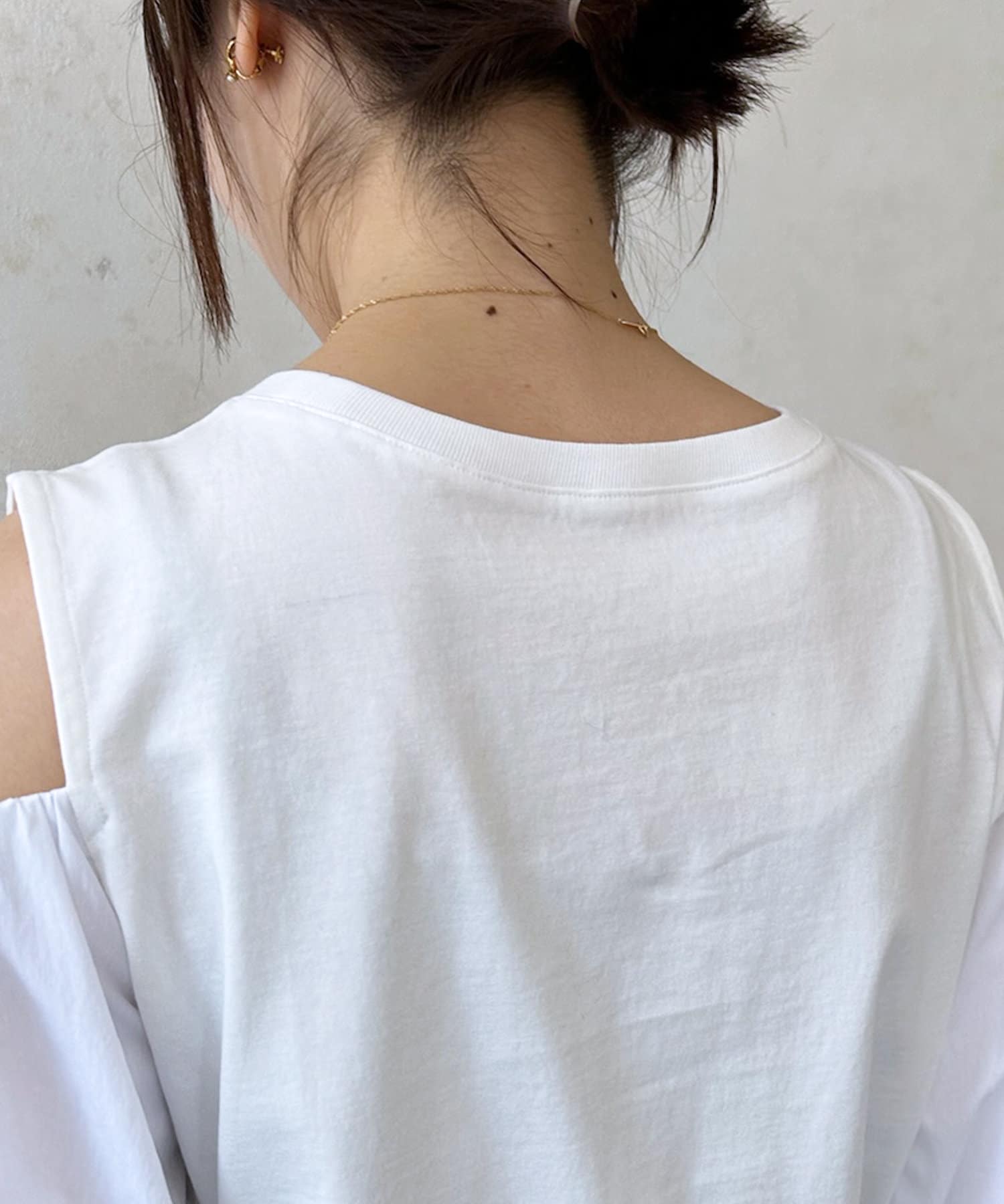 ショルダースリットは、開きすぎないように拘り、大人らしくトレンドライクな印象に。