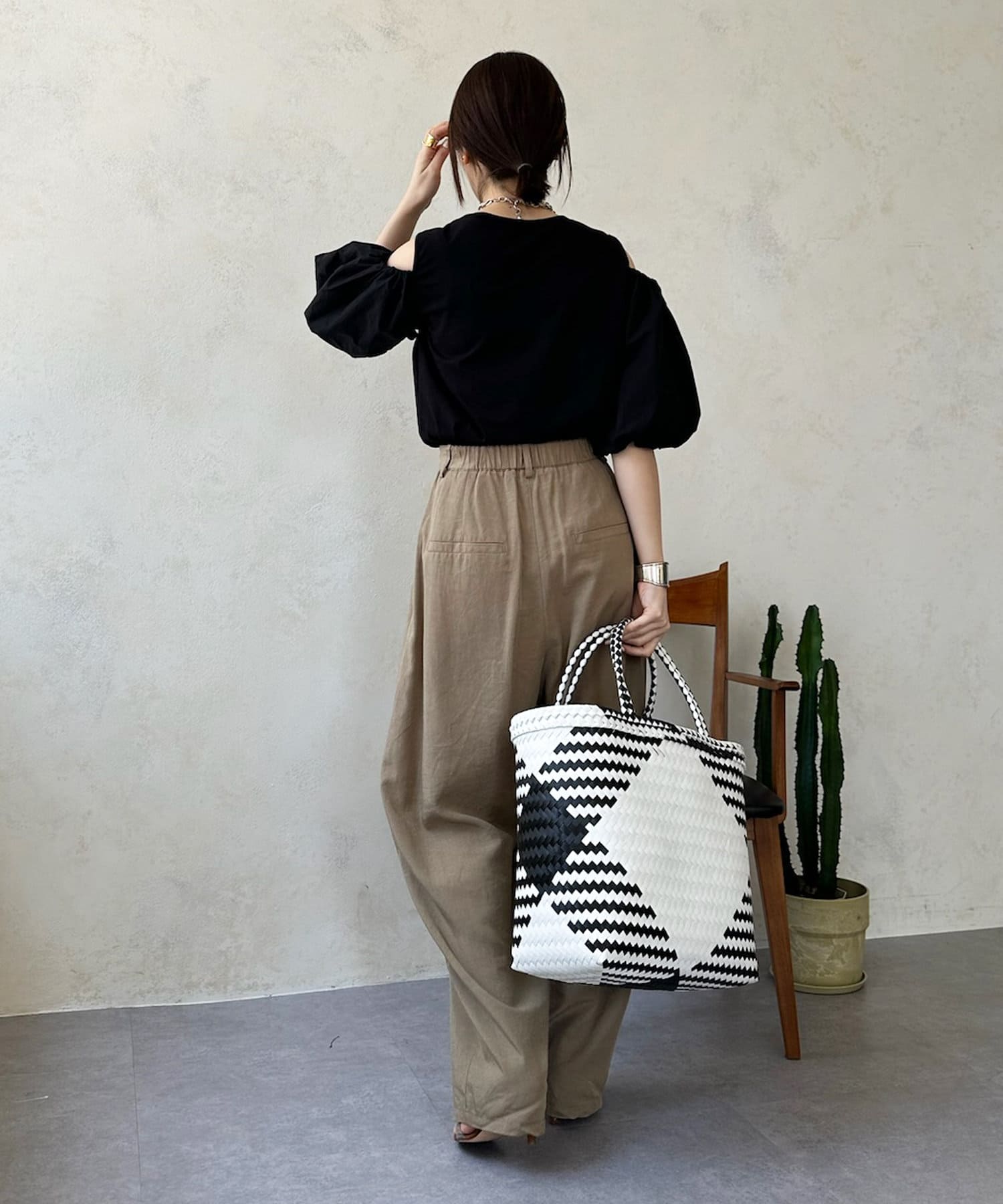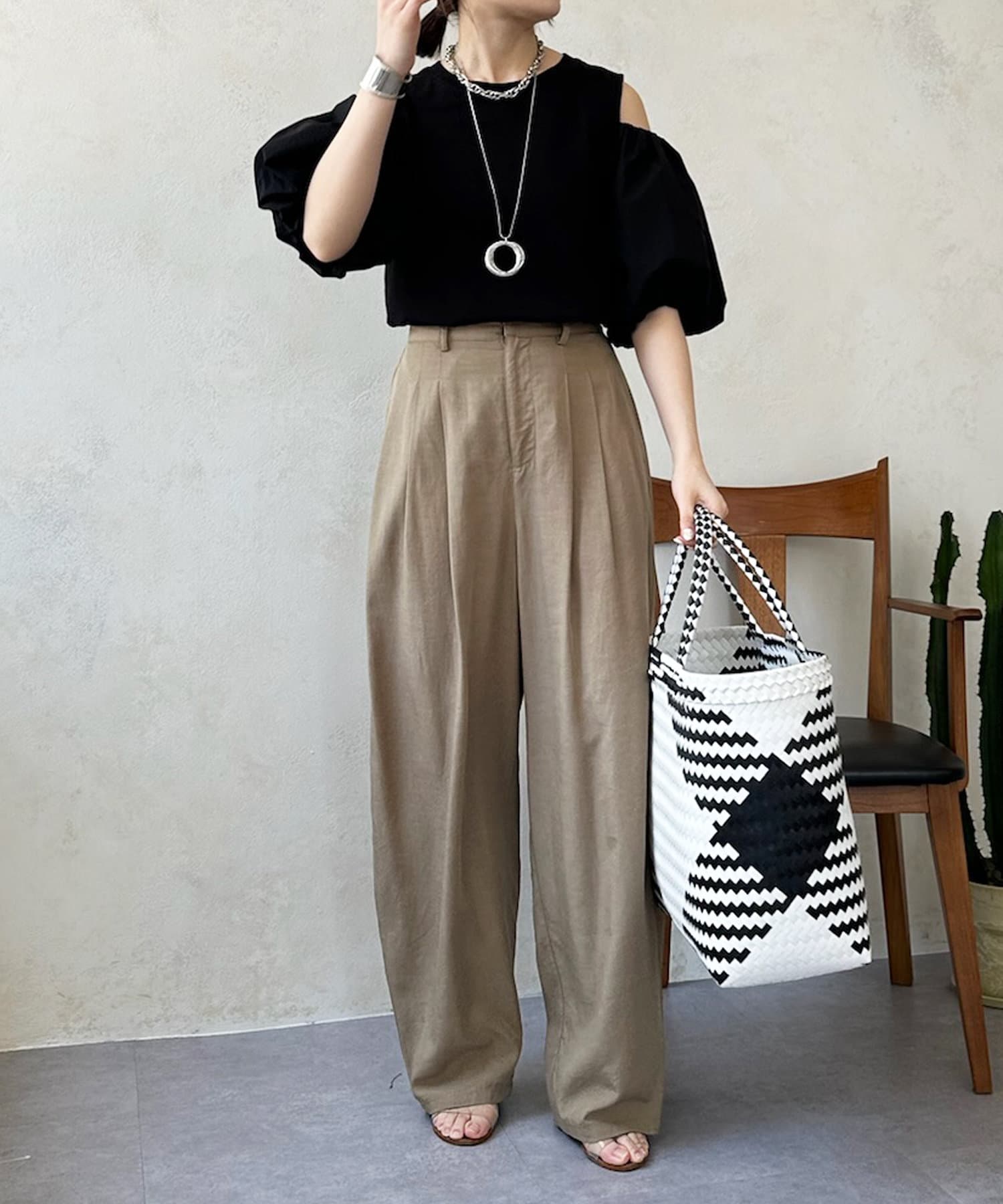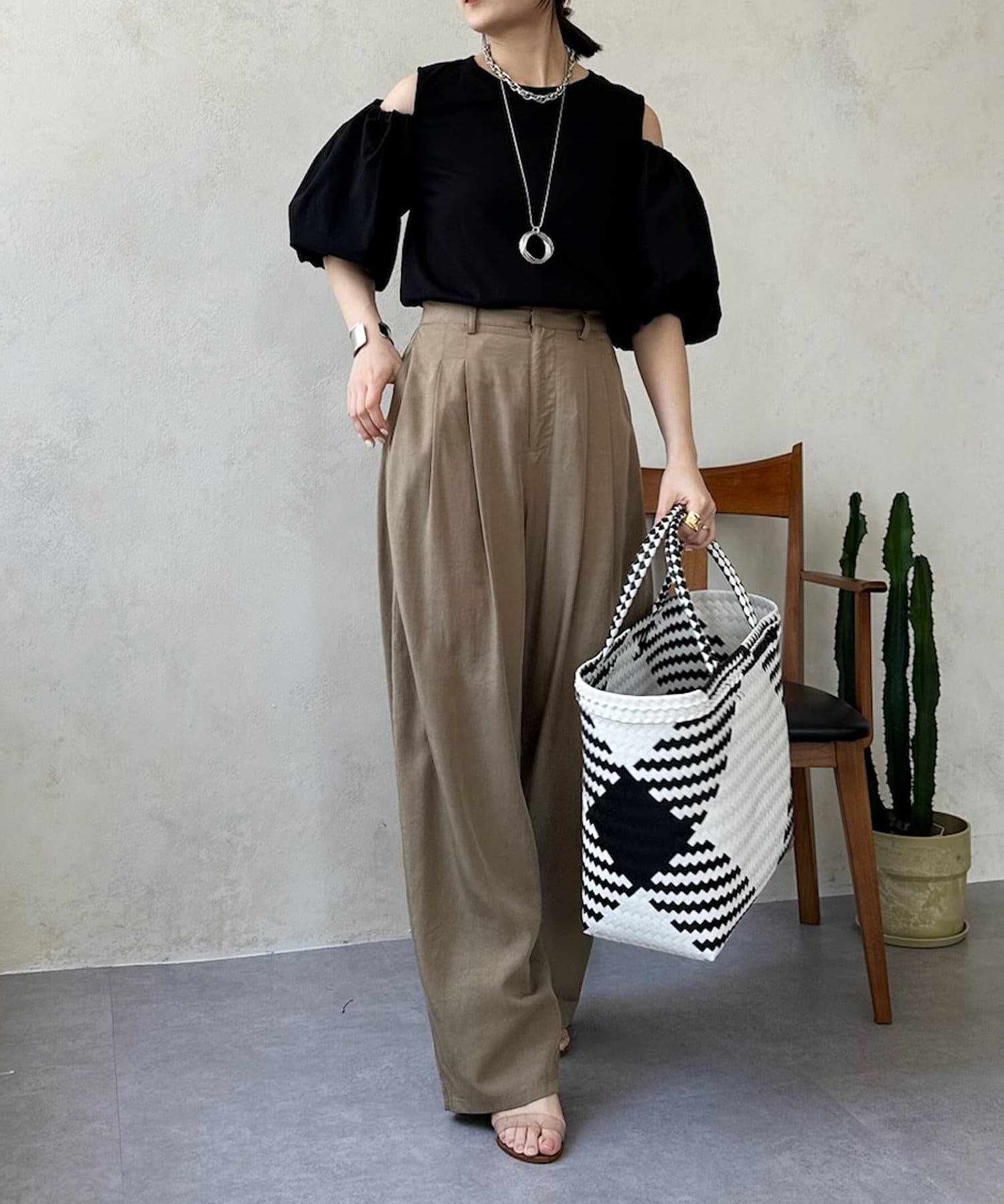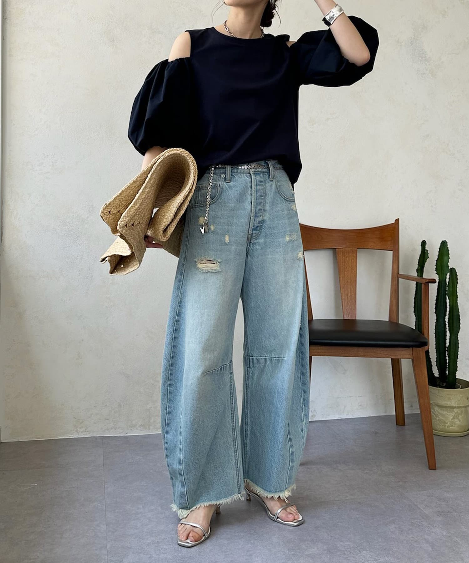 ショルダースリットは、開きすぎないように拘り、大人らしくトレンドライクな印象に。