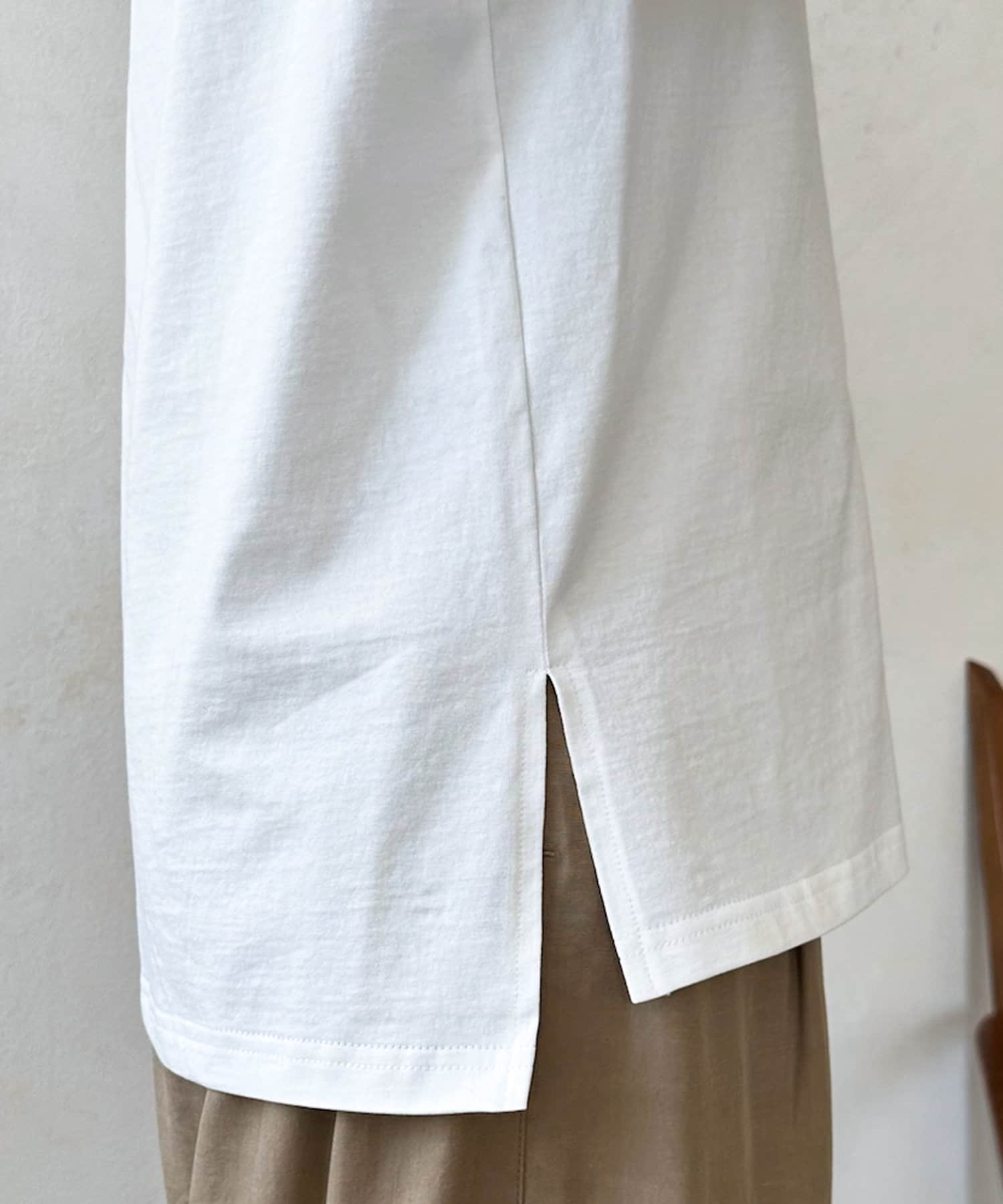 綿素材でありながらも、フラットな表面感できれいめに着ていただけます。