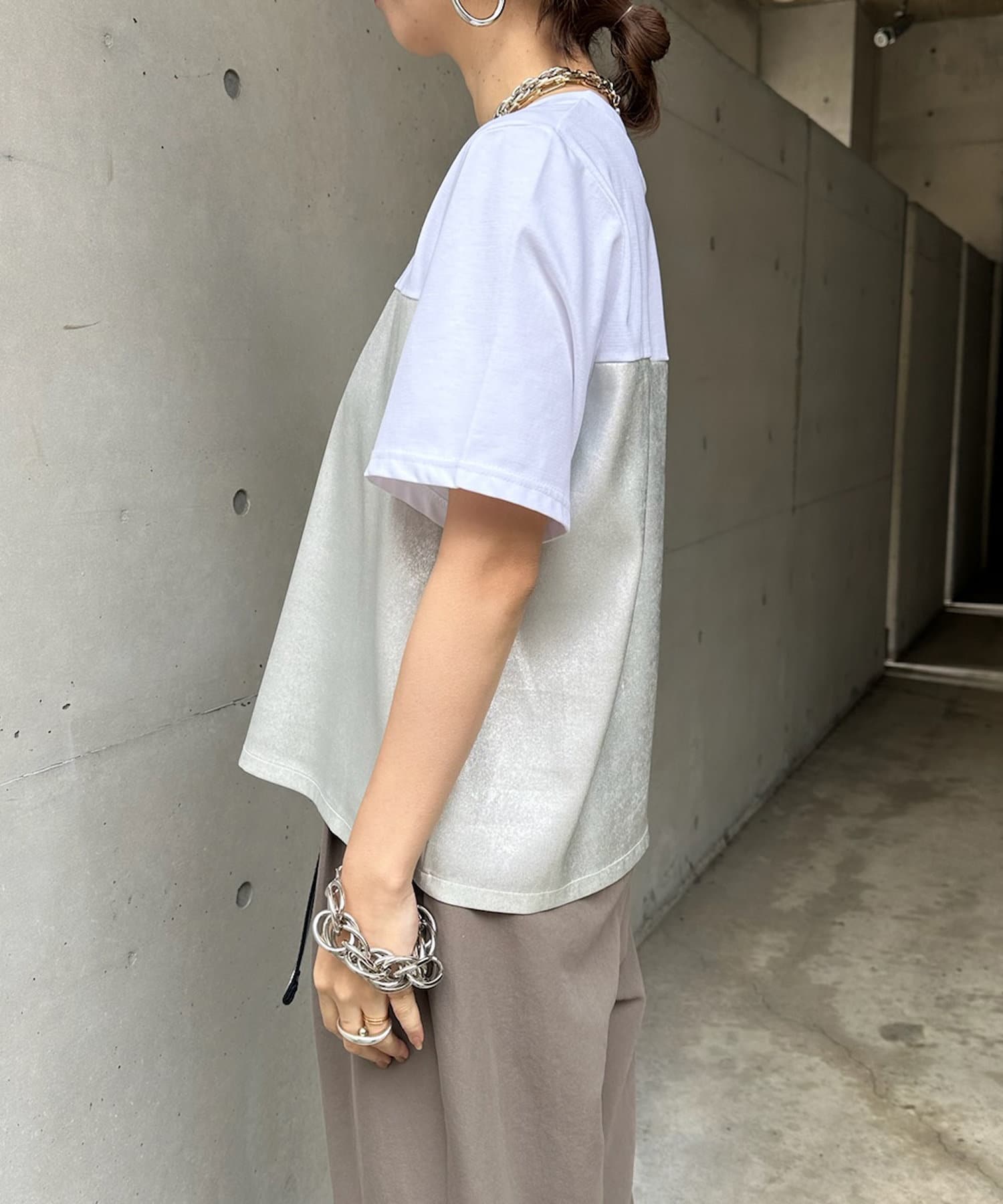 TOP > DOUDOU > レディース > トップス > Tシャツ/カットソー > 【WEB限定】シャイニー切替トップス