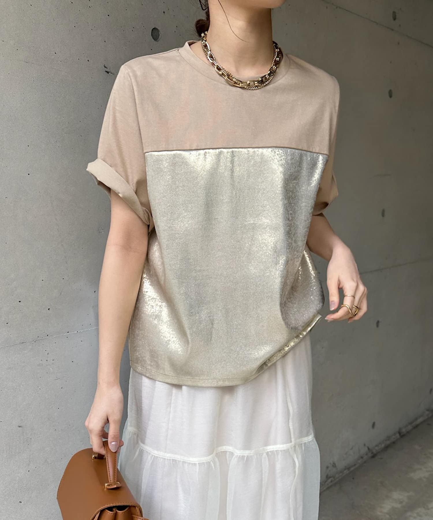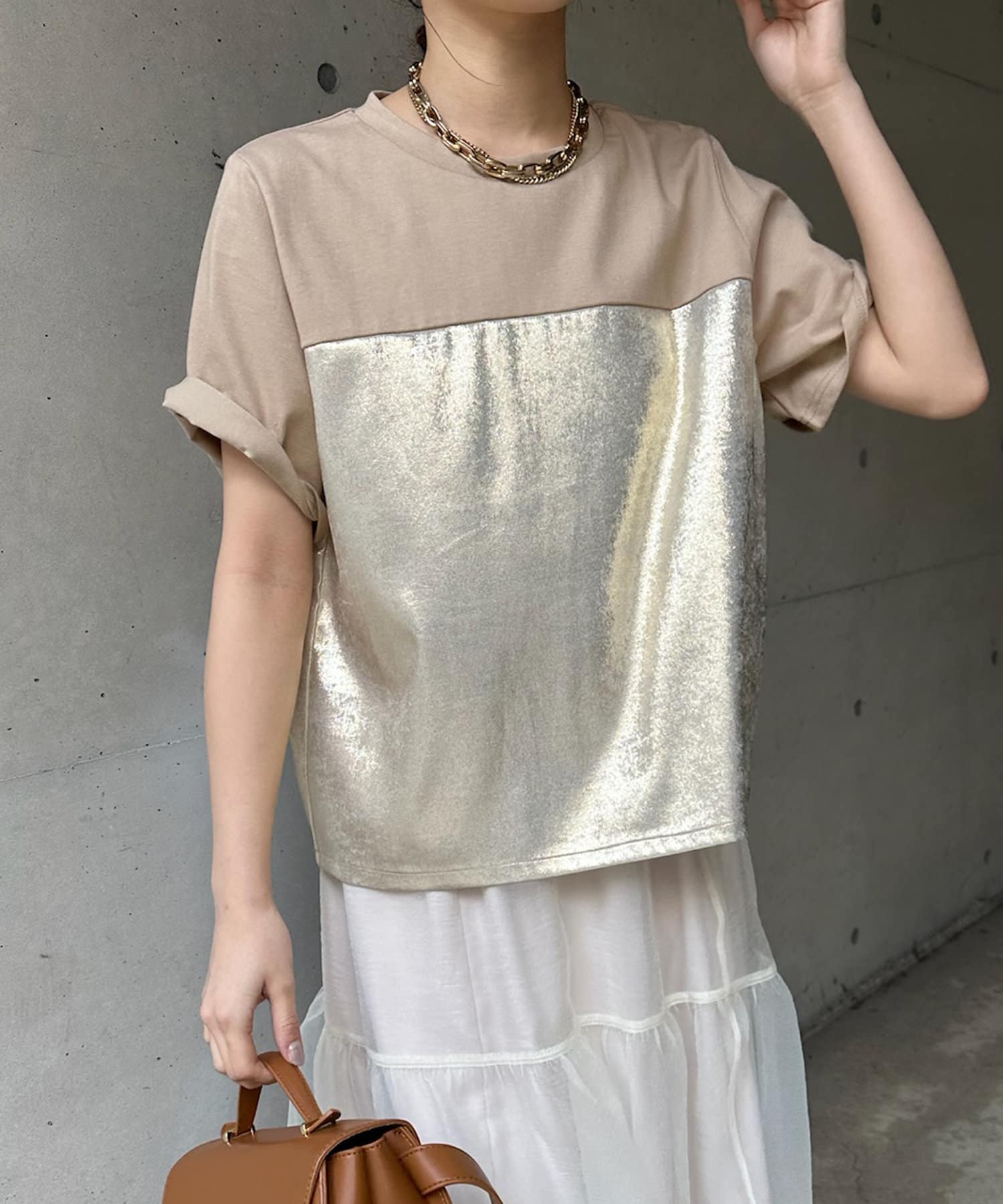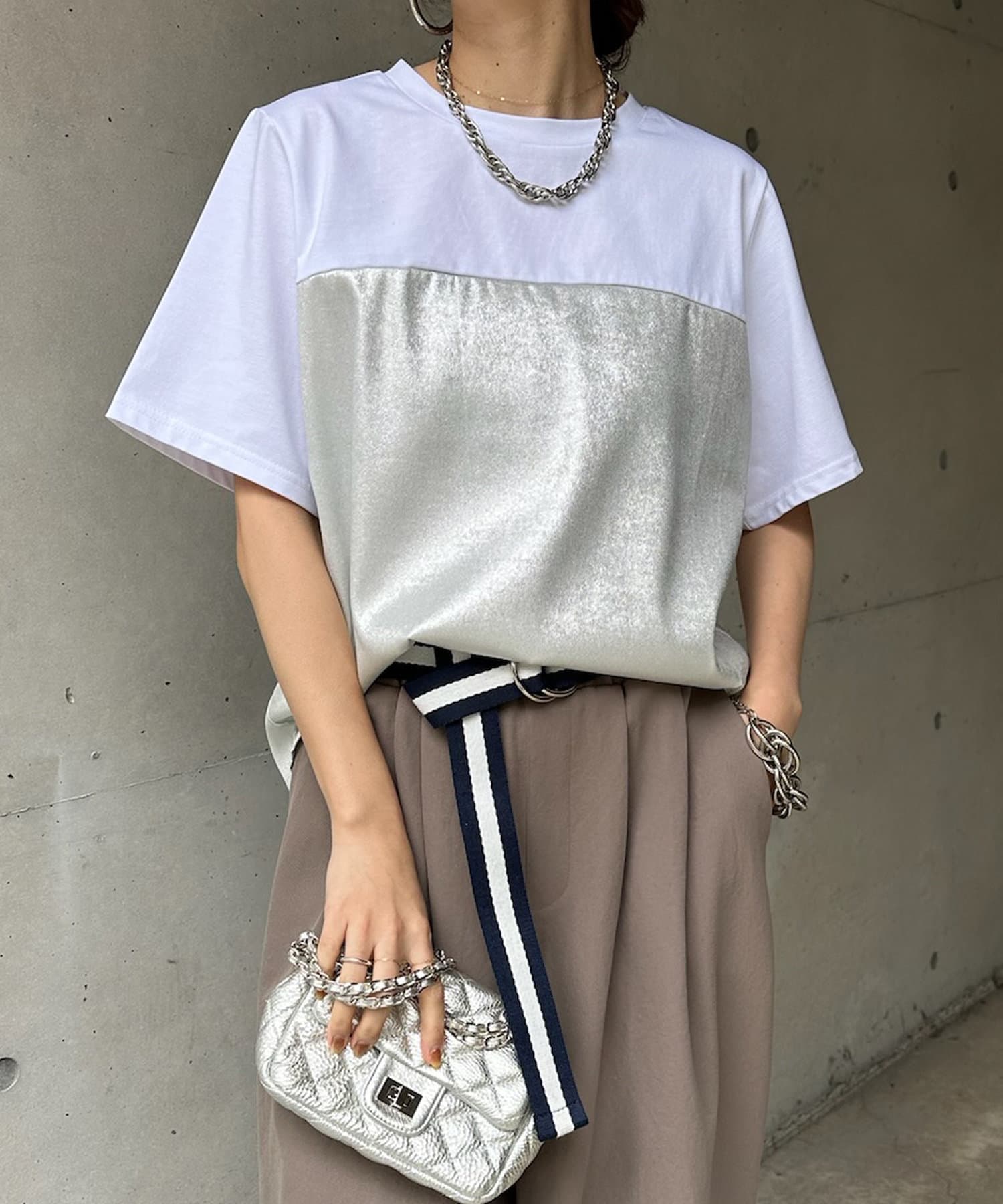 DOUDOU(ドゥドゥ) 【WEB限定】シャイニー切替トップス
