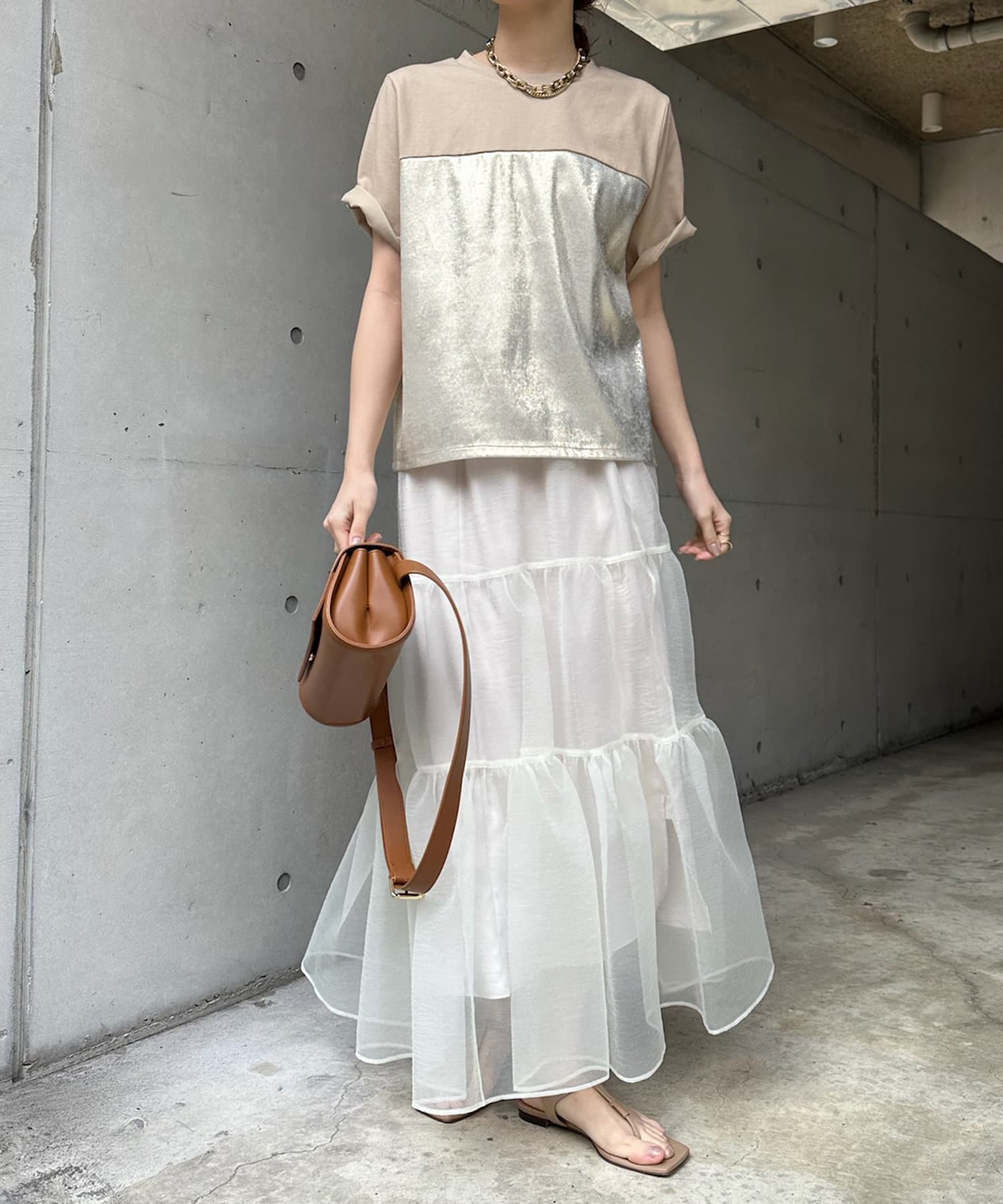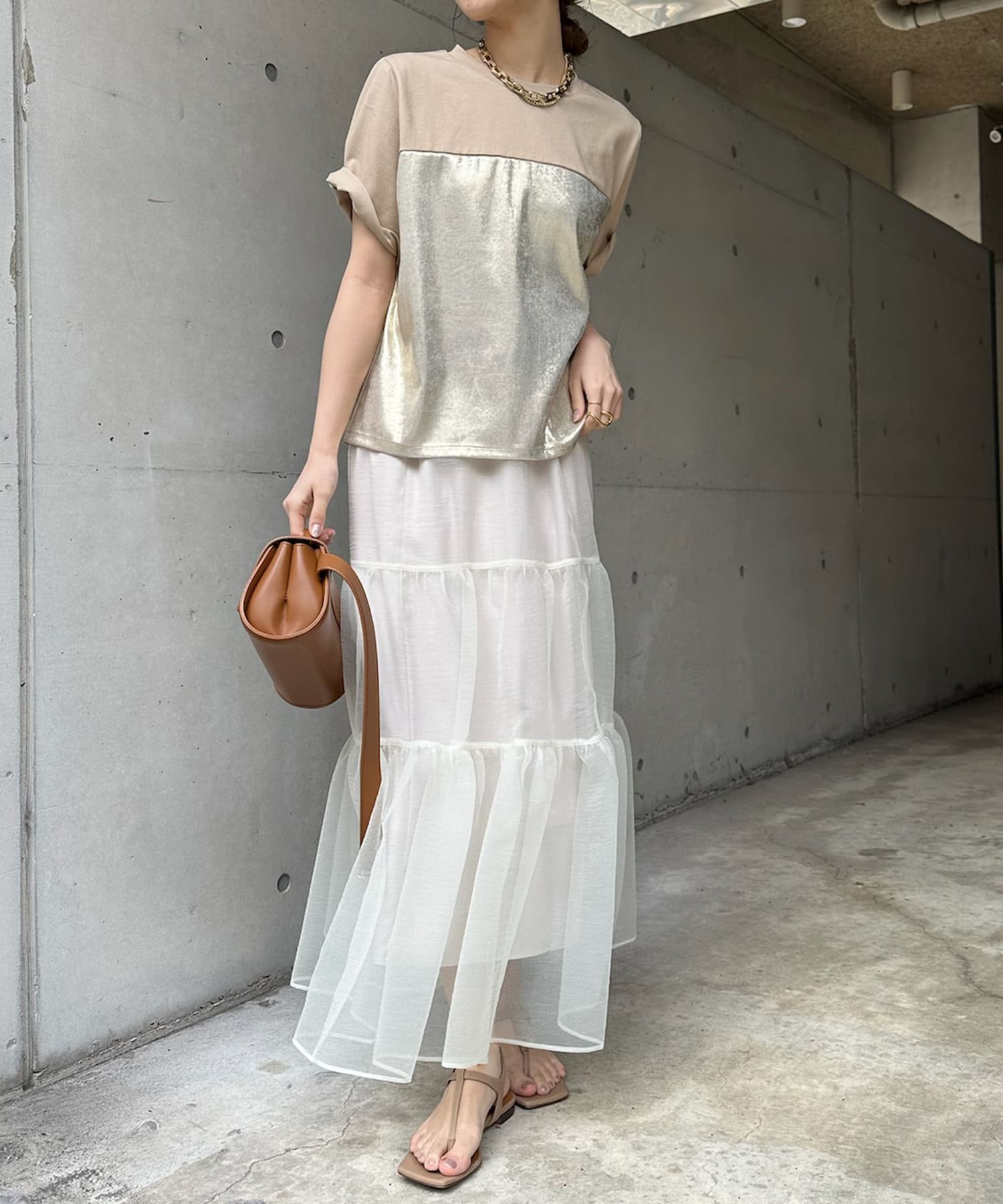 ふわっと軽くボリュームのあるシルエットが大人フェミニンな印象を作り出してくれますよ◎