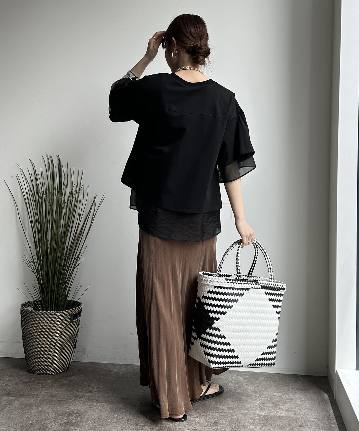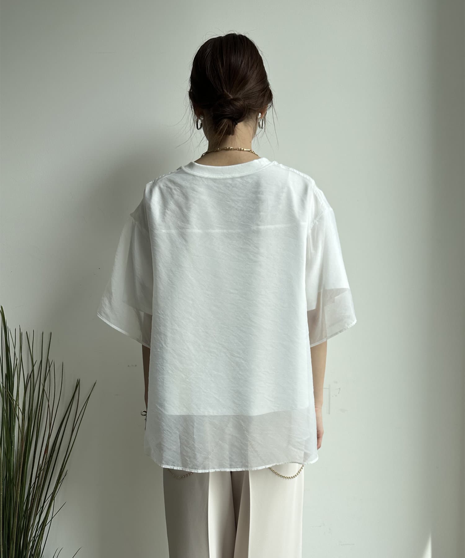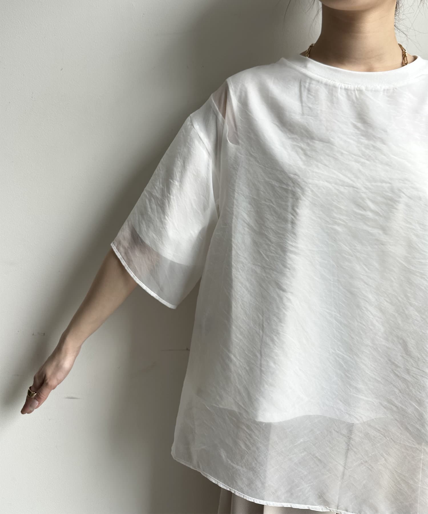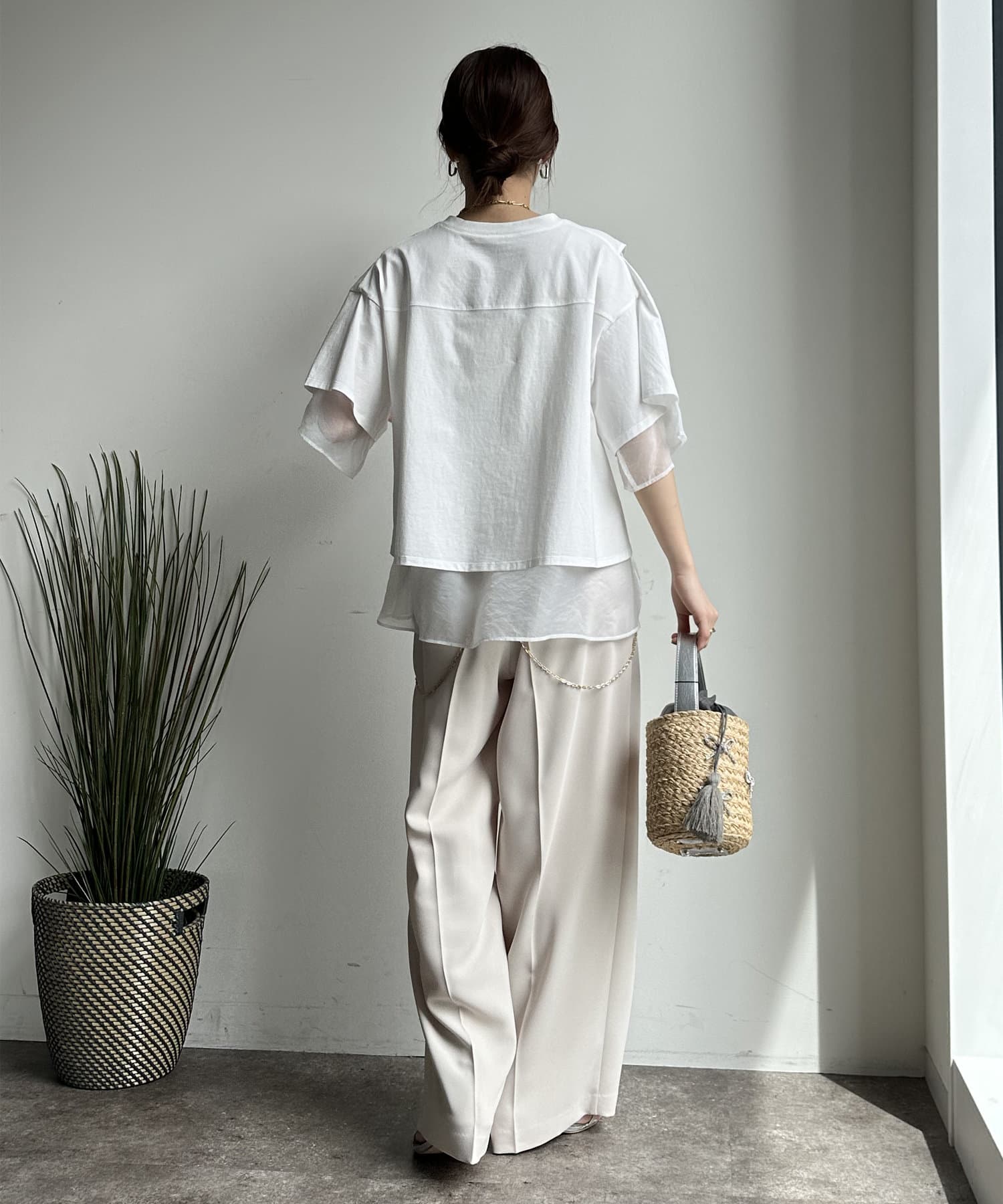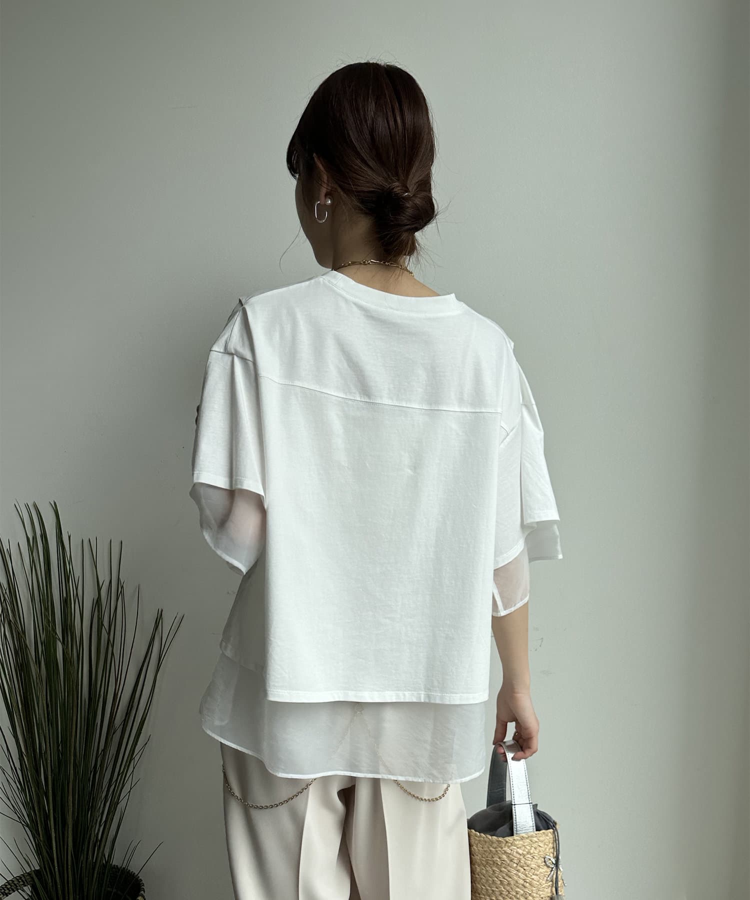 袖にスリットが入ったTEEと透け感があるシアー素材がドッキングされたカットソー!
