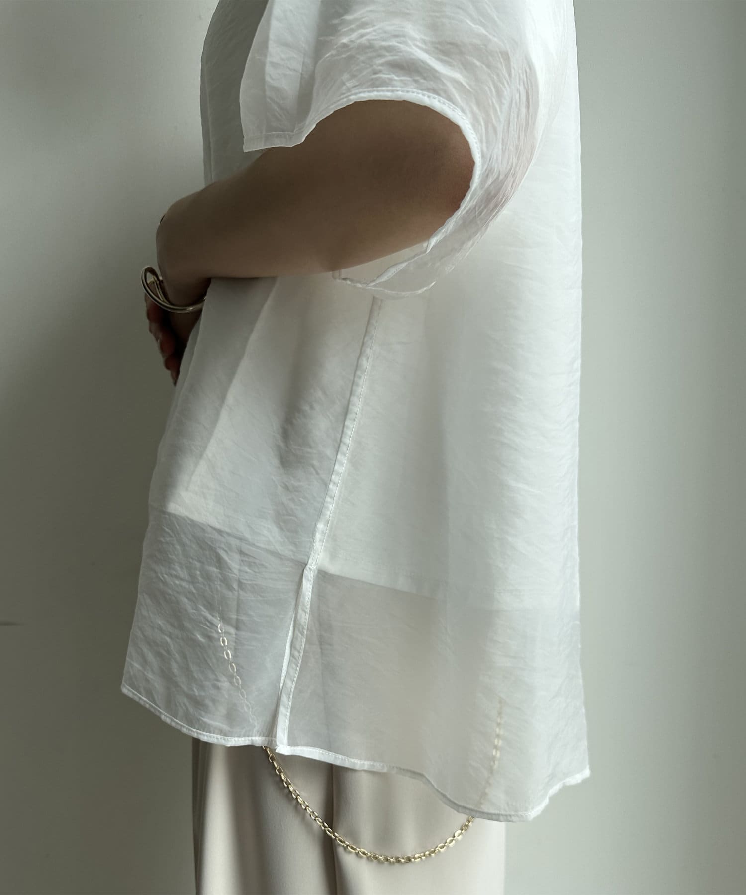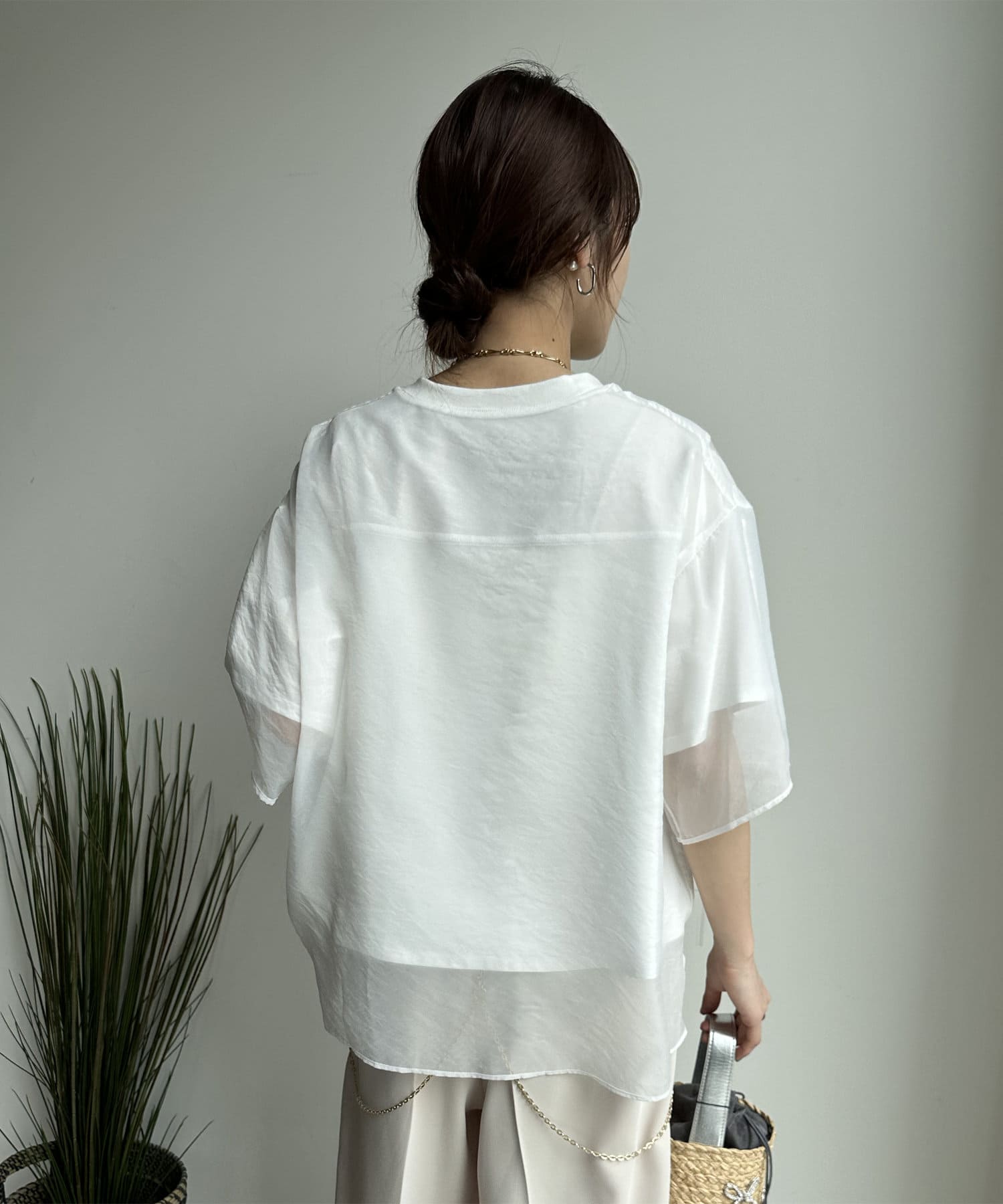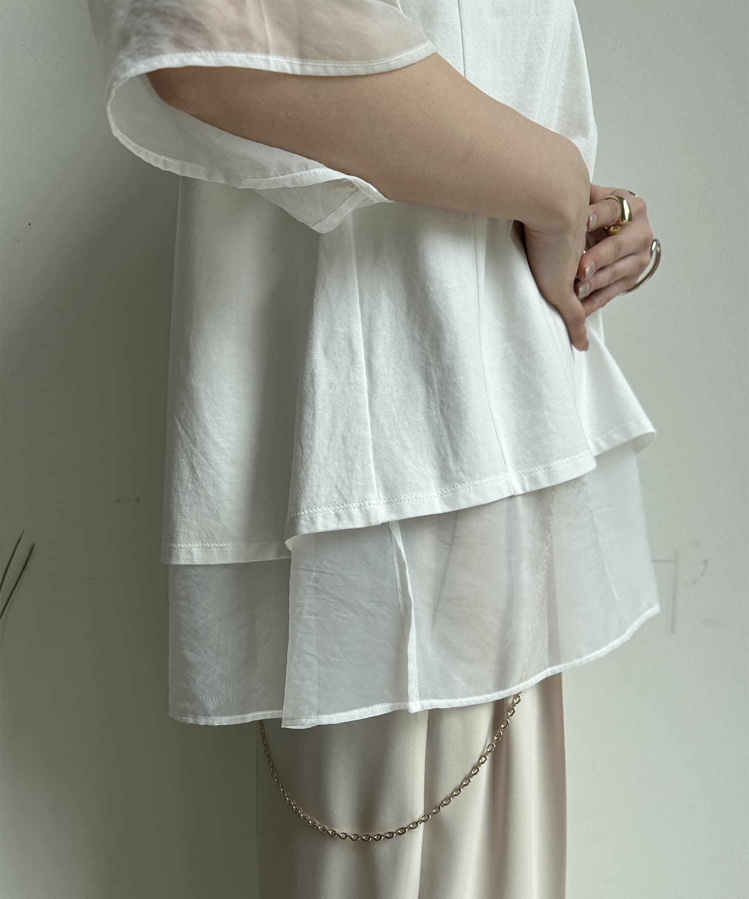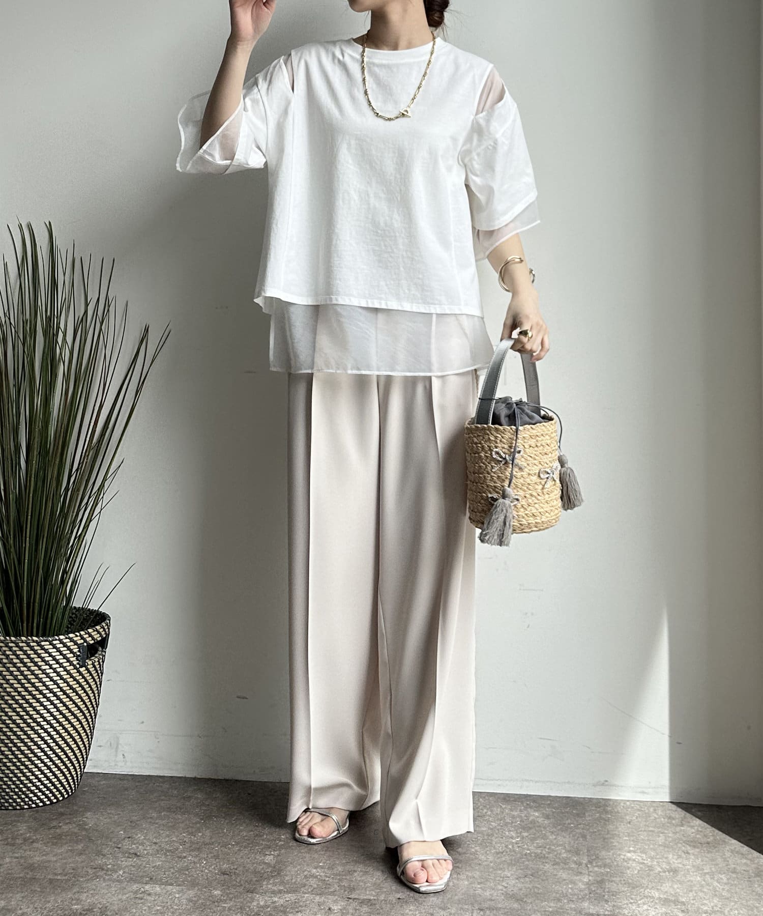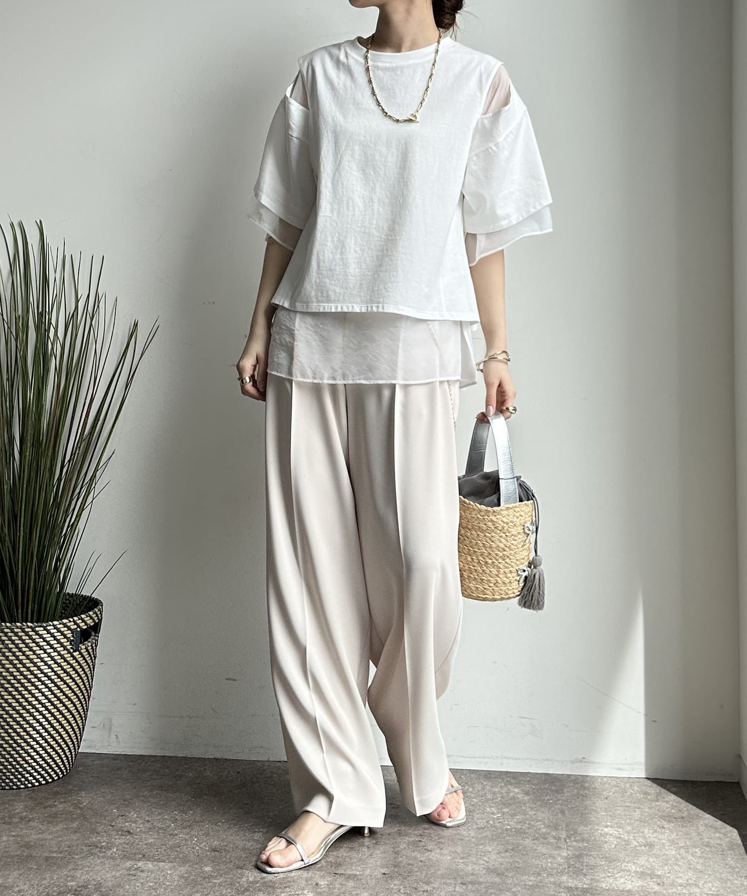 袖にスリットが入ったTEEと透け感があるシアー素材がドッキングされたカットソー!