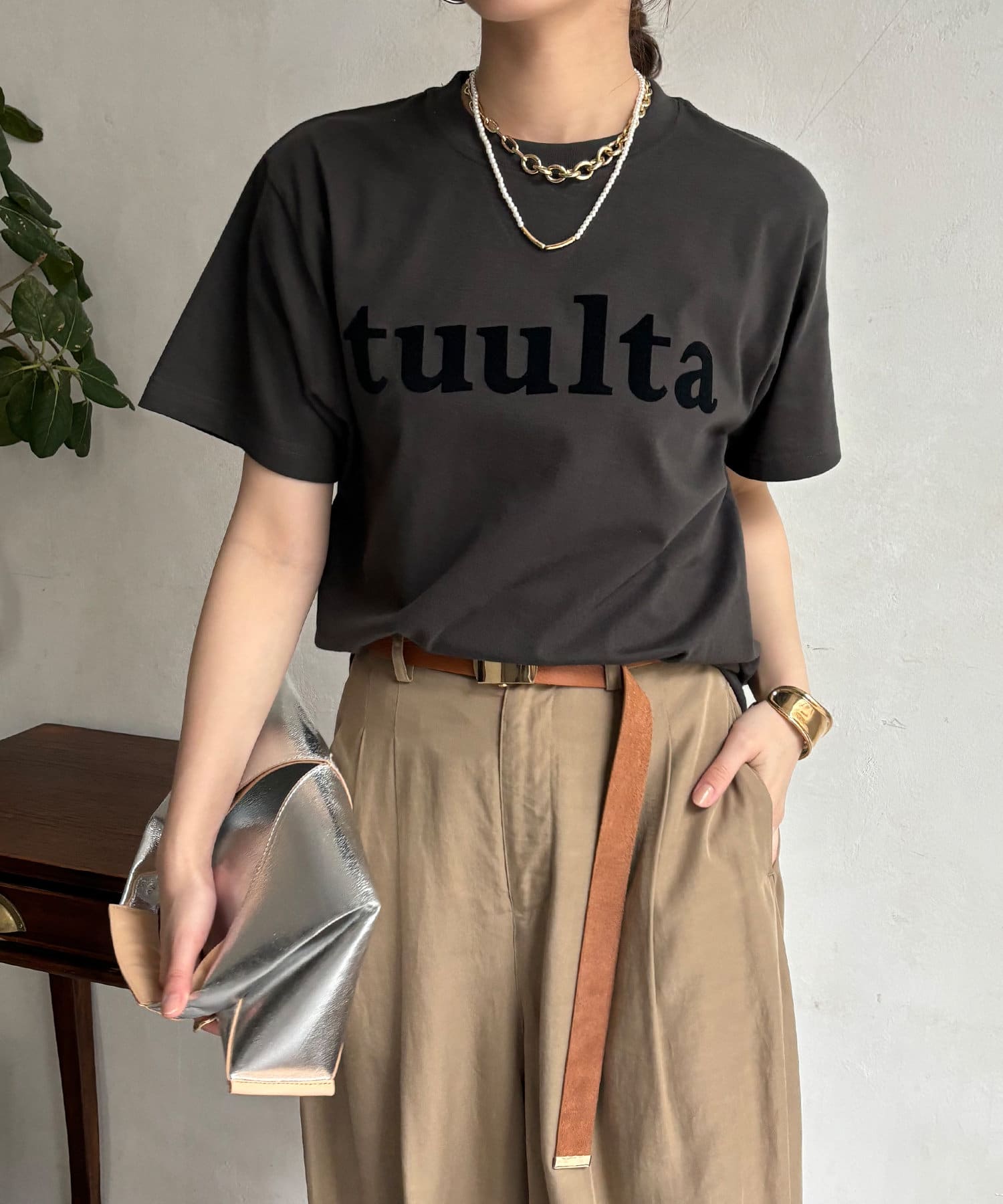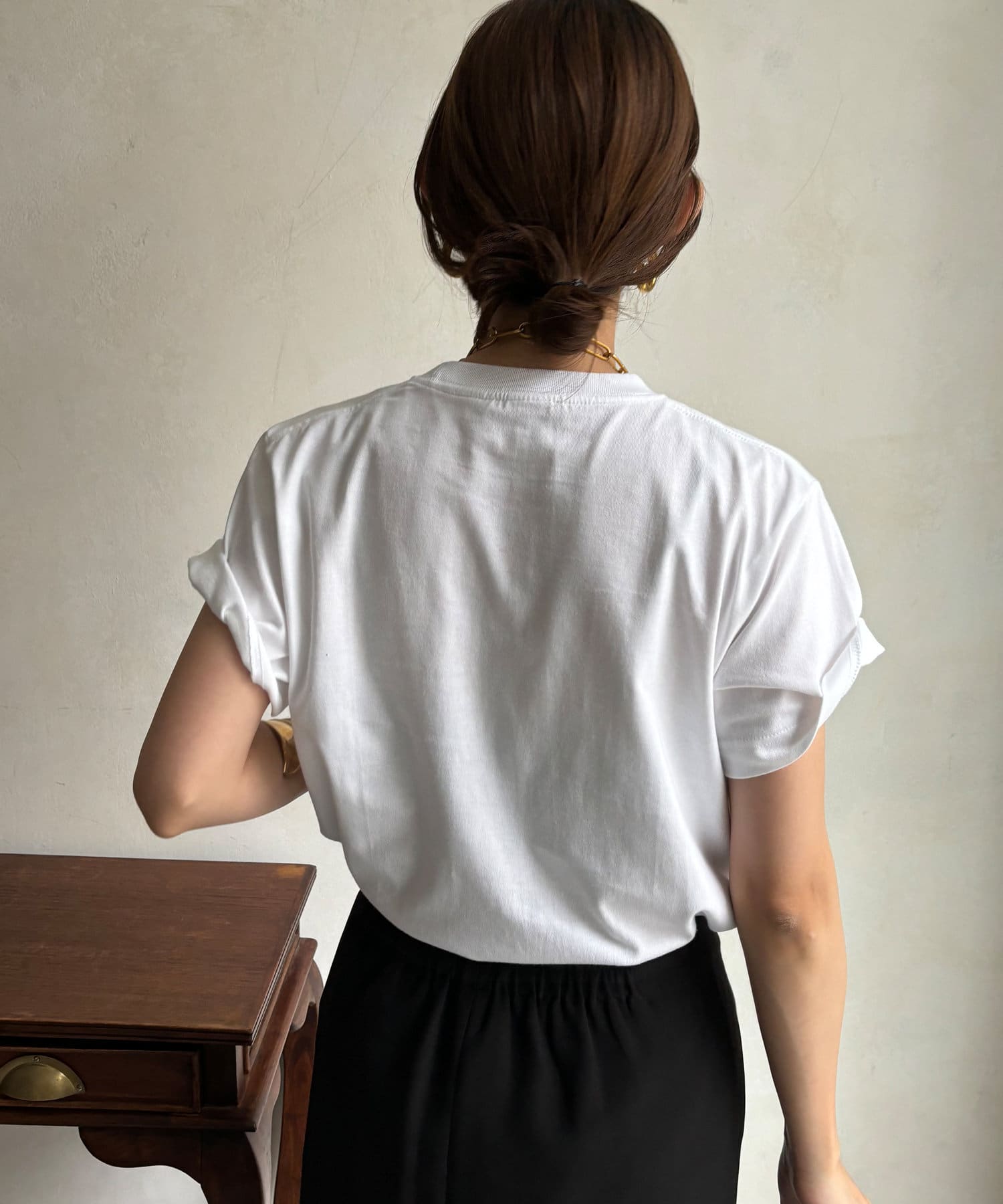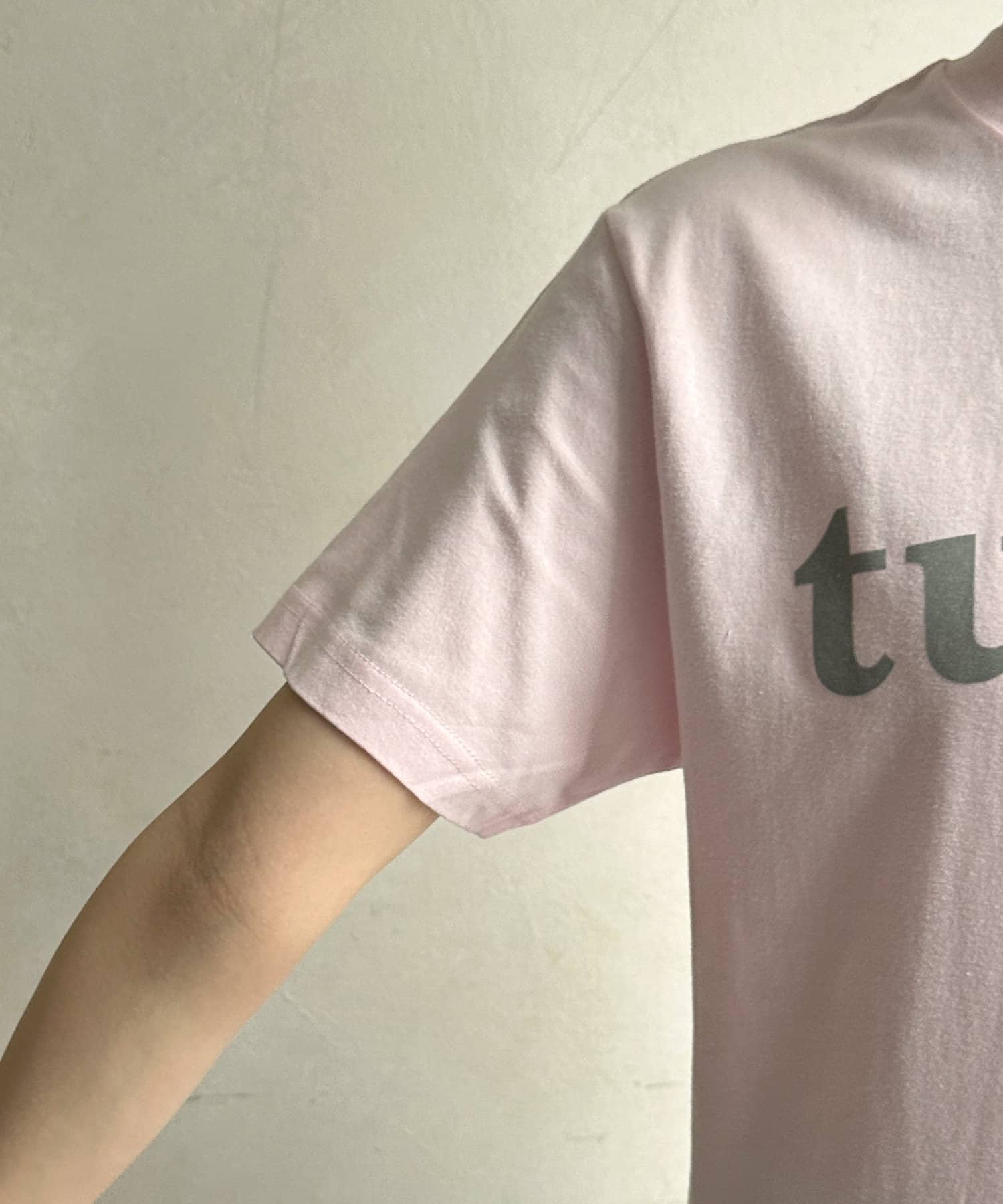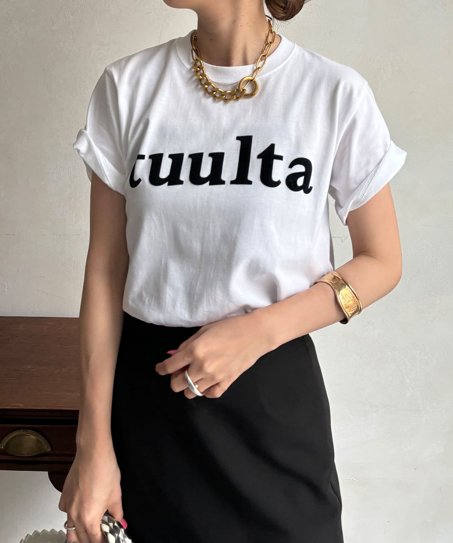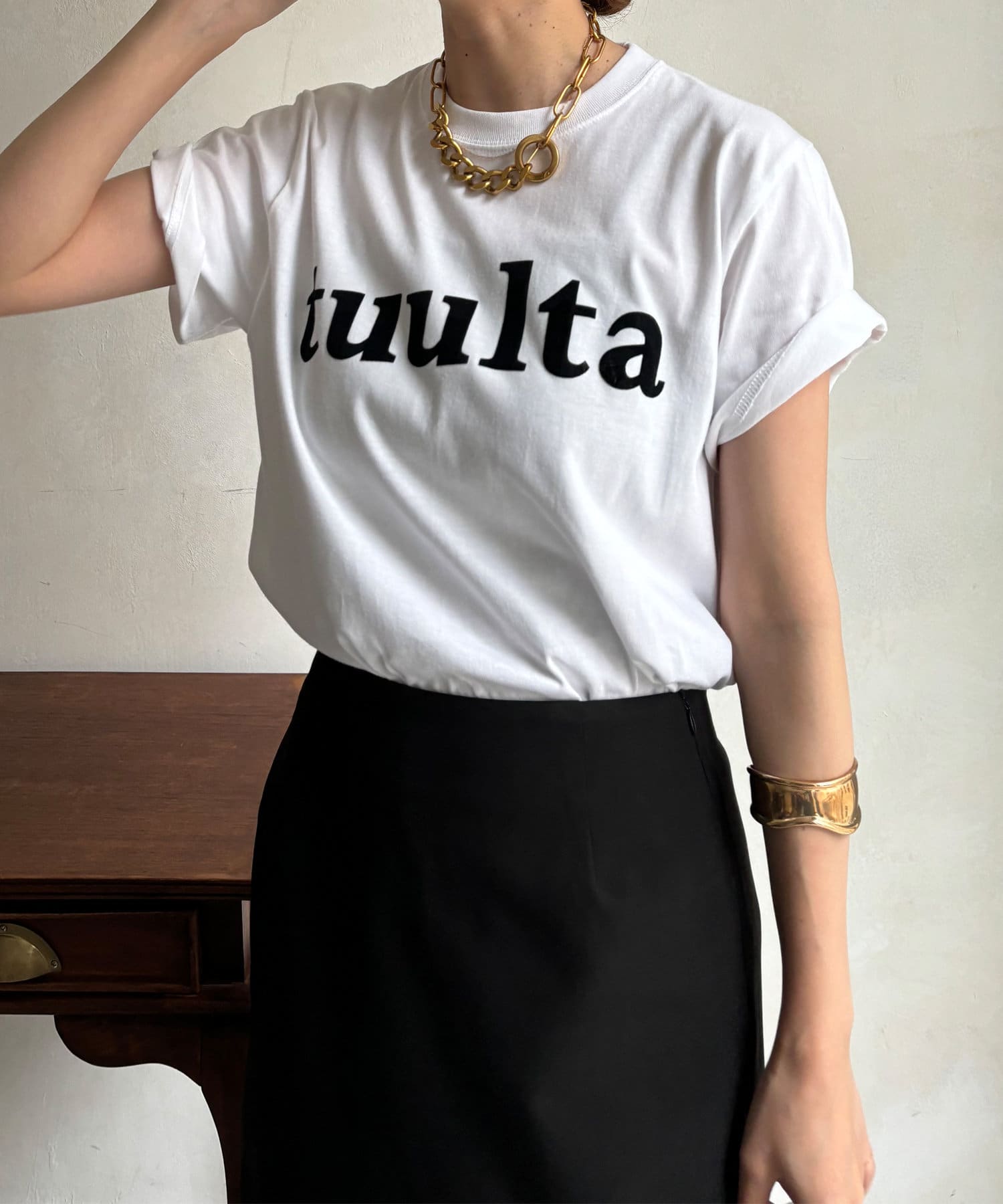 表面感のあるフロッキーロゴがアクセントのシンプルTシャツ。