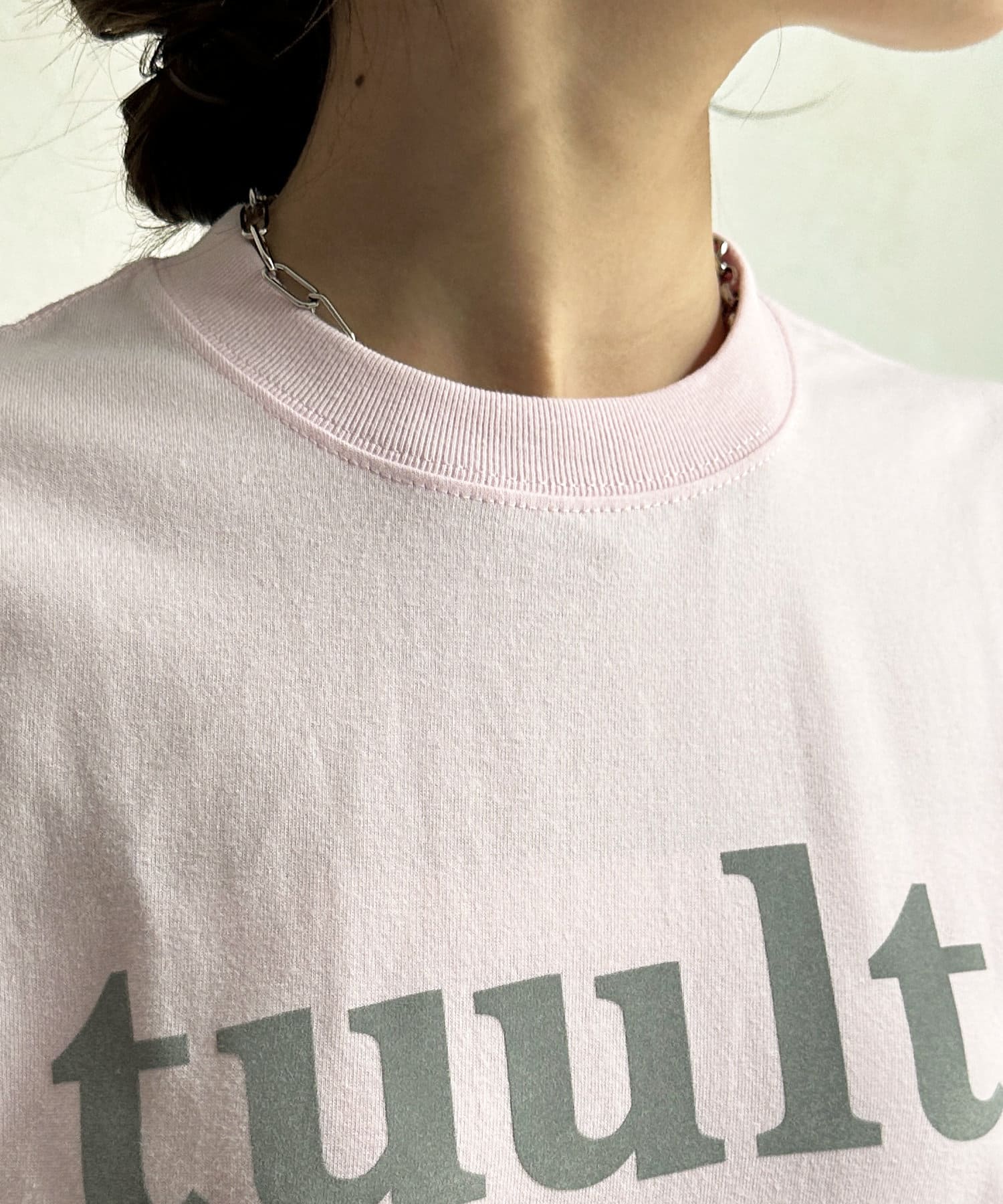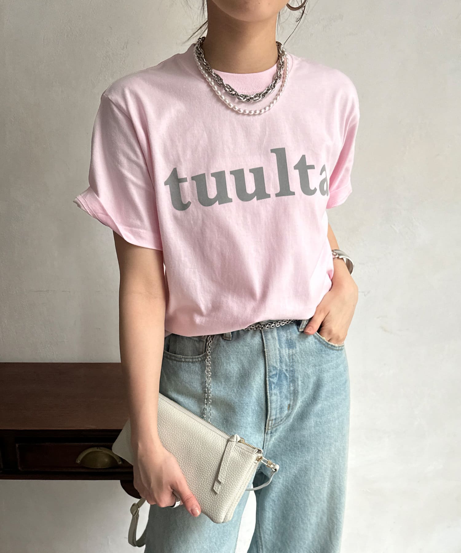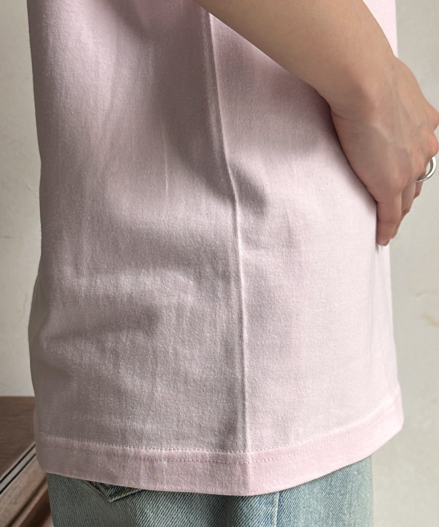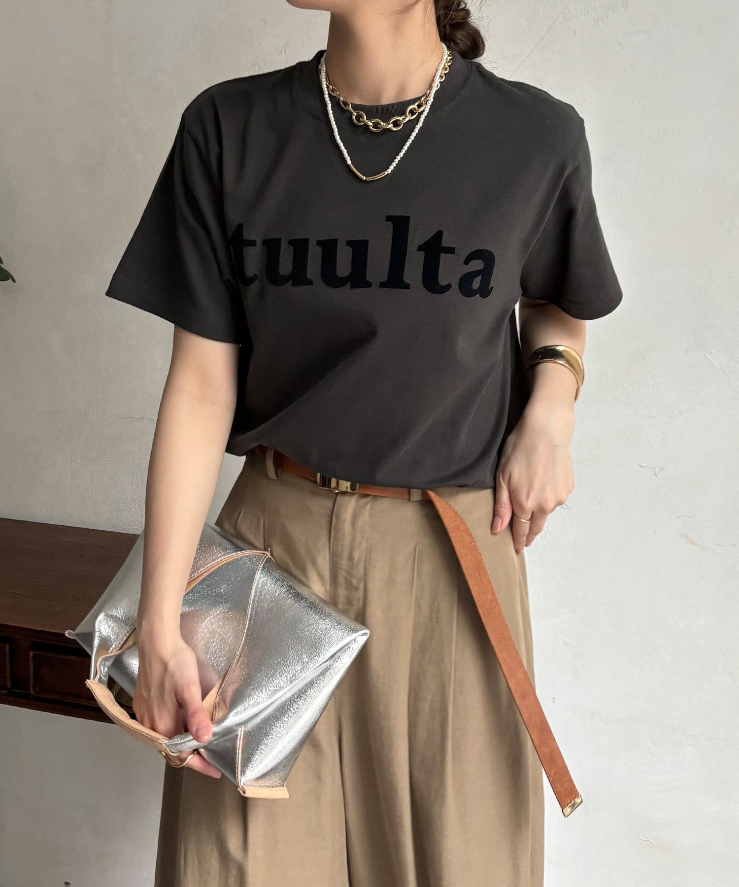 表面感のあるフロッキーロゴがアクセントのシンプルTシャツ。
