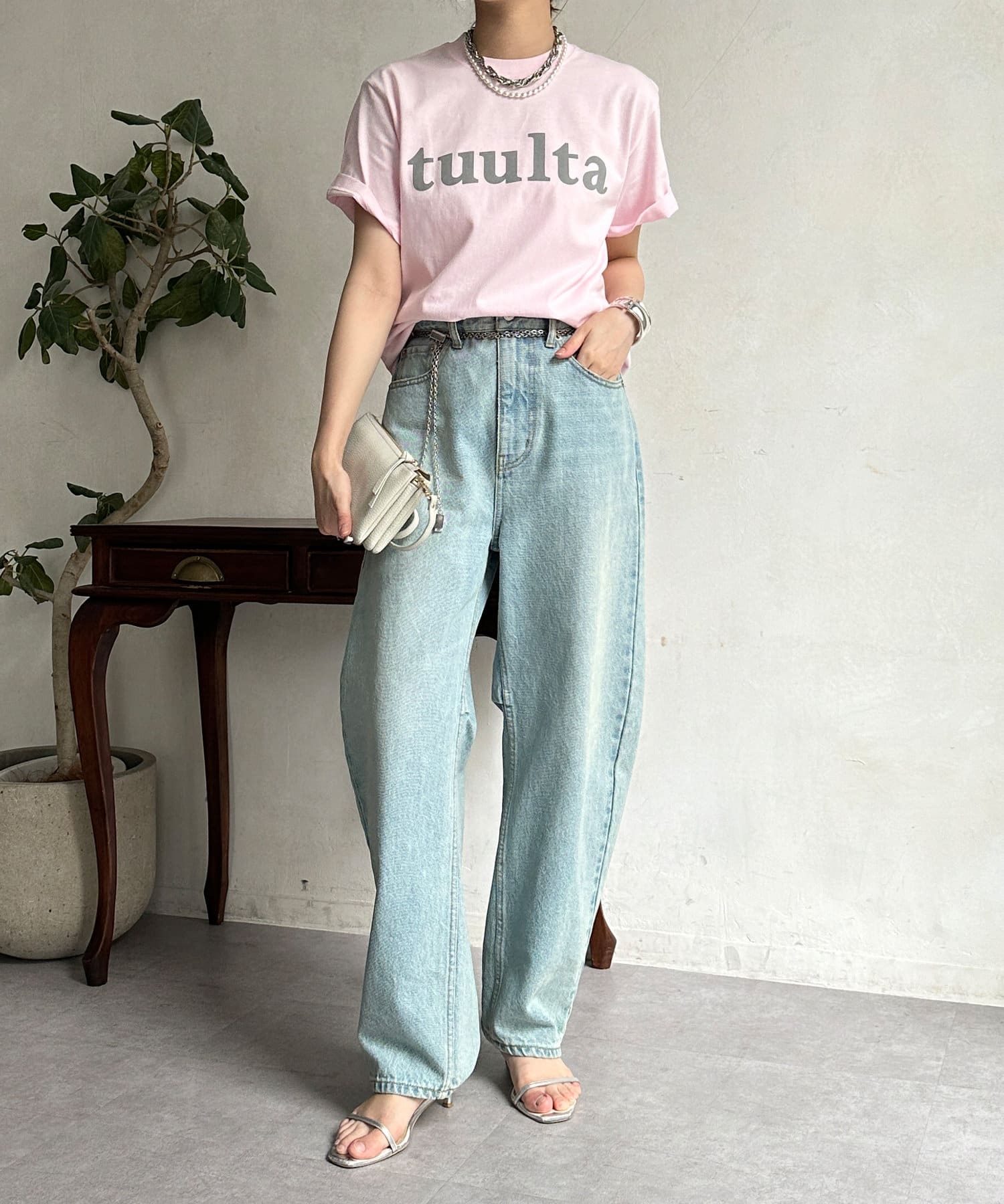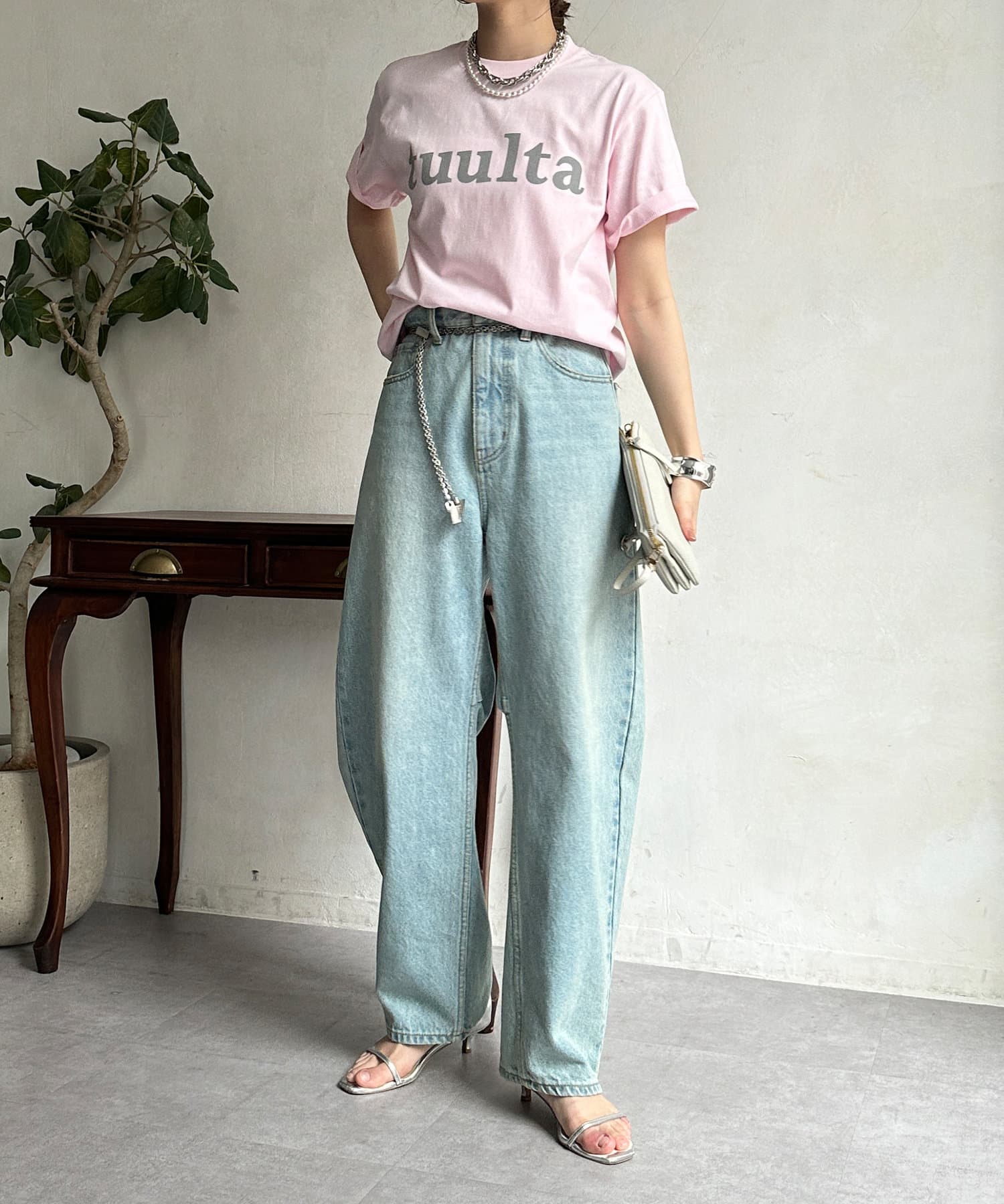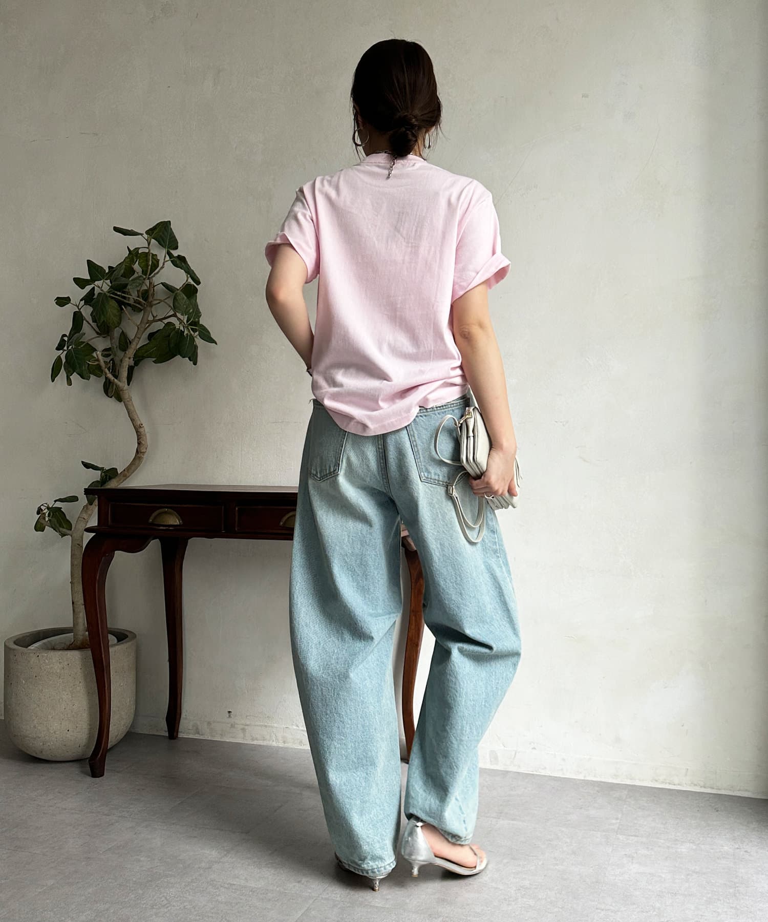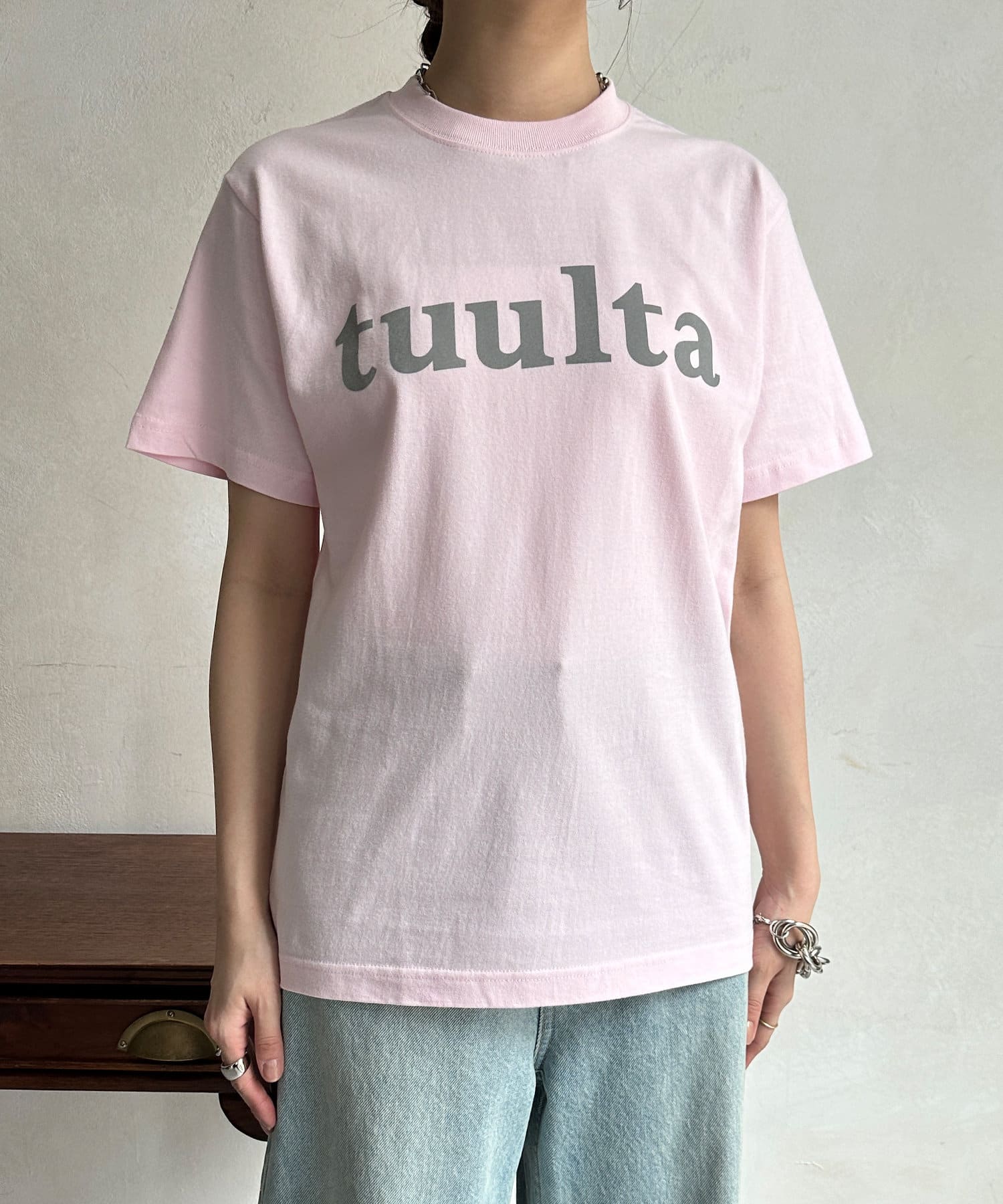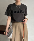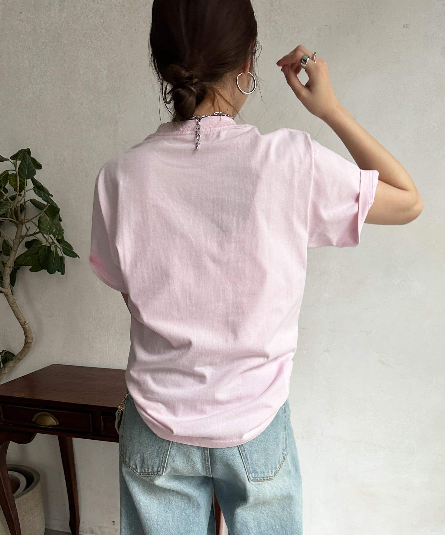 表面感のあるフロッキーロゴがアクセントのシンプルTシャツ。