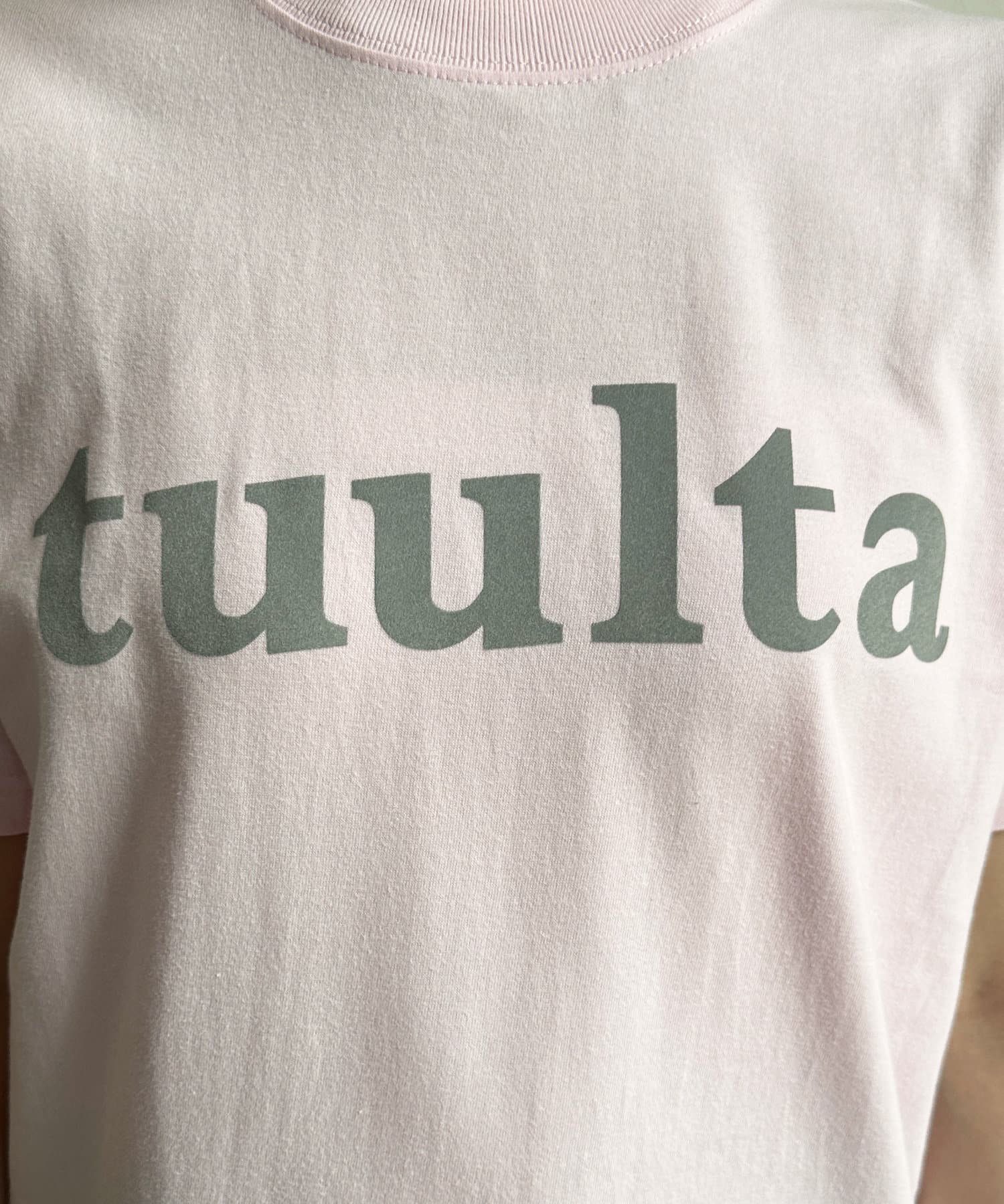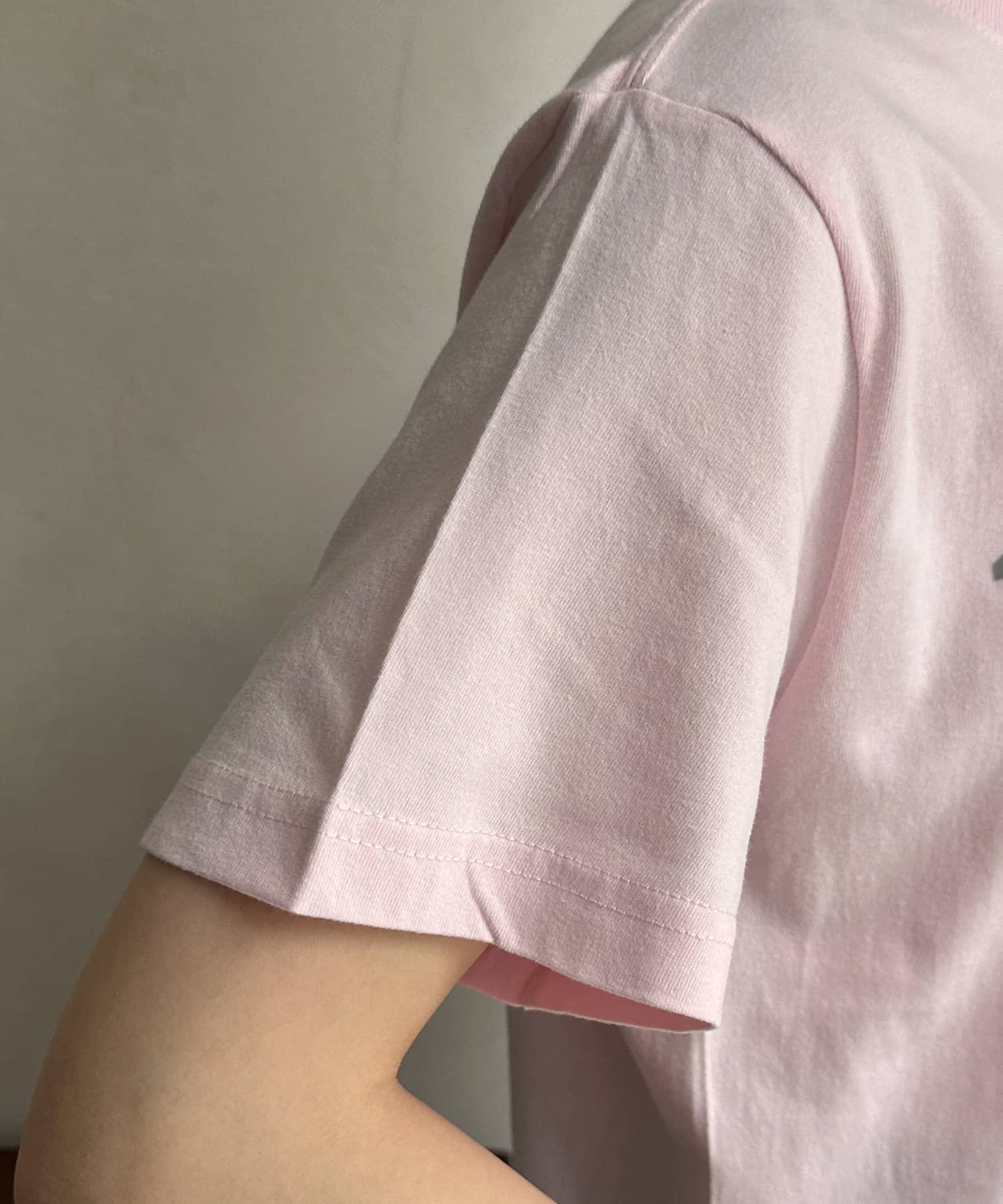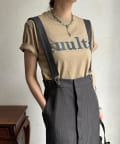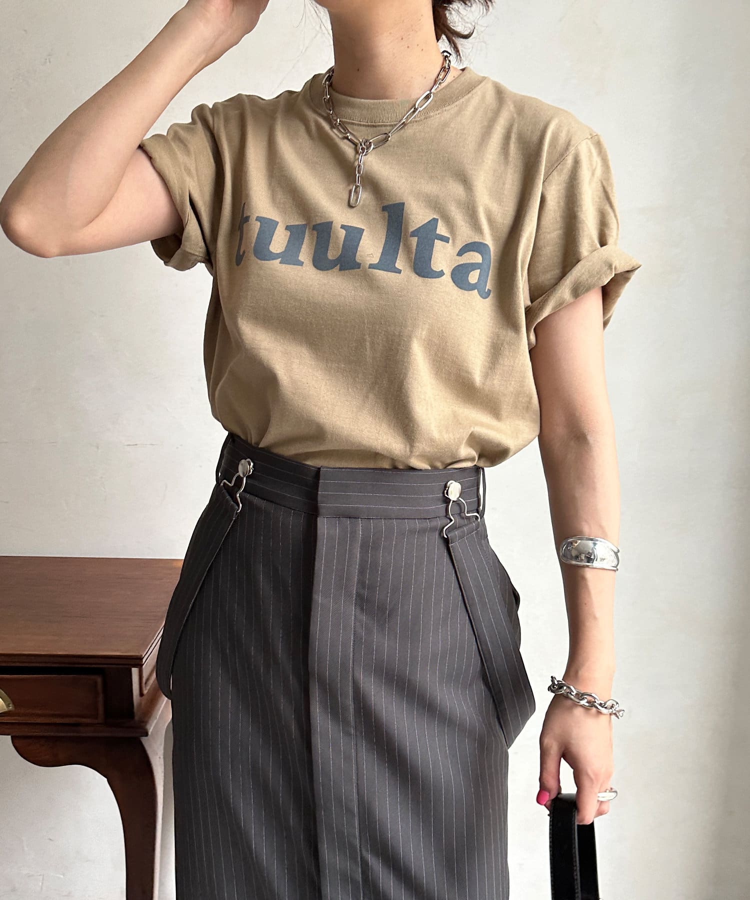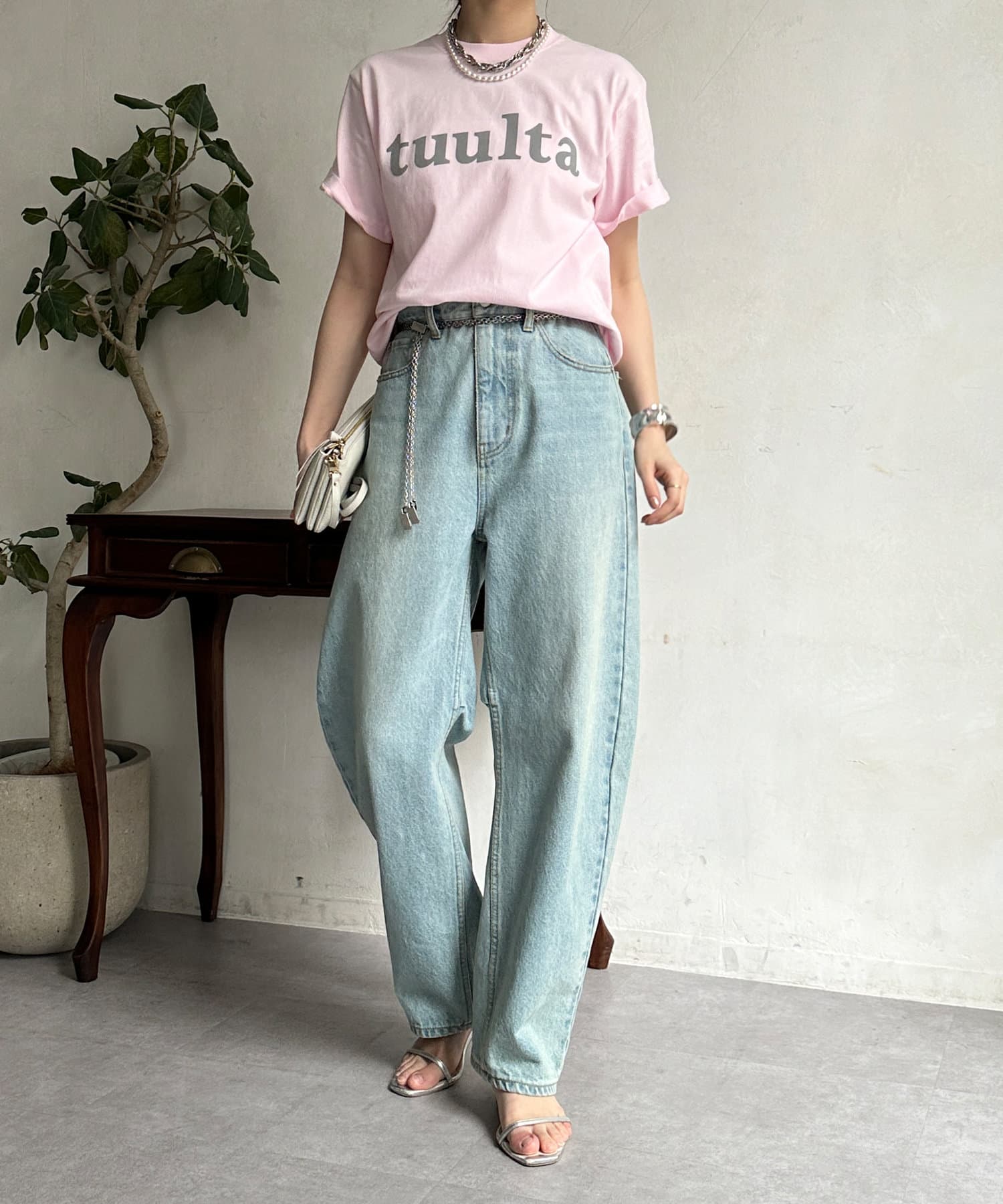 表面感のあるフロッキーロゴがアクセントのシンプルTシャツ。