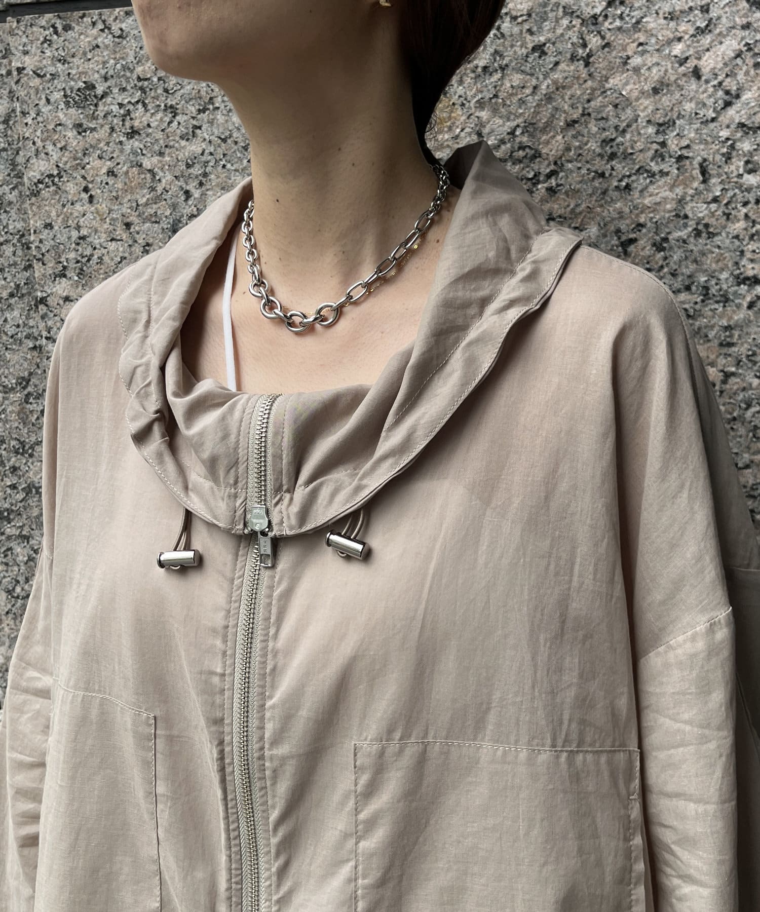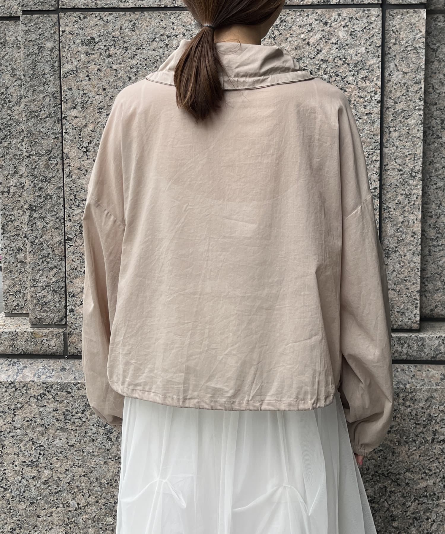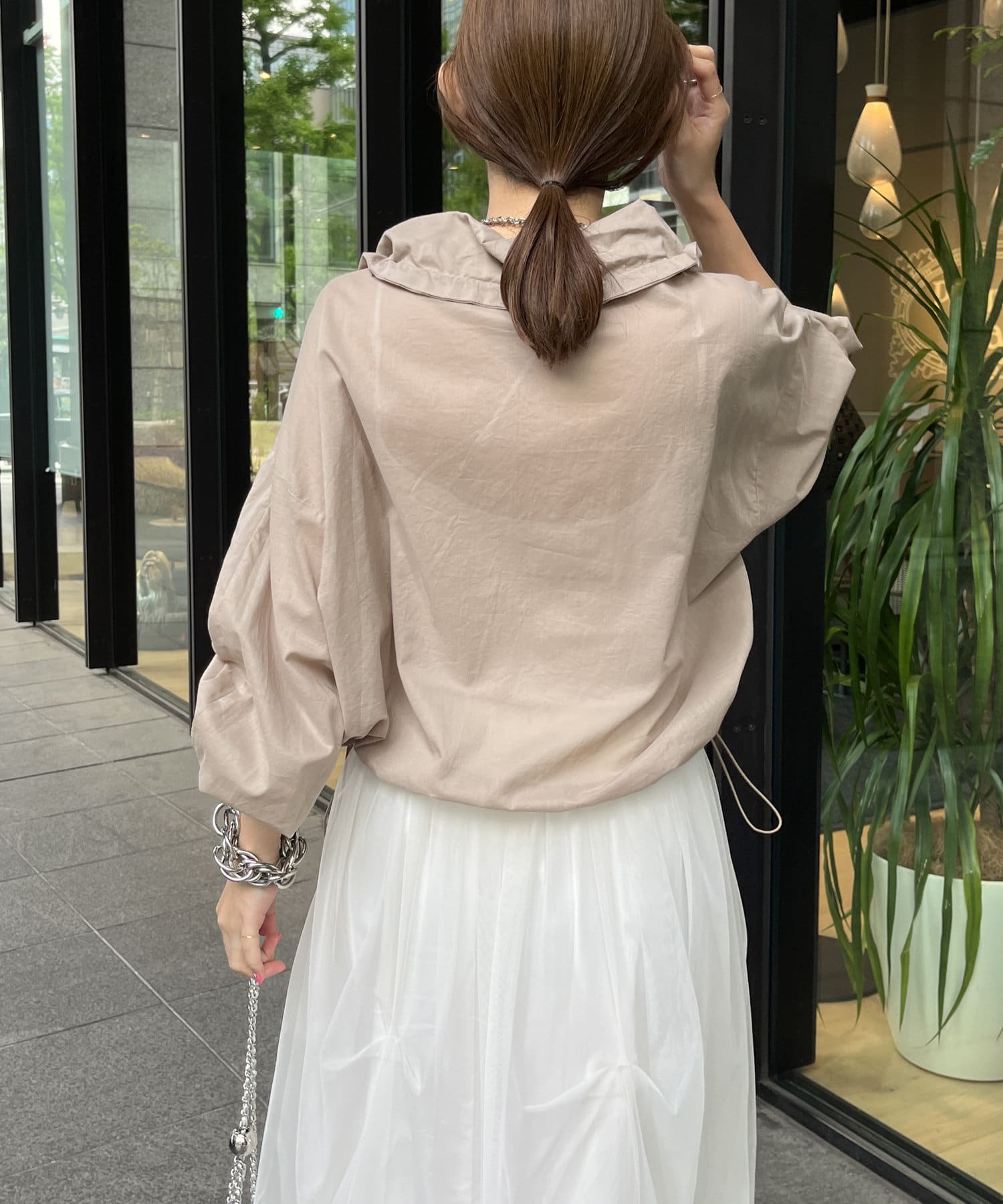 首元や裾のドロストを絞ることで、立体感のあるフォルムに変化。