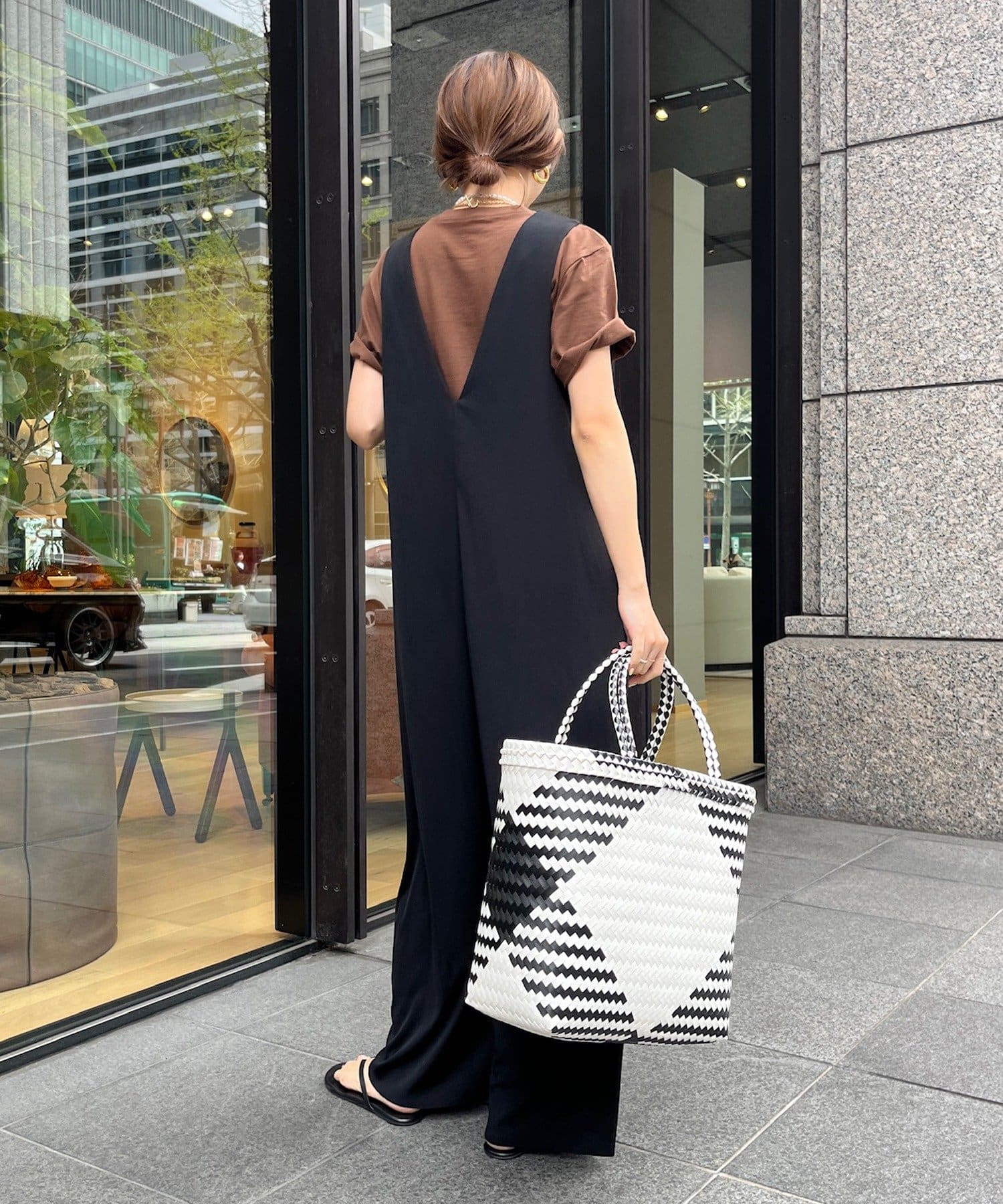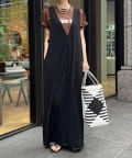 リラックス感のあるワイドなシルエットはすとんと身体のラインを拾わずに落ちてくれるため、ノンストレス。