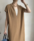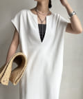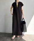 すっきり見えが抜群の深Vデザインを取り入れた1着。